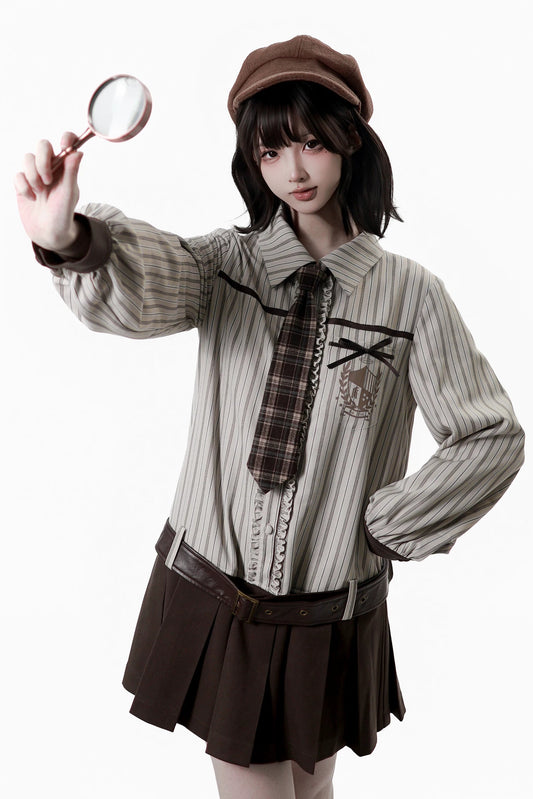 레트로 플래드 프레피 블라우스