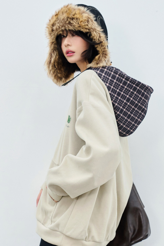 グラビティミュージアムフェイクツーピースチェックフードトップス