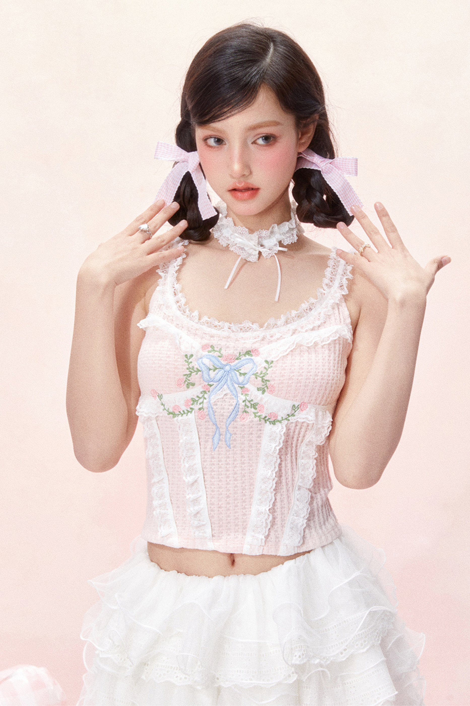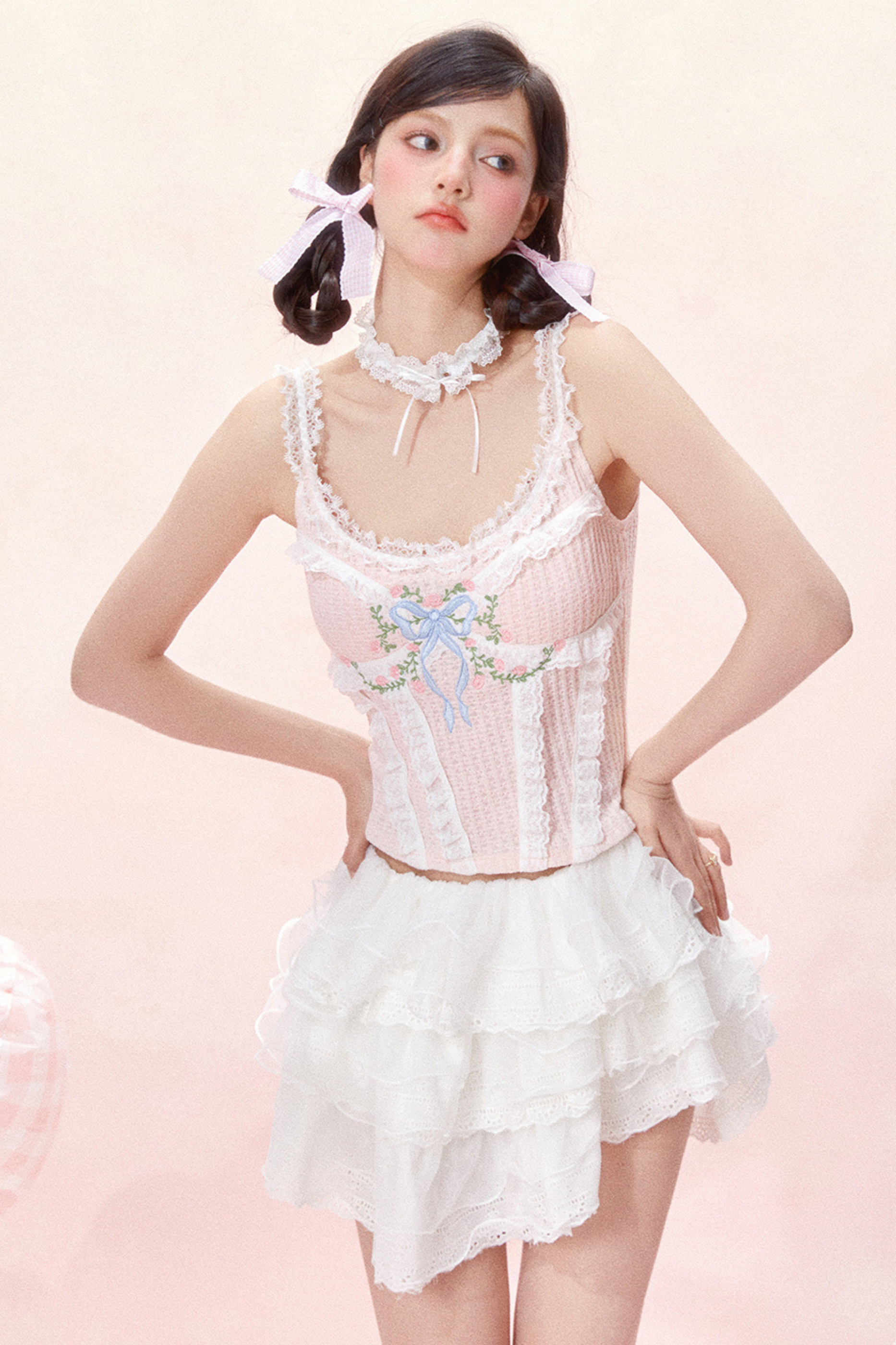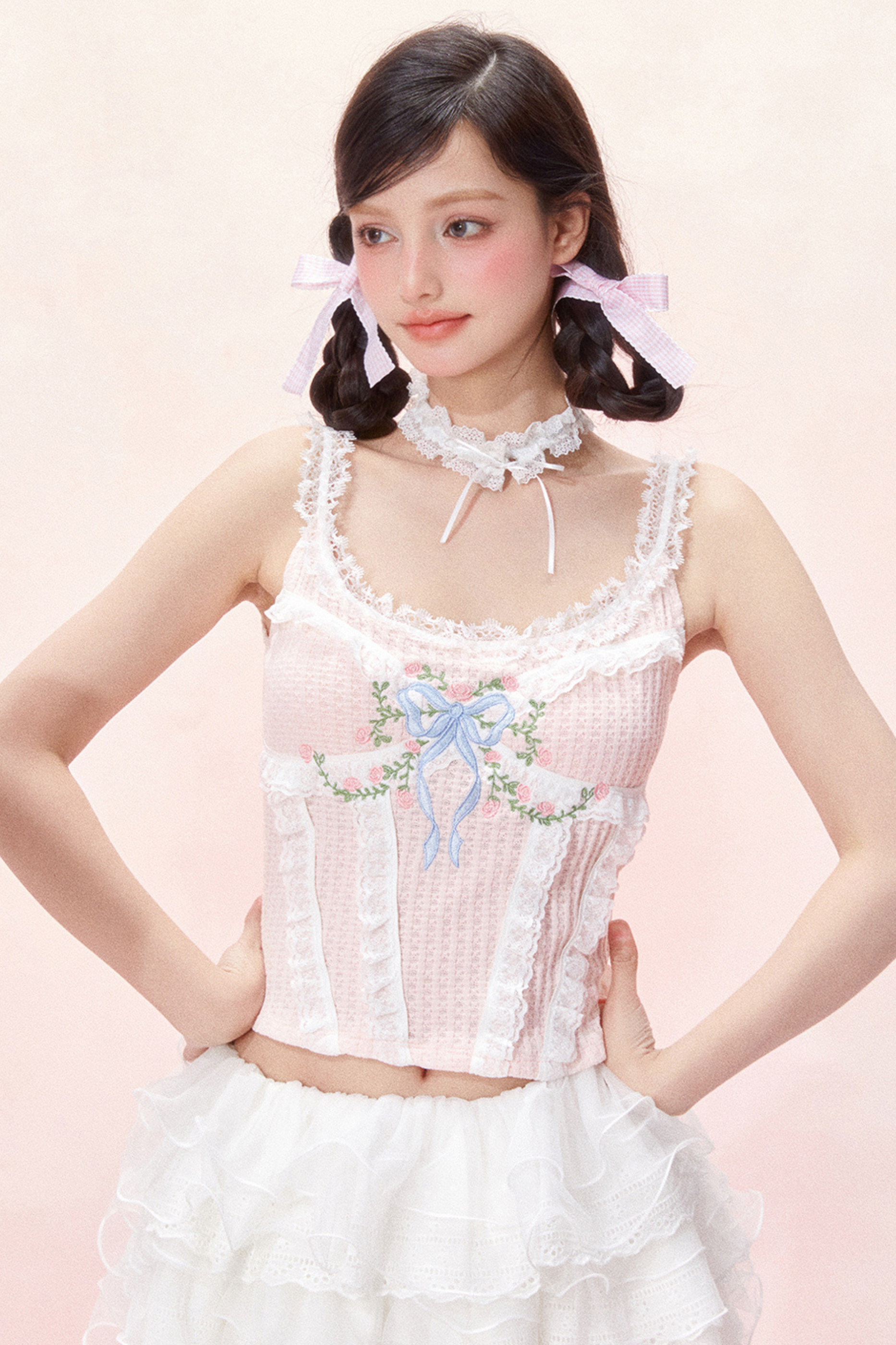 レーススイートリボンデザインコルセットトップス