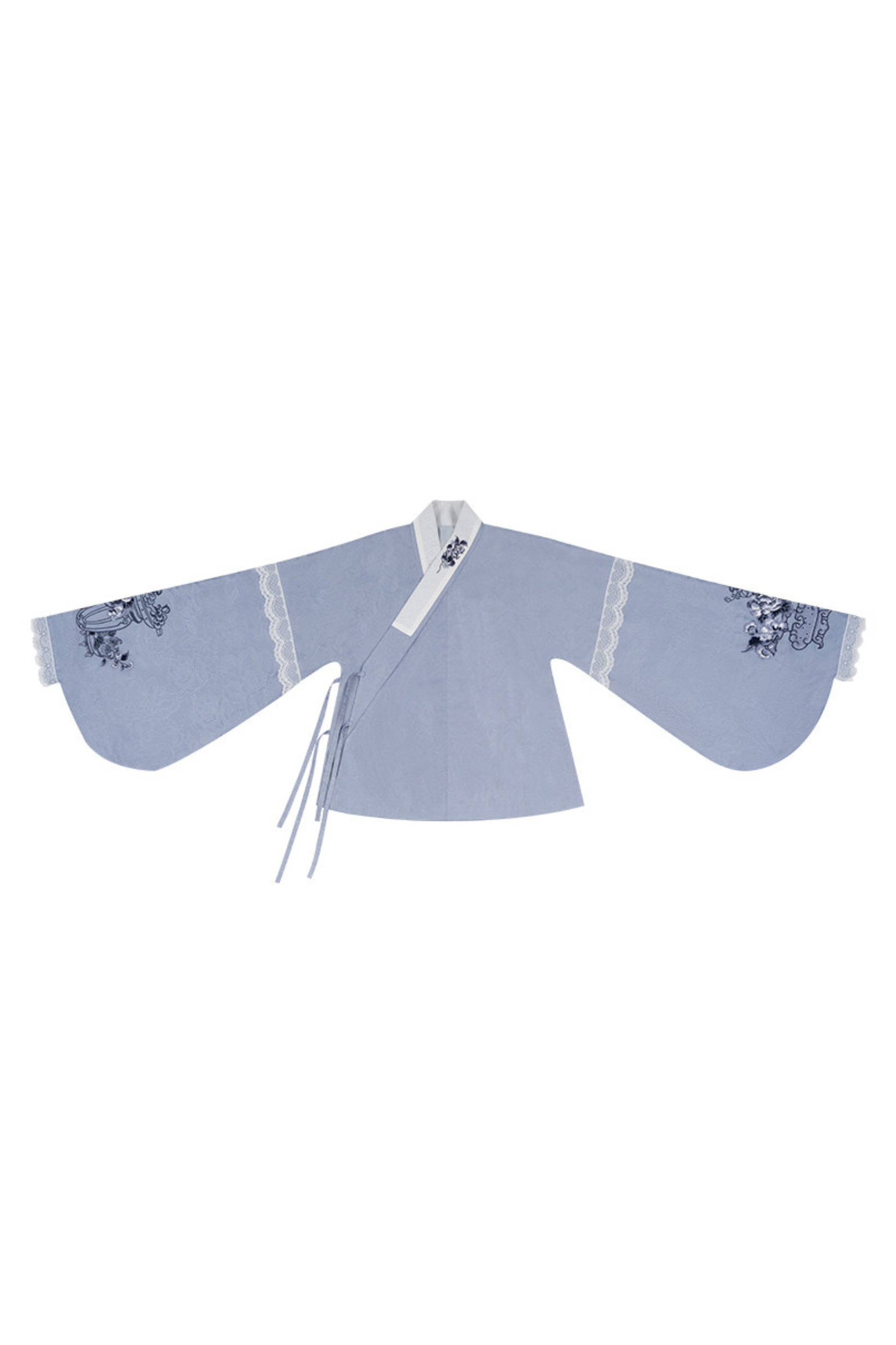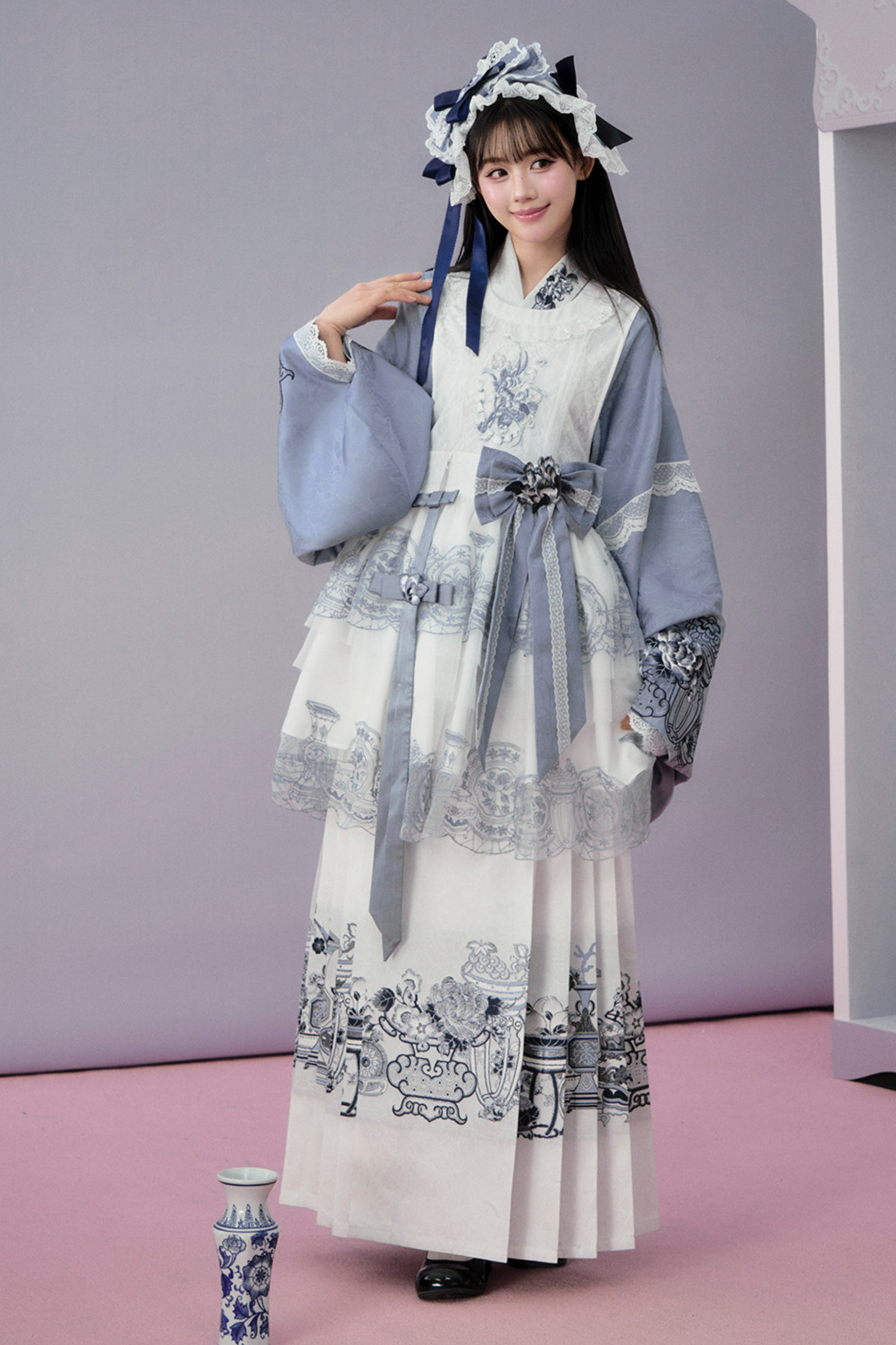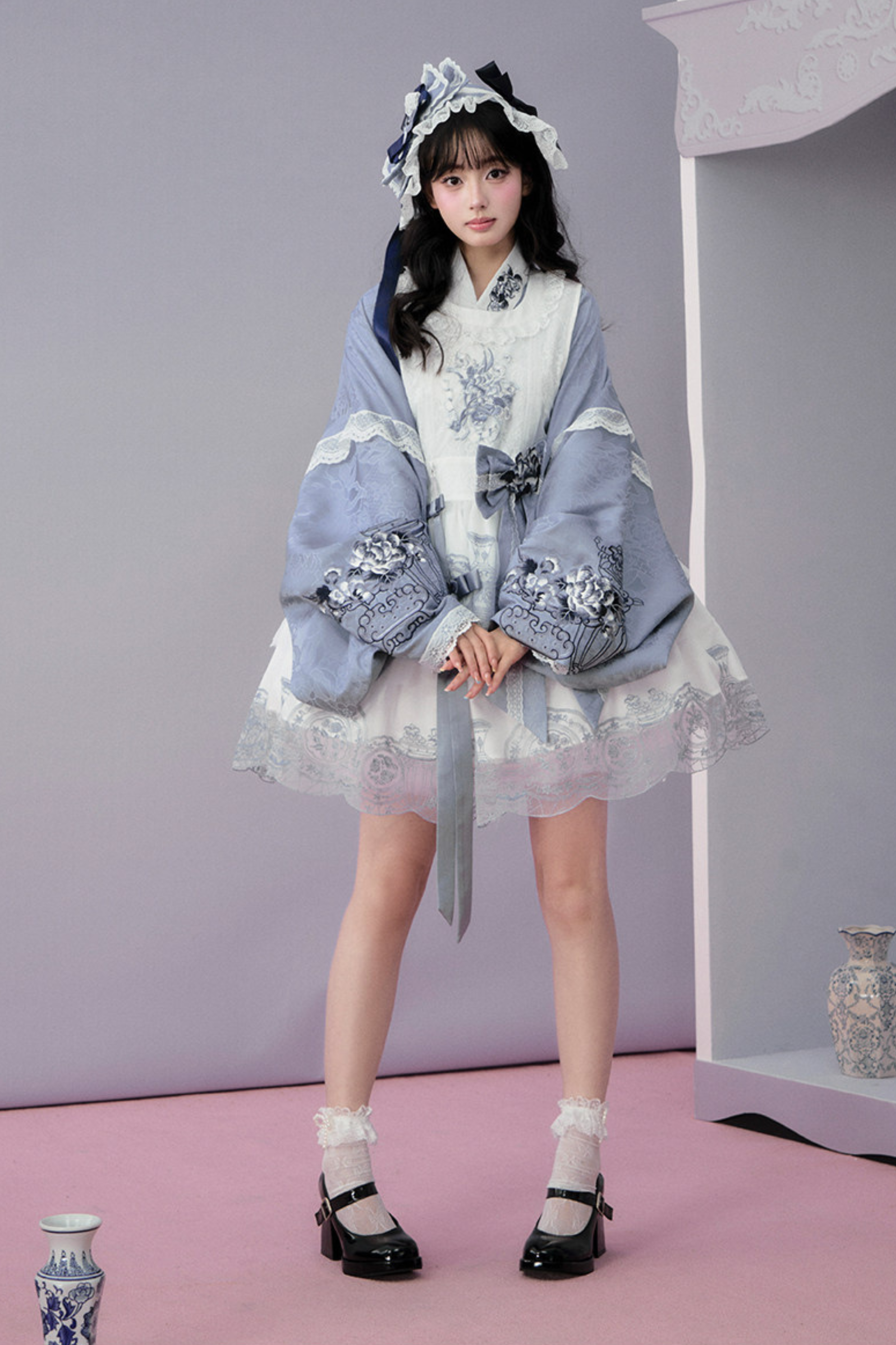 귀여운 차이나 재킷 + 스커트 + 오버스커트 + 리본 + 브로치 + 헤어밴드