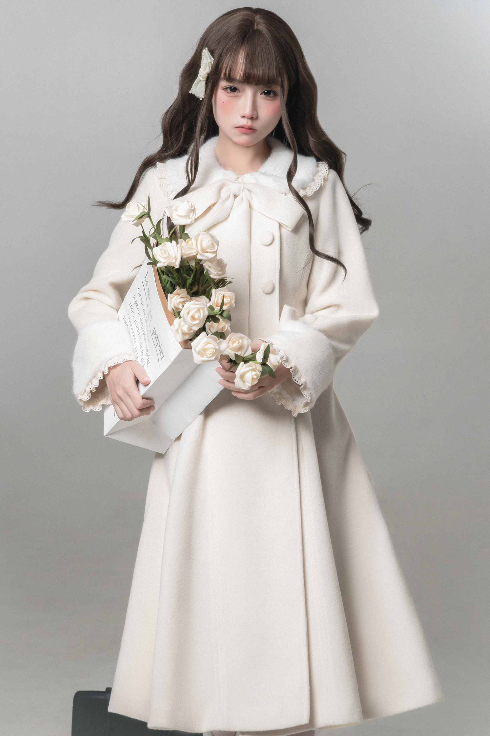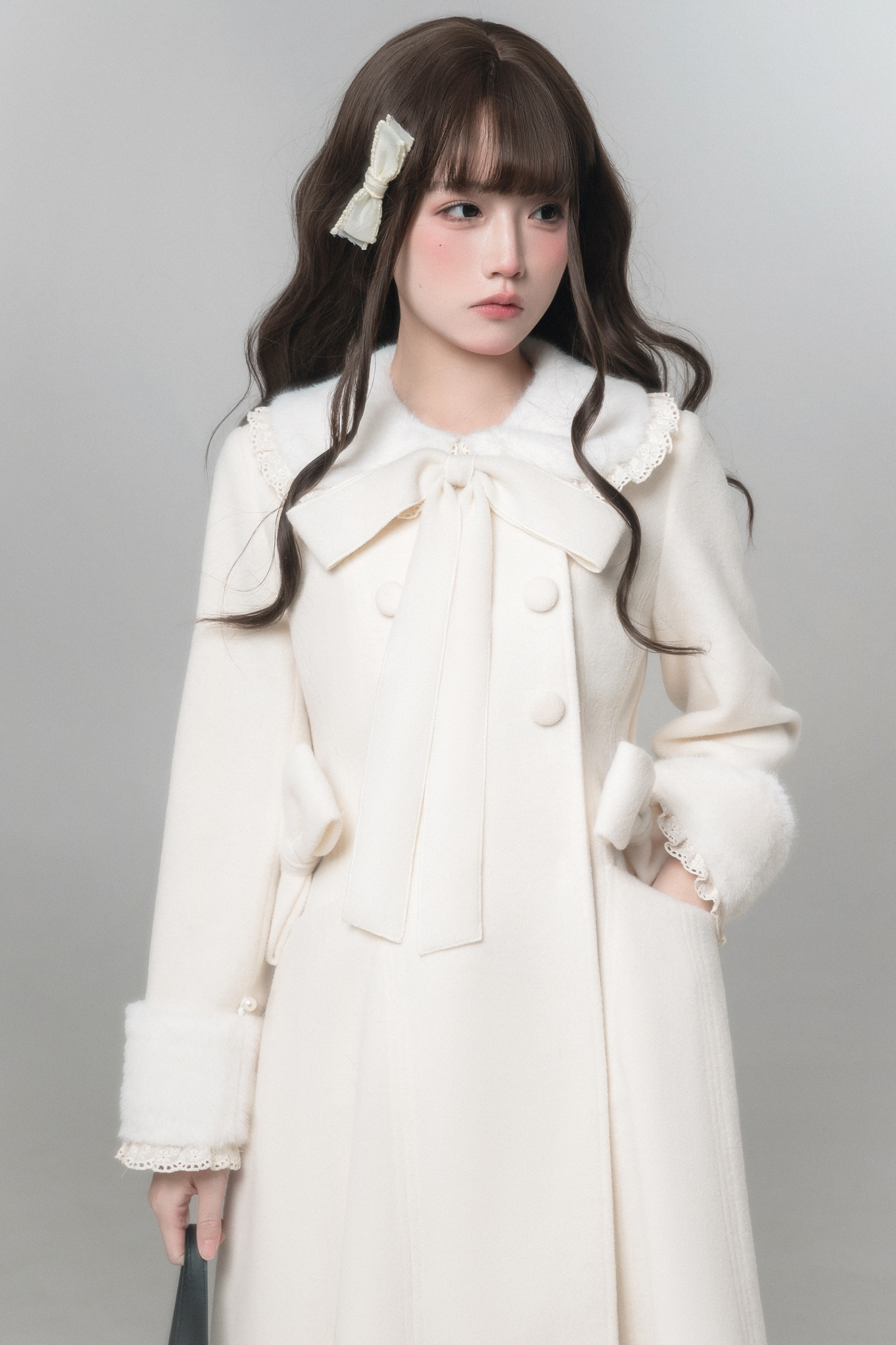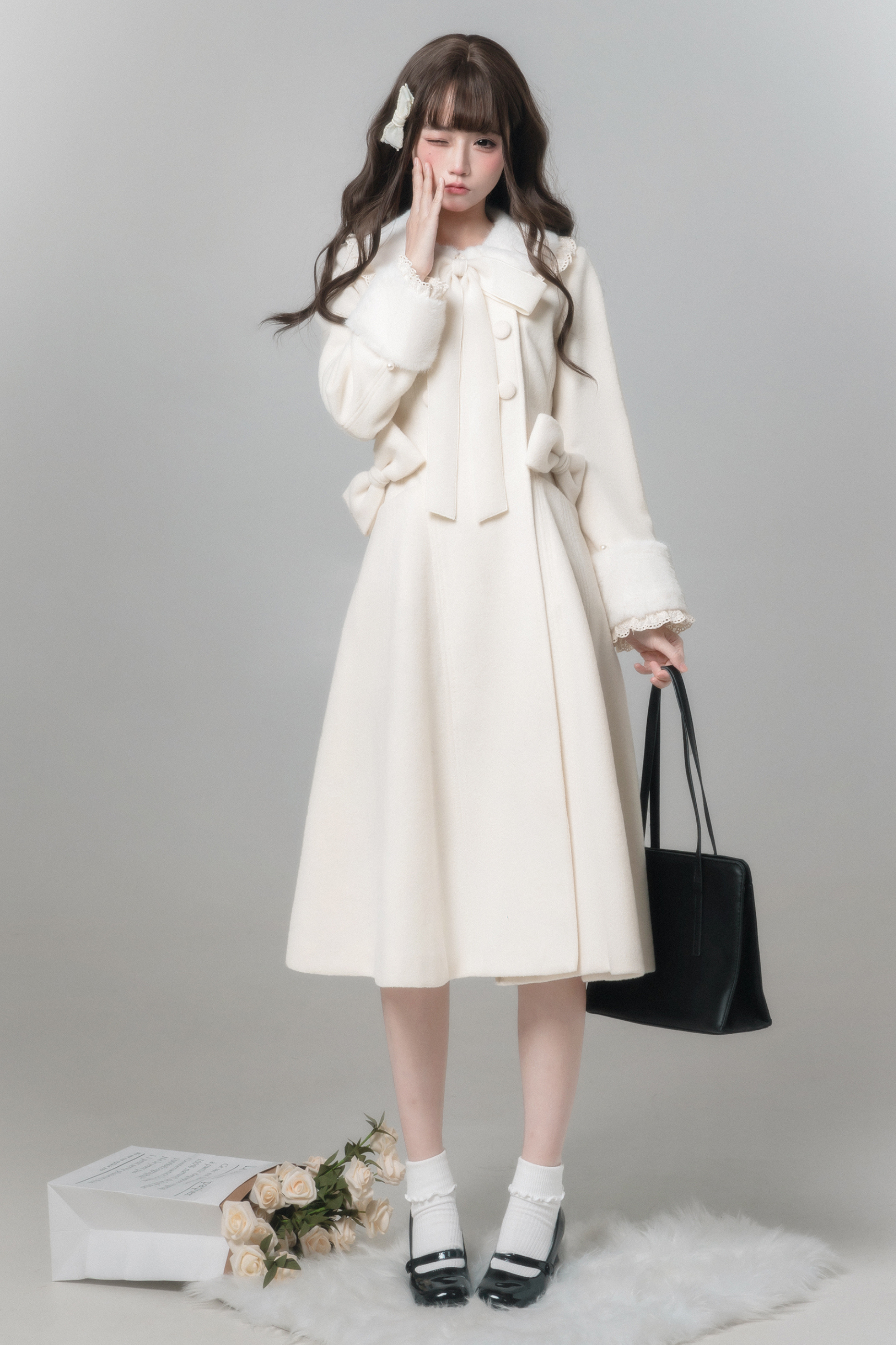 ❤ホワイトスノーロングコート+シャツ+スカート❤