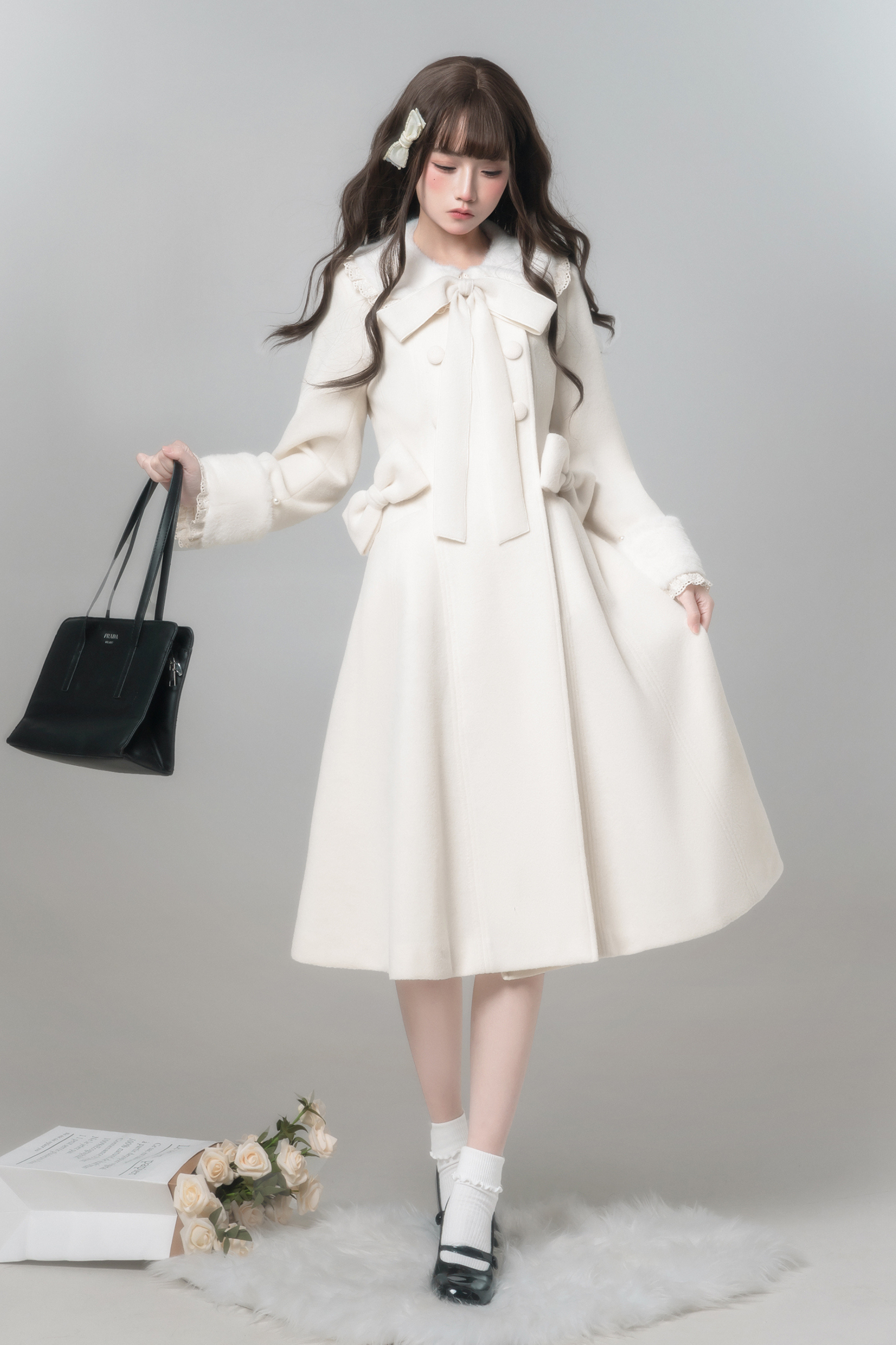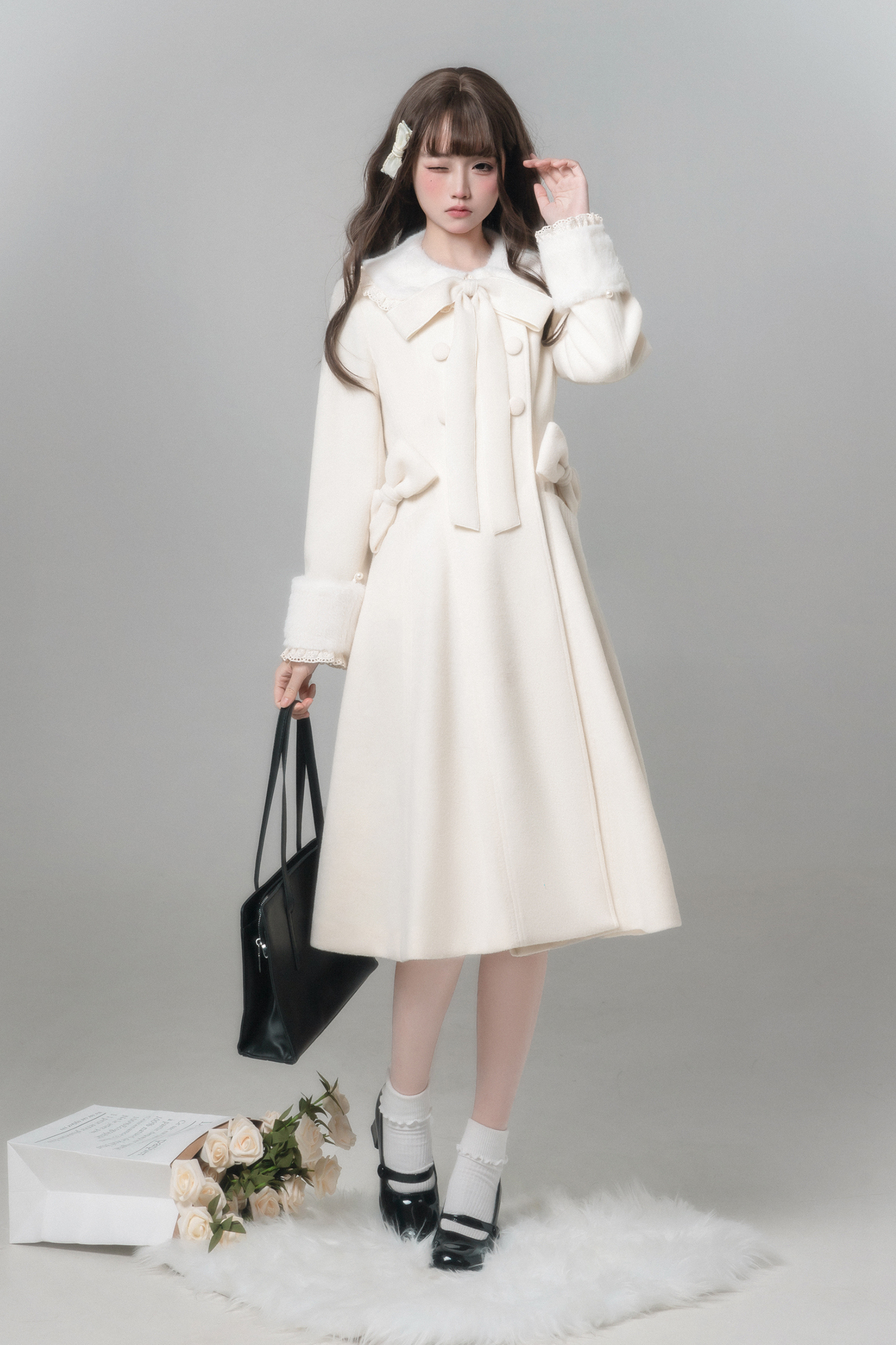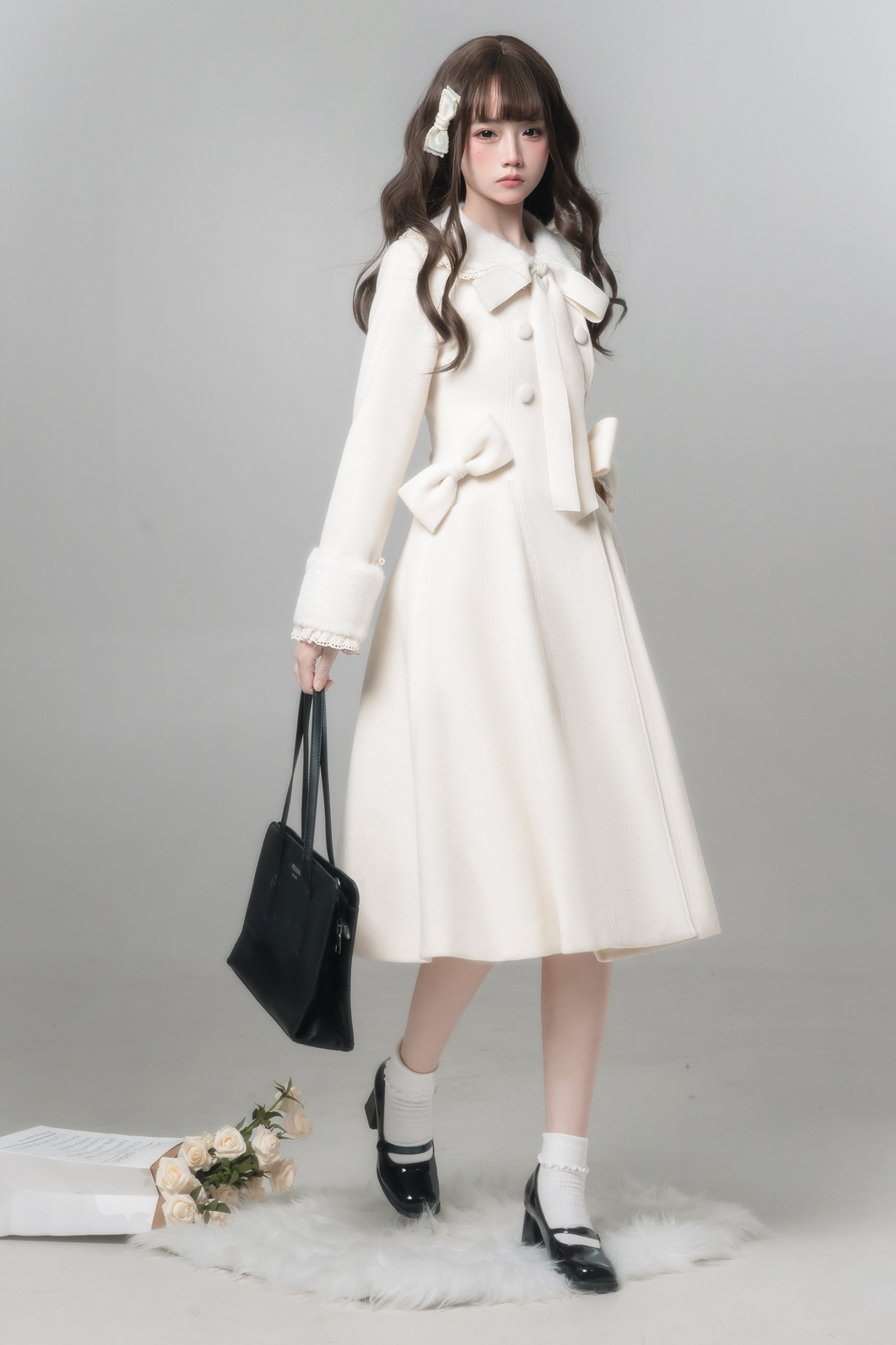 ❤ホワイトスノーロングコート+シャツ+スカート❤