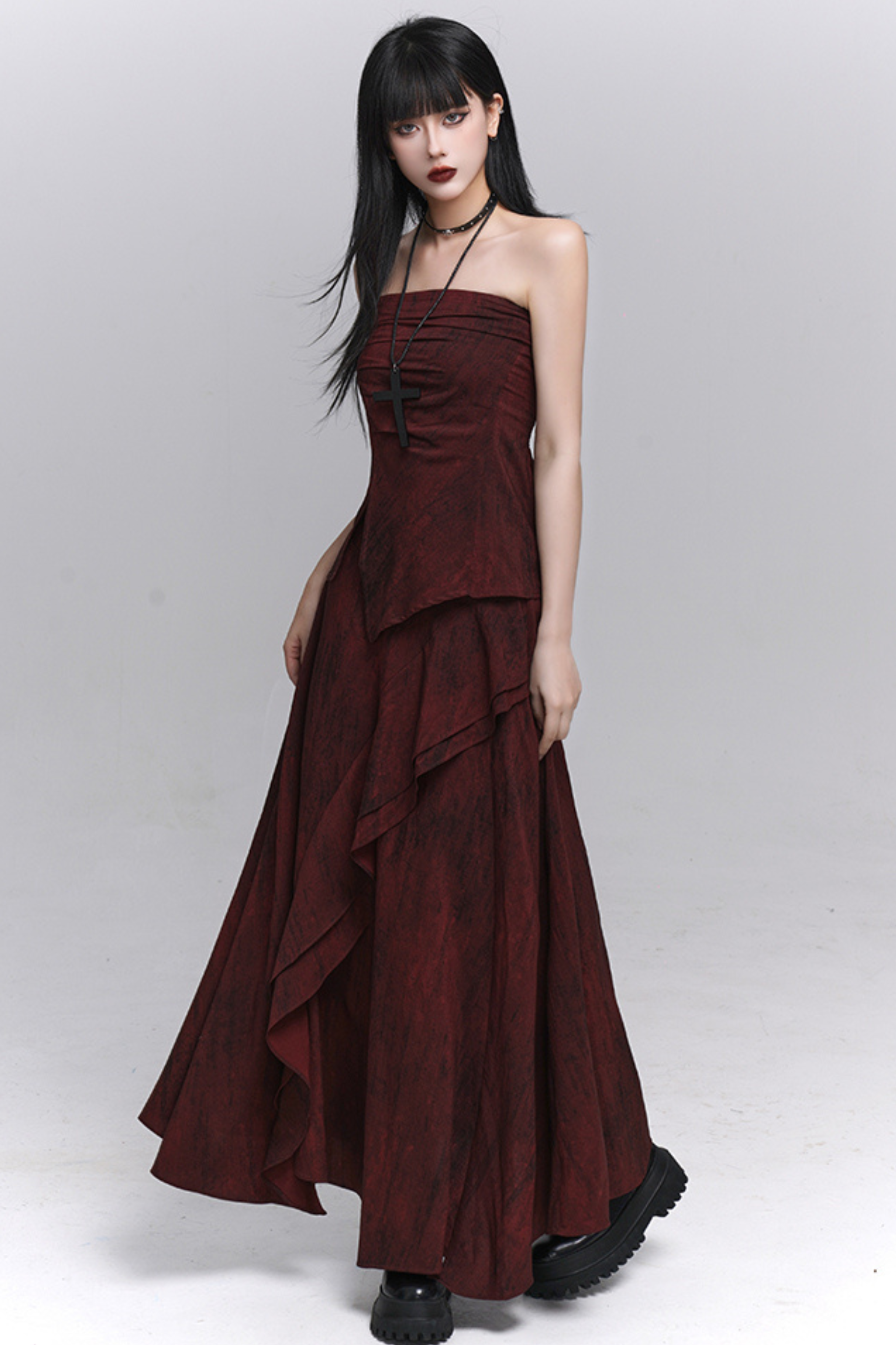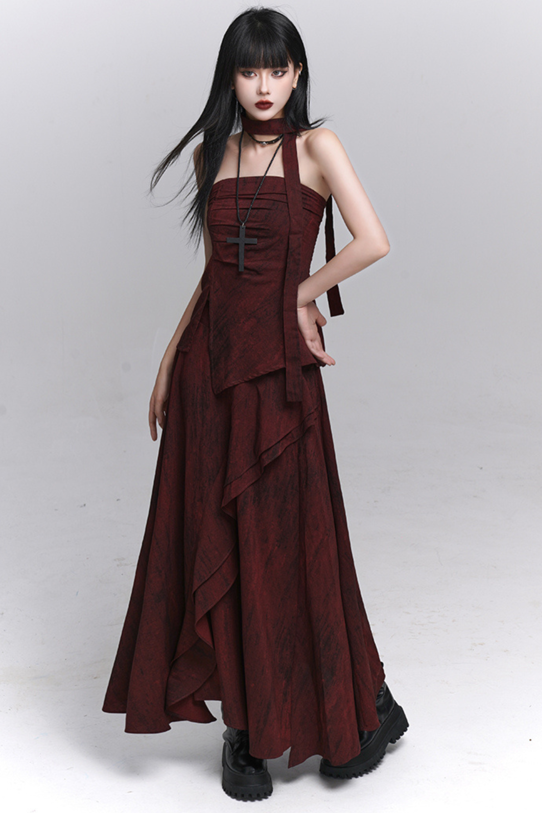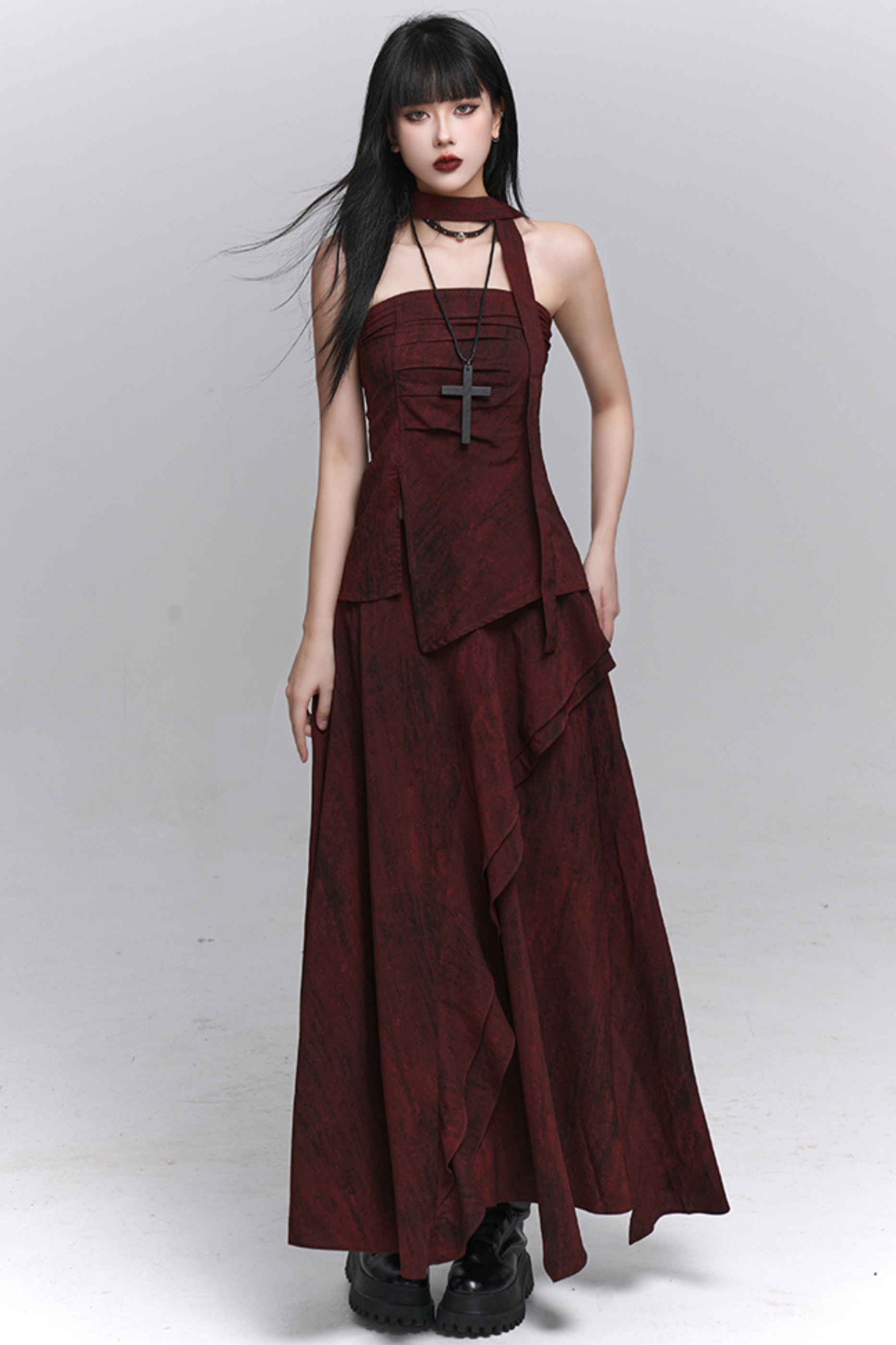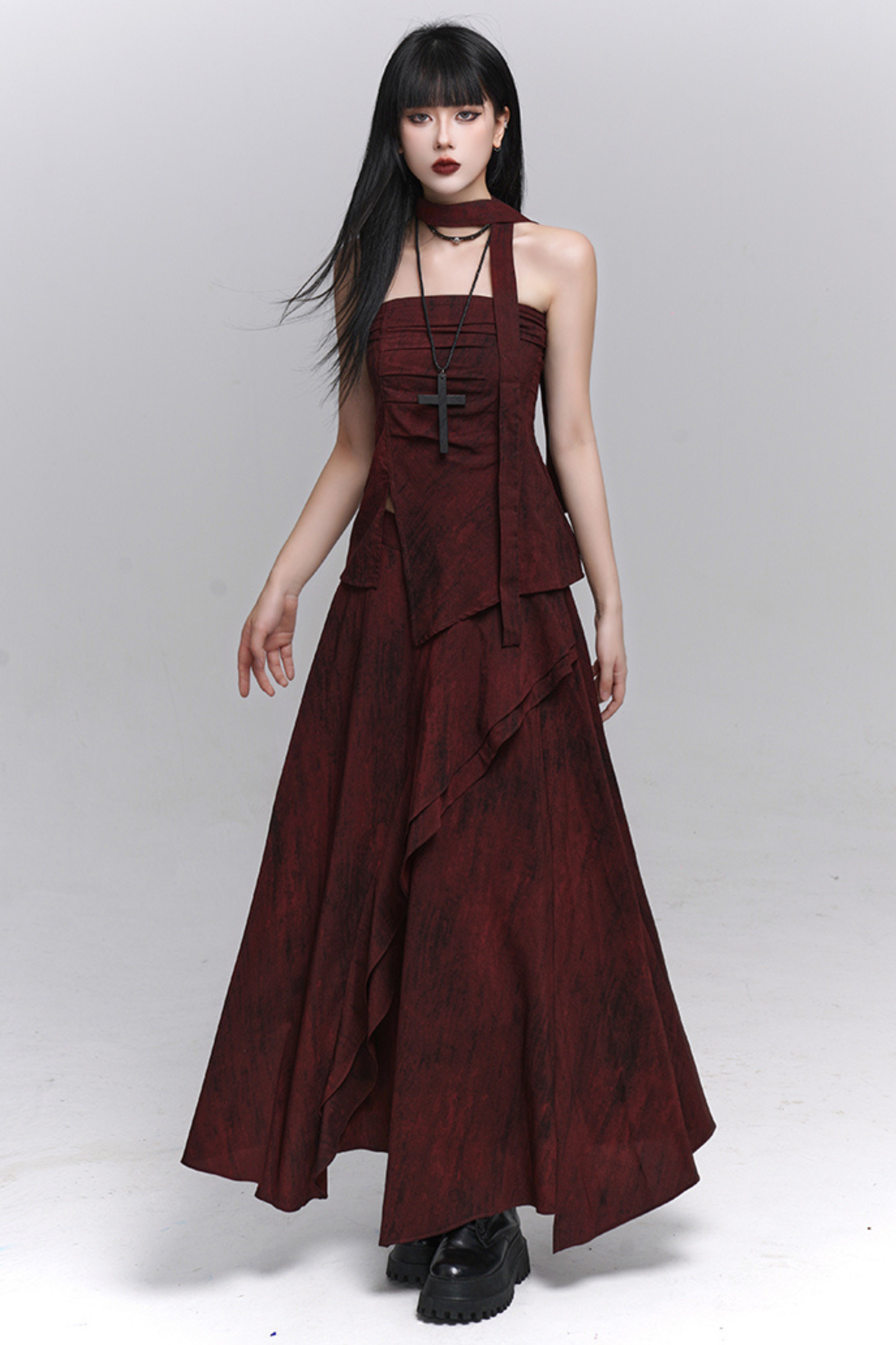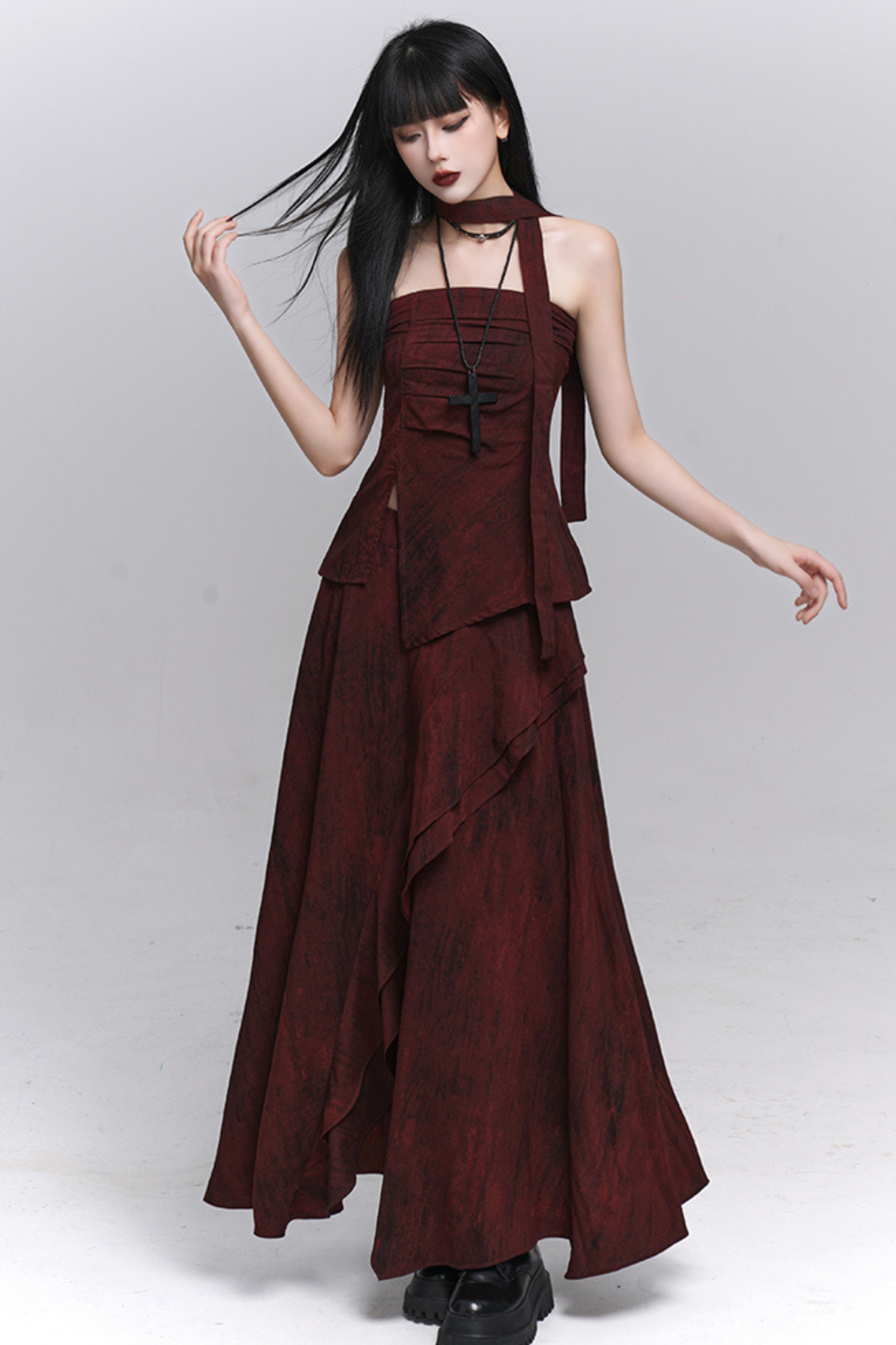 ダークレッドバンドゥ+ロングスカート