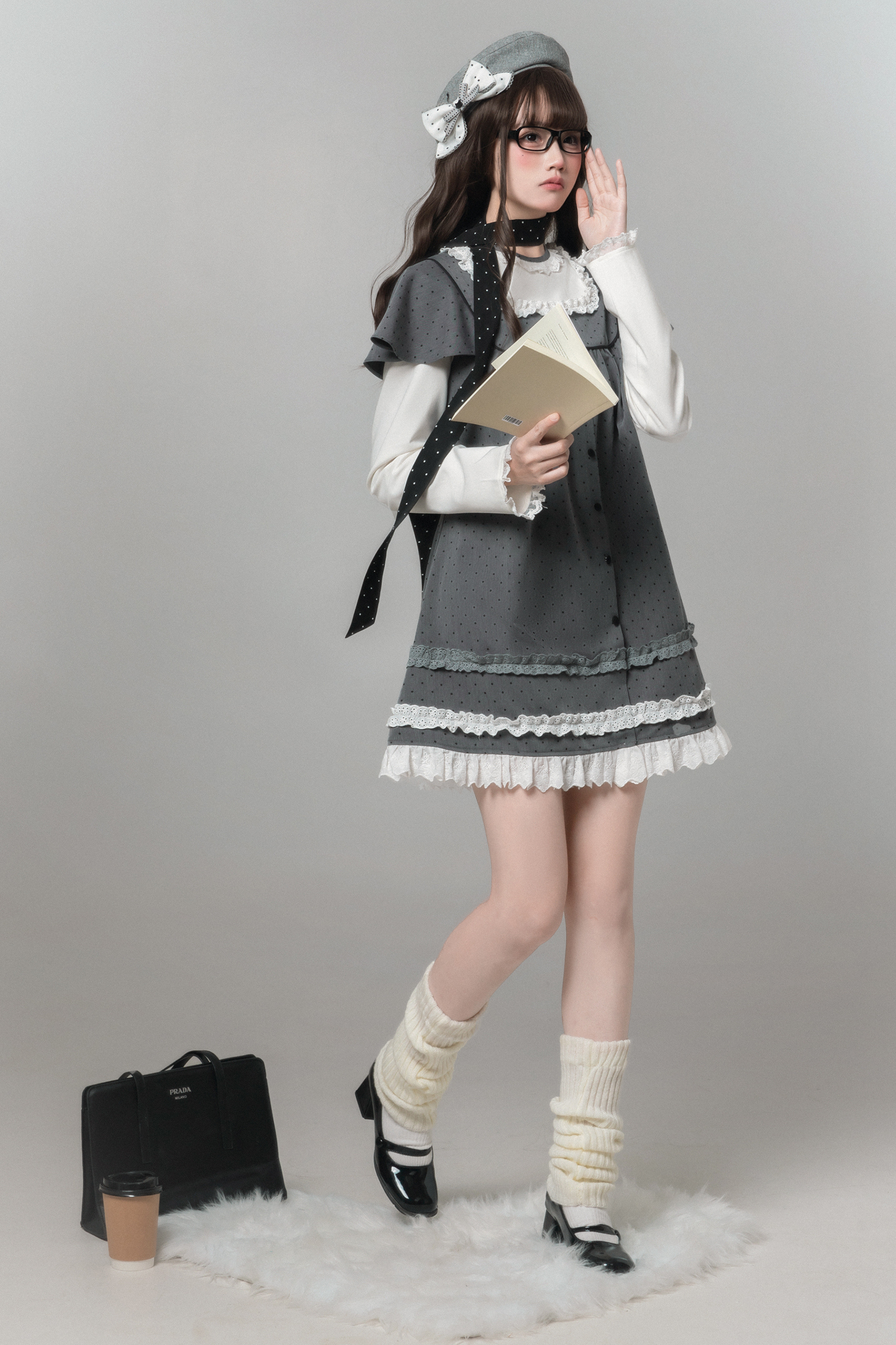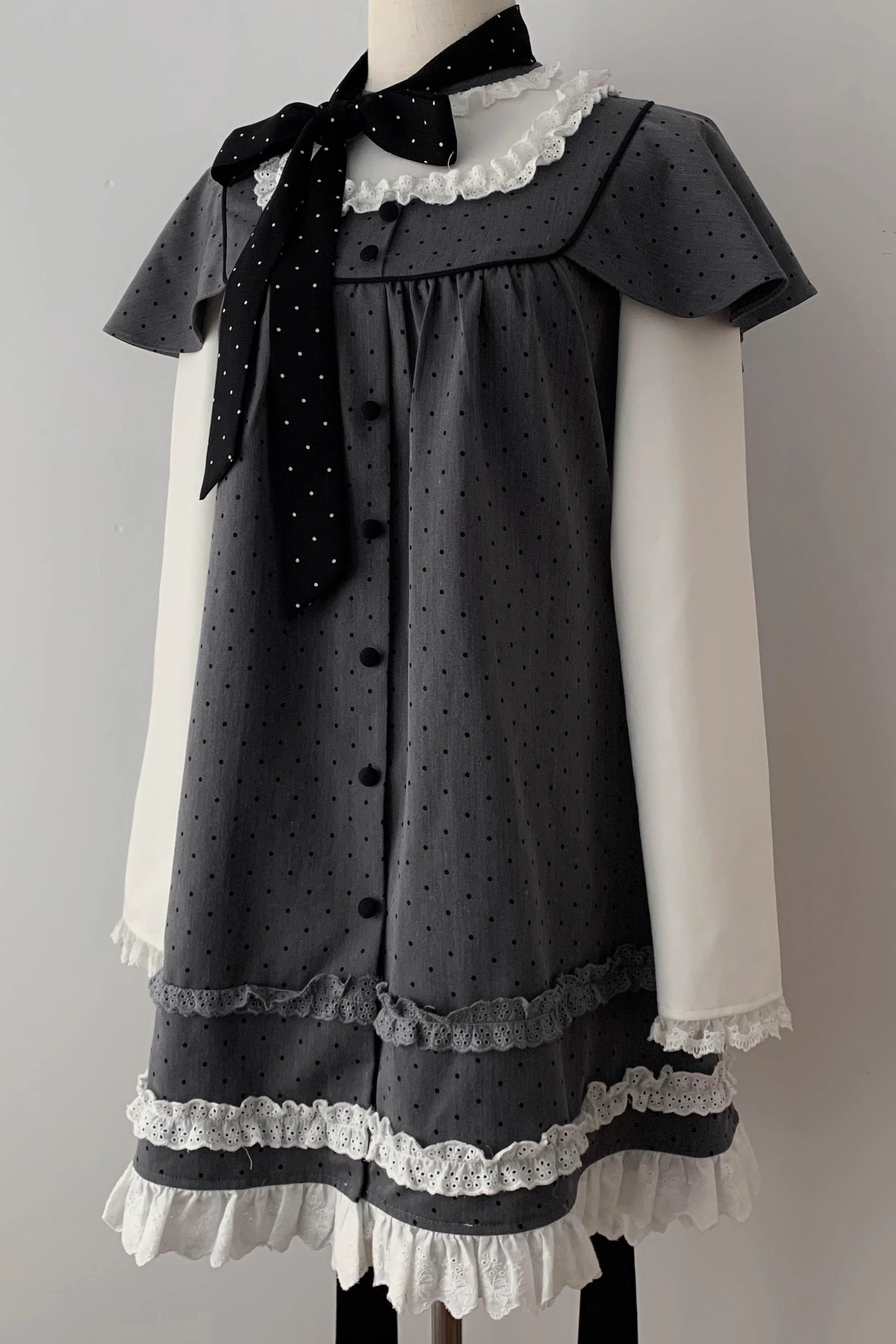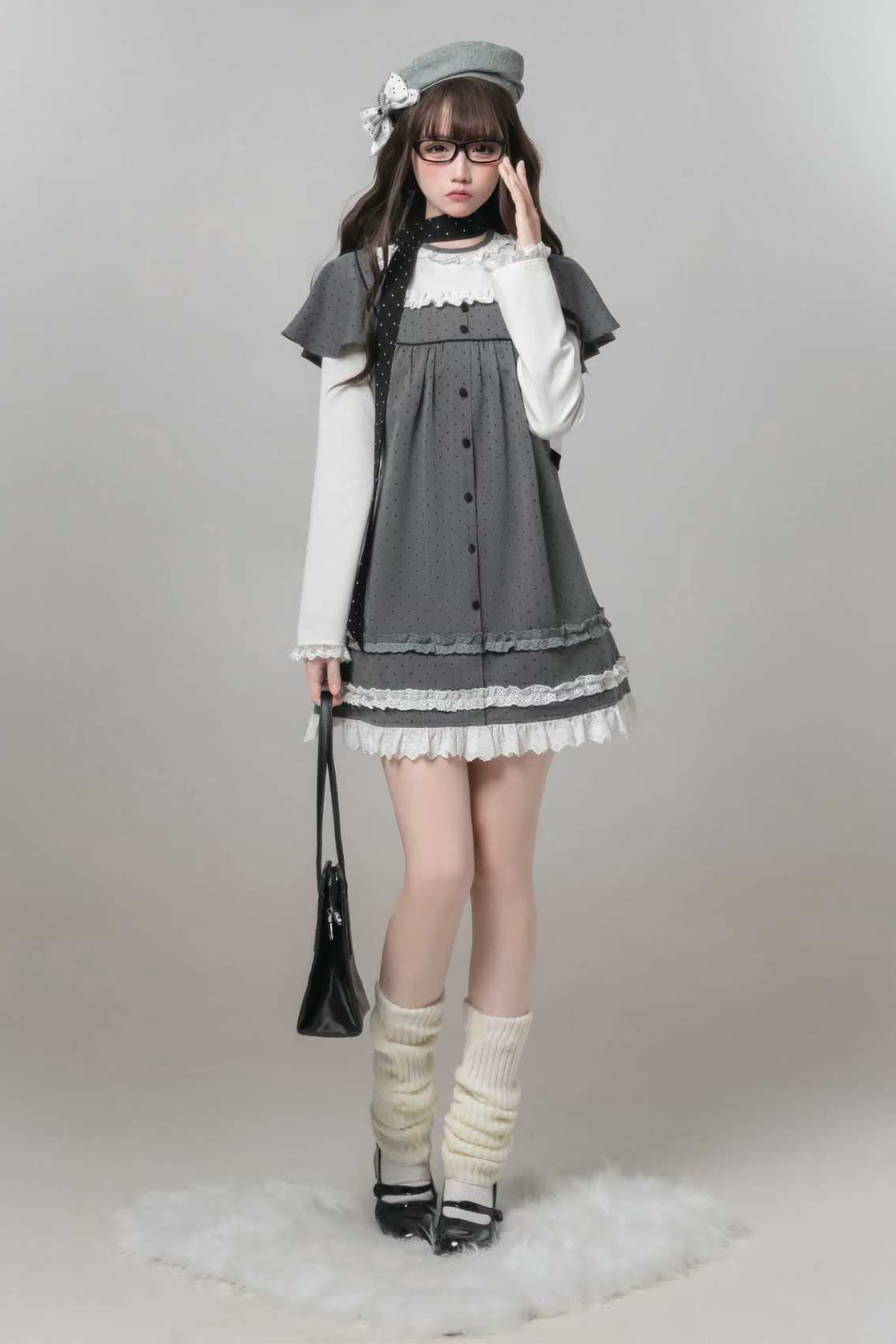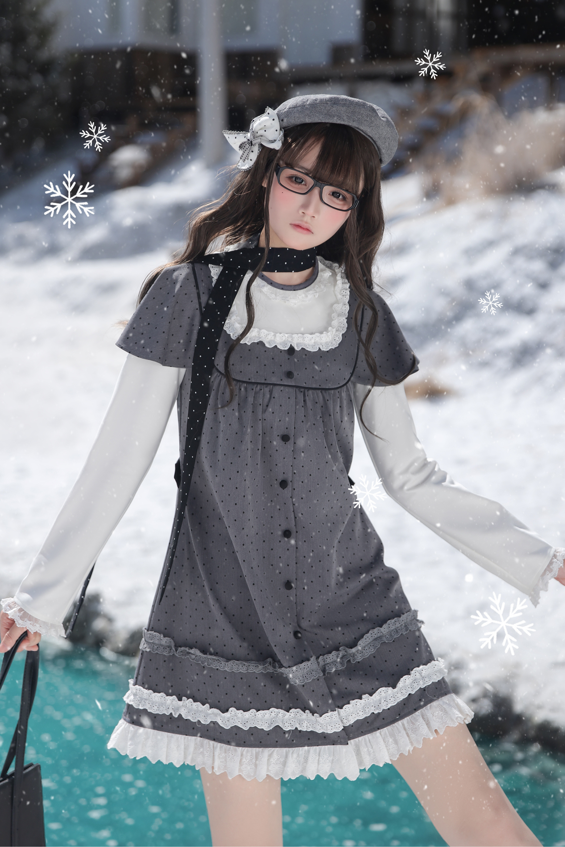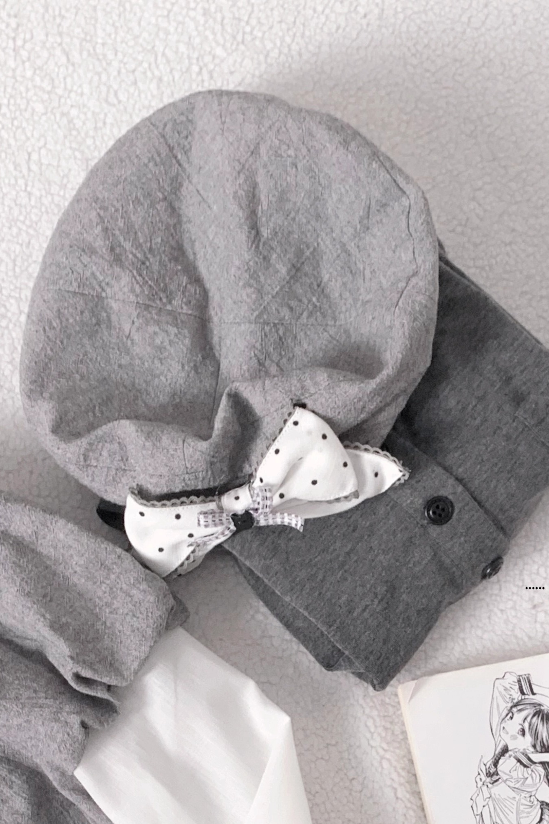 ❤グレイポルカドットドールドレス+ベレー帽❤
