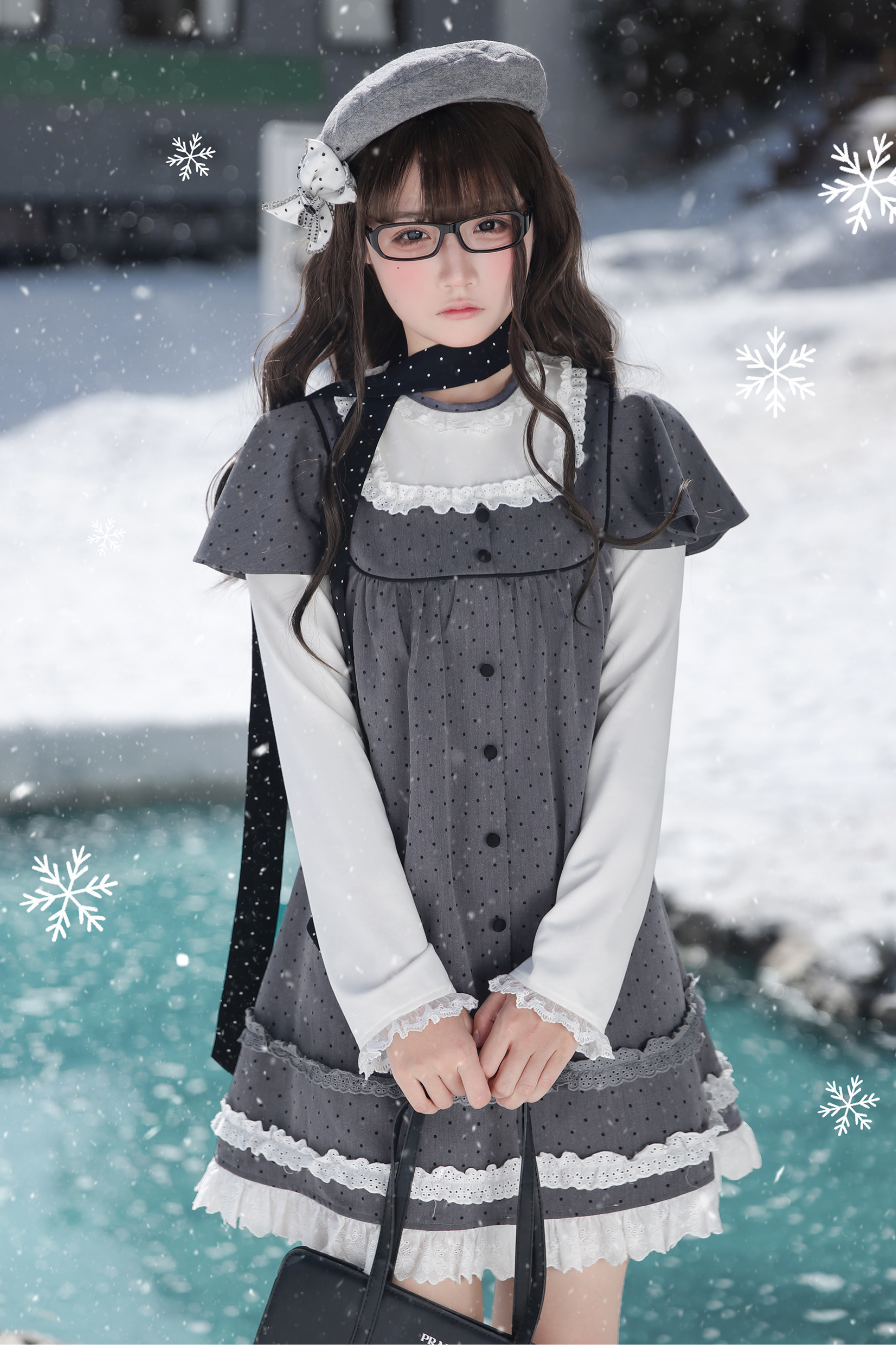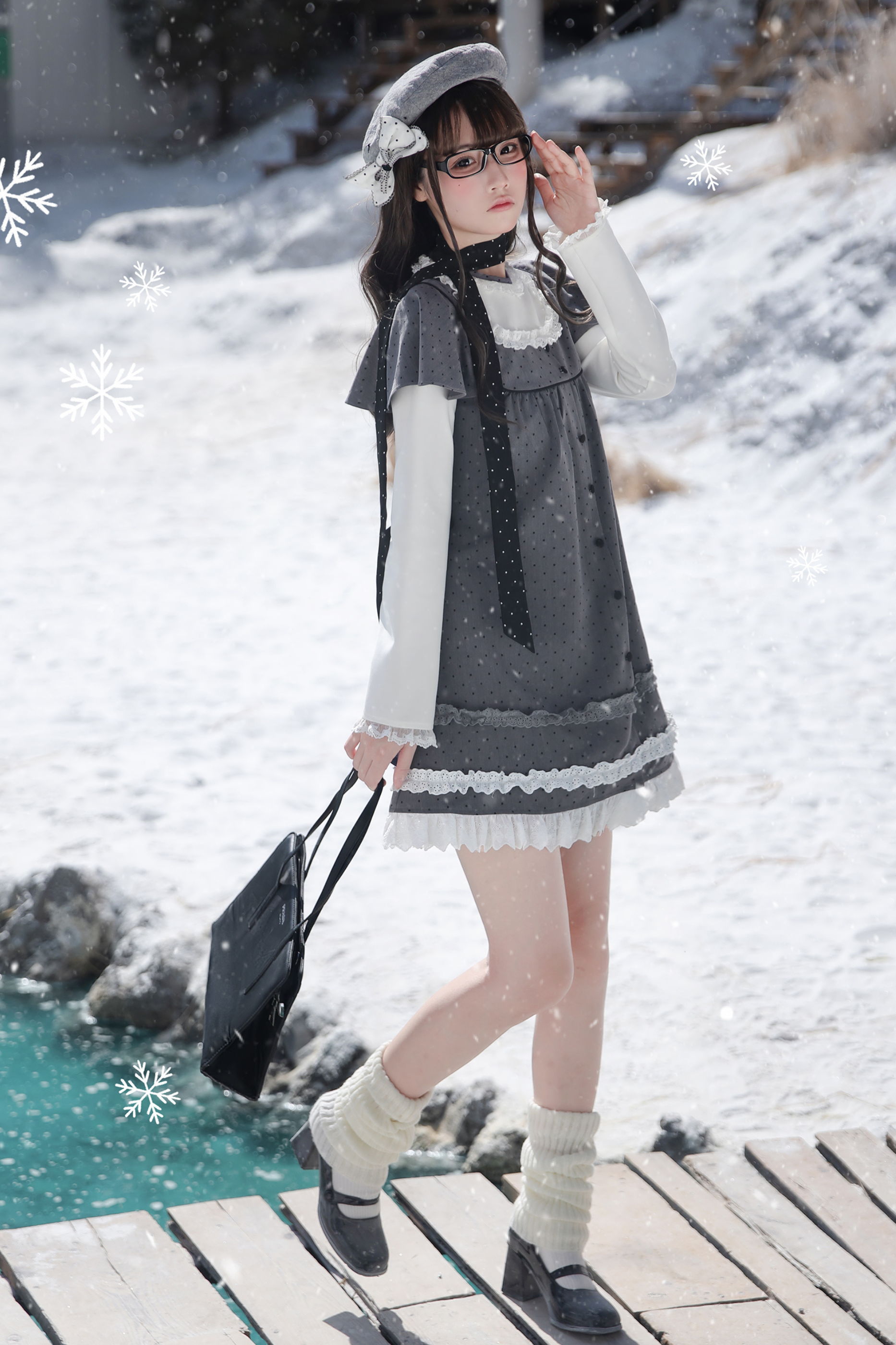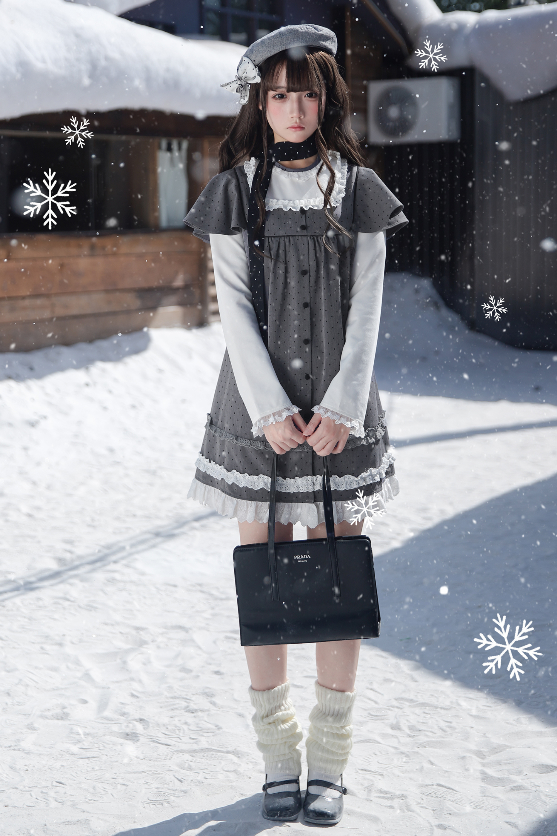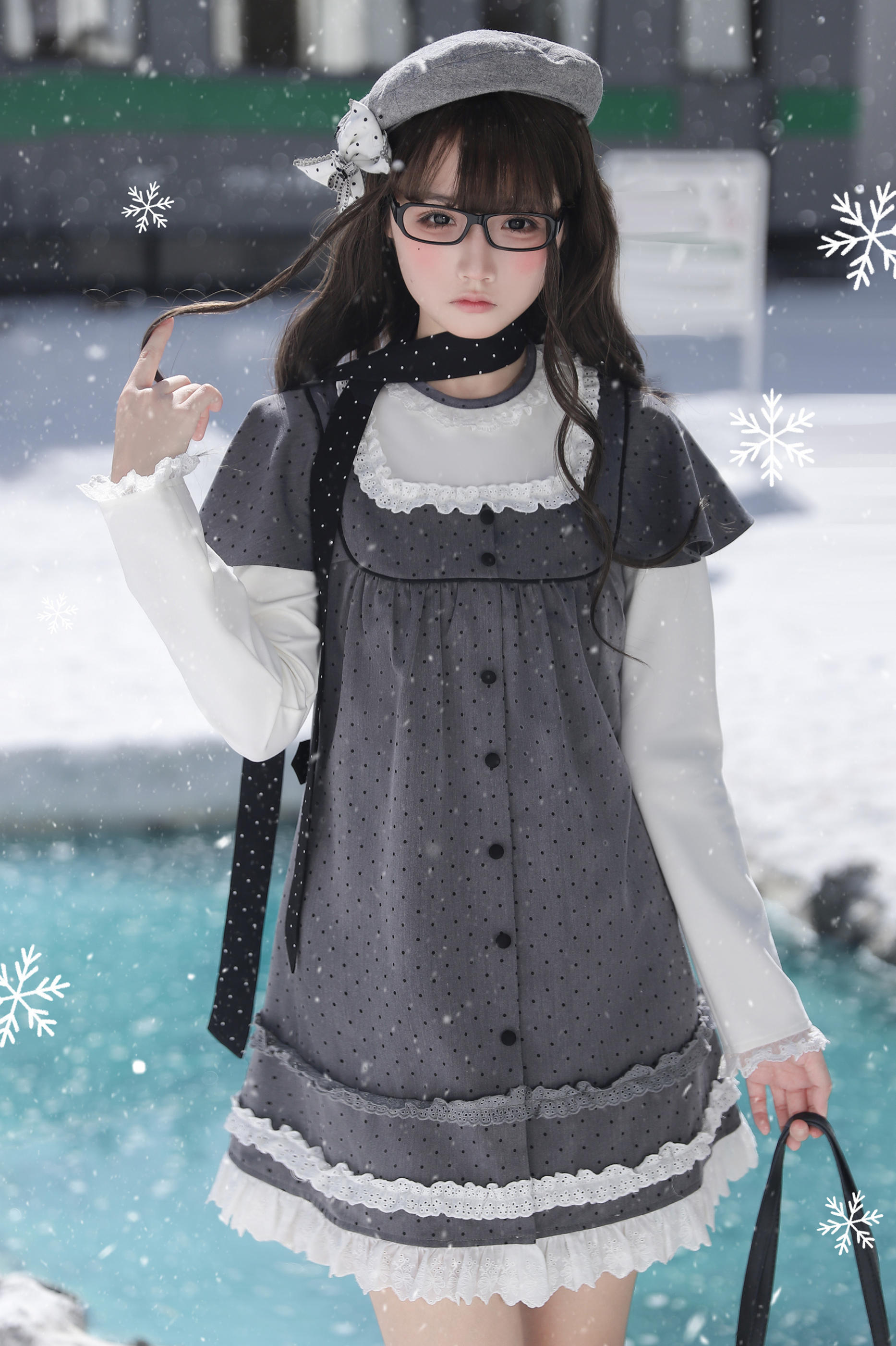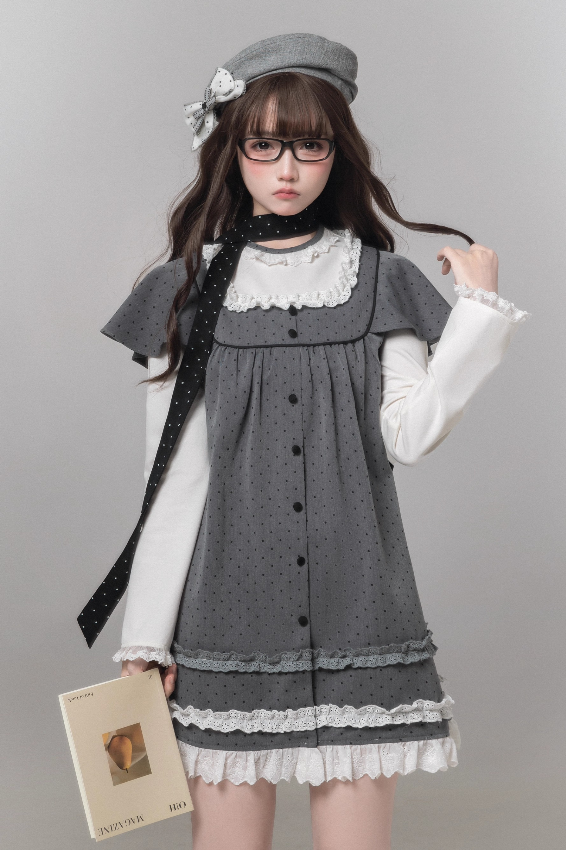 ❤グレイポルカドットドールドレス+ベレー帽❤