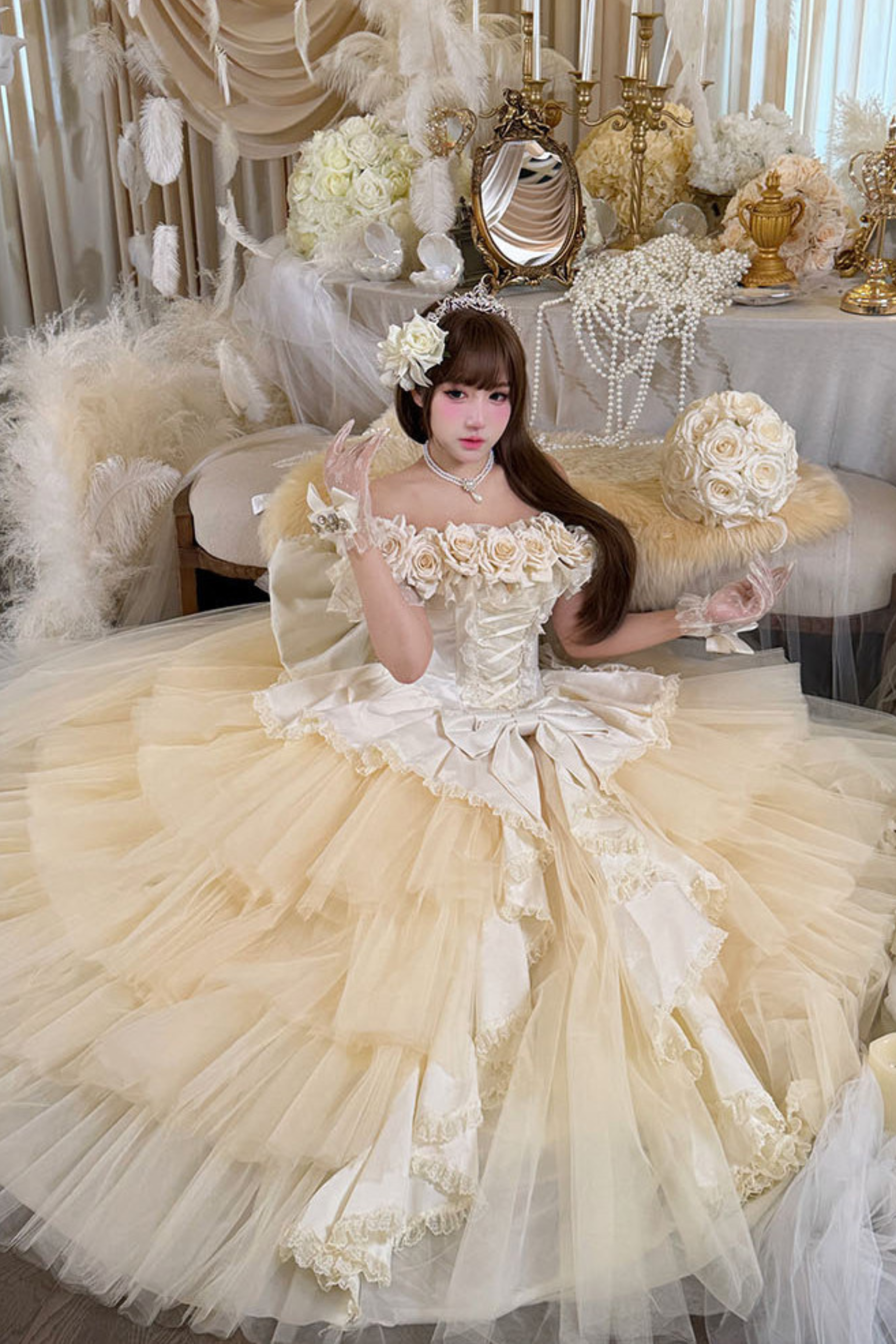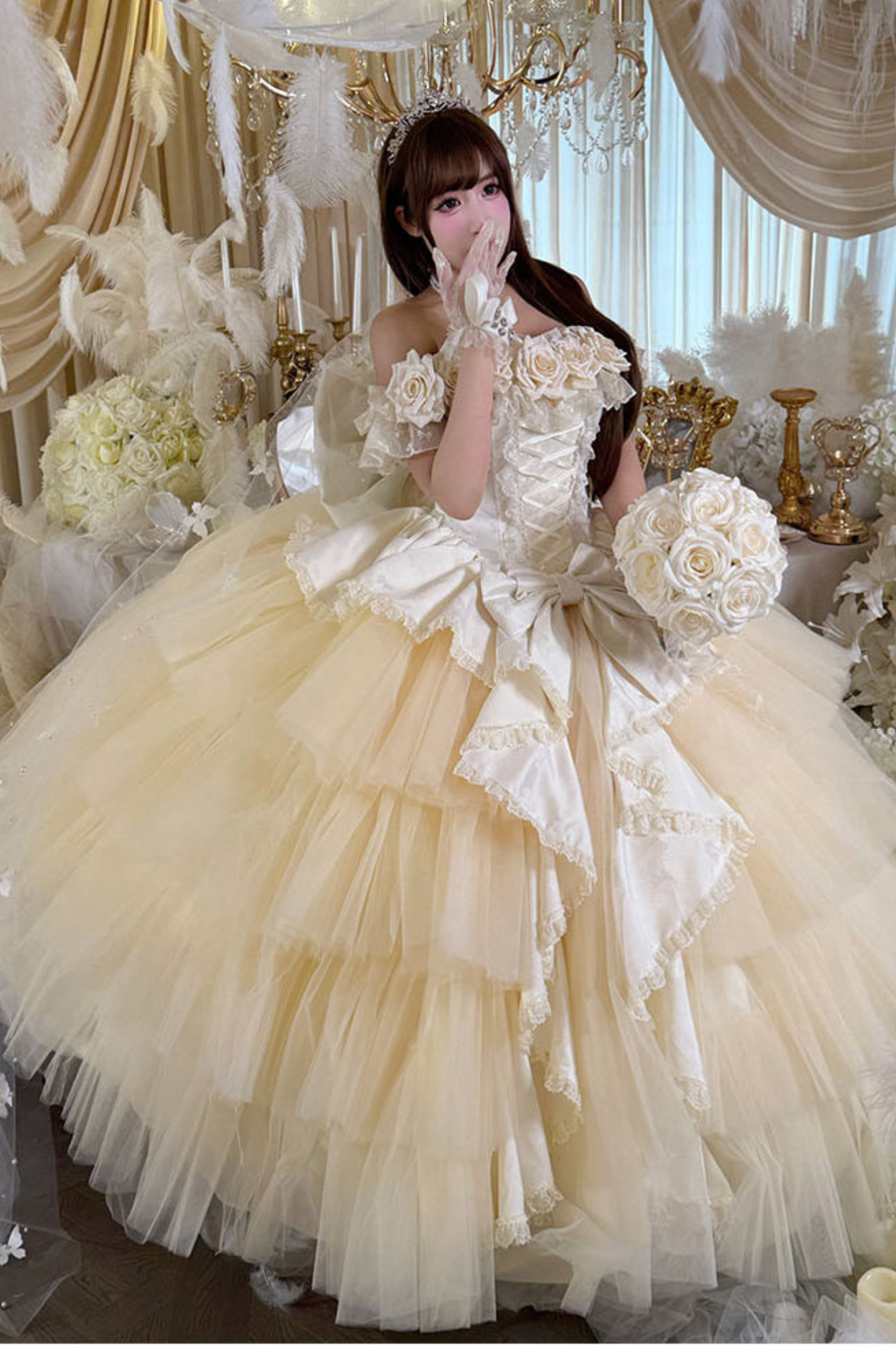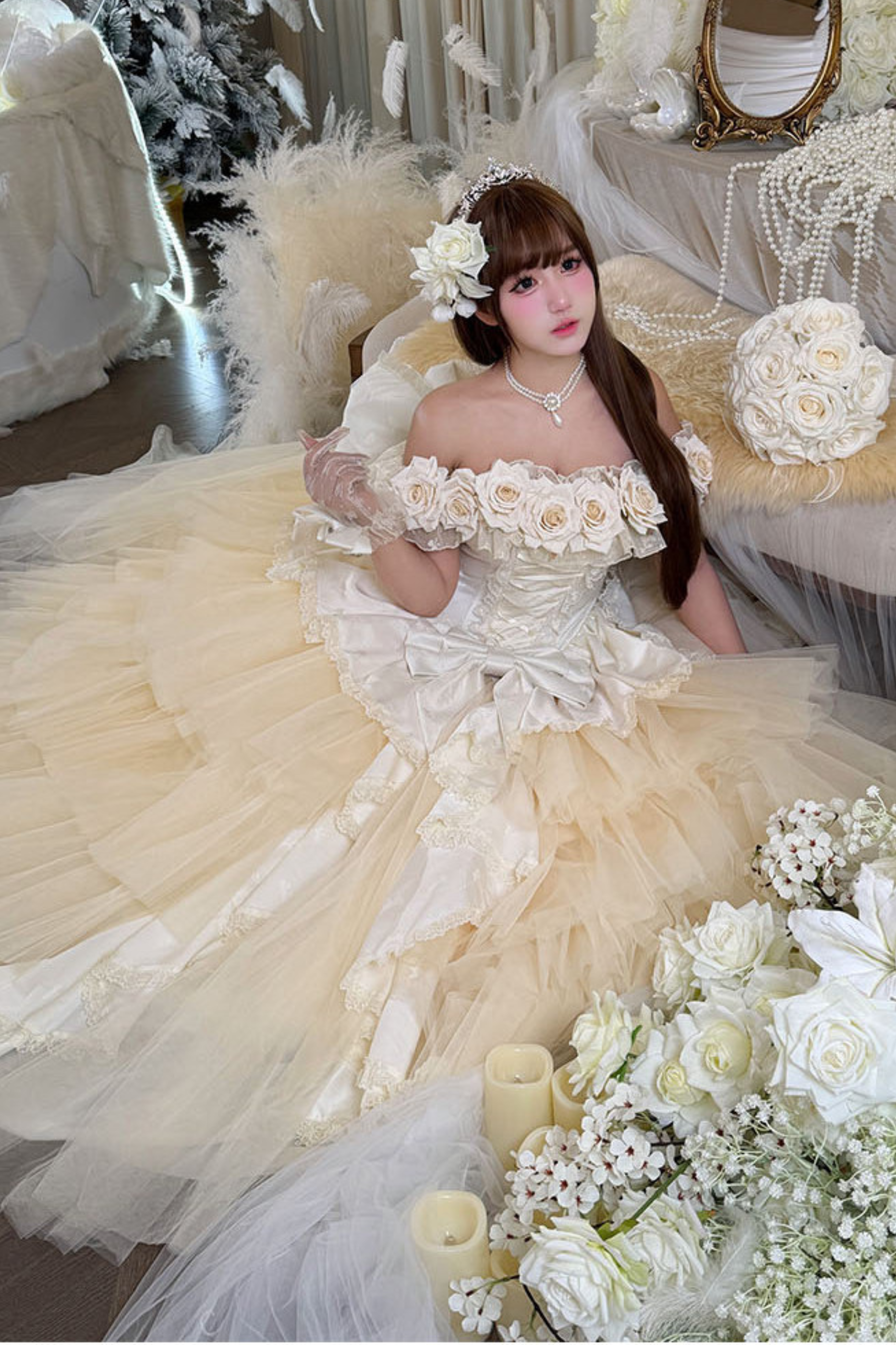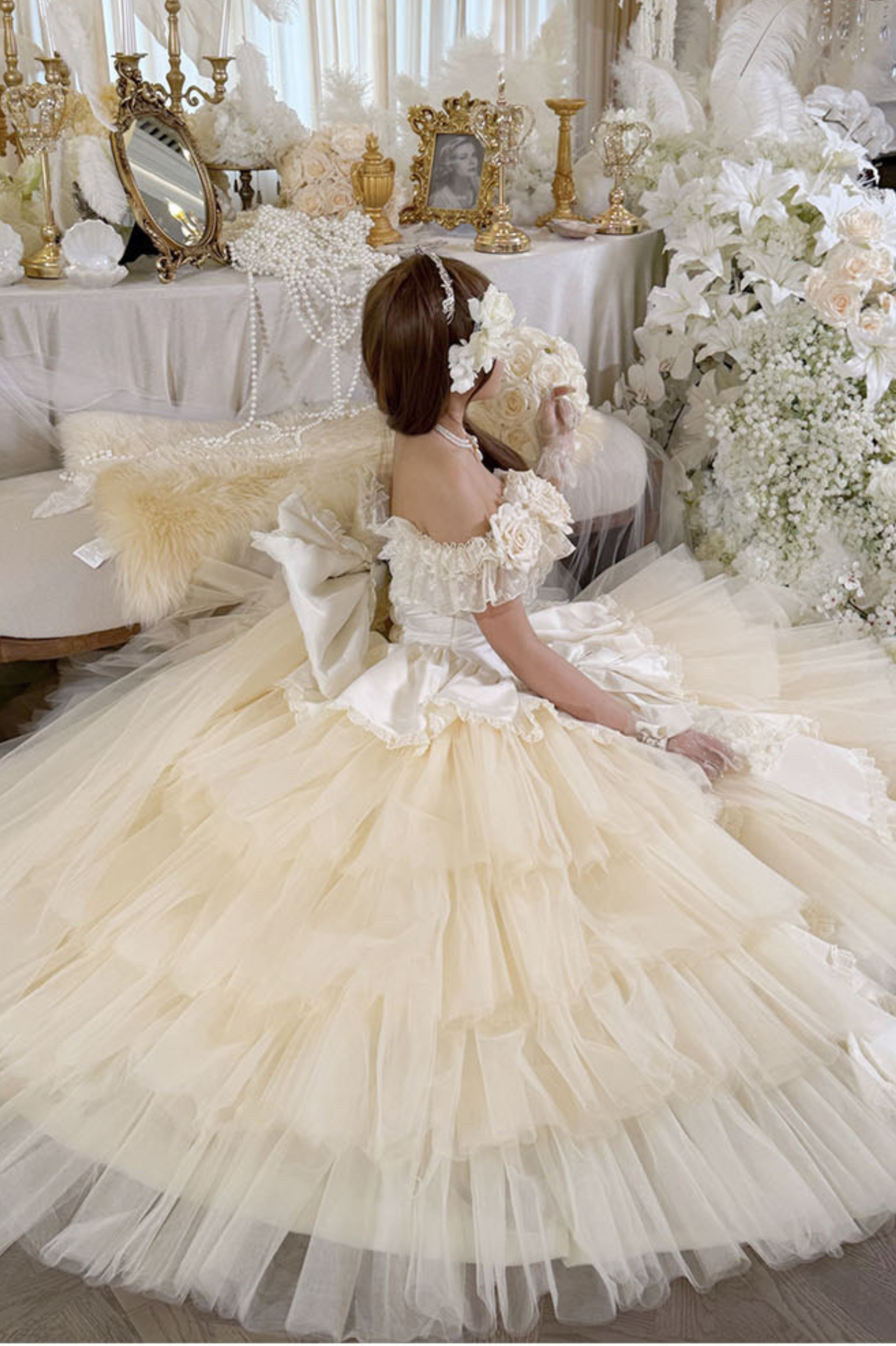 [예약상품] 4월 4일 예약마감]애프리콧 웨딩 로리타 원피스+숄+소매+리본 테일+베일
