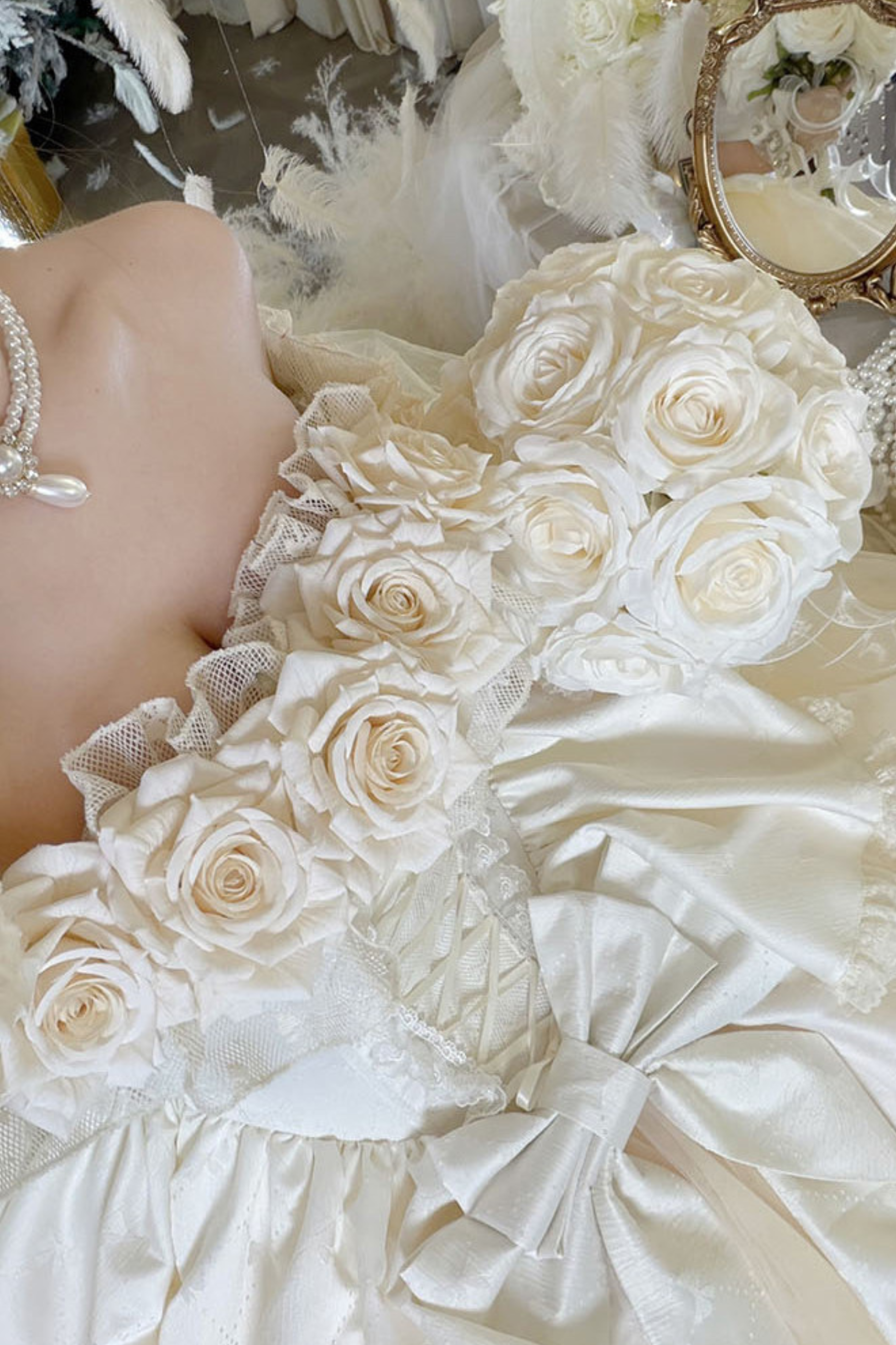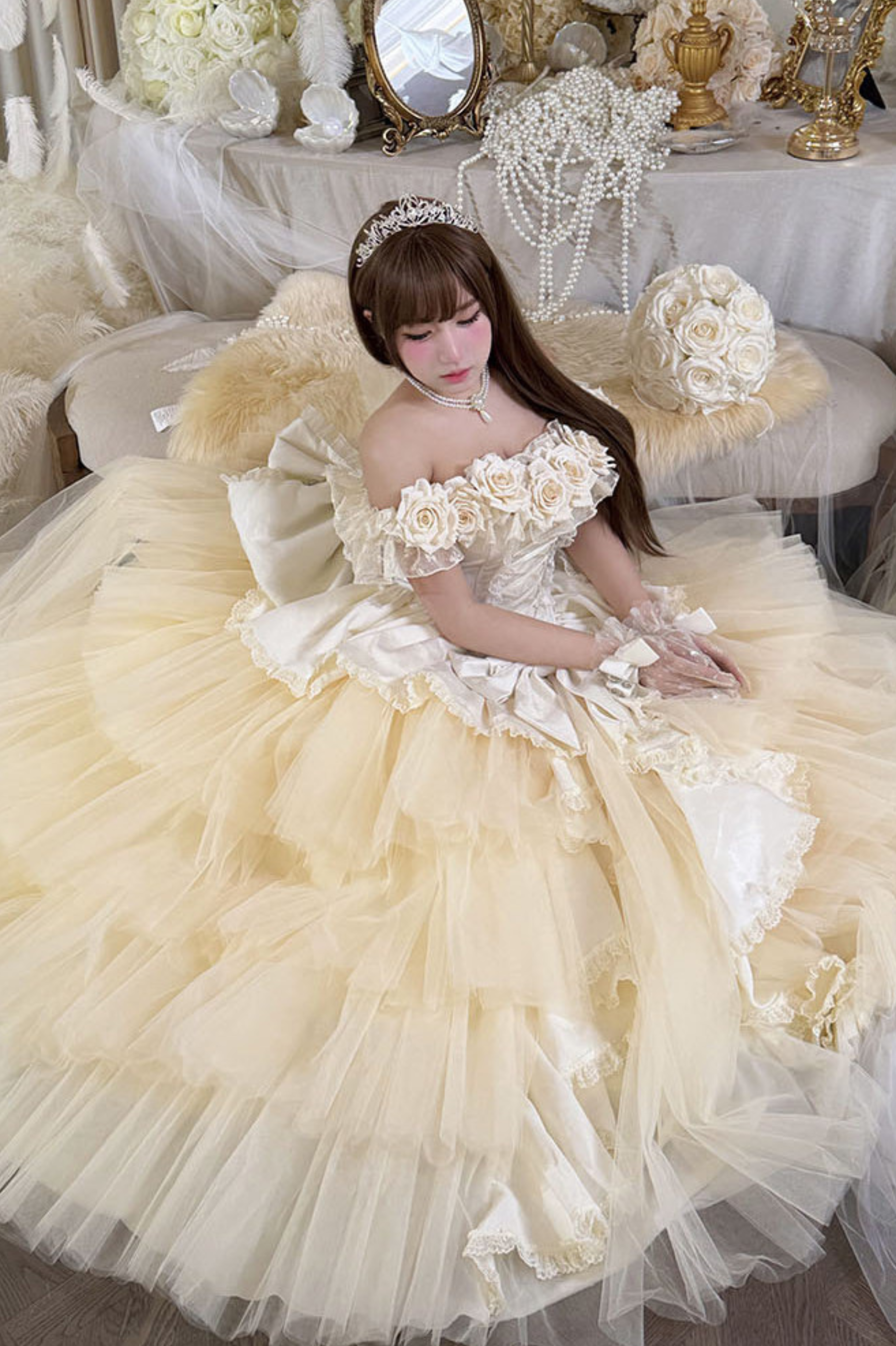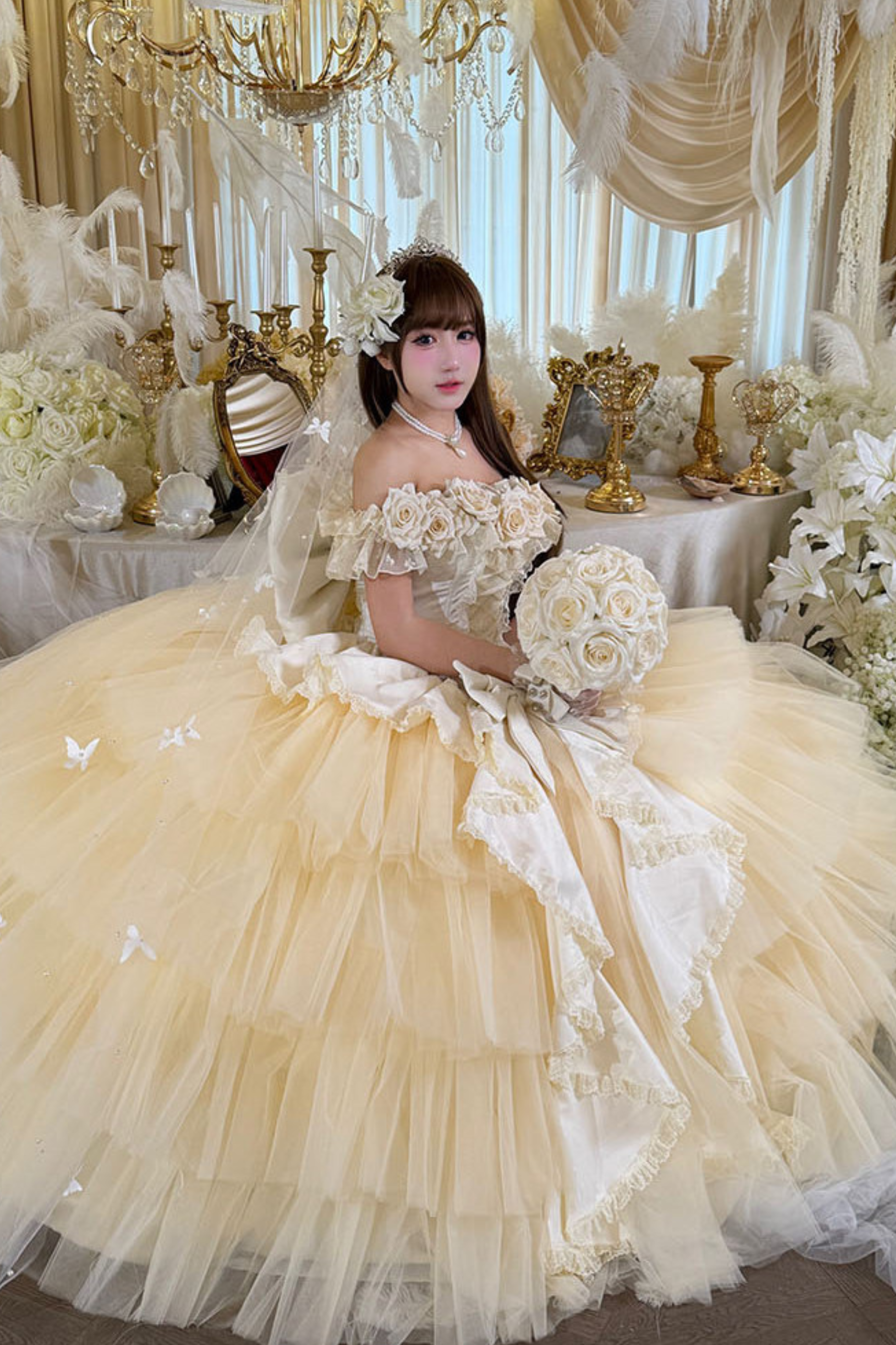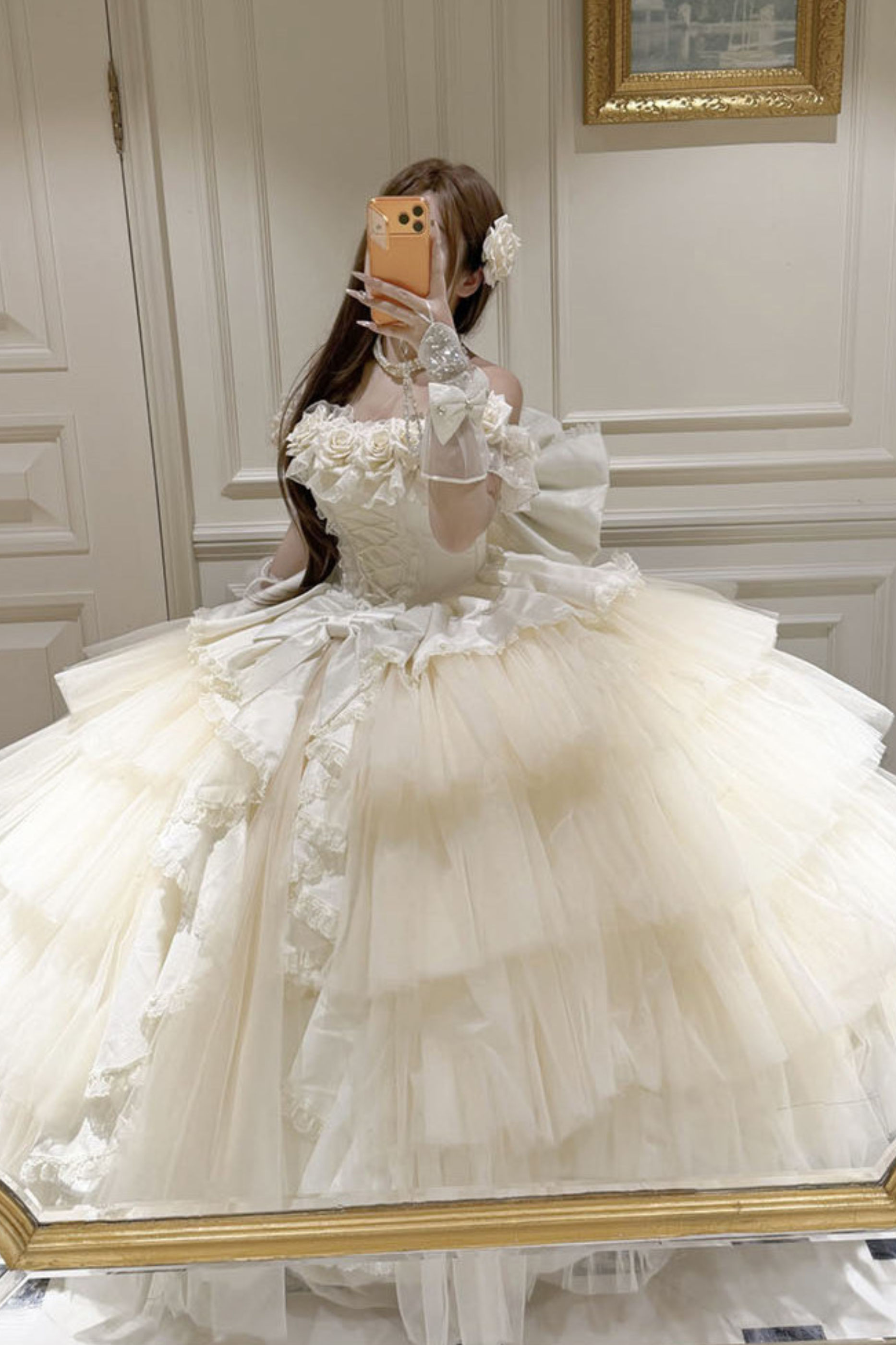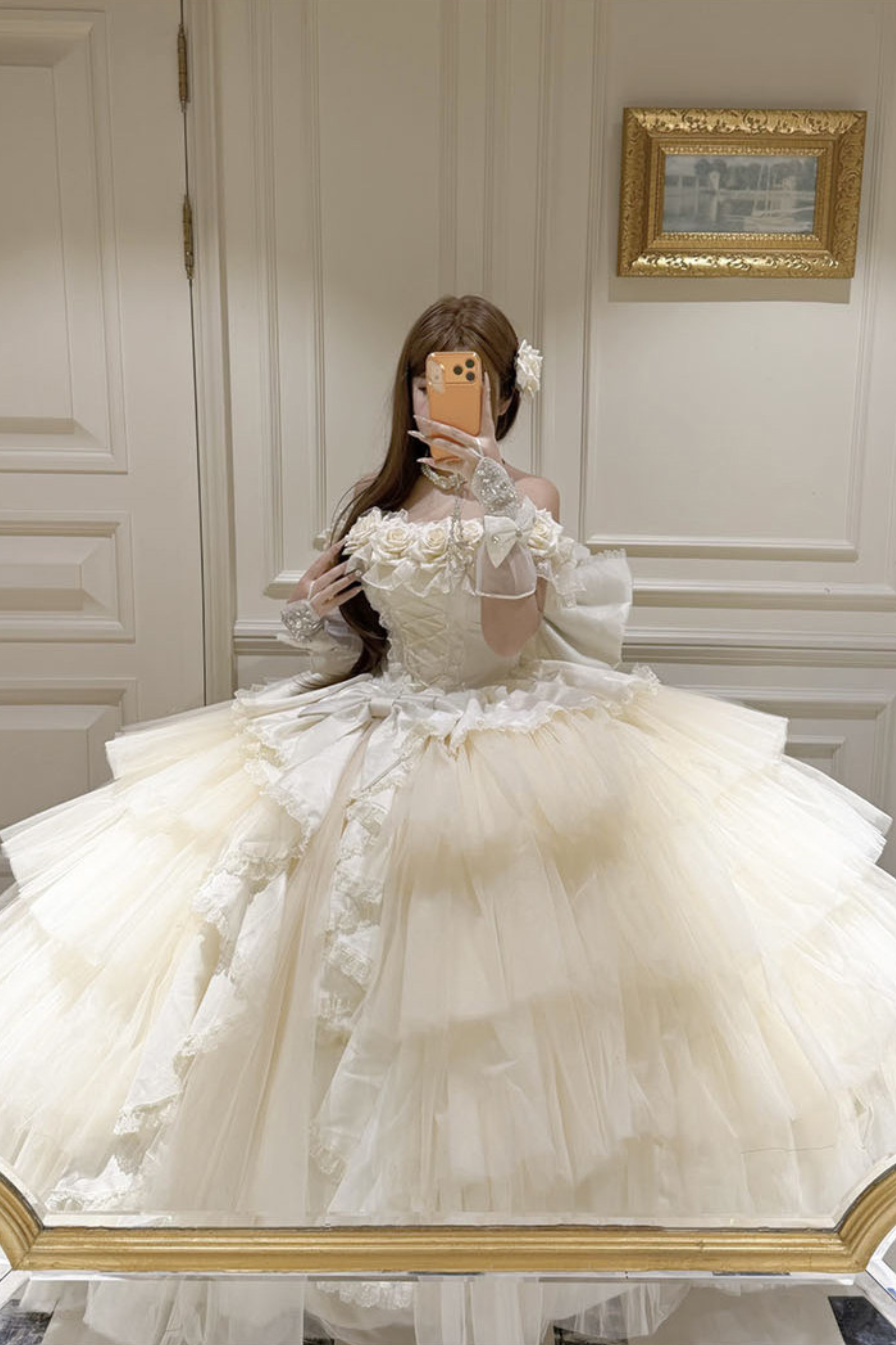 [예약상품] 4월 4일 예약마감]애프리콧 웨딩 로리타 원피스+숄+소매+리본 테일+베일