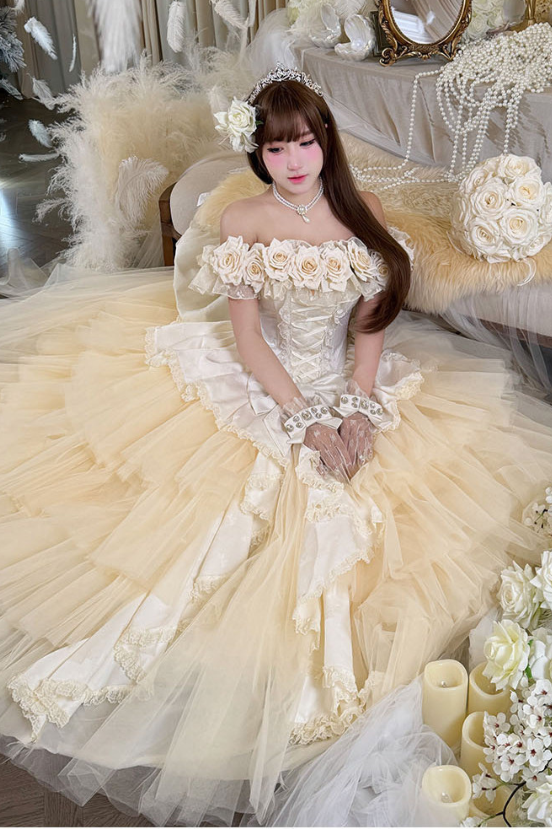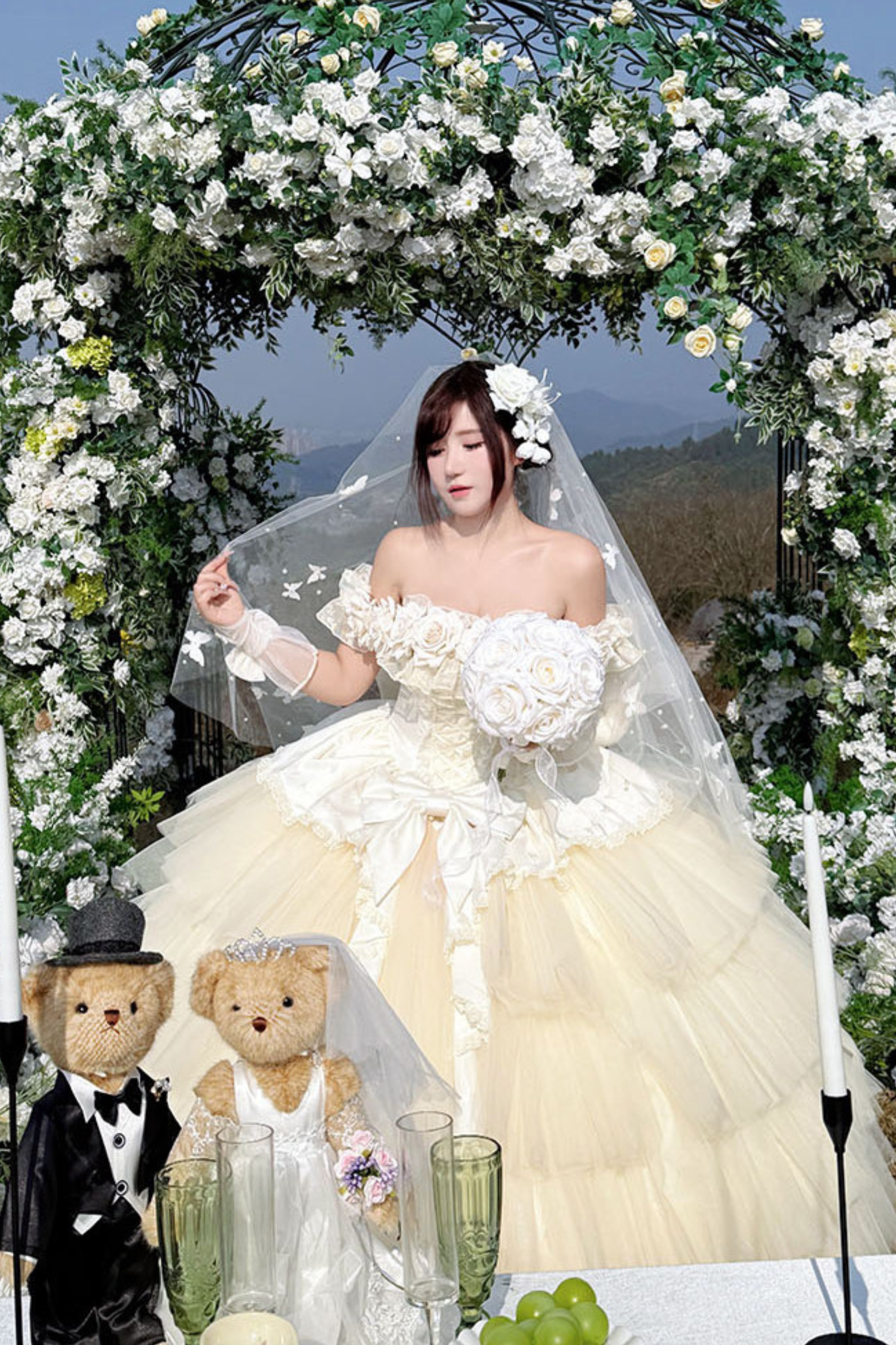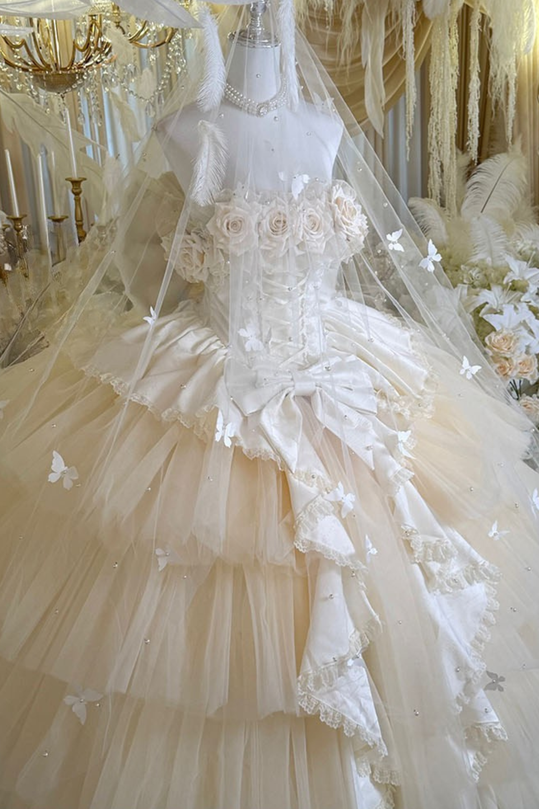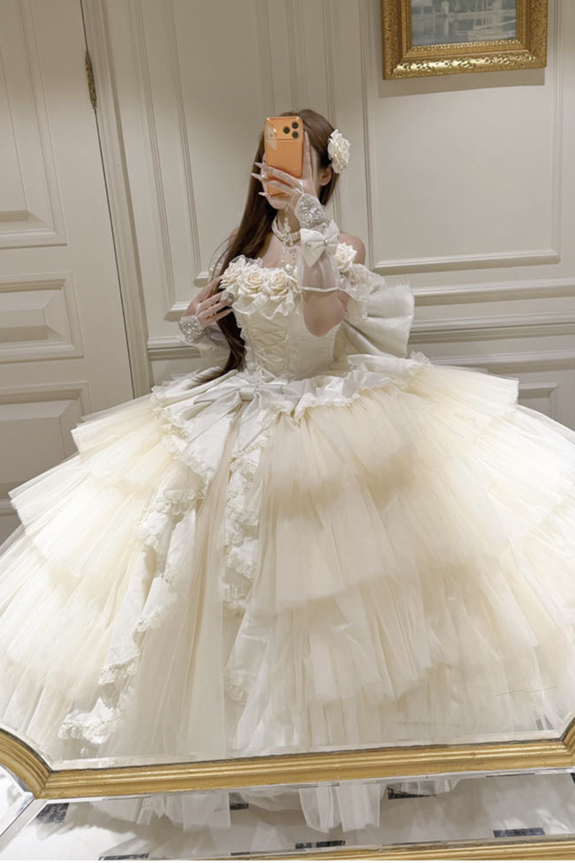 [예약상품] 4월 4일 예약마감]애프리콧 웨딩 로리타 원피스+숄+소매+리본 테일+베일