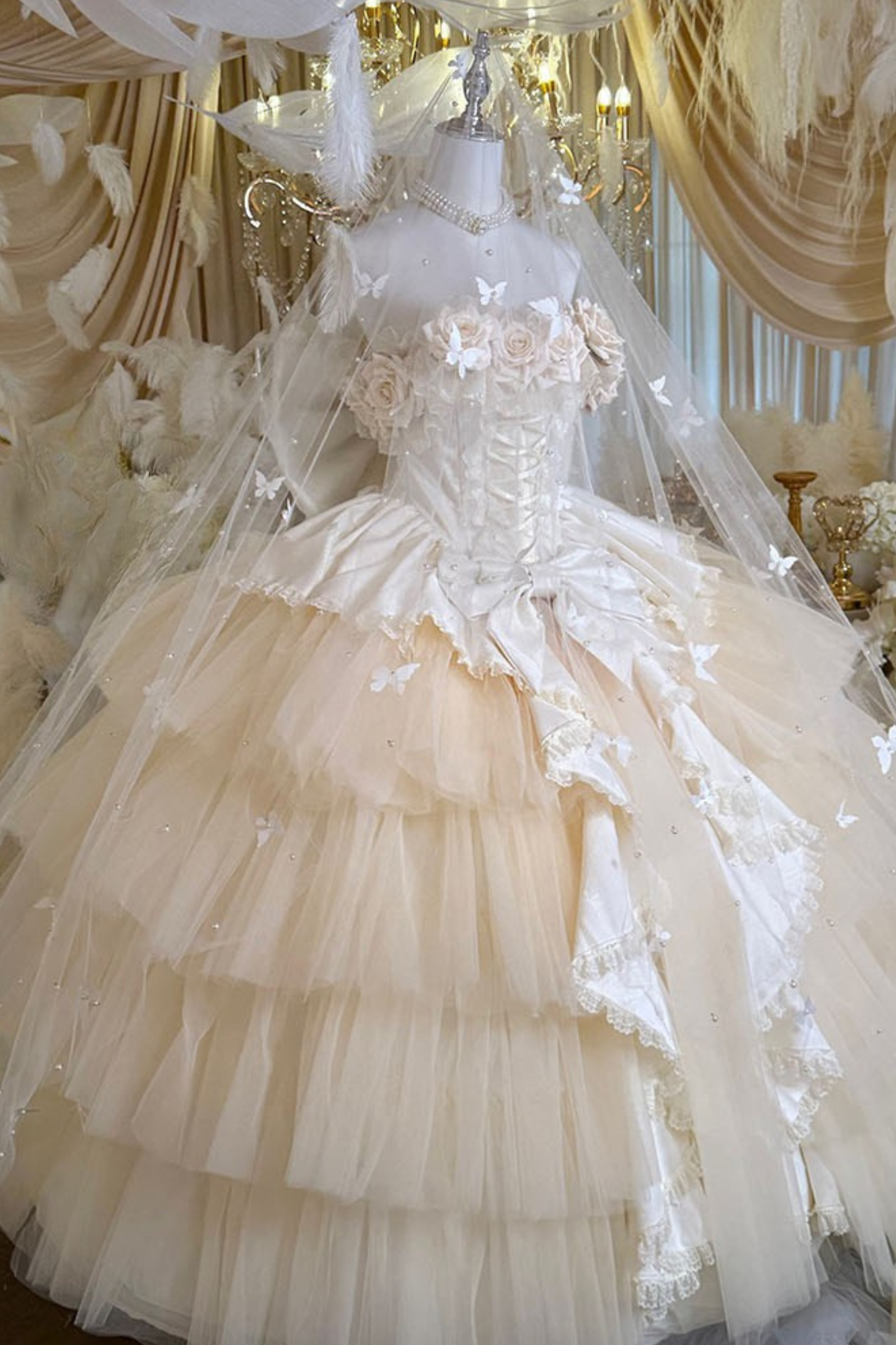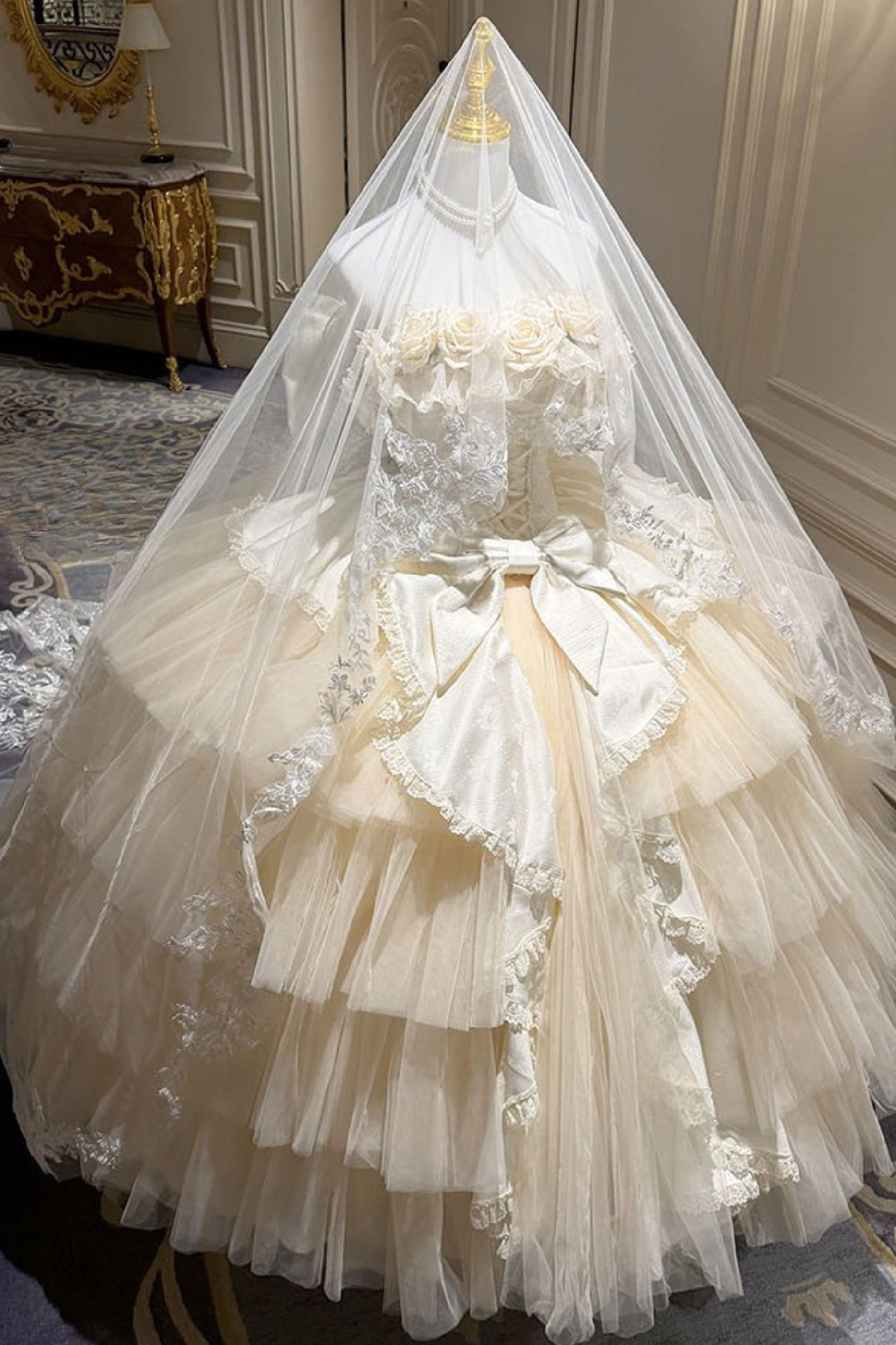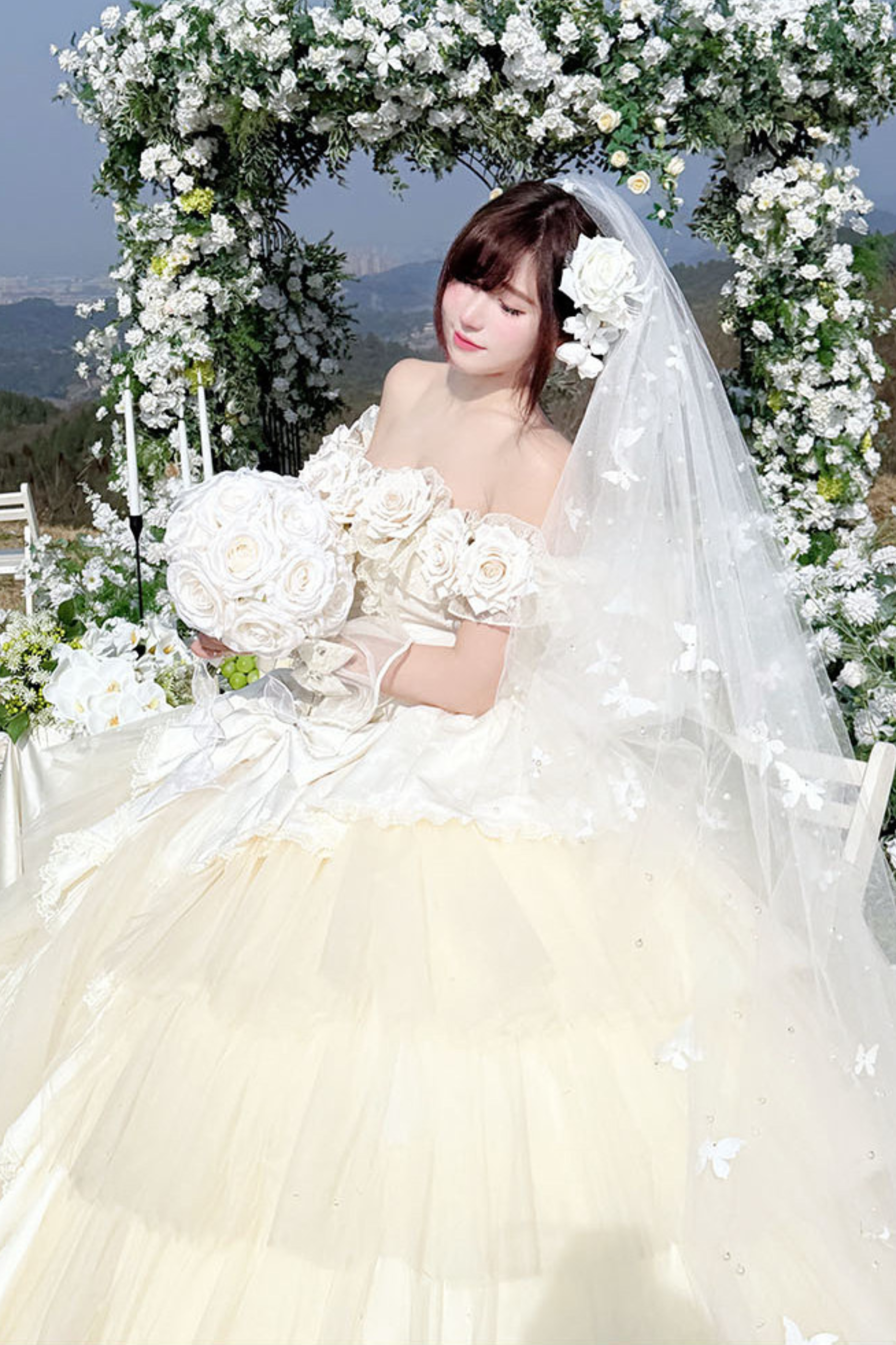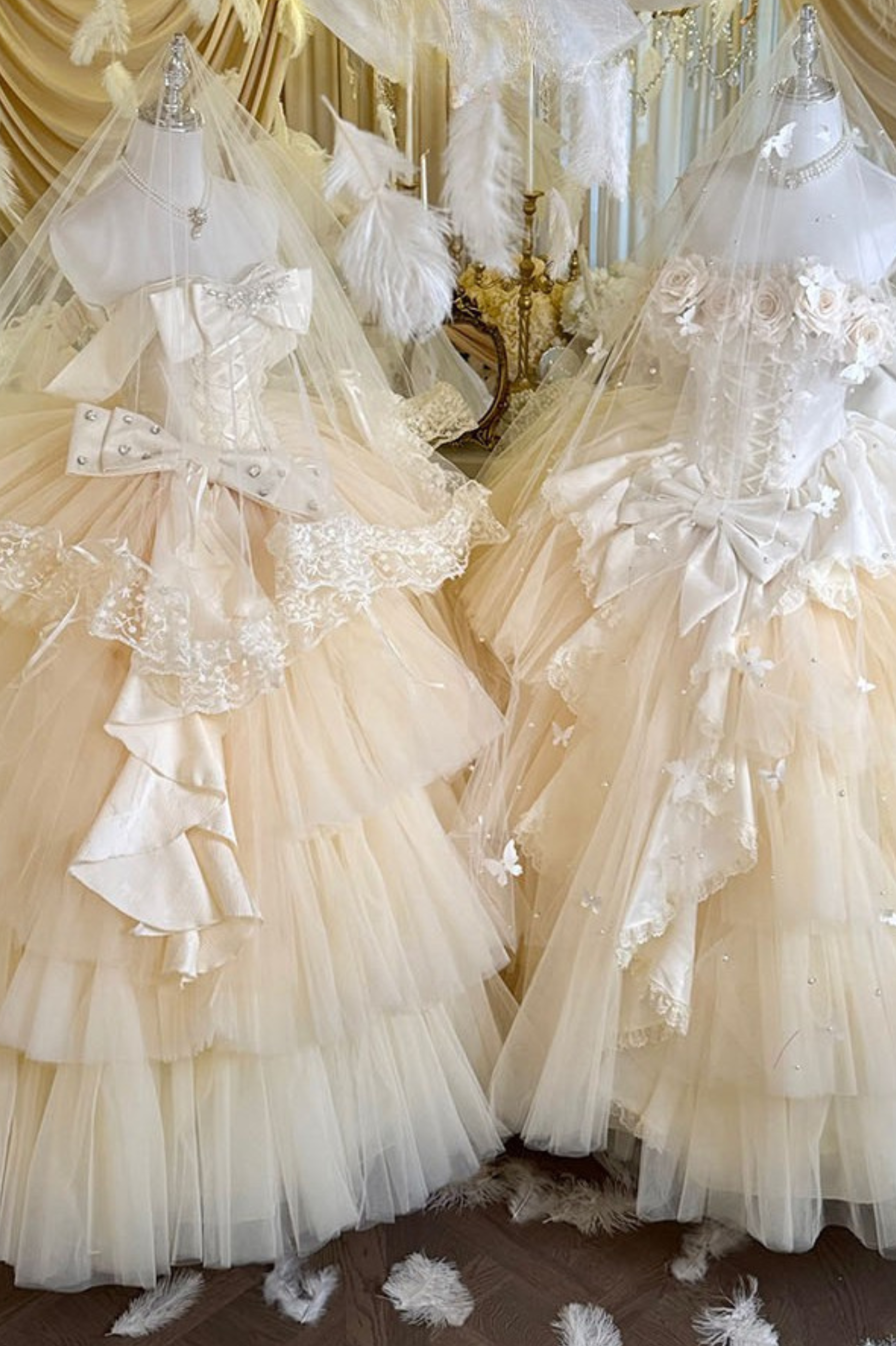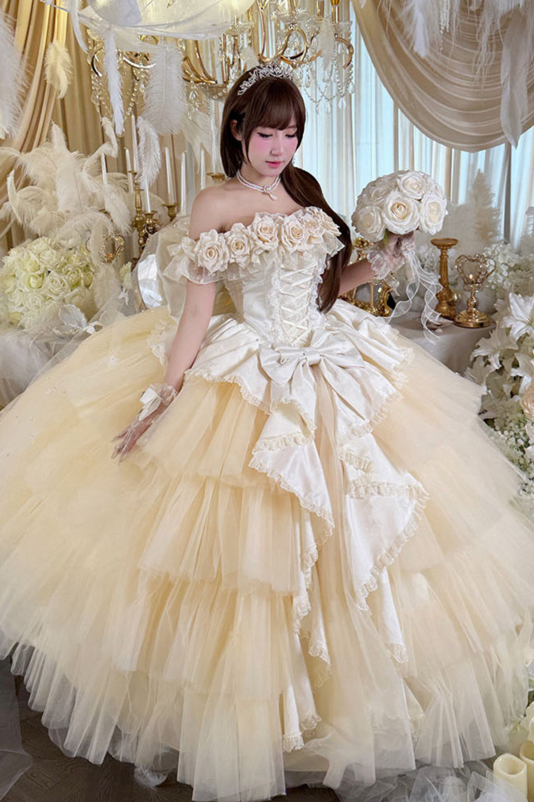 [예약상품] 4월 4일 예약마감]애프리콧 웨딩 로리타 원피스+숄+소매+리본 테일+베일