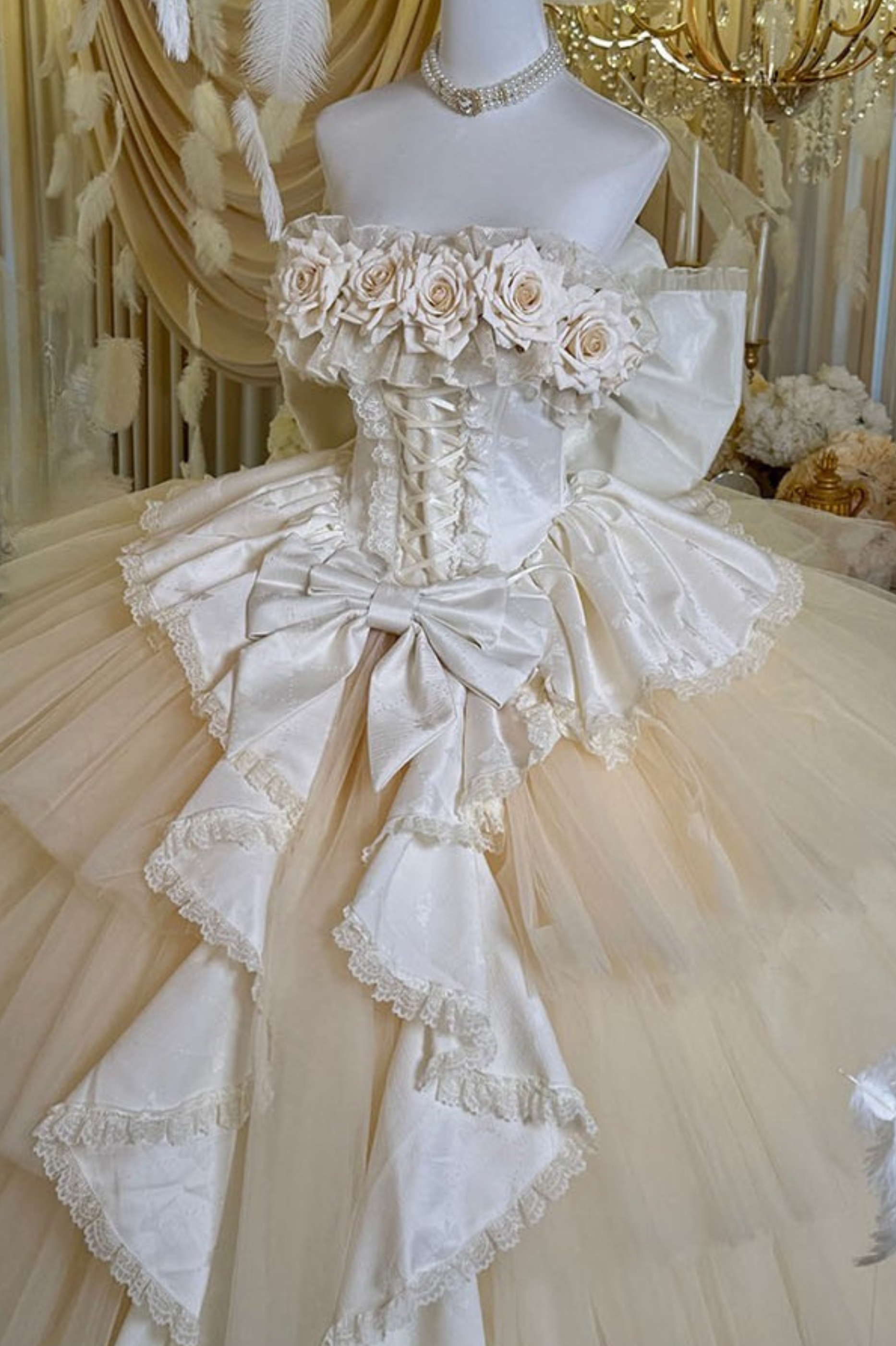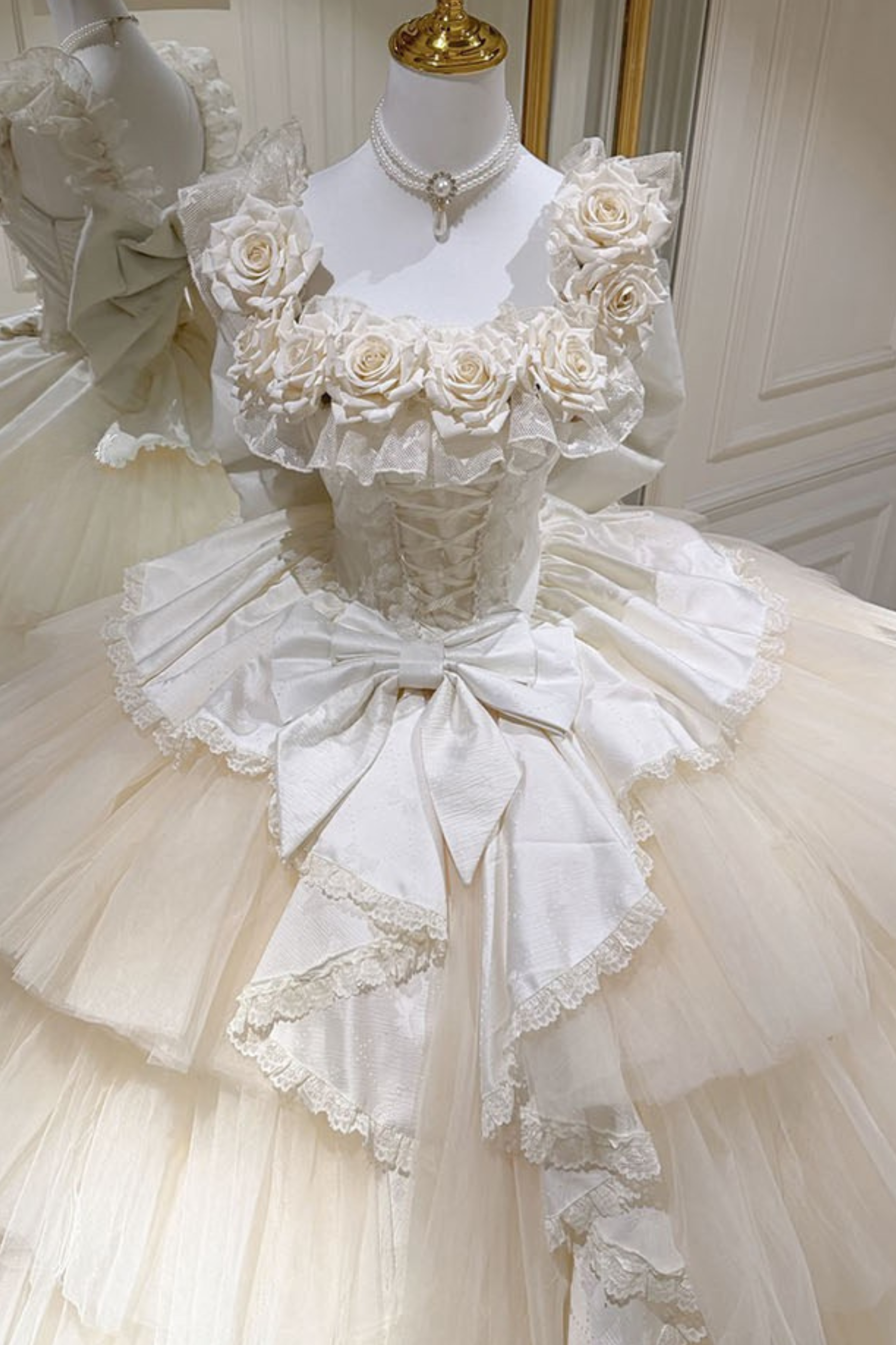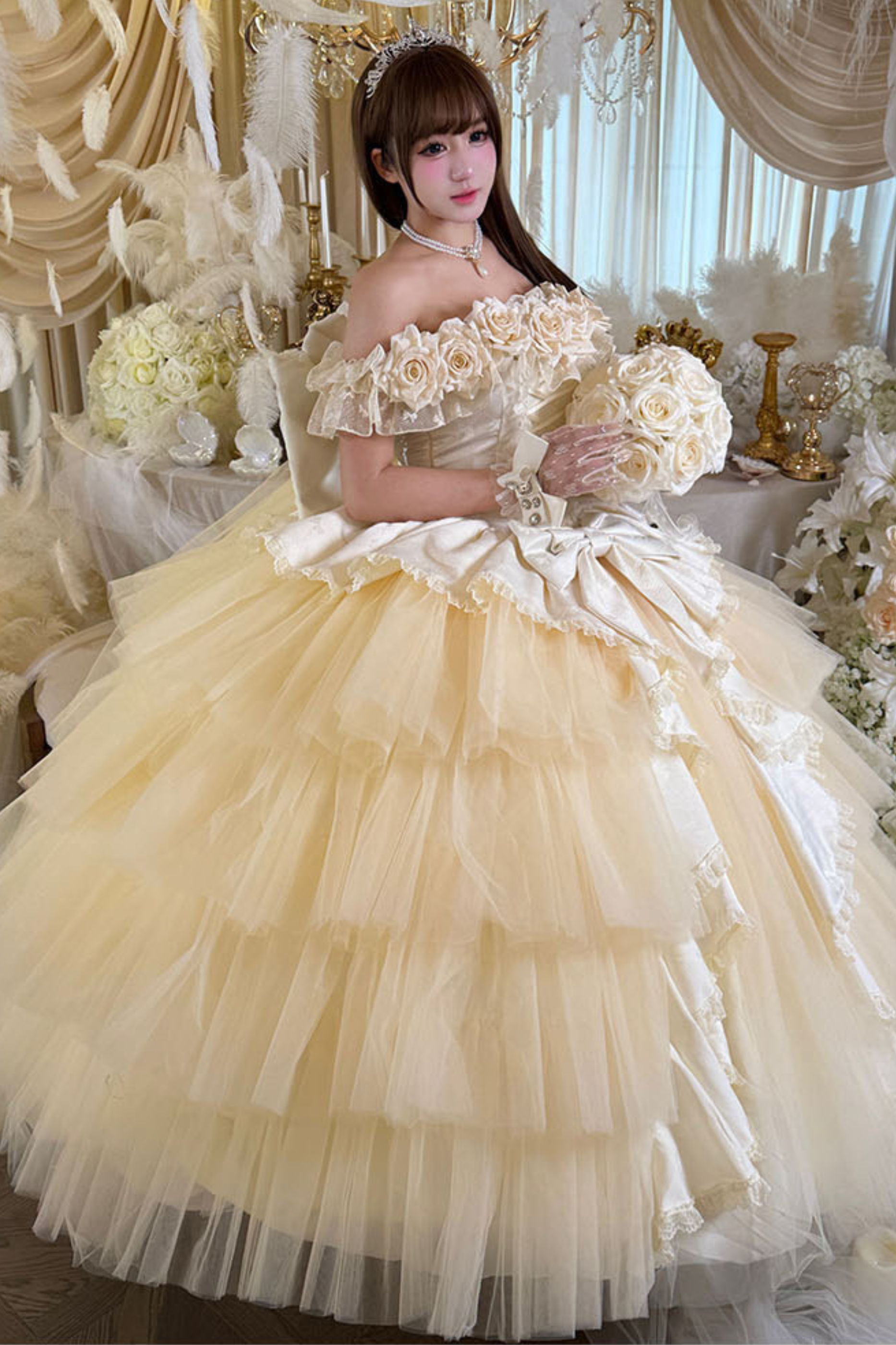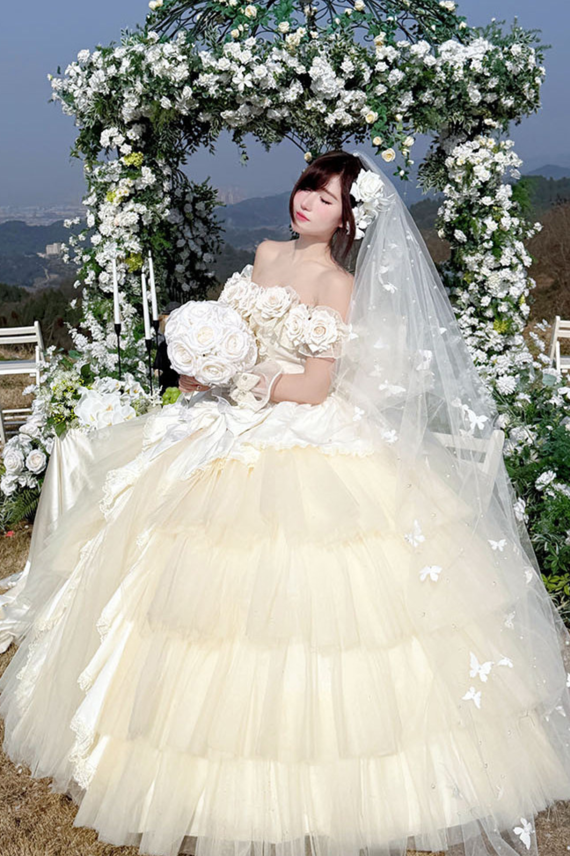 [예약상품] 4월 4일 예약마감]애프리콧 웨딩 로리타 원피스+숄+소매+리본 테일+베일