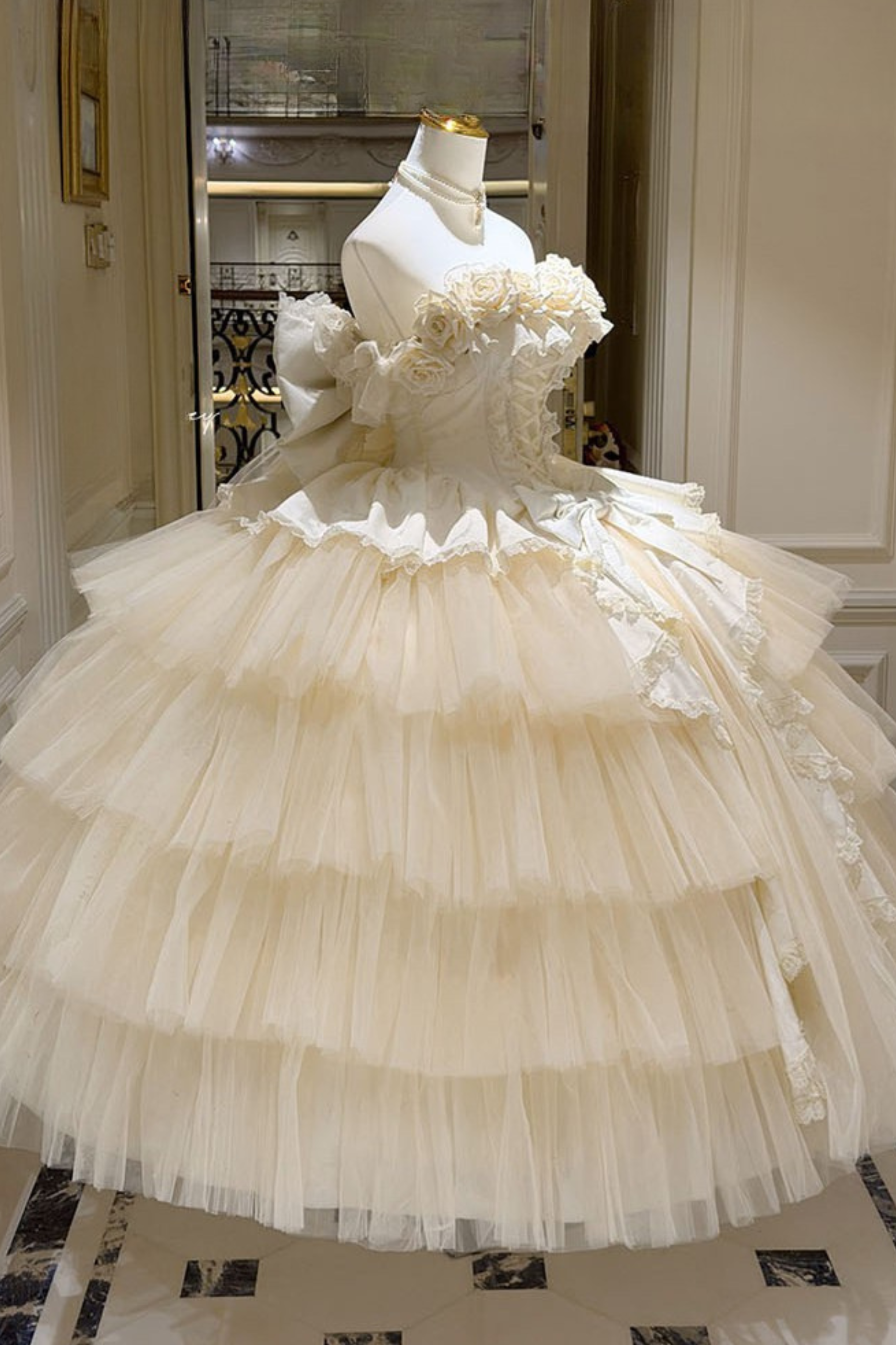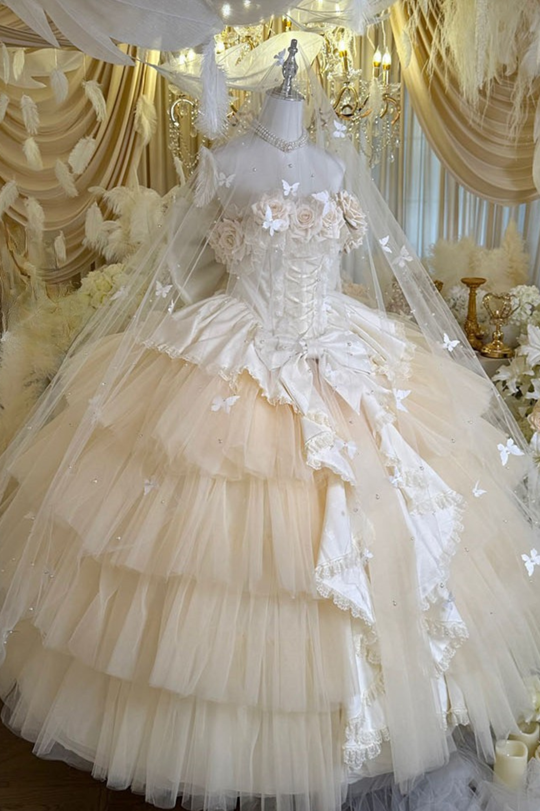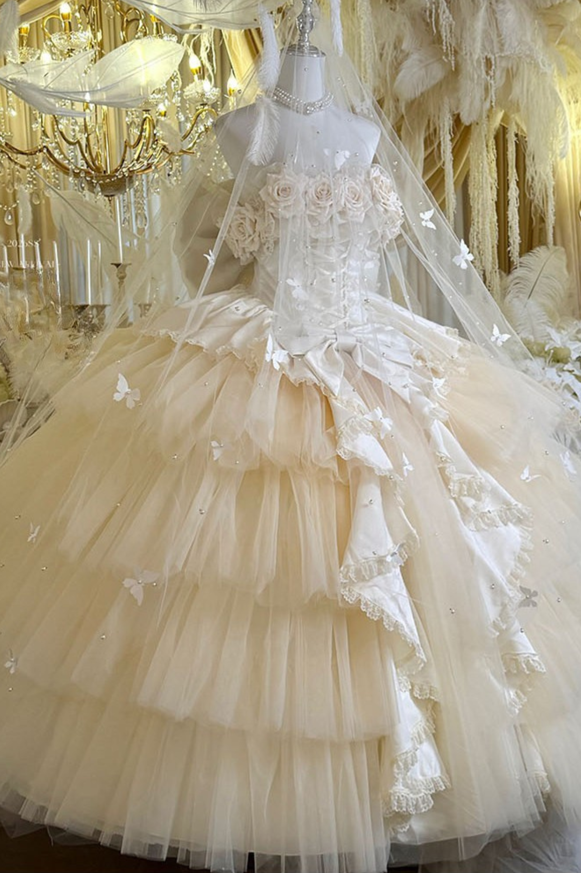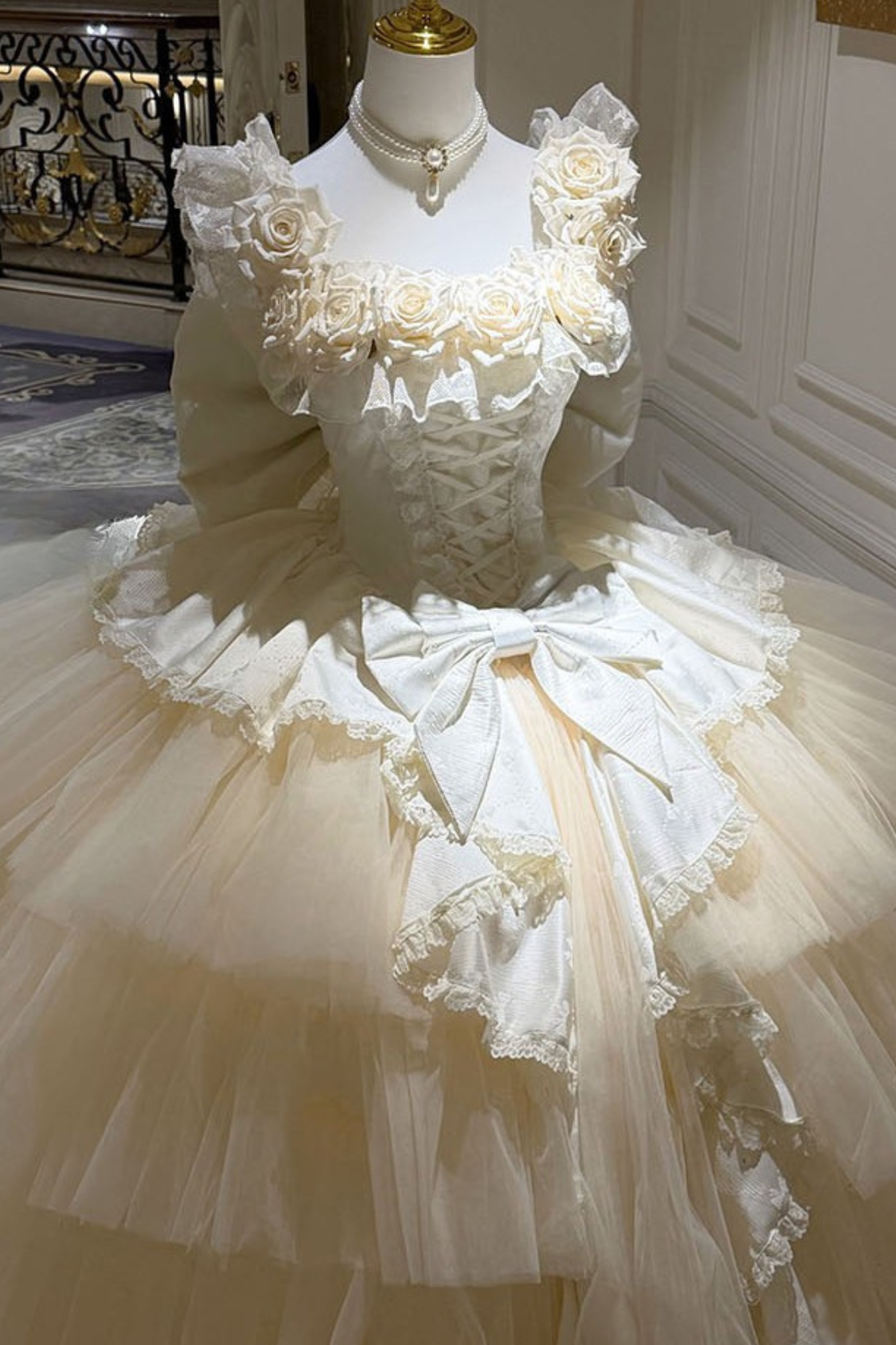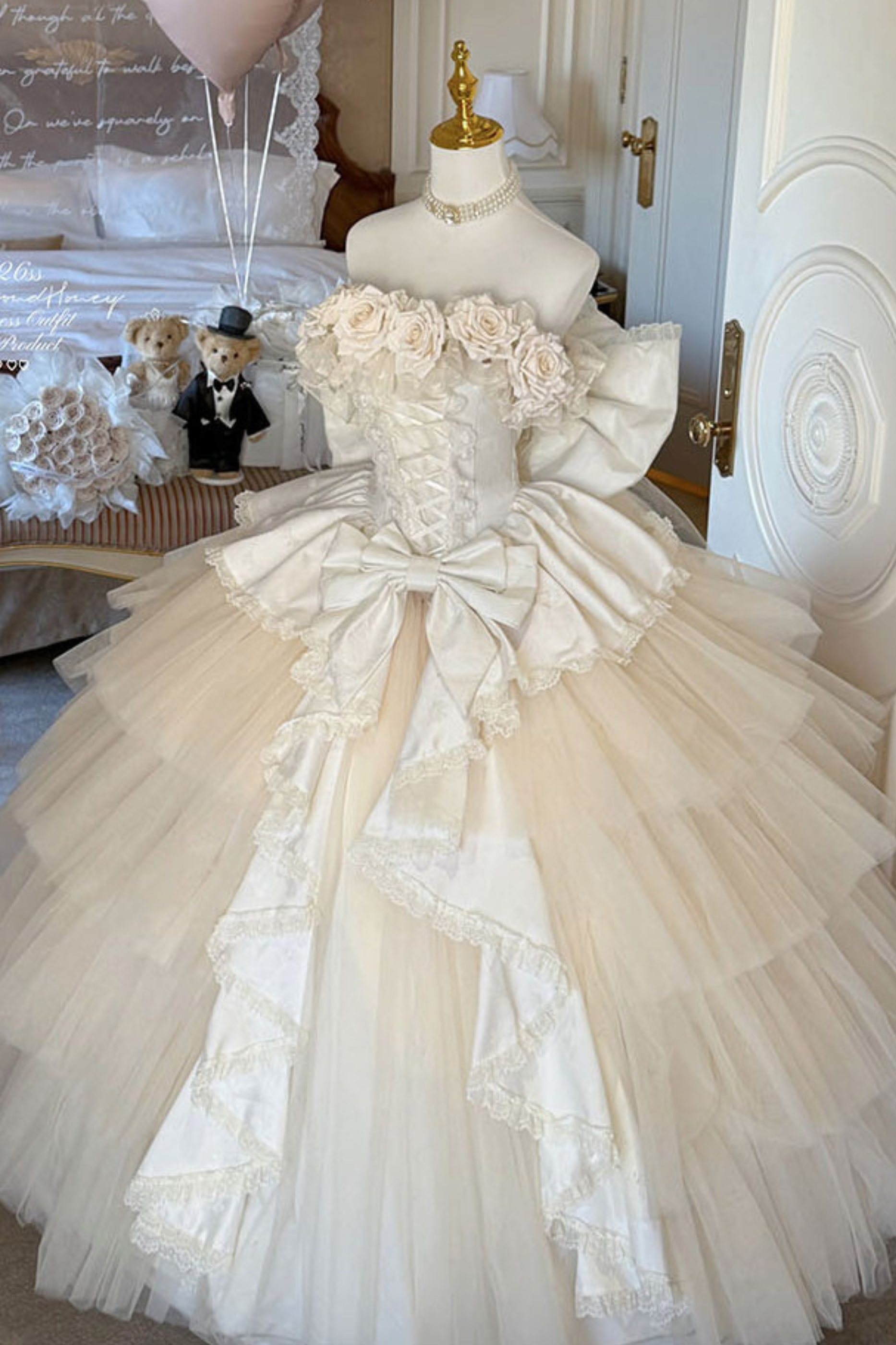 [예약상품] 4월 4일 예약마감]애프리콧 웨딩 로리타 원피스+숄+소매+리본 테일+베일