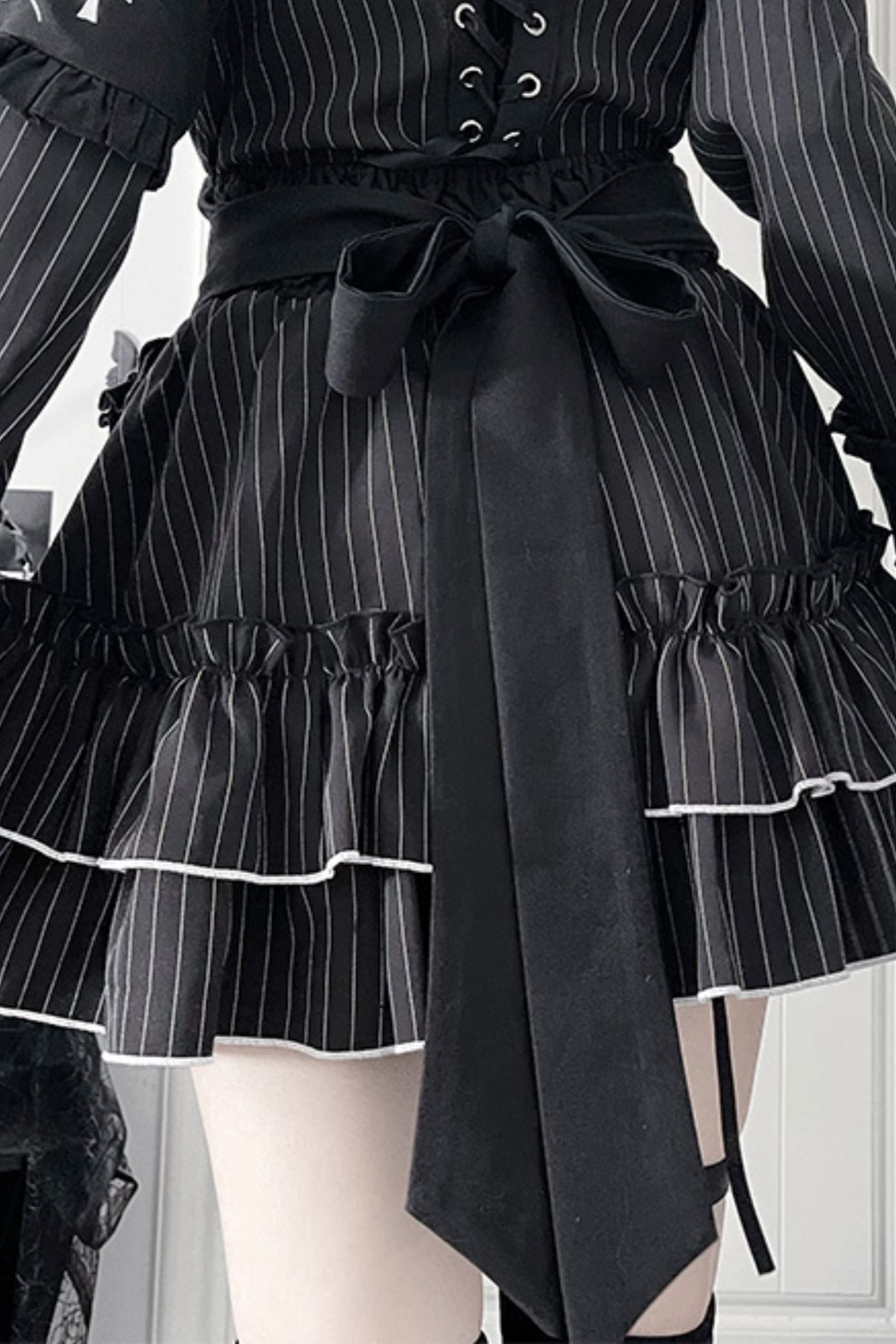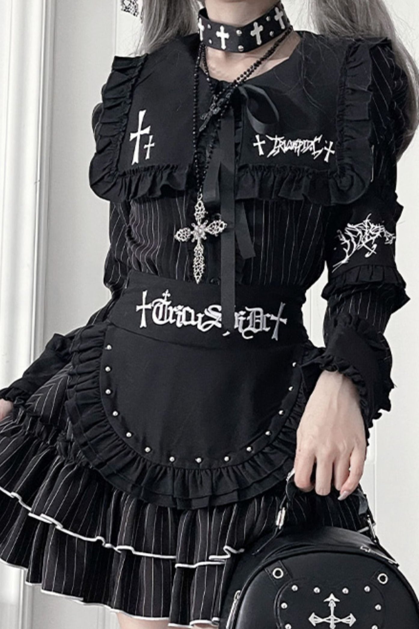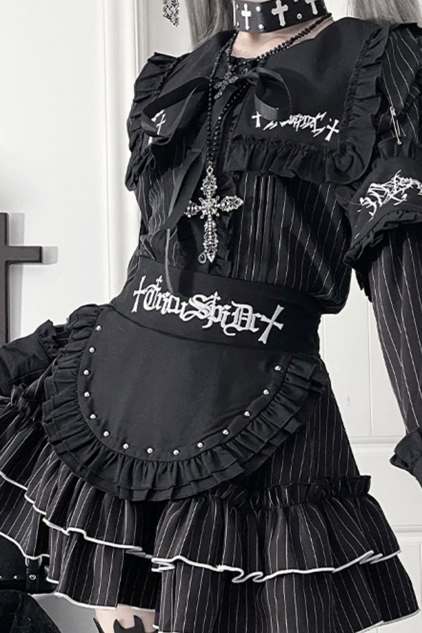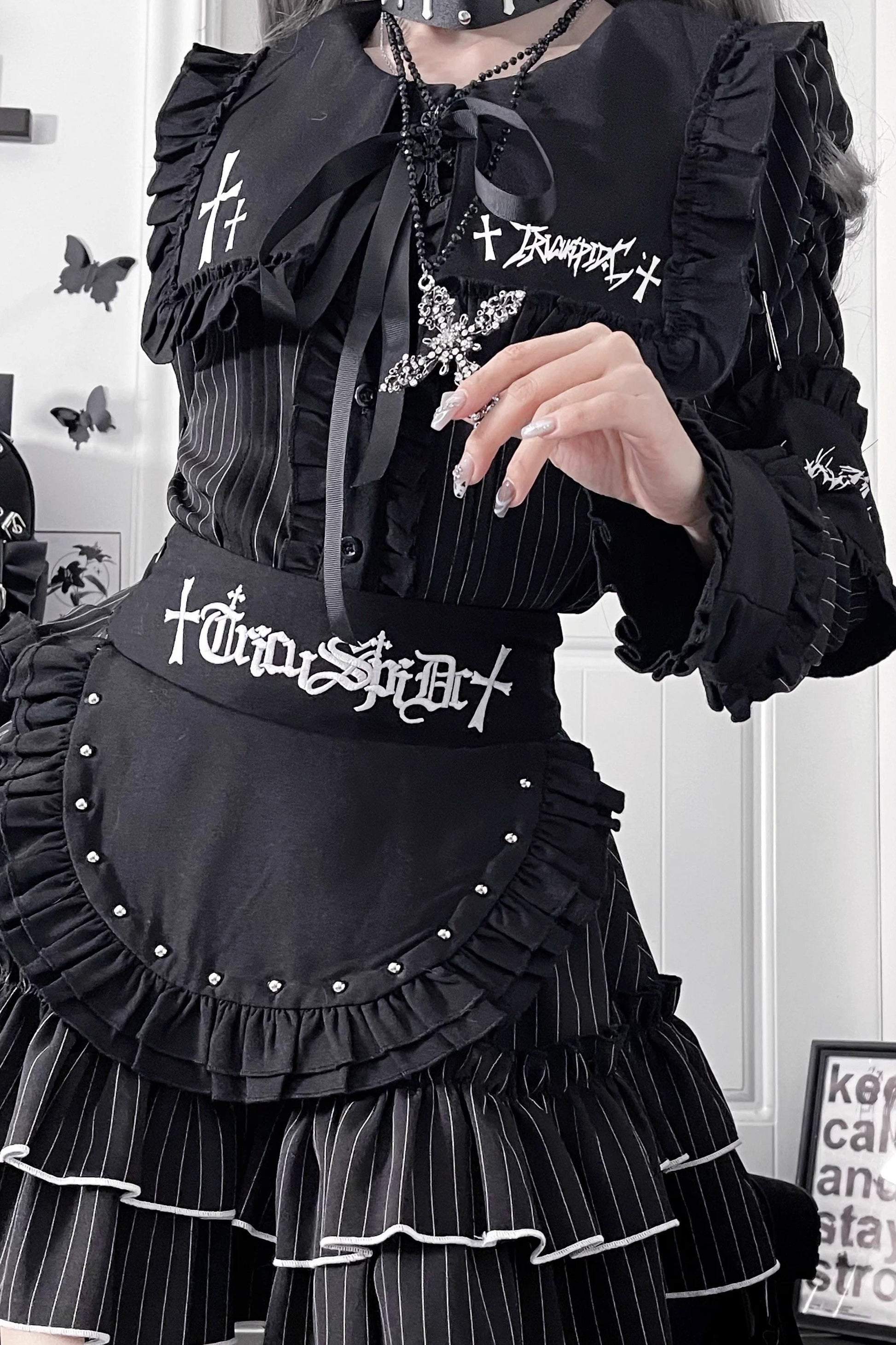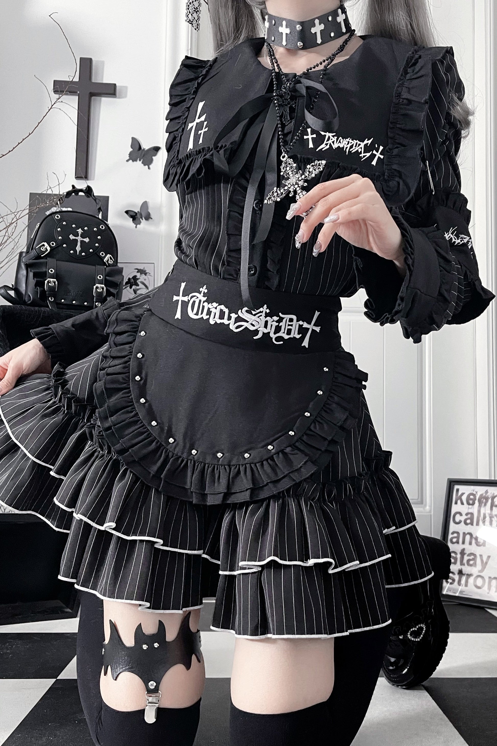 ❤ライトアジアダークスリムロングスリーブトップス+フェイクエプロンショートスカート❤