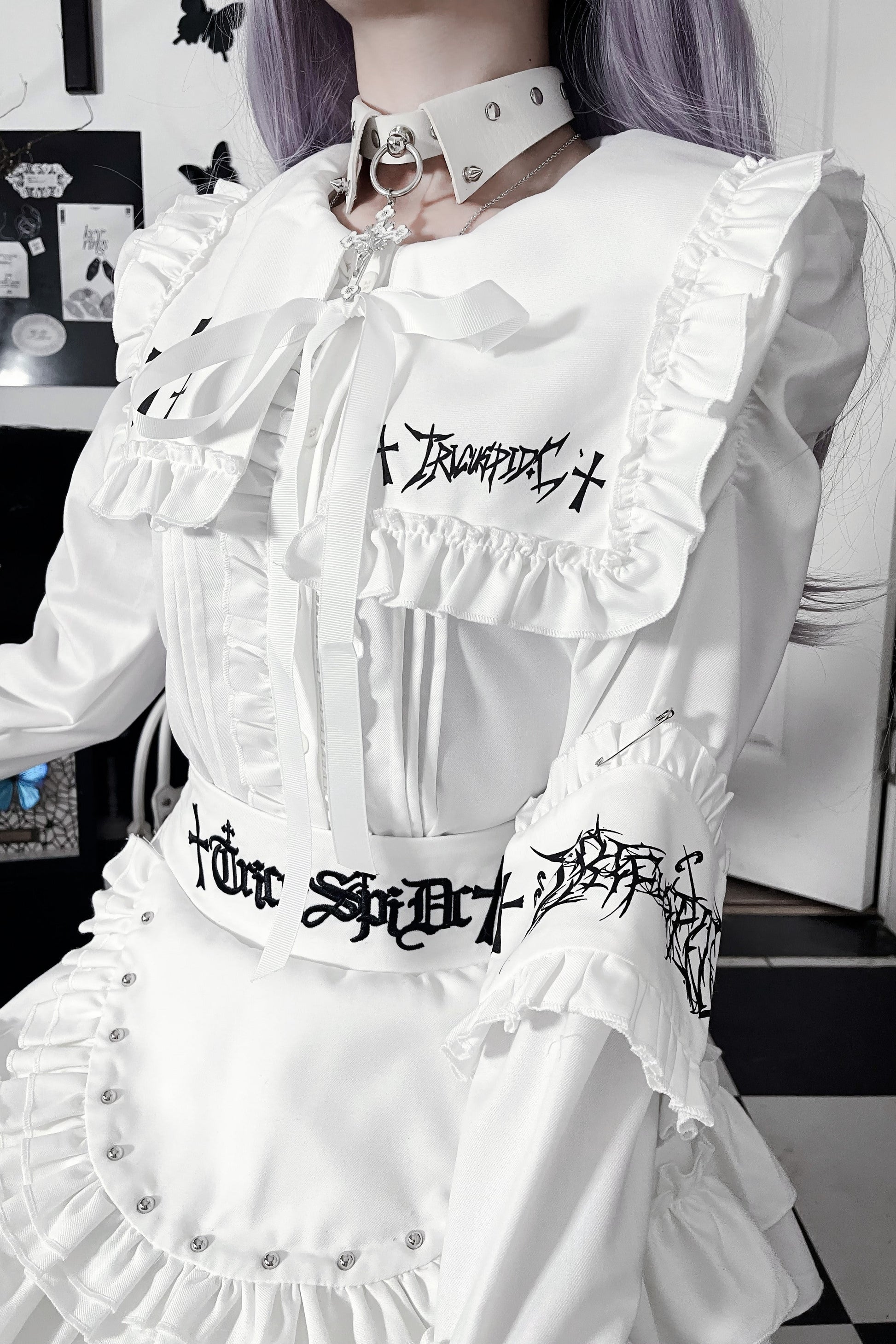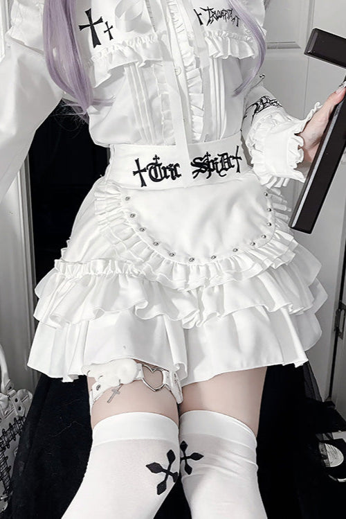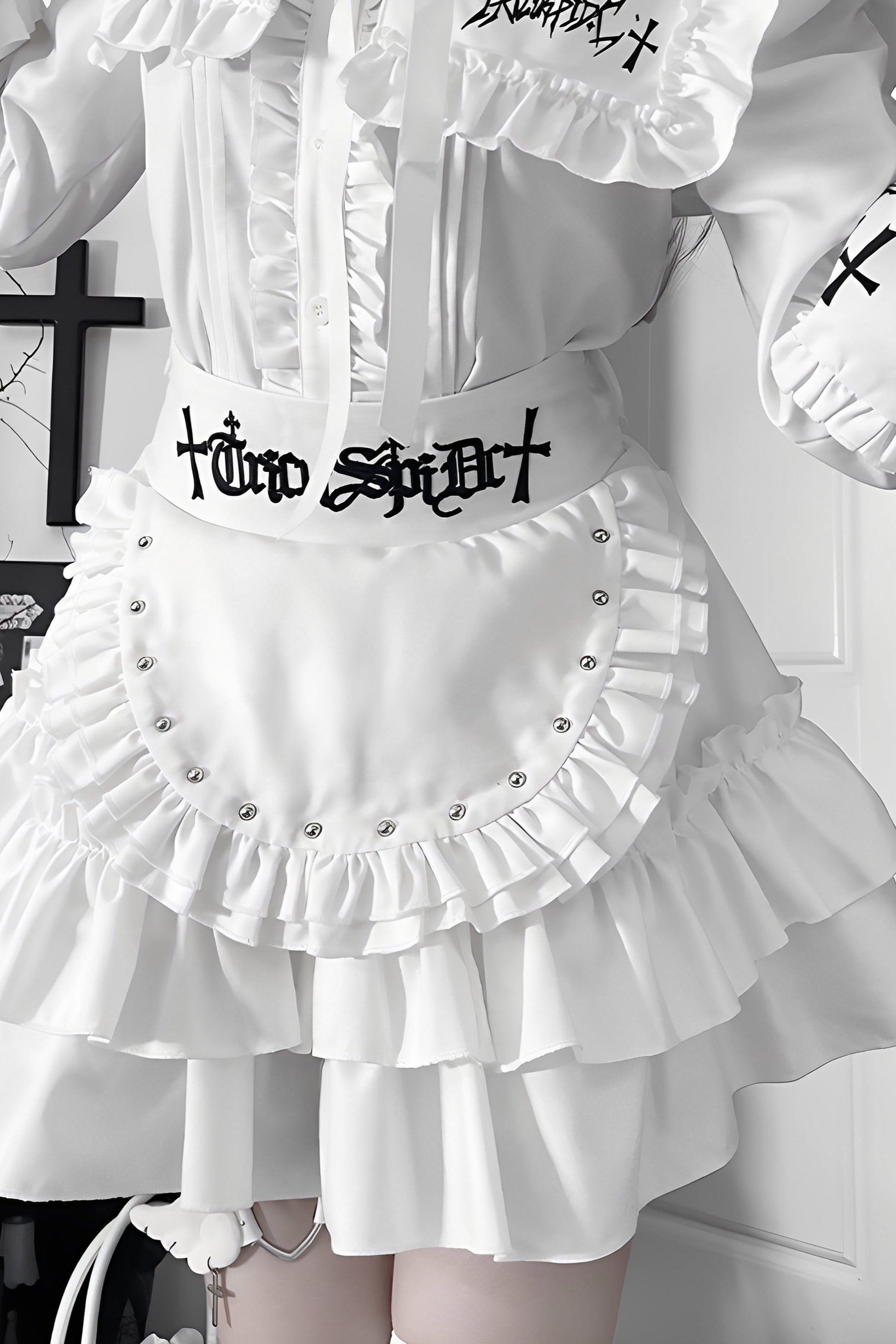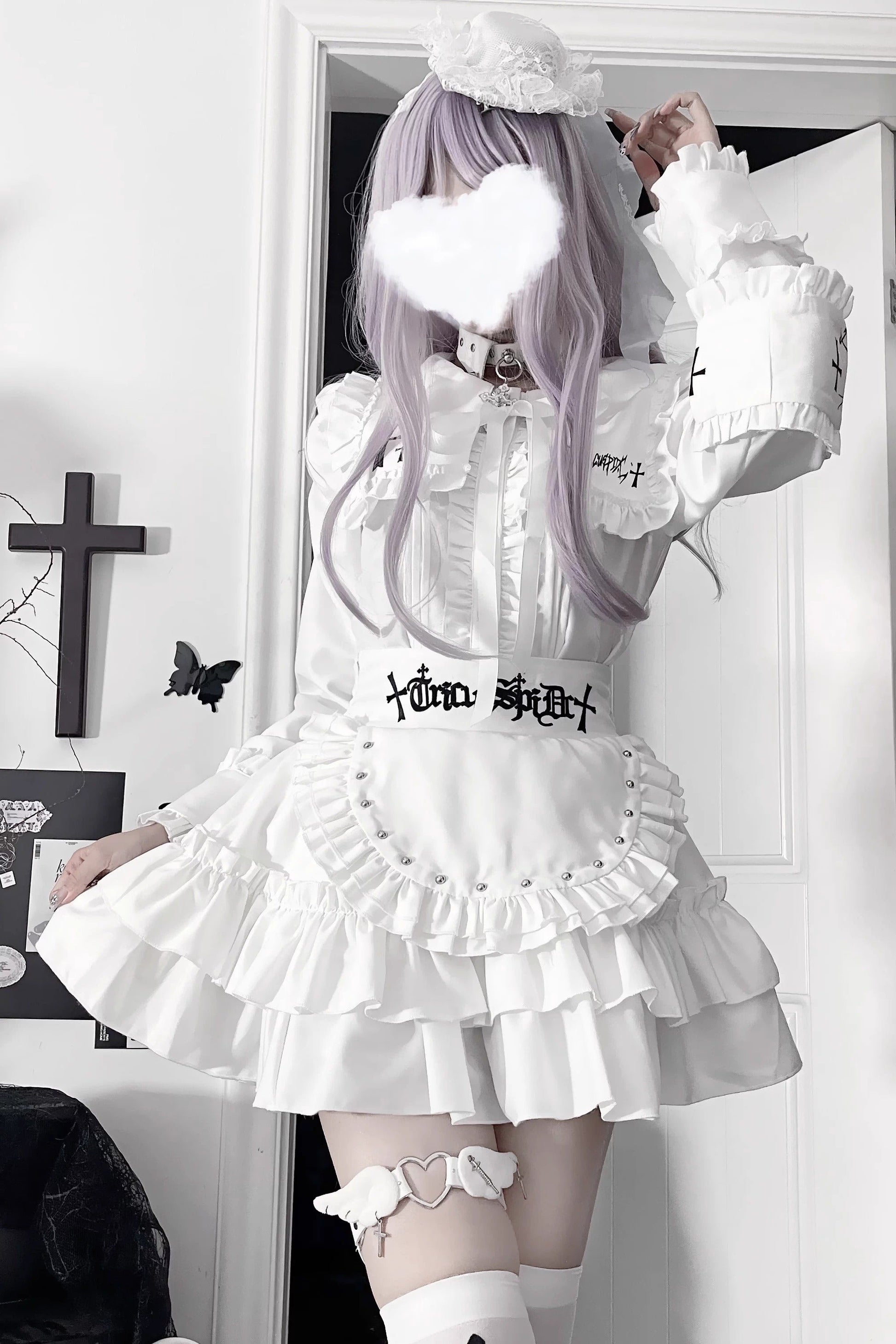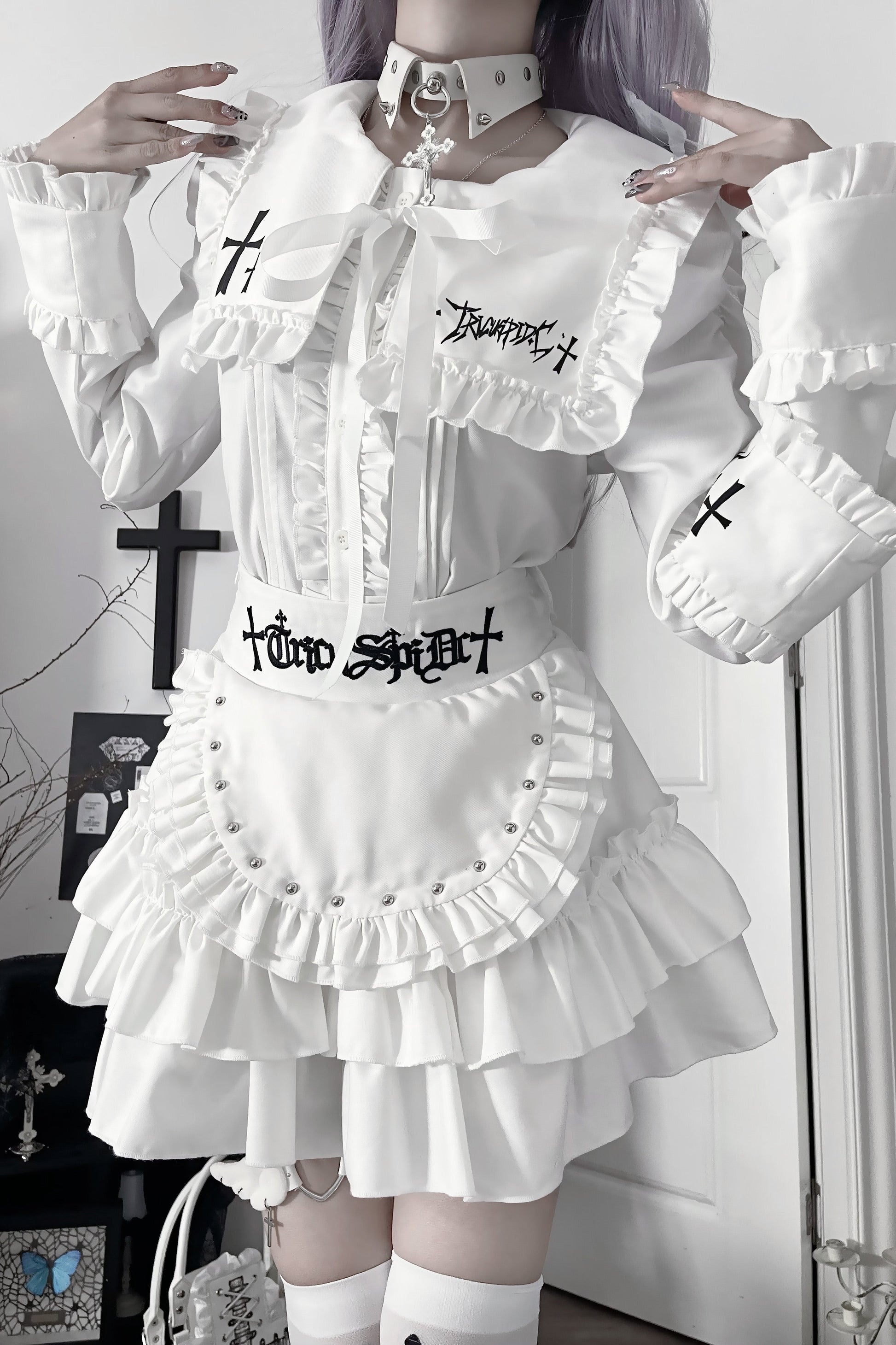❤ライトアジアダークスリムロングスリーブトップス+フェイクエプロンショートスカート❤