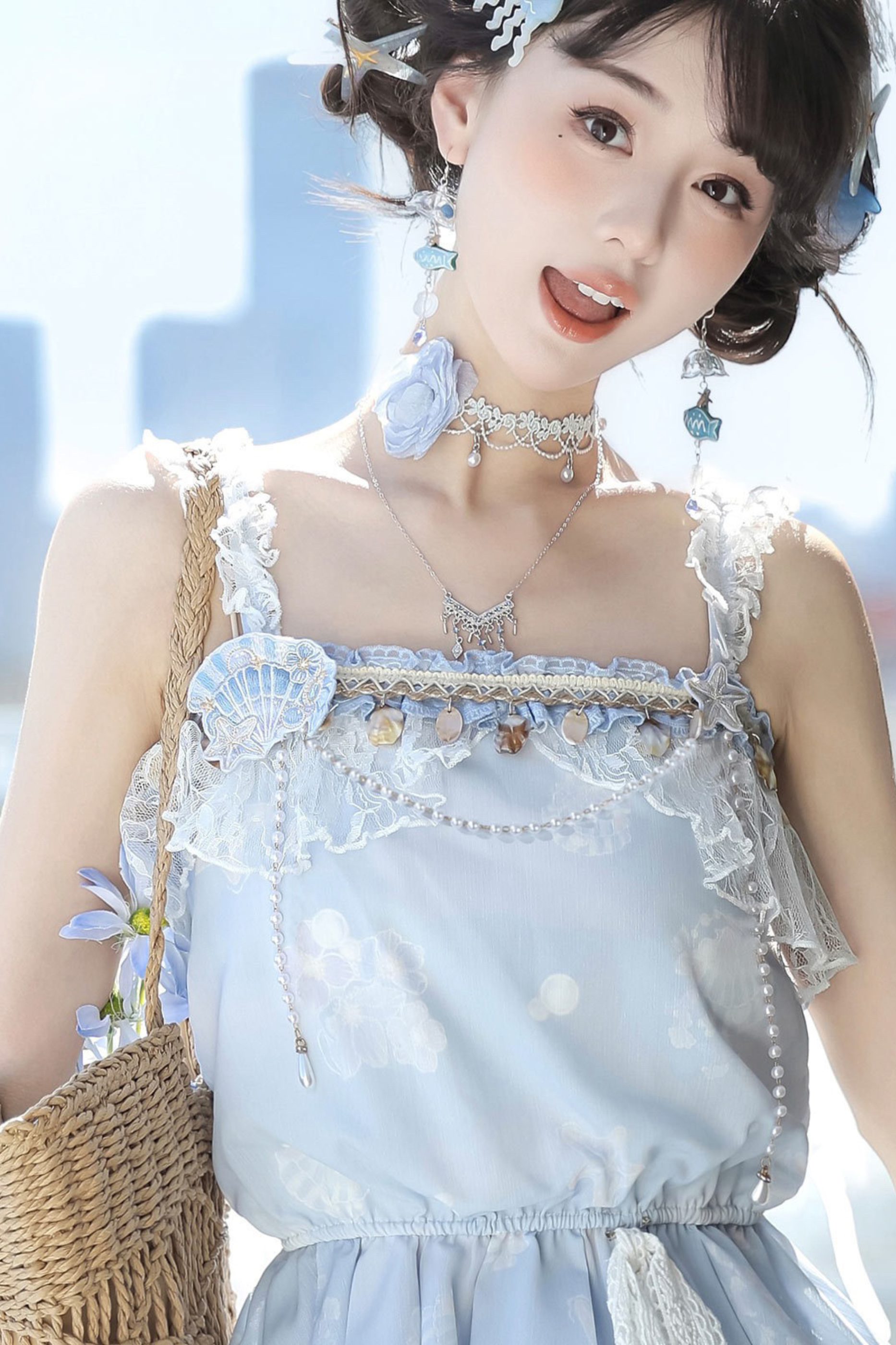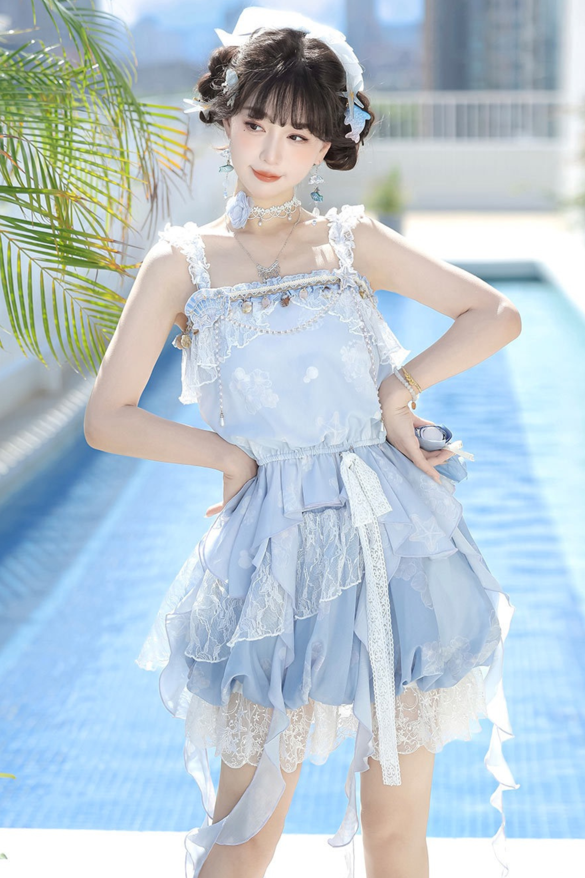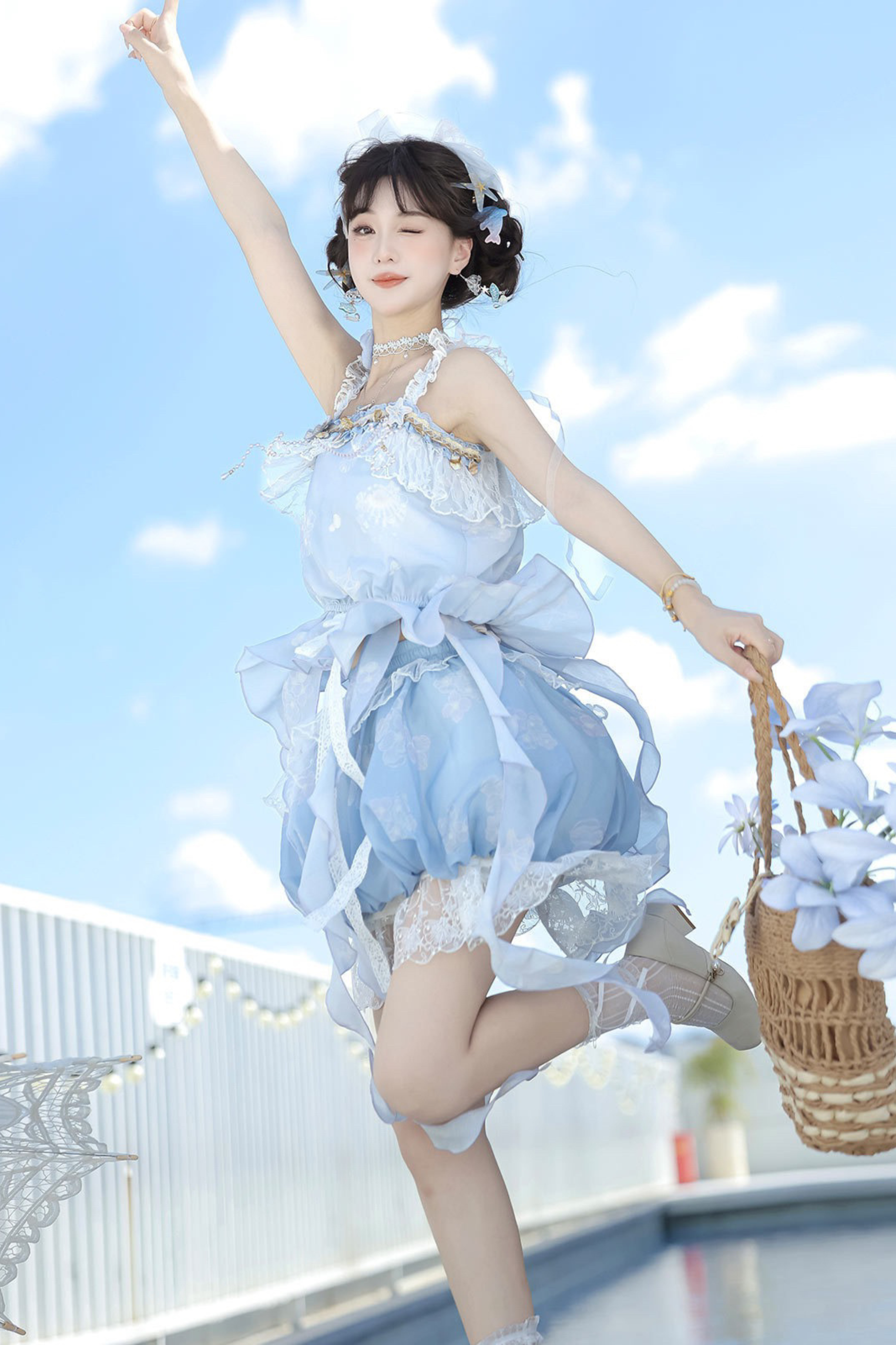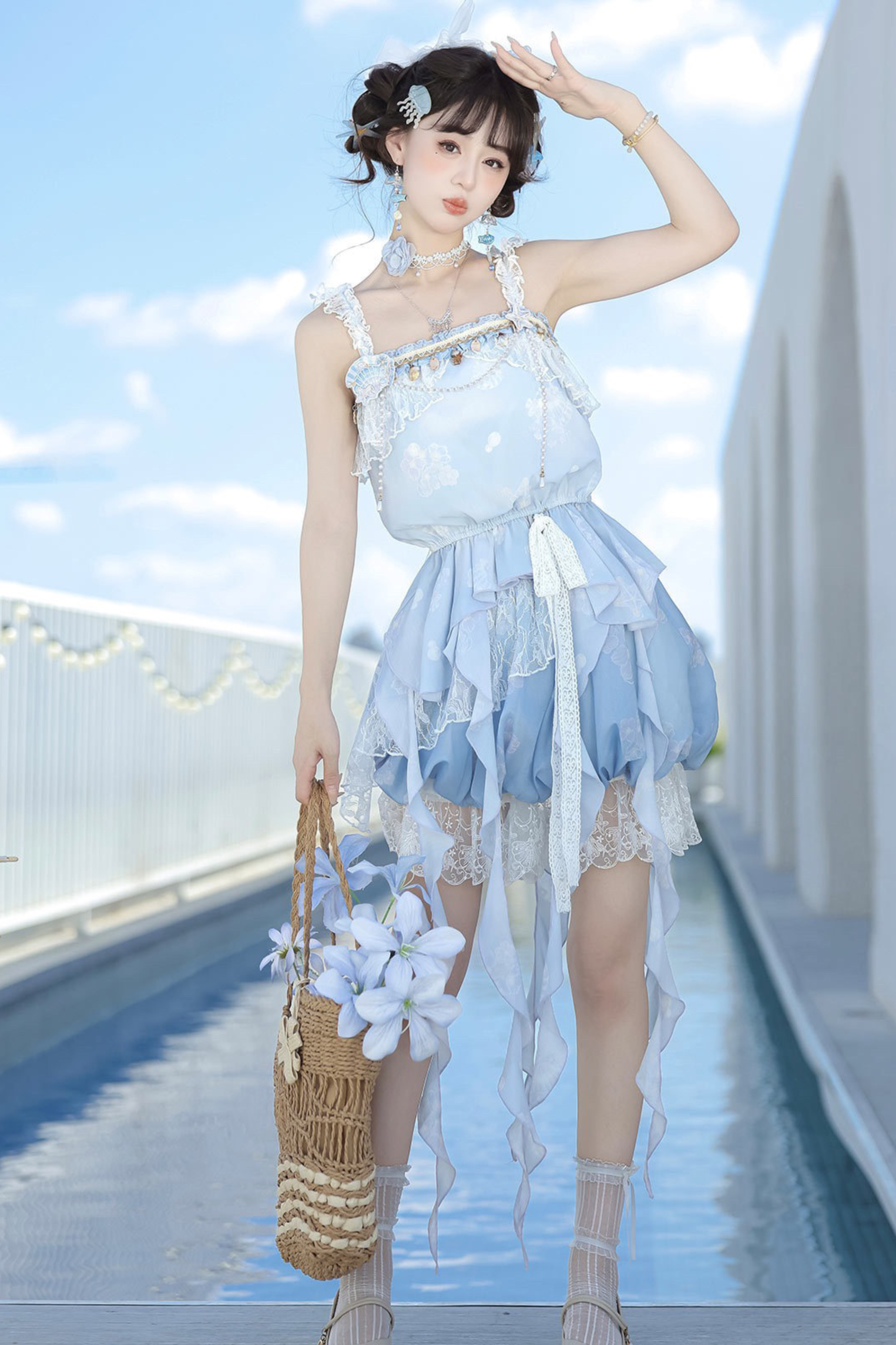 アイスブルースイートキャミソール+バルーンスカート