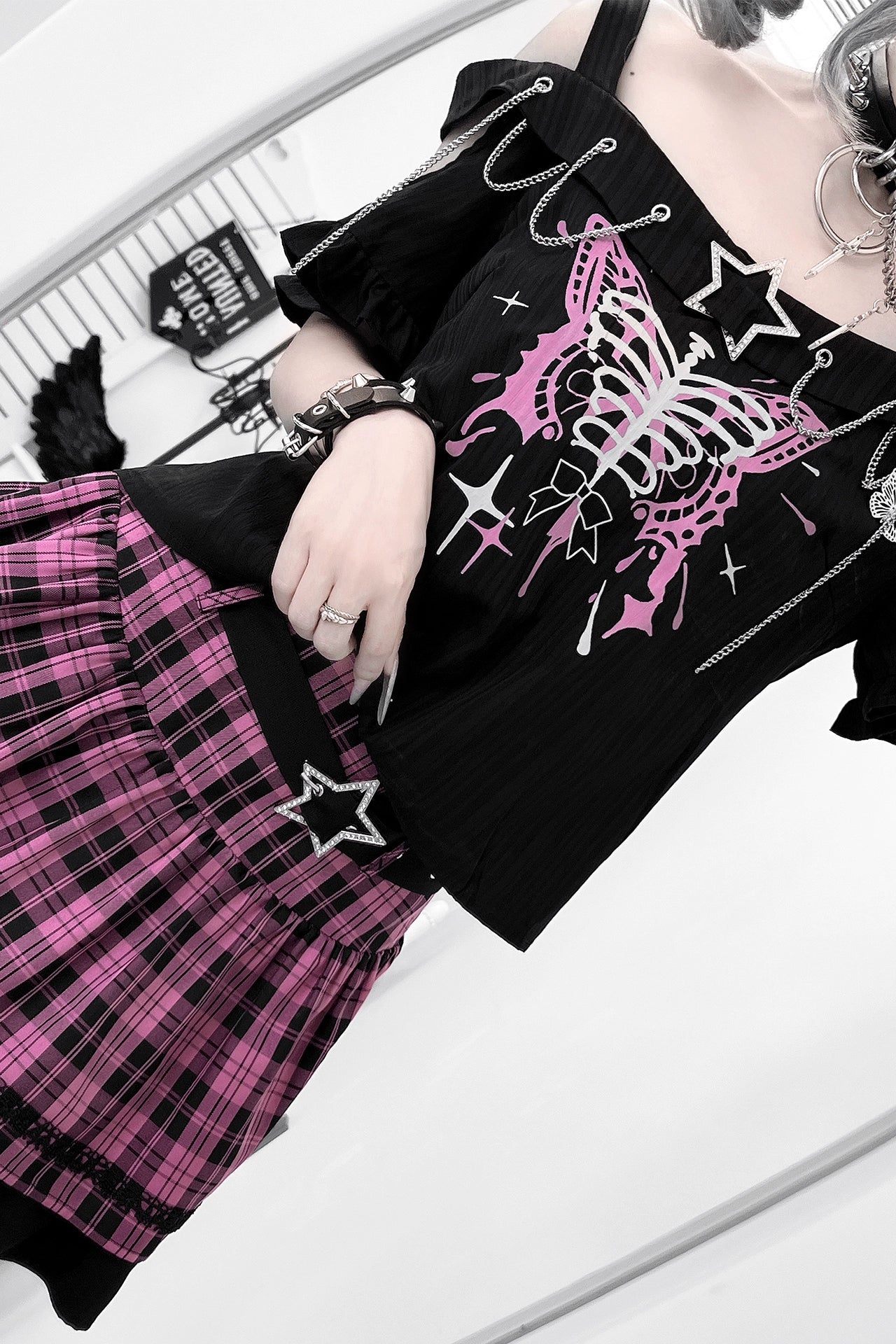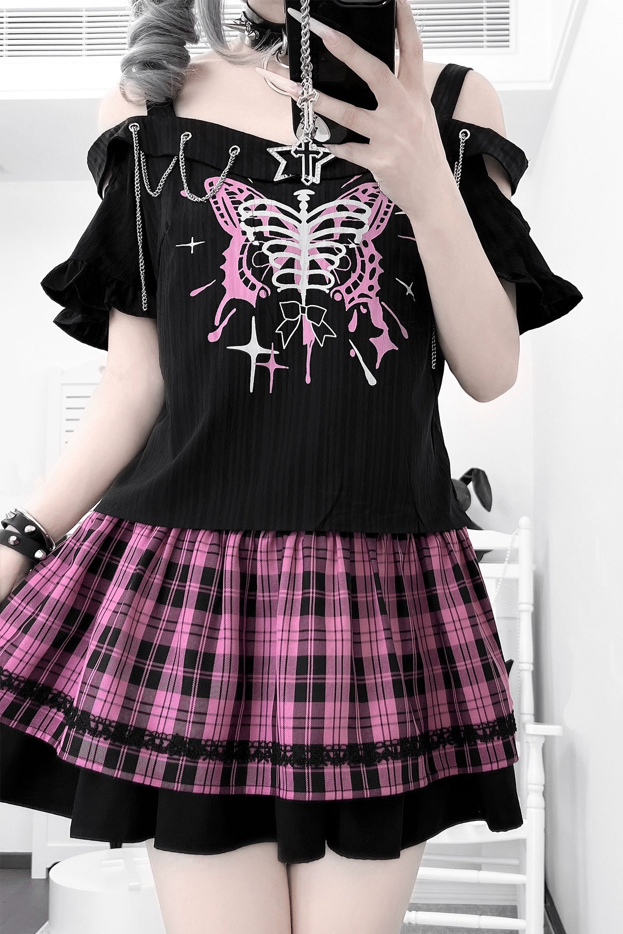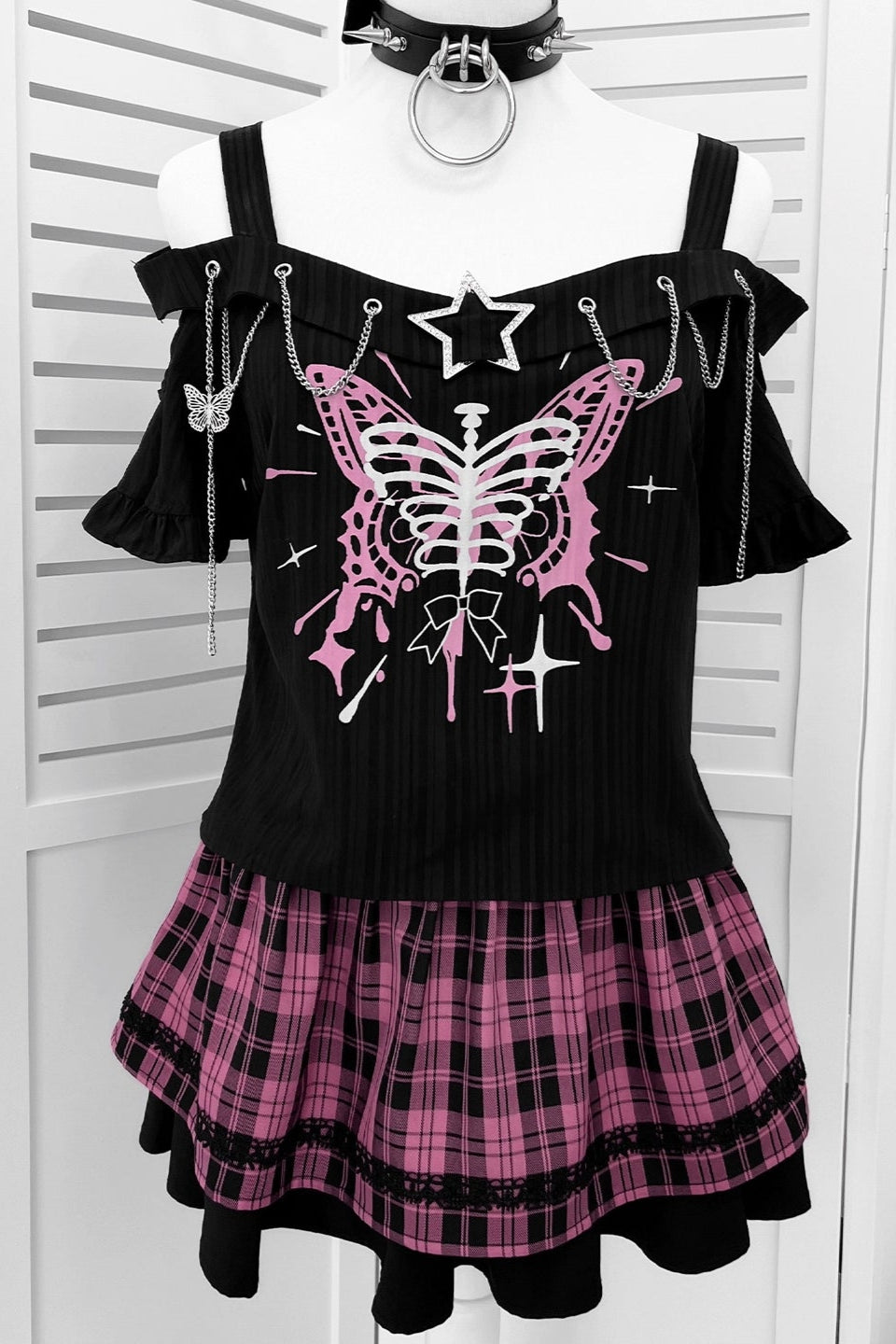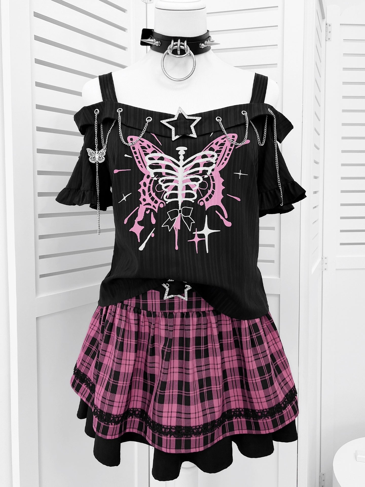 ❤サブカルチャースウィートクールトップス+チェックスカート❤