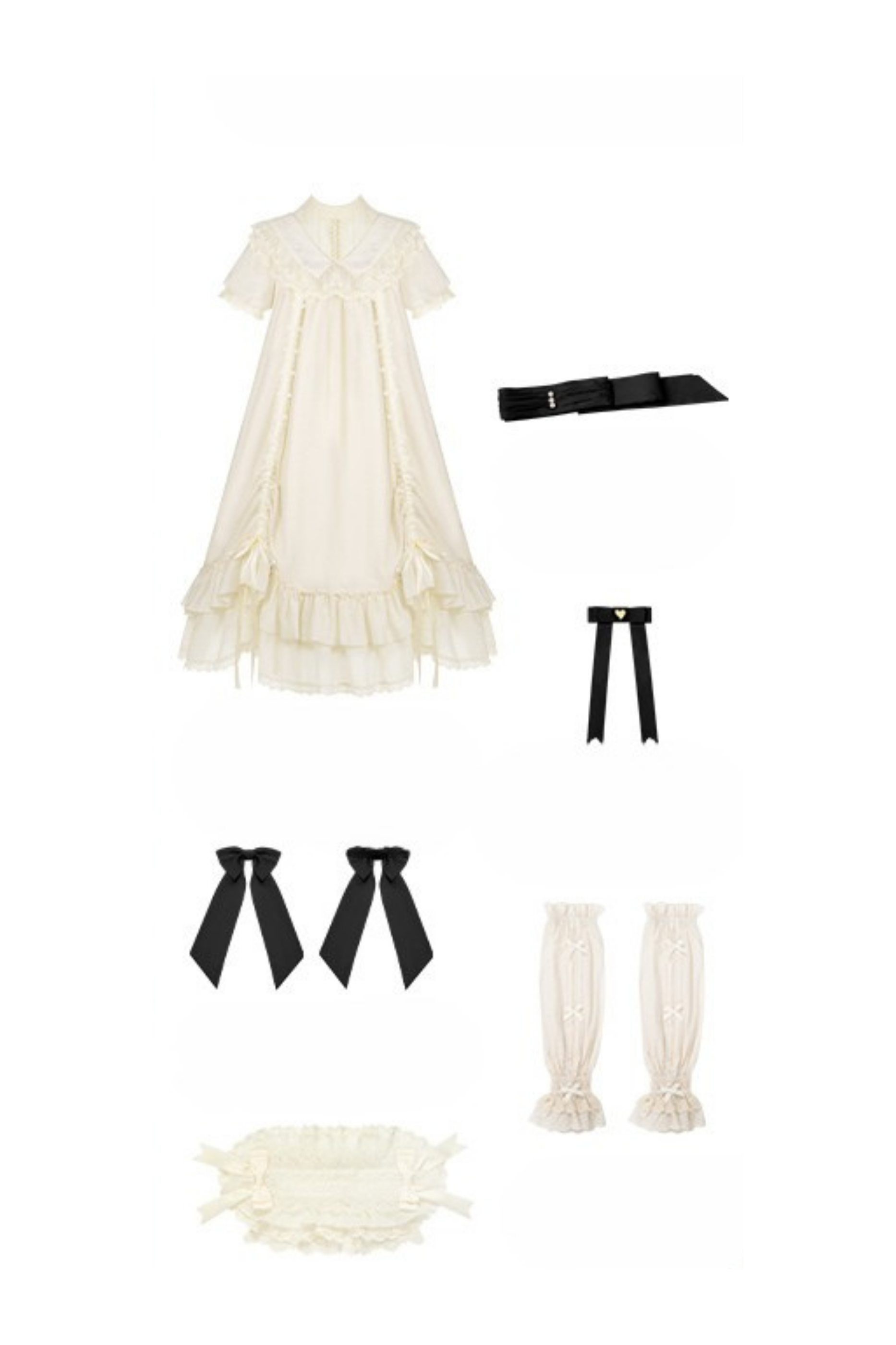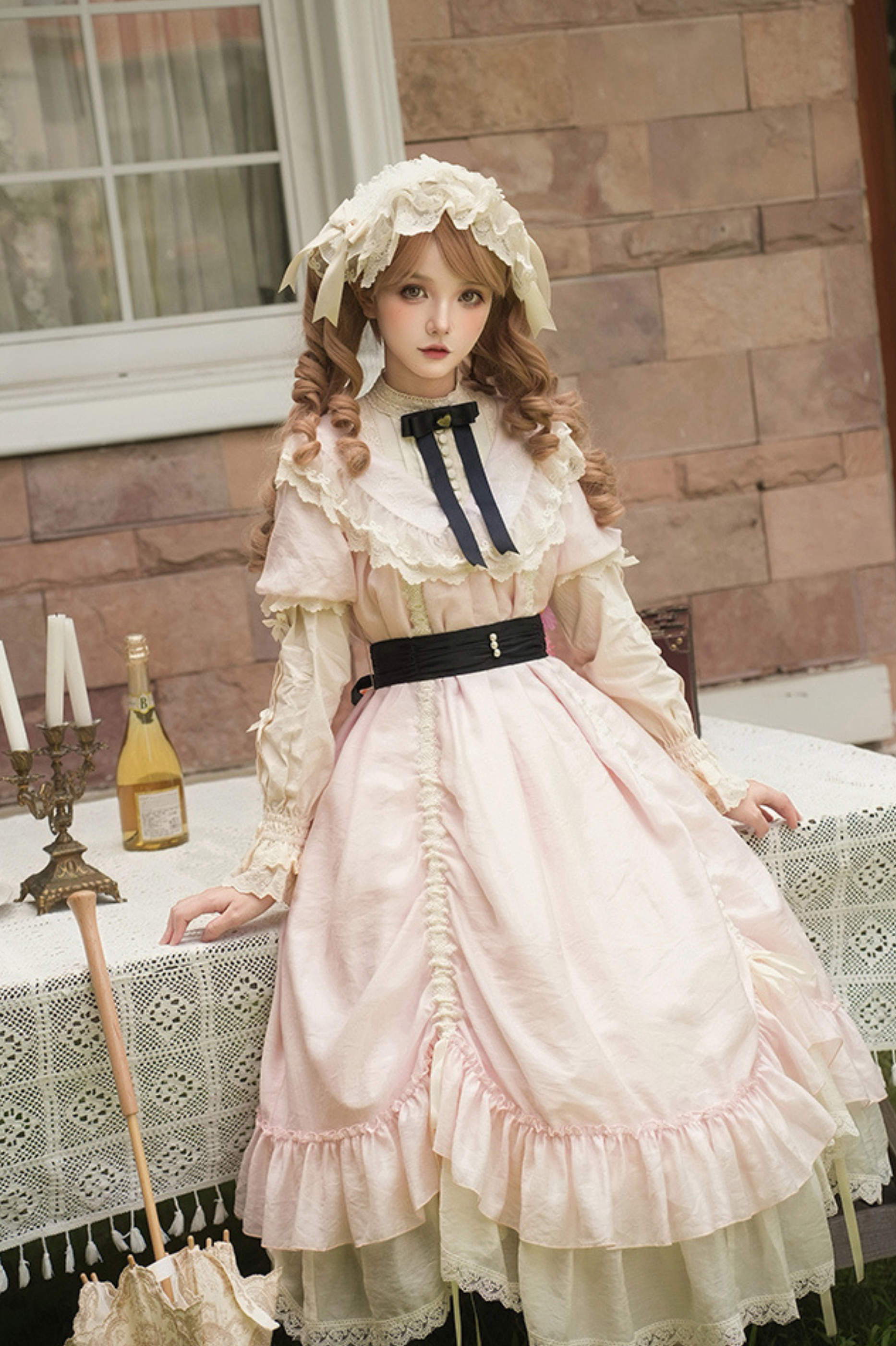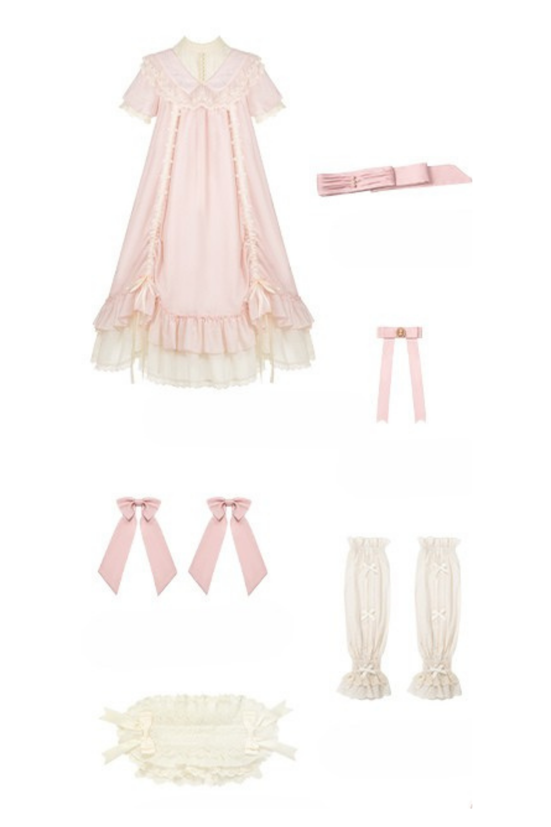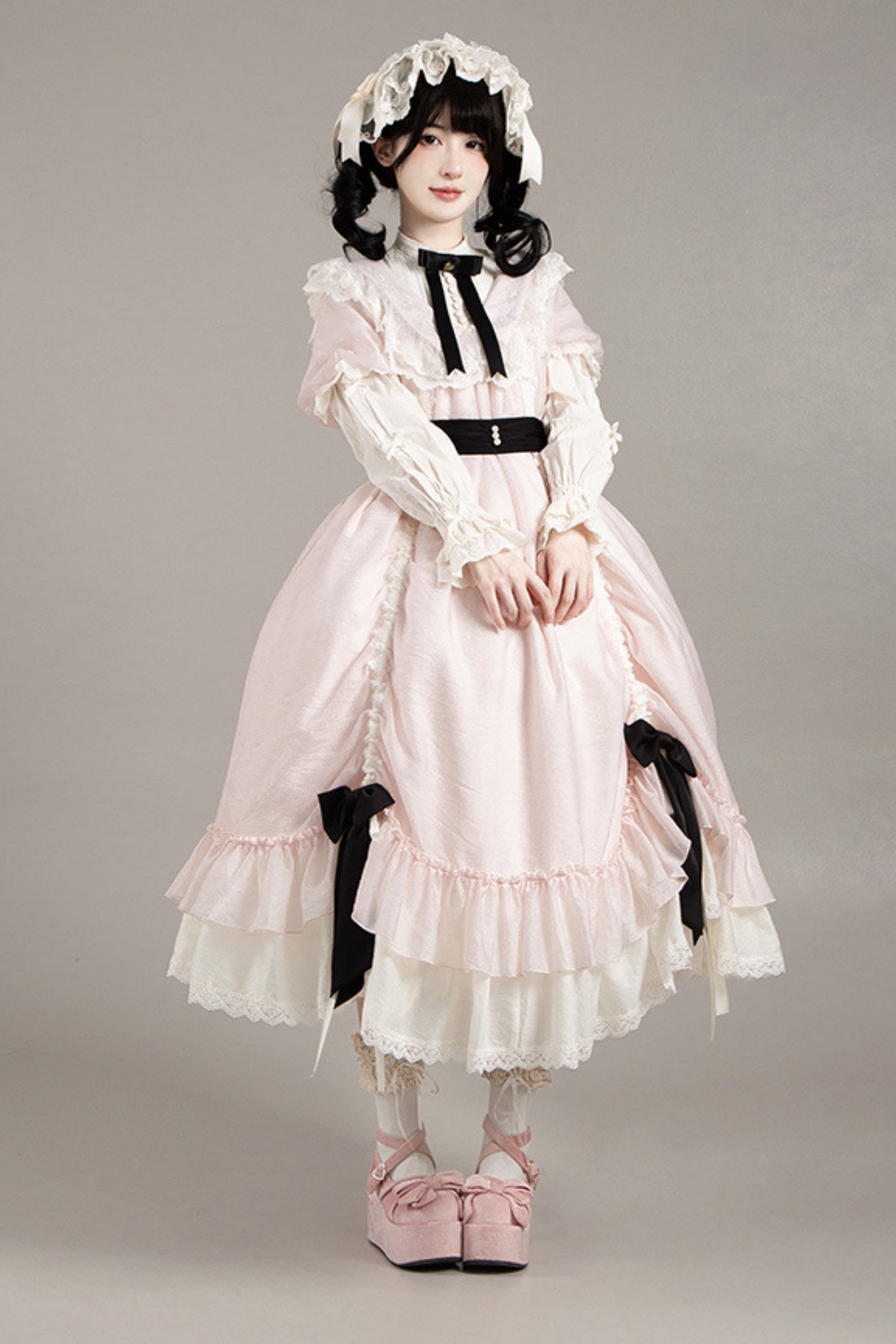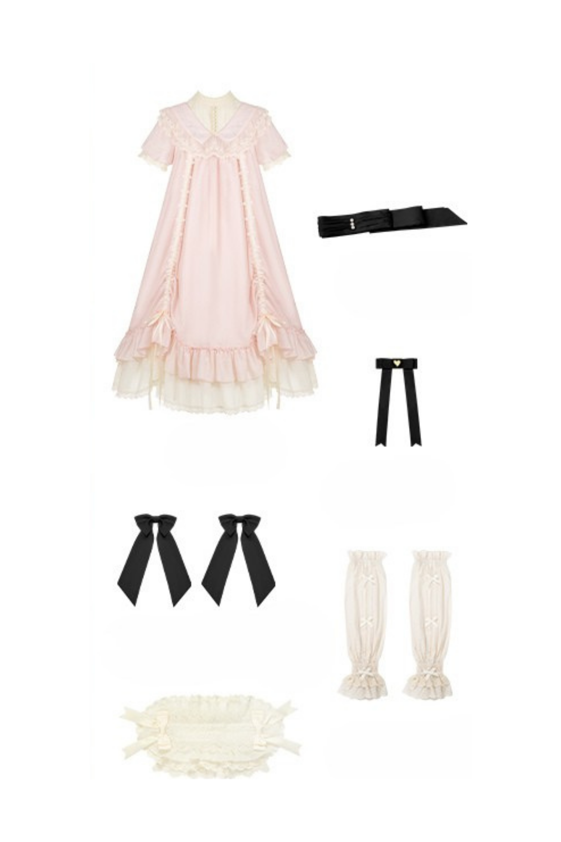 【予約商品】ローズフリルロリータドレス+ドレス+ベルト+ブローチ+リボン+ヘッドバンド+スリーブ