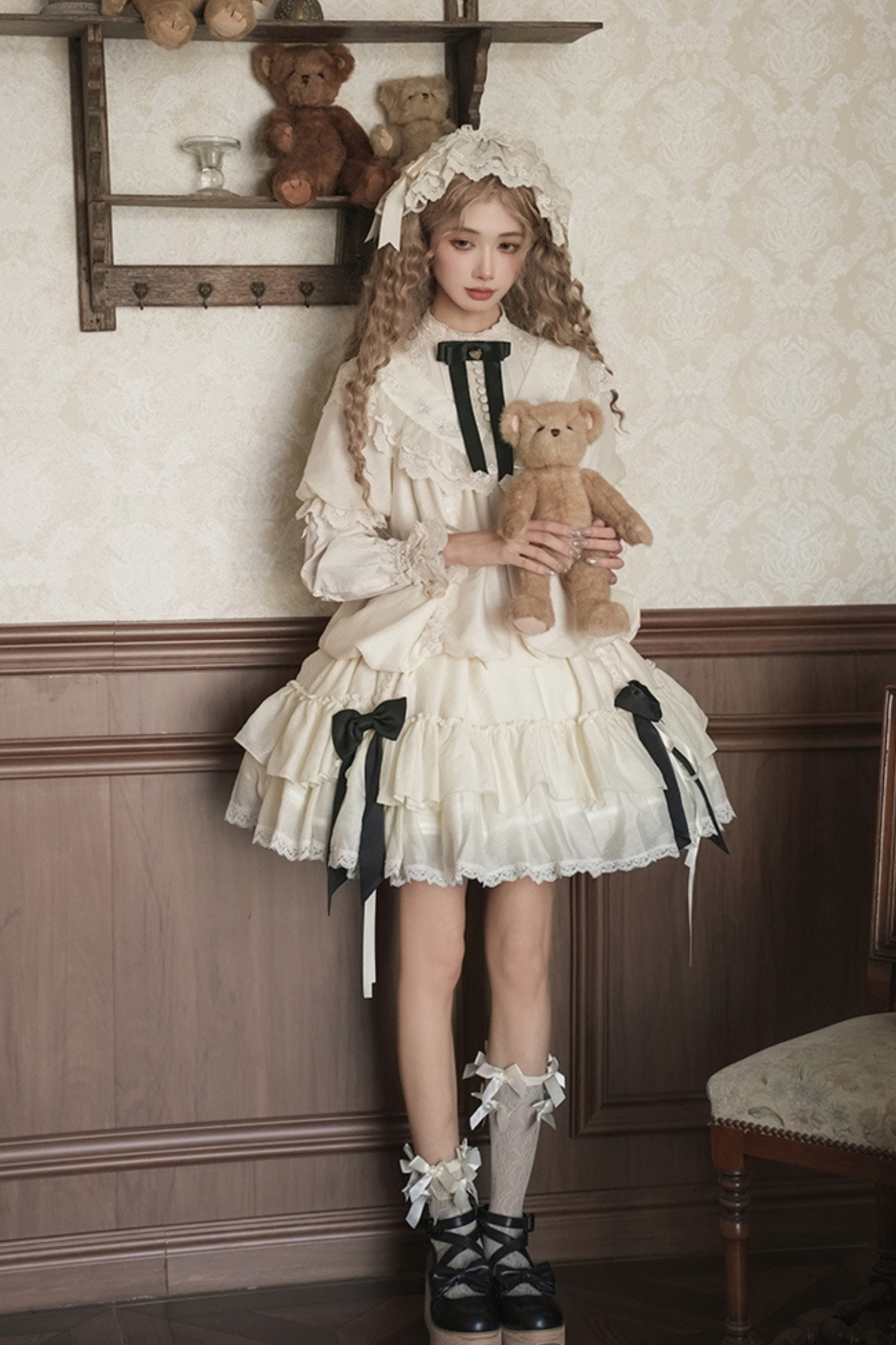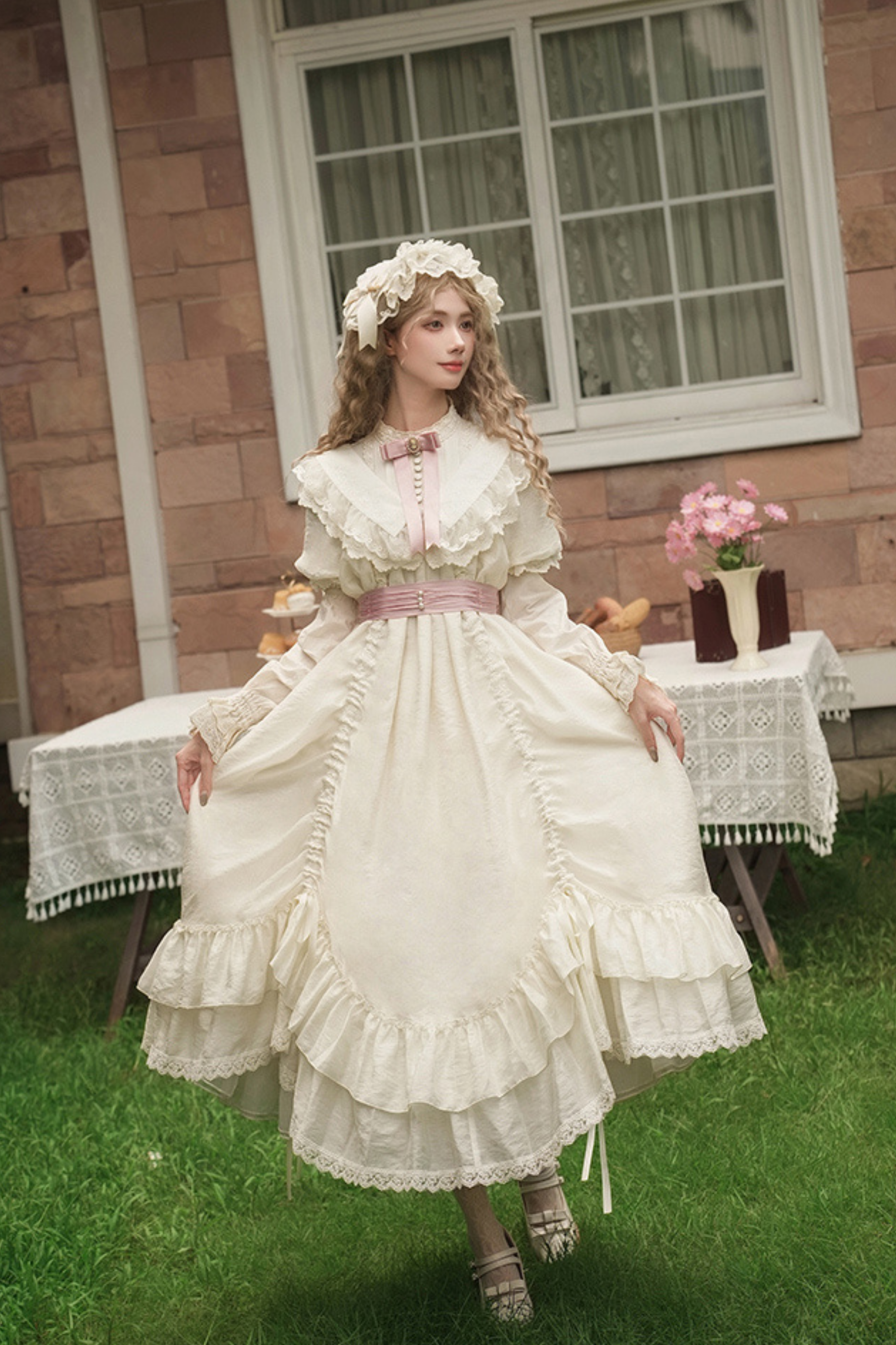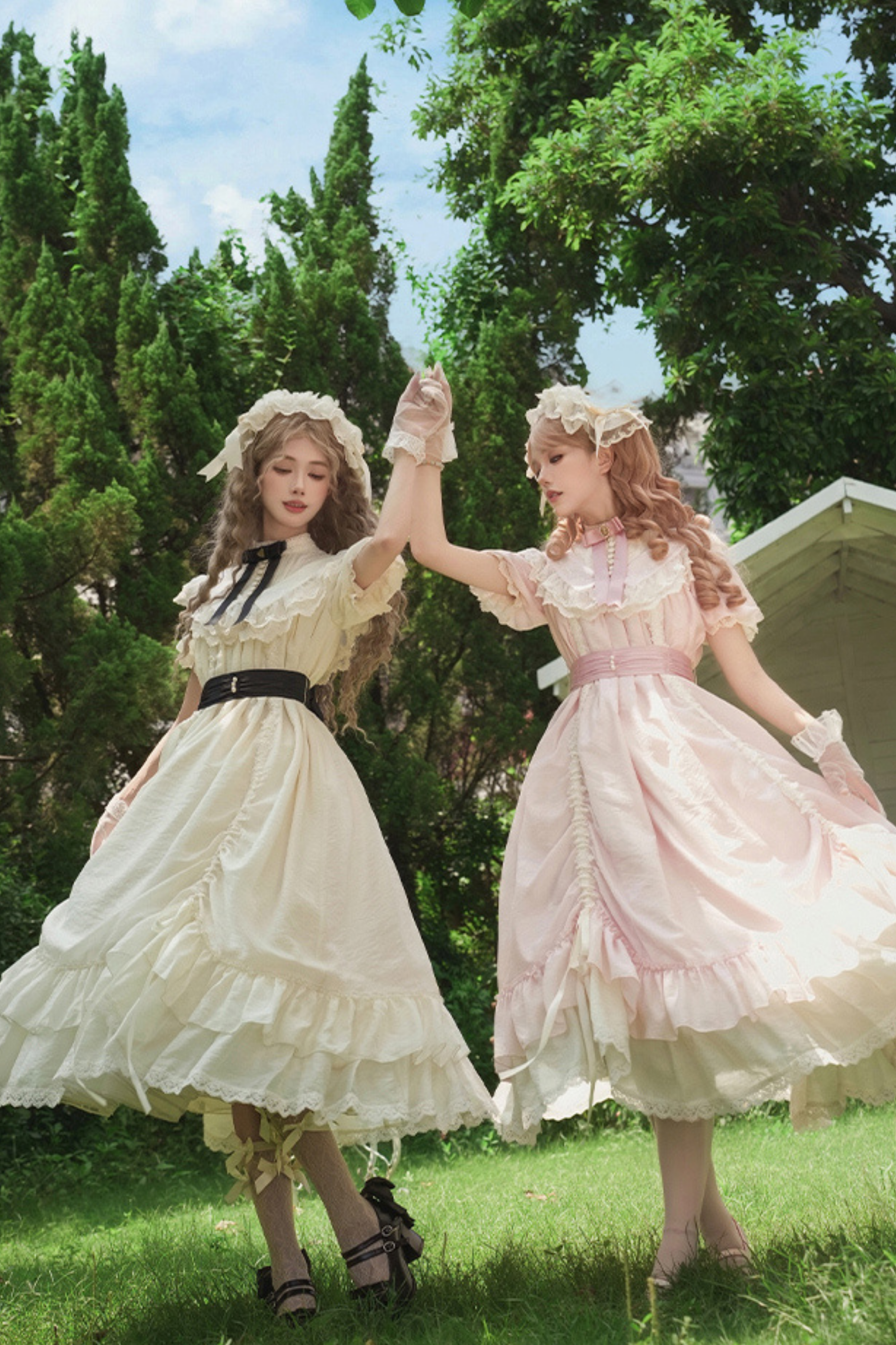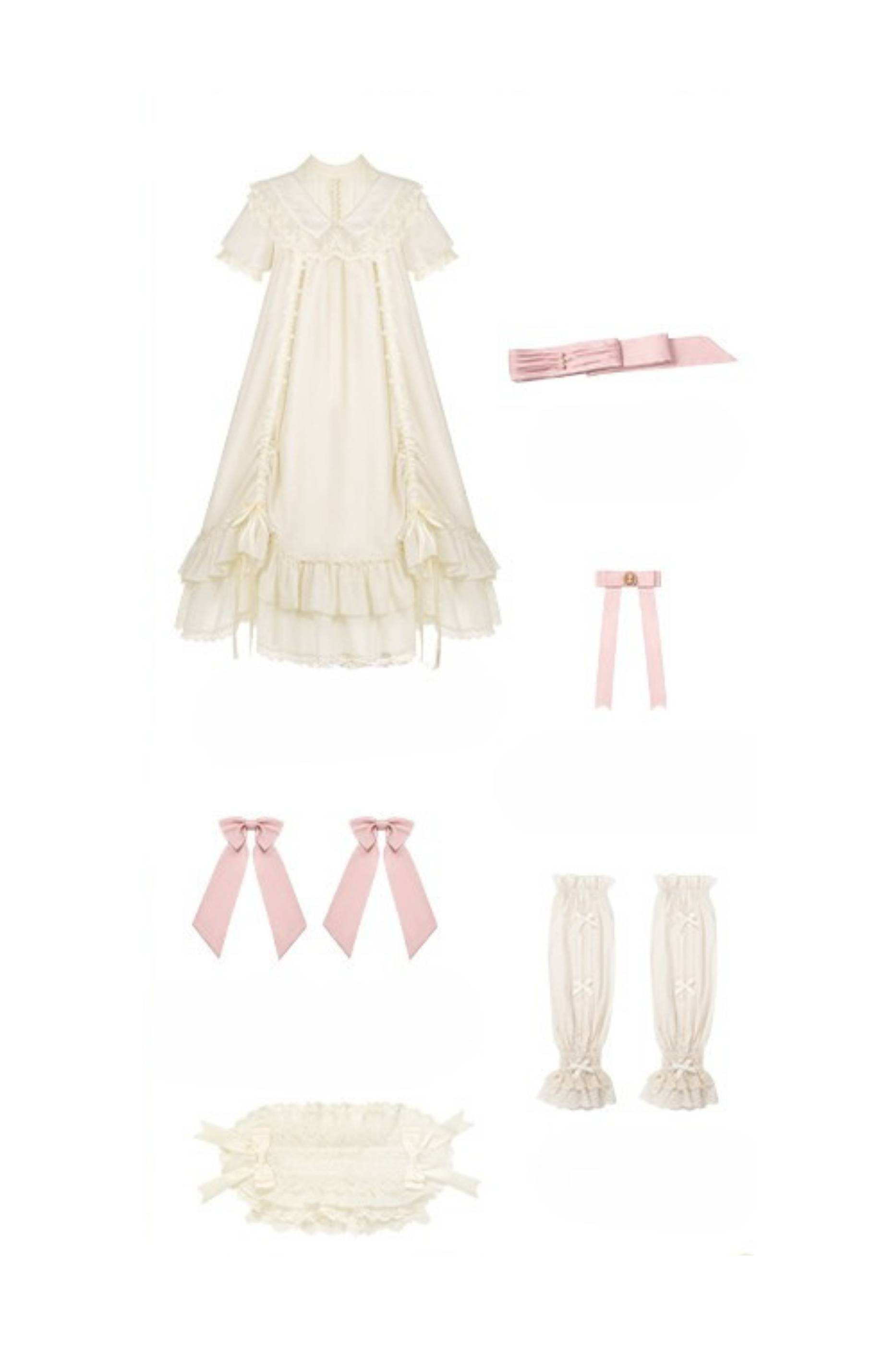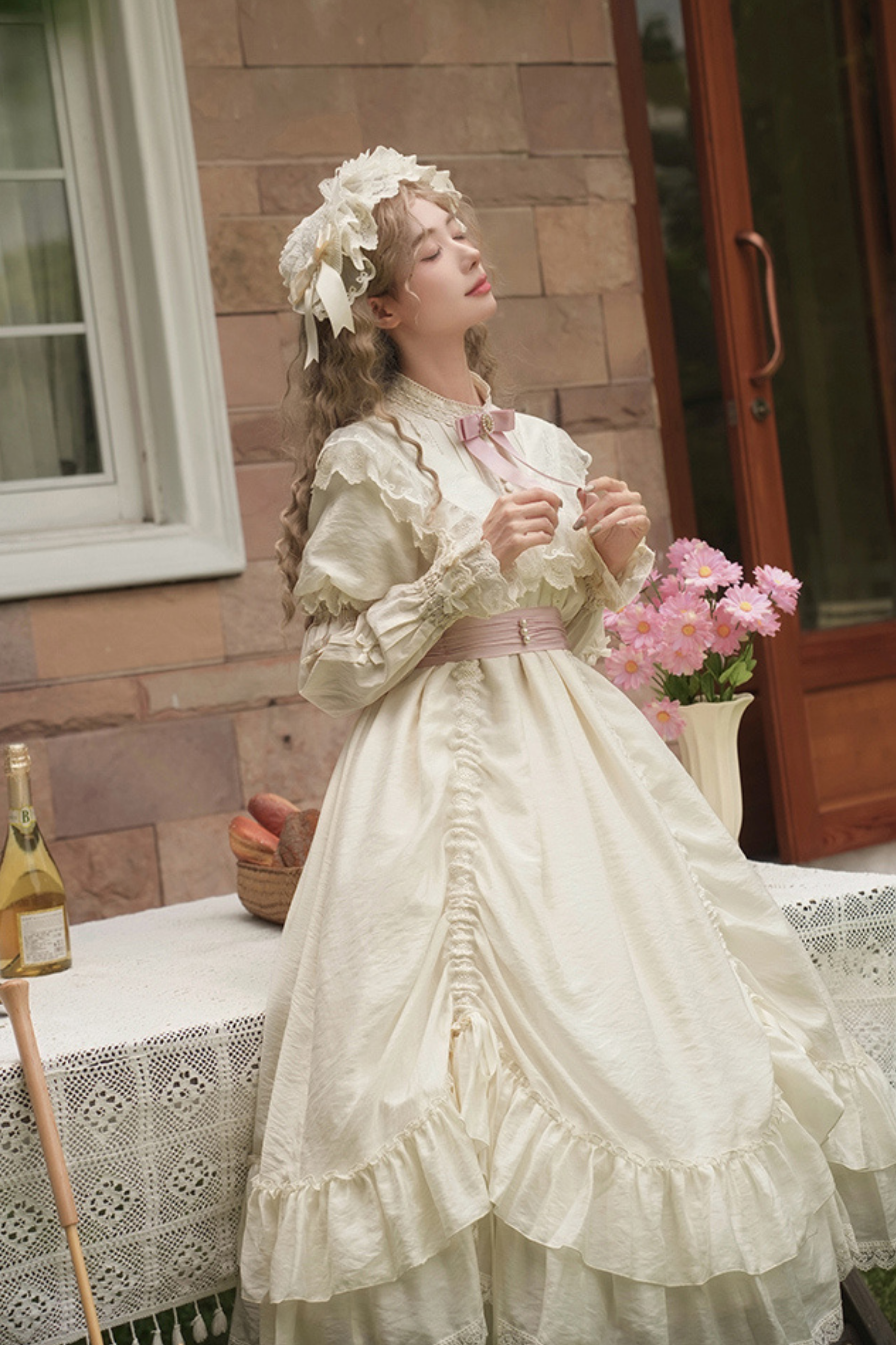【予約商品】ローズフリルロリータドレス+ドレス+ベルト+ブローチ+リボン+ヘッドバンド+スリーブ