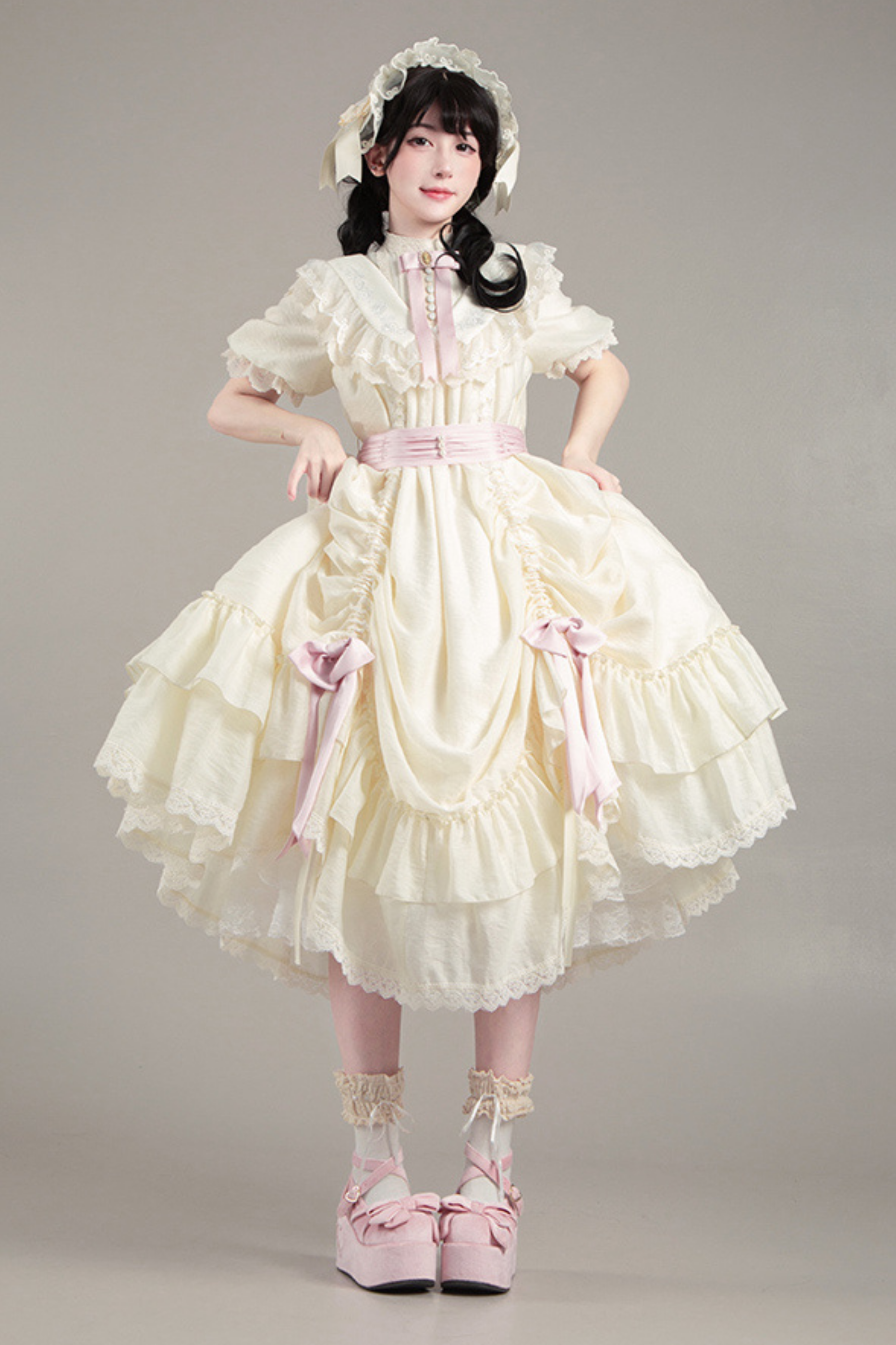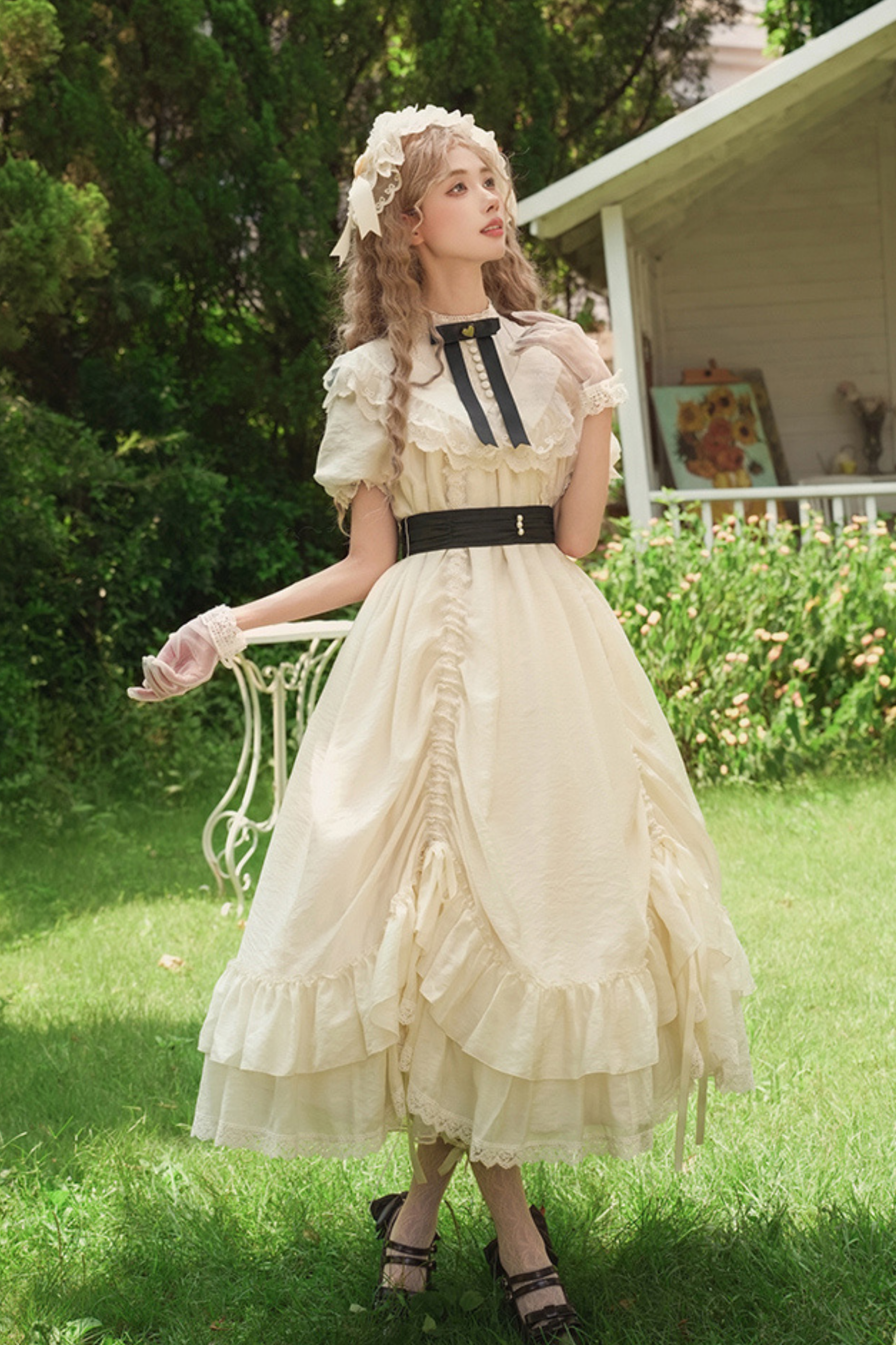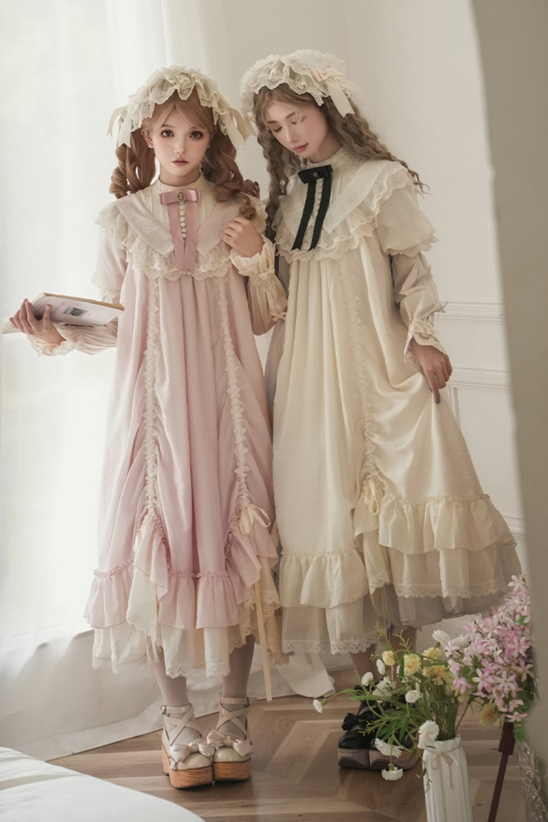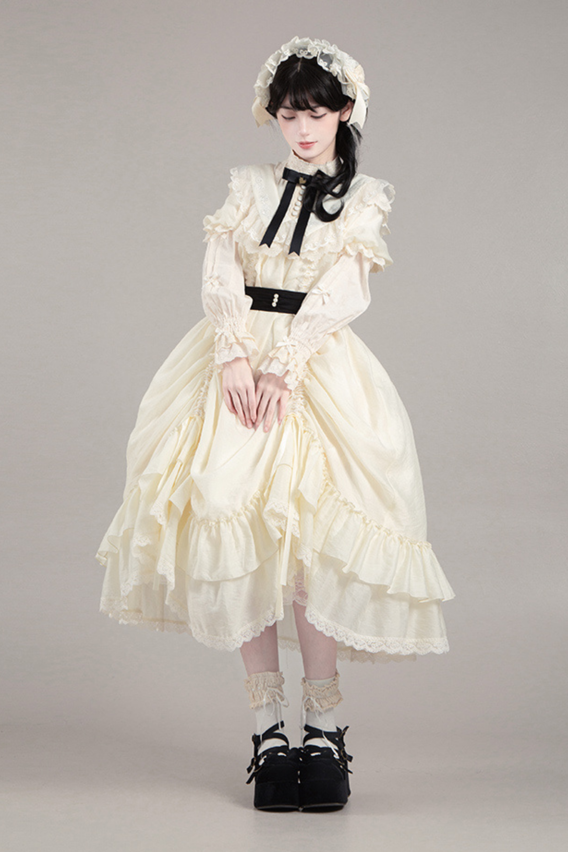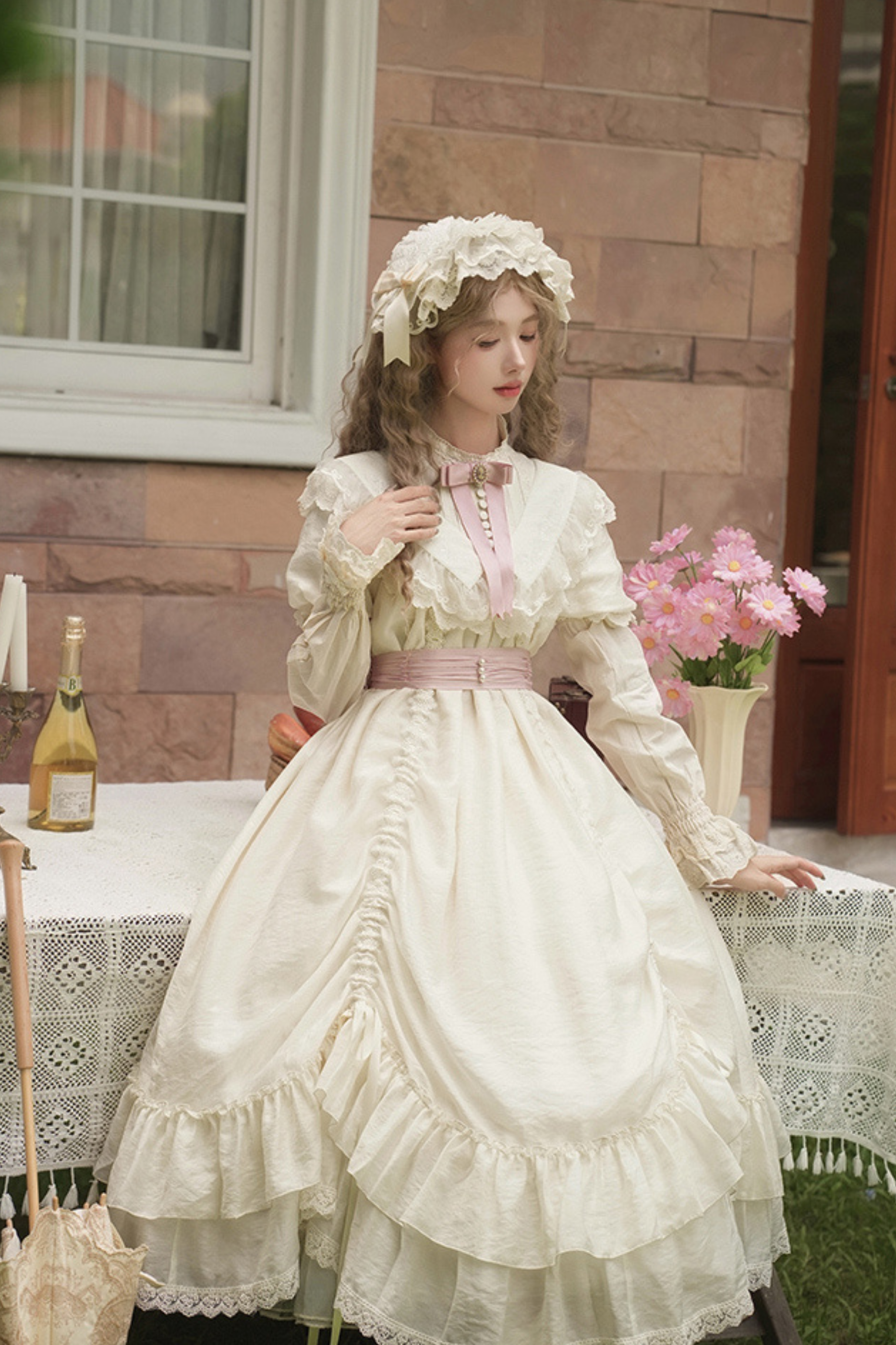 【予約商品】ローズフリルロリータドレス+ドレス+ベルト+ブローチ+リボン+ヘッドバンド+スリーブ