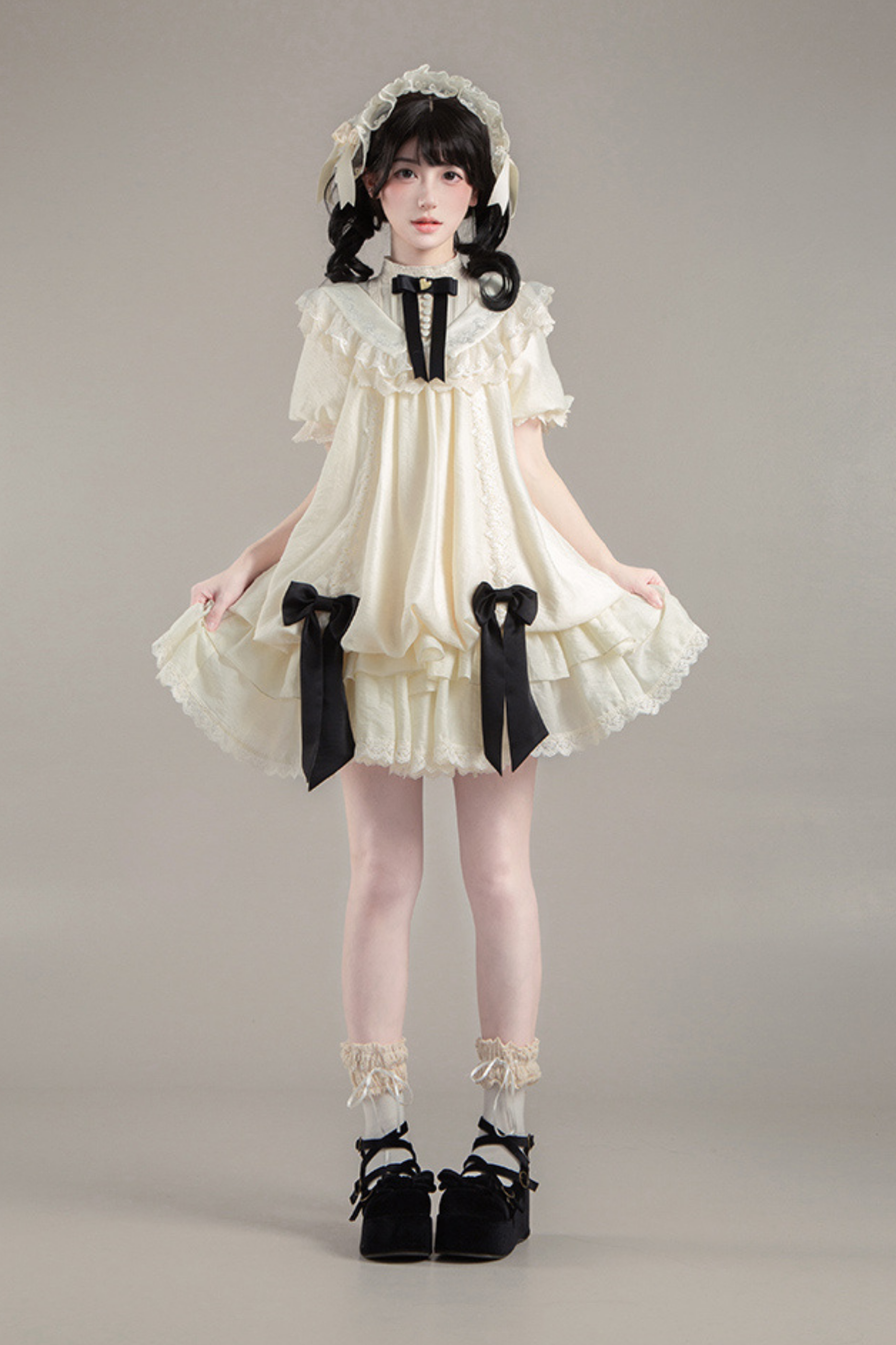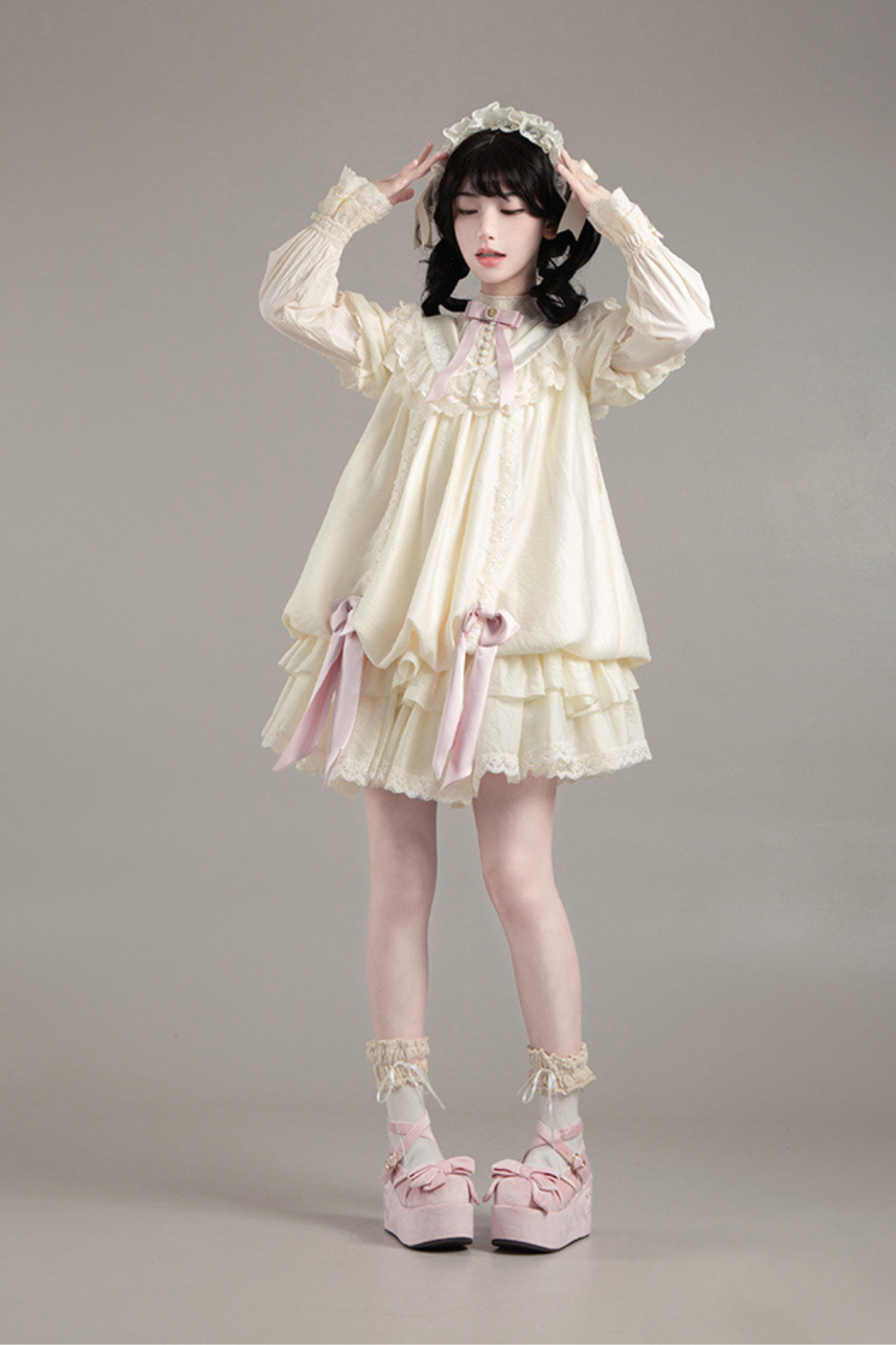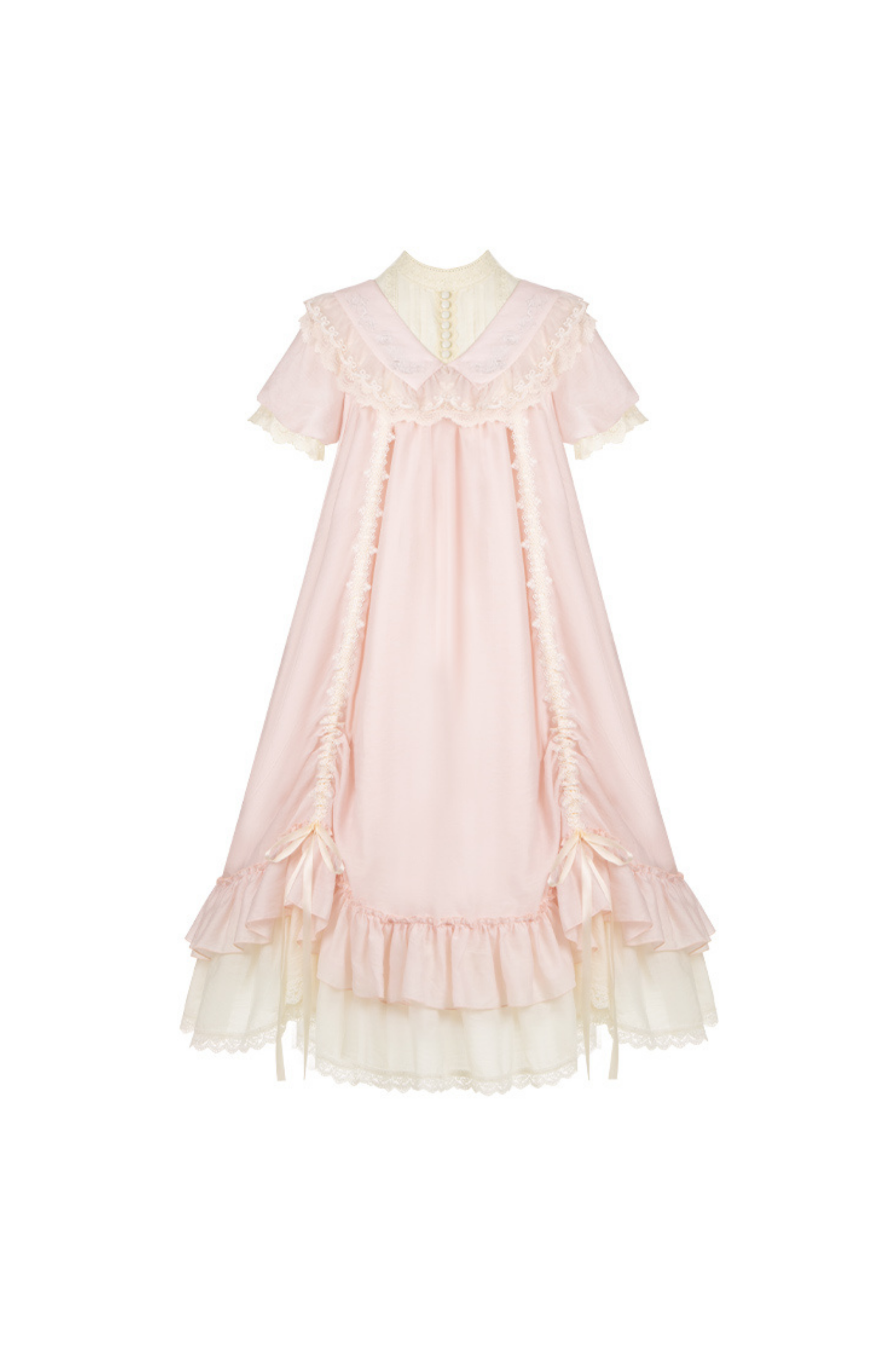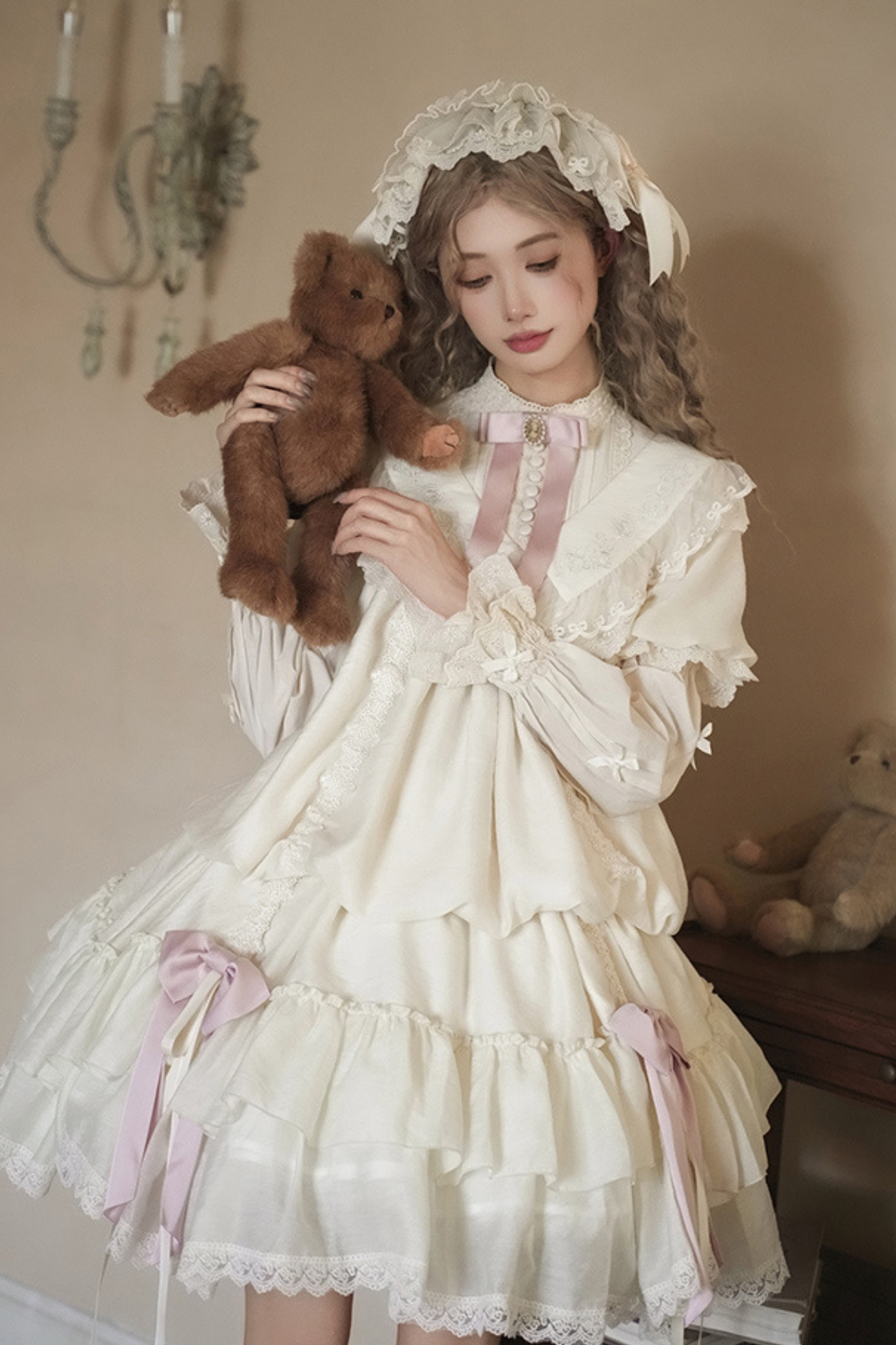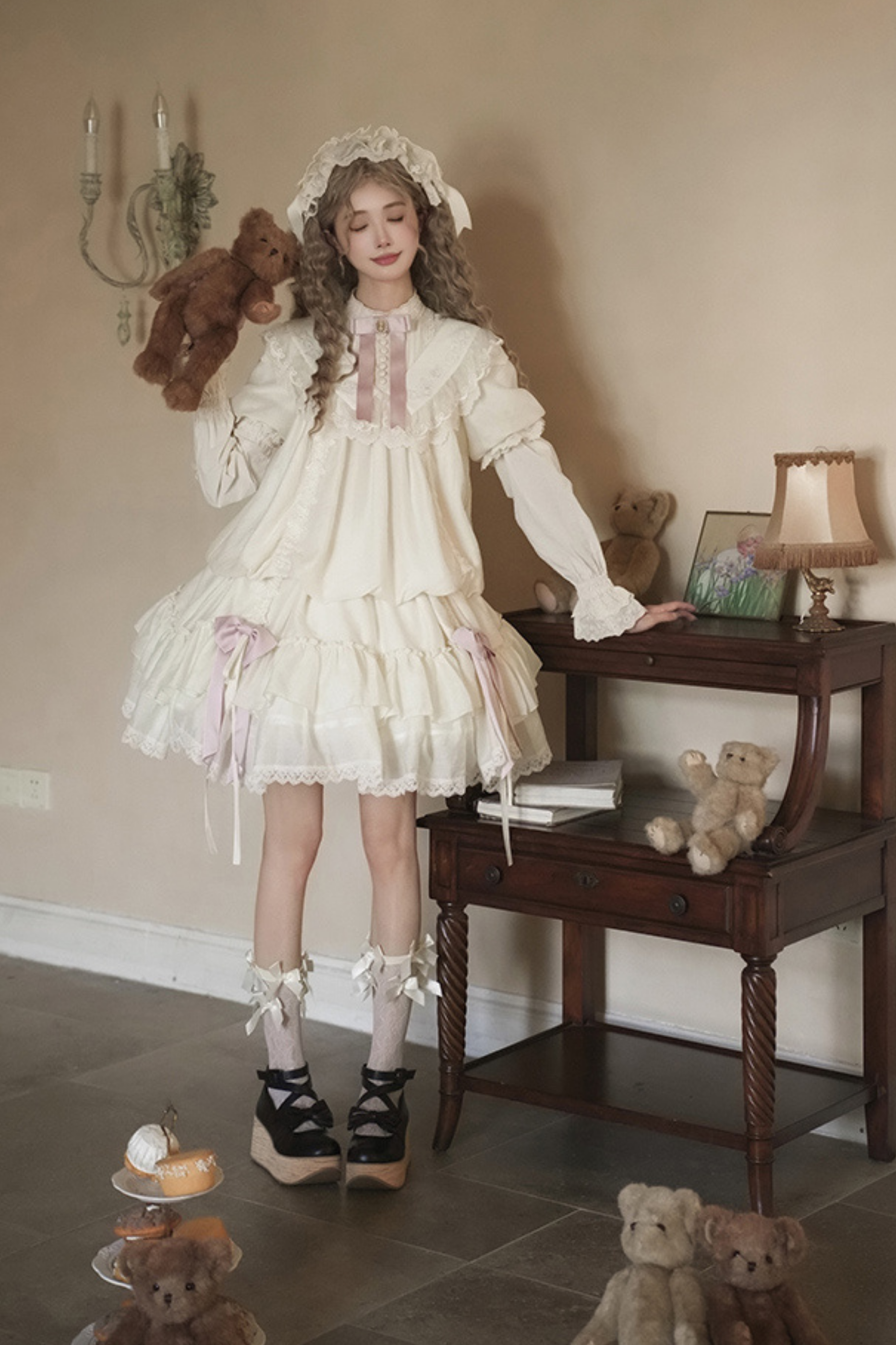 【予約商品】ローズフリルロリータドレス+ドレス+ベルト+ブローチ+リボン+ヘッドバンド+スリーブ