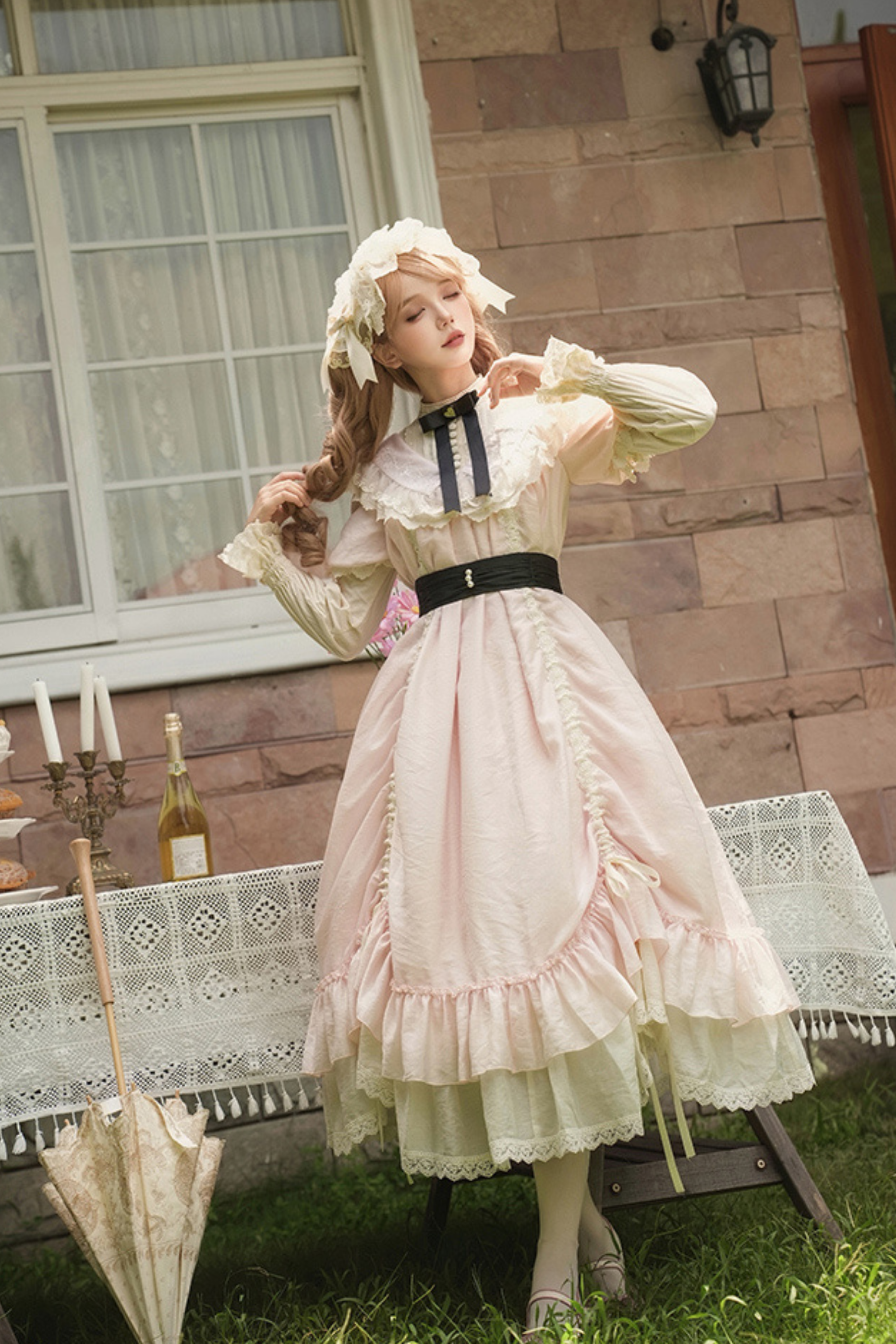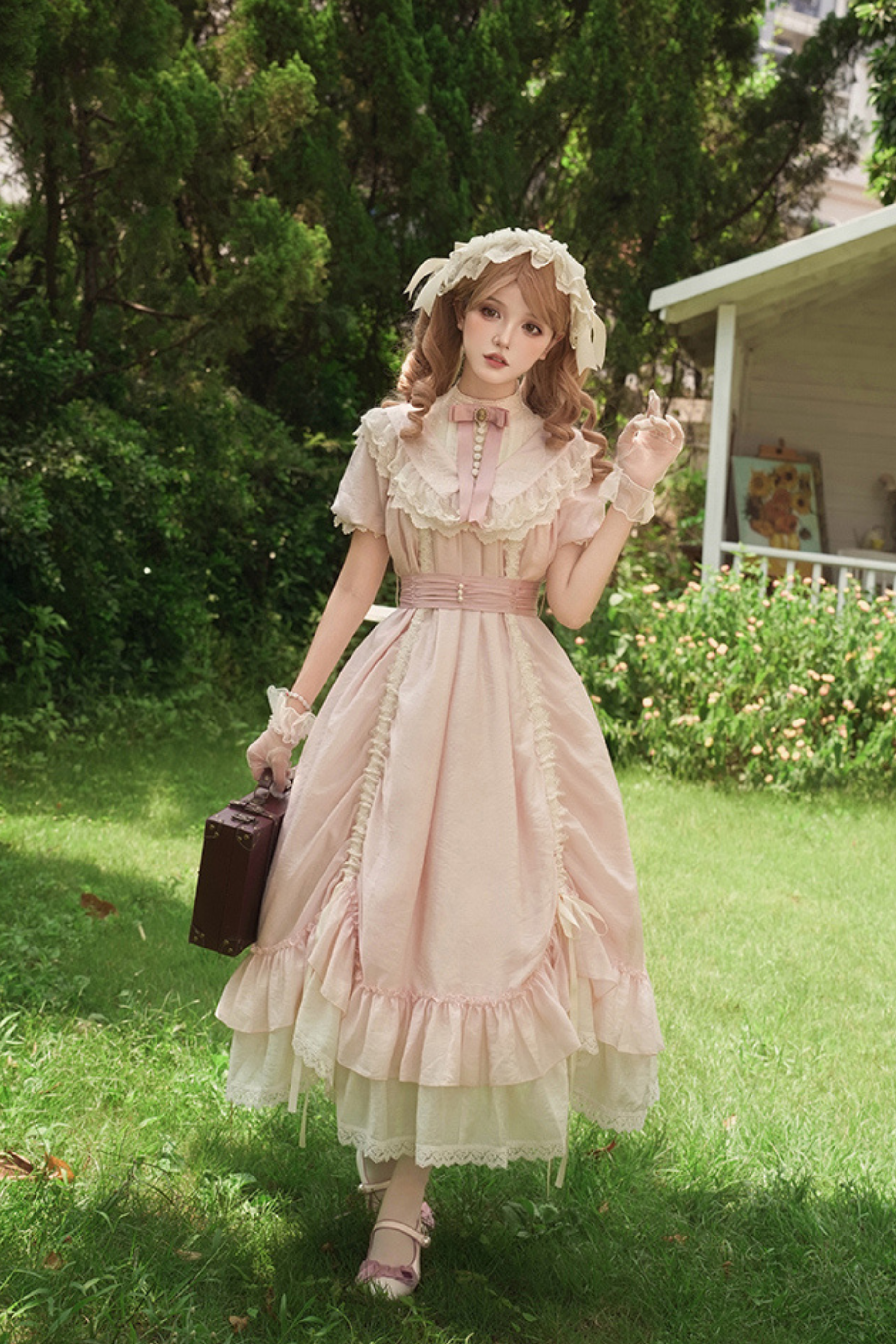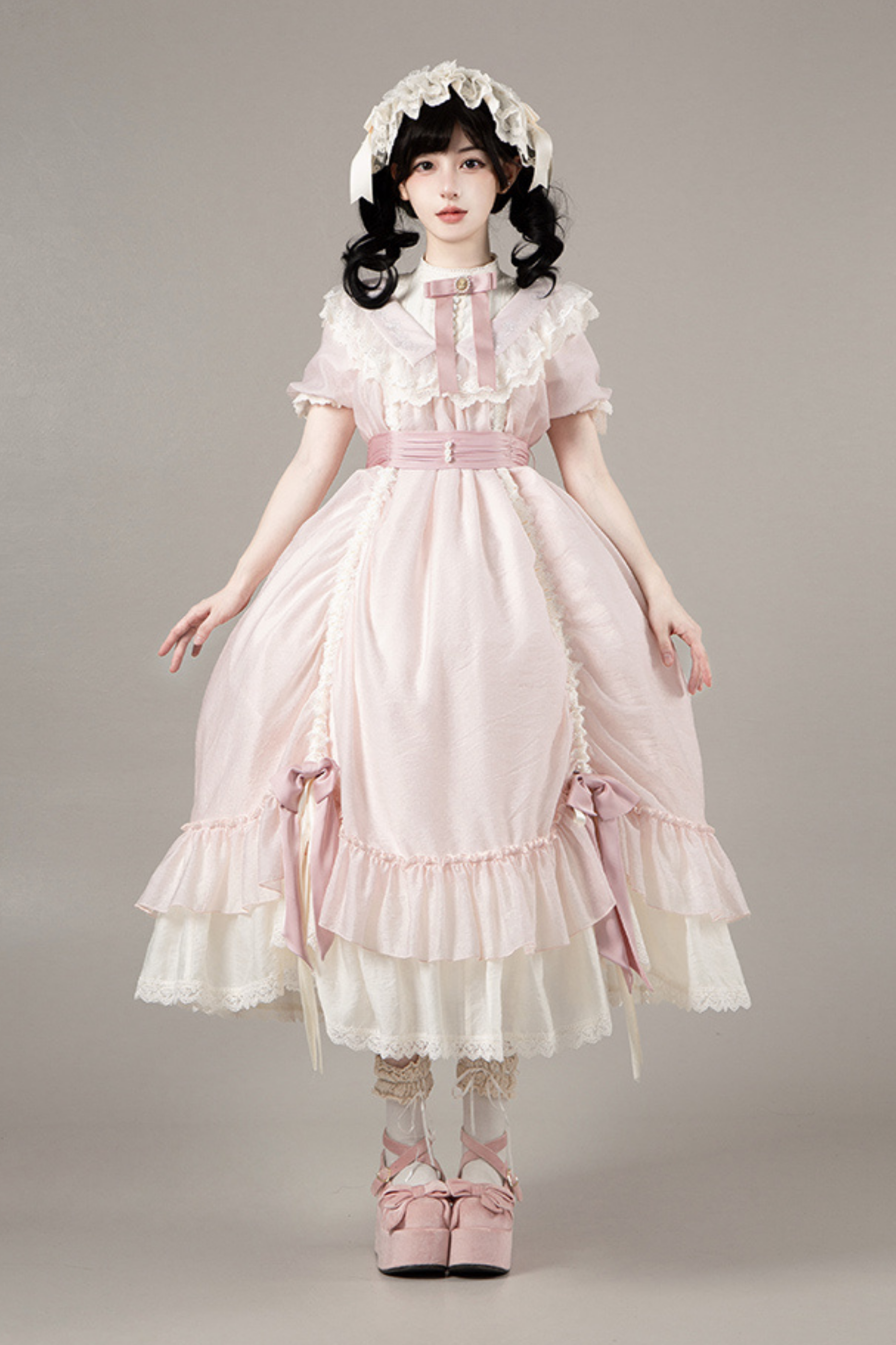 ❤【予約商品】ローズフリルロリータドレス+ドレス+ベルト+ブローチ+リボン+ヘッドバンド+スリーブ❤