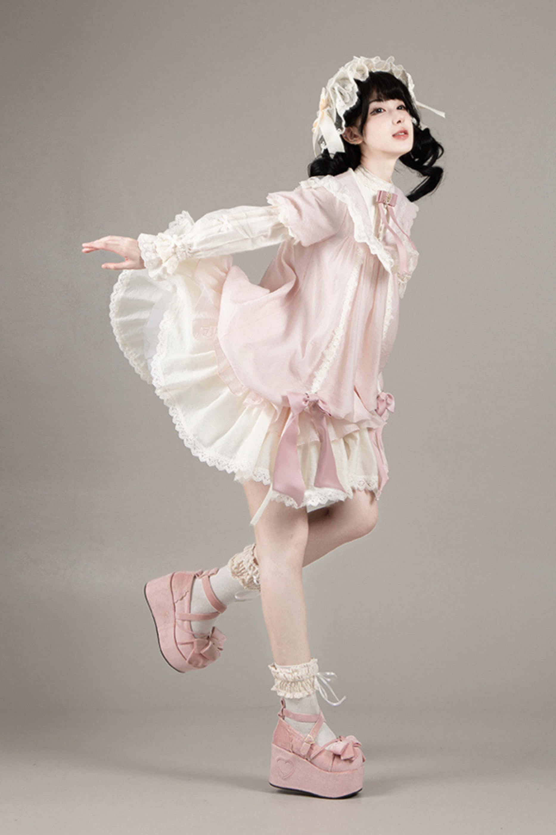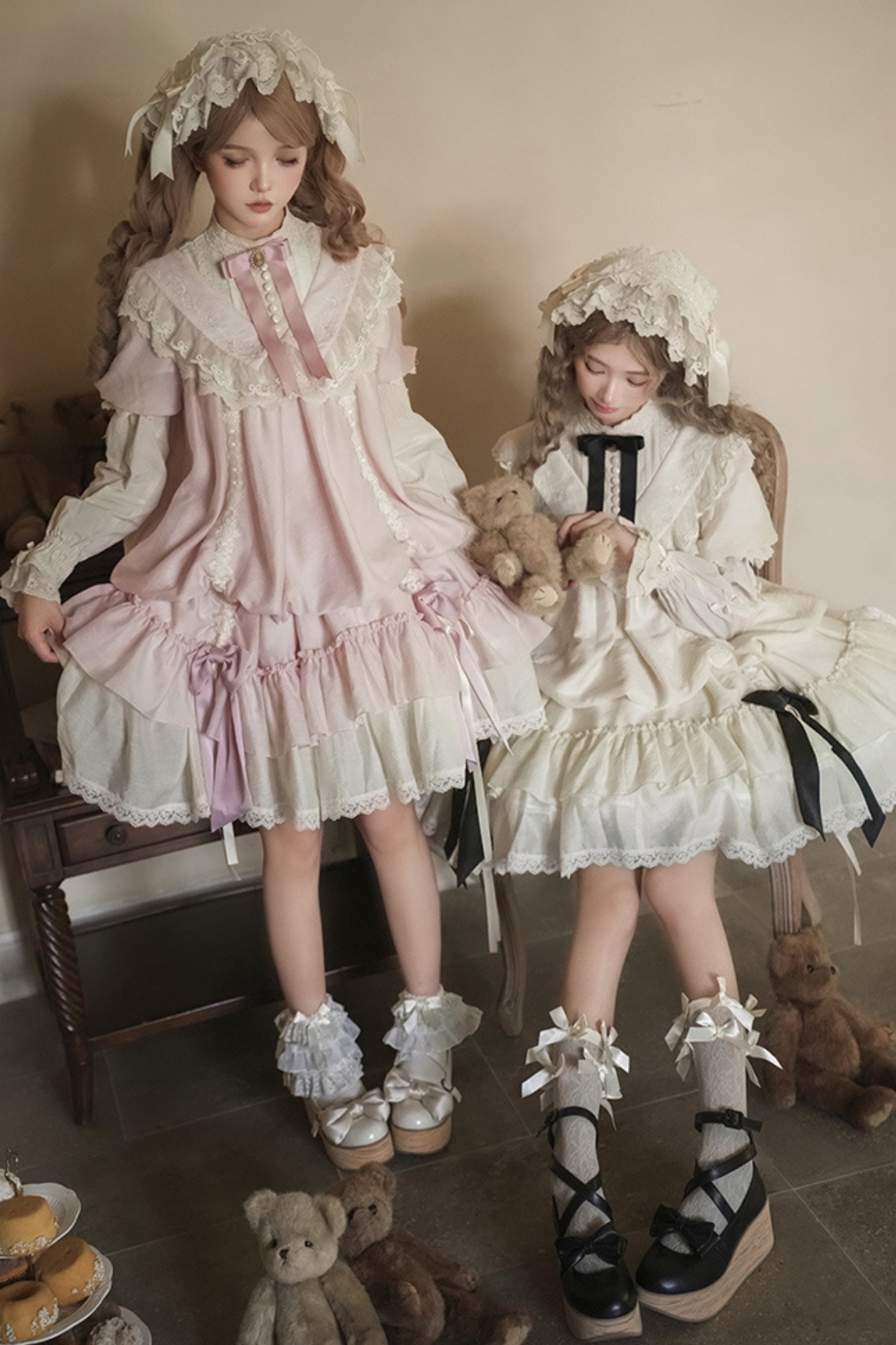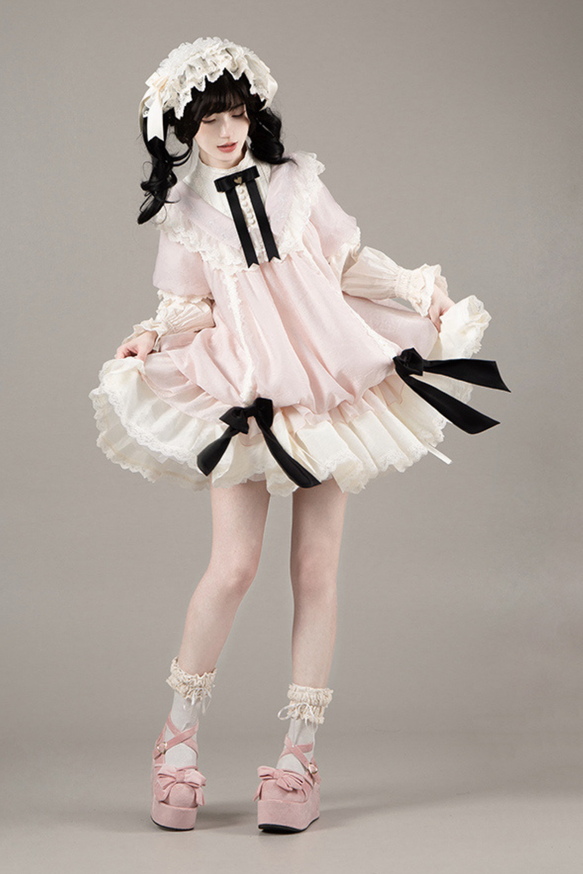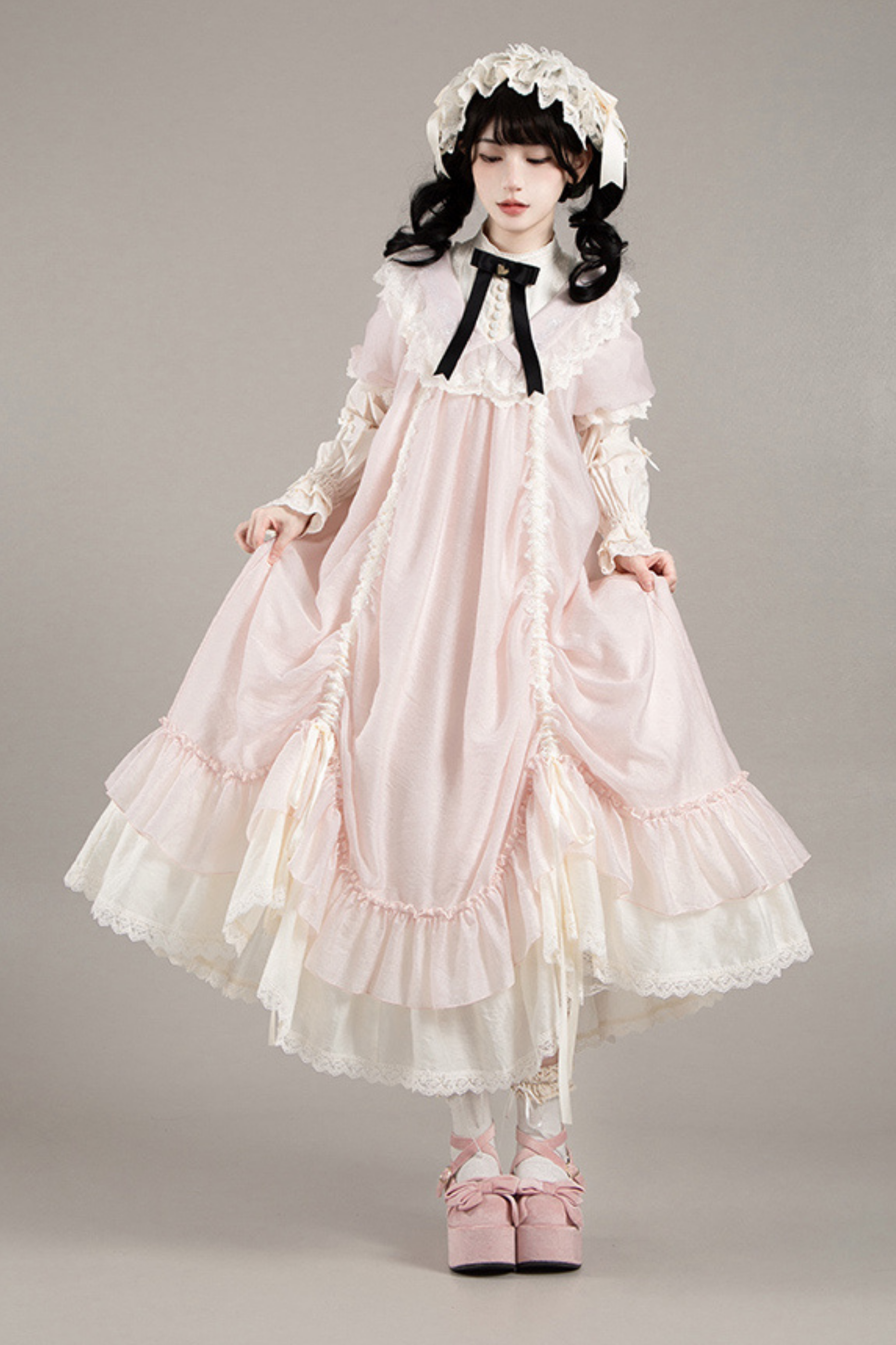 ❤【予約商品】ローズフリルロリータドレス+ドレス+ベルト+ブローチ+リボン+ヘッドバンド+スリーブ❤