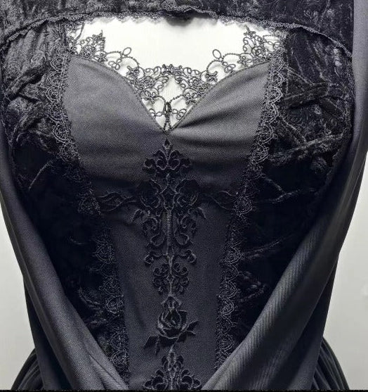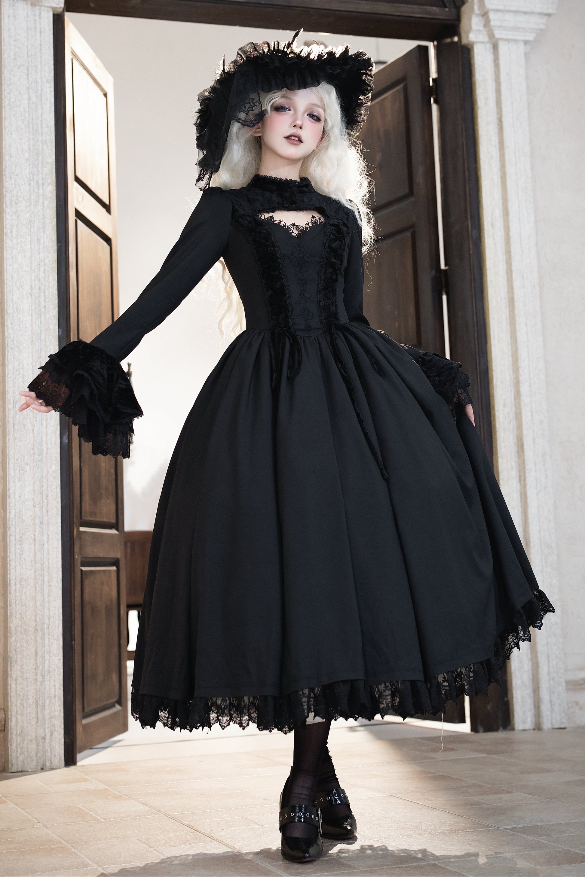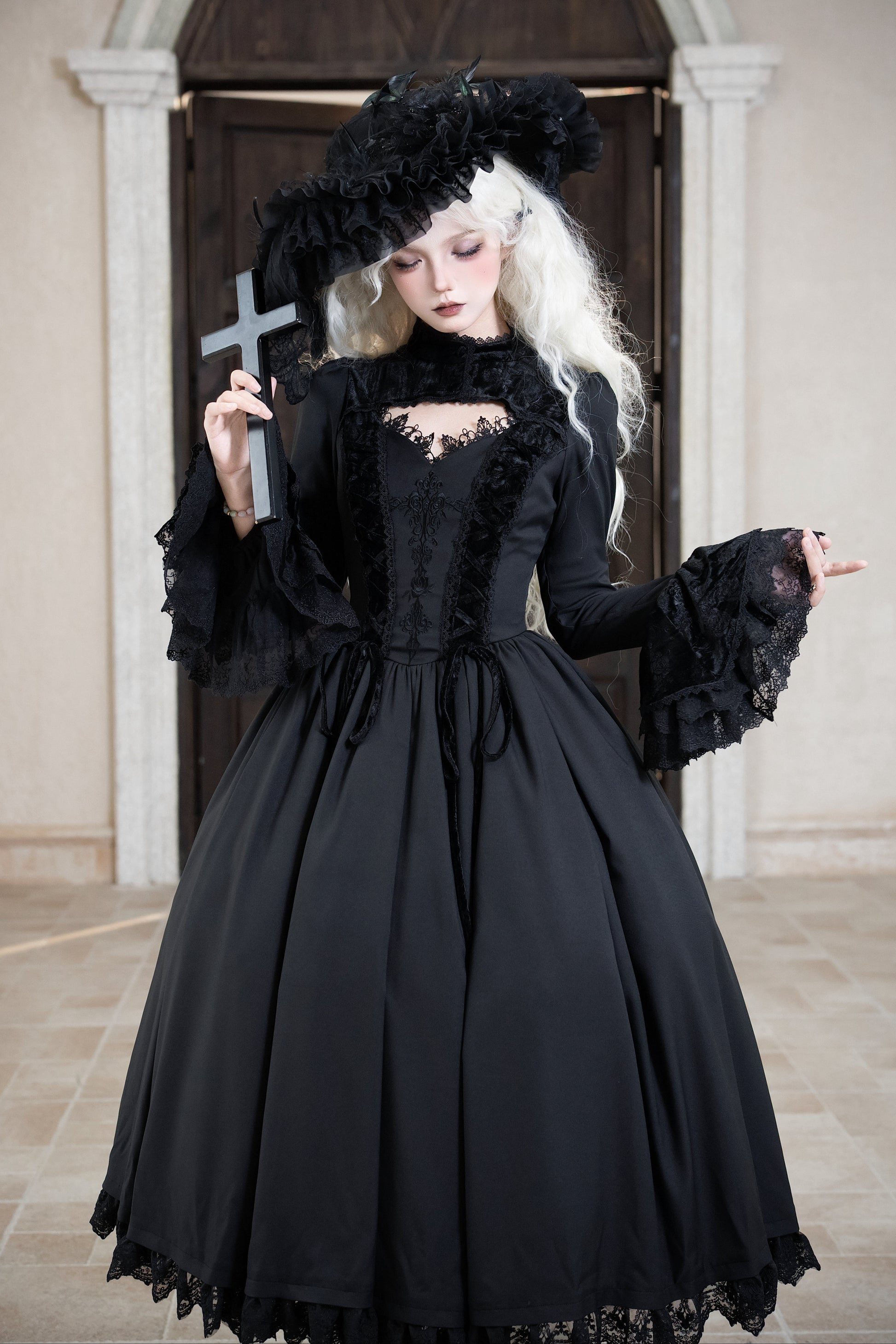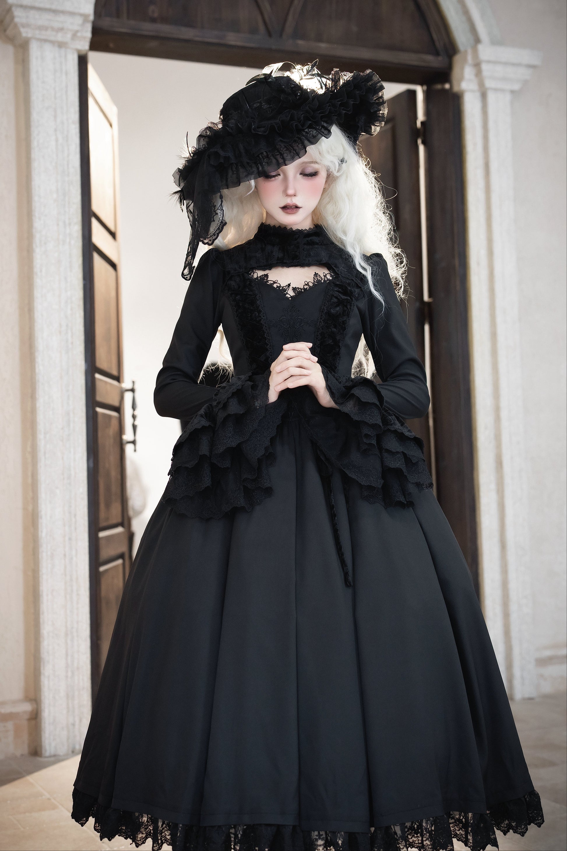 ❤︎【12月13日予約締切】ダークゴシックローズエンブロイダリーブラックベルベットドレス+ヘッドバンド❤︎ ⚠️人気商品のためお届けに1ヶ月-1ヶ月半ほどかかってしまう場合がございます