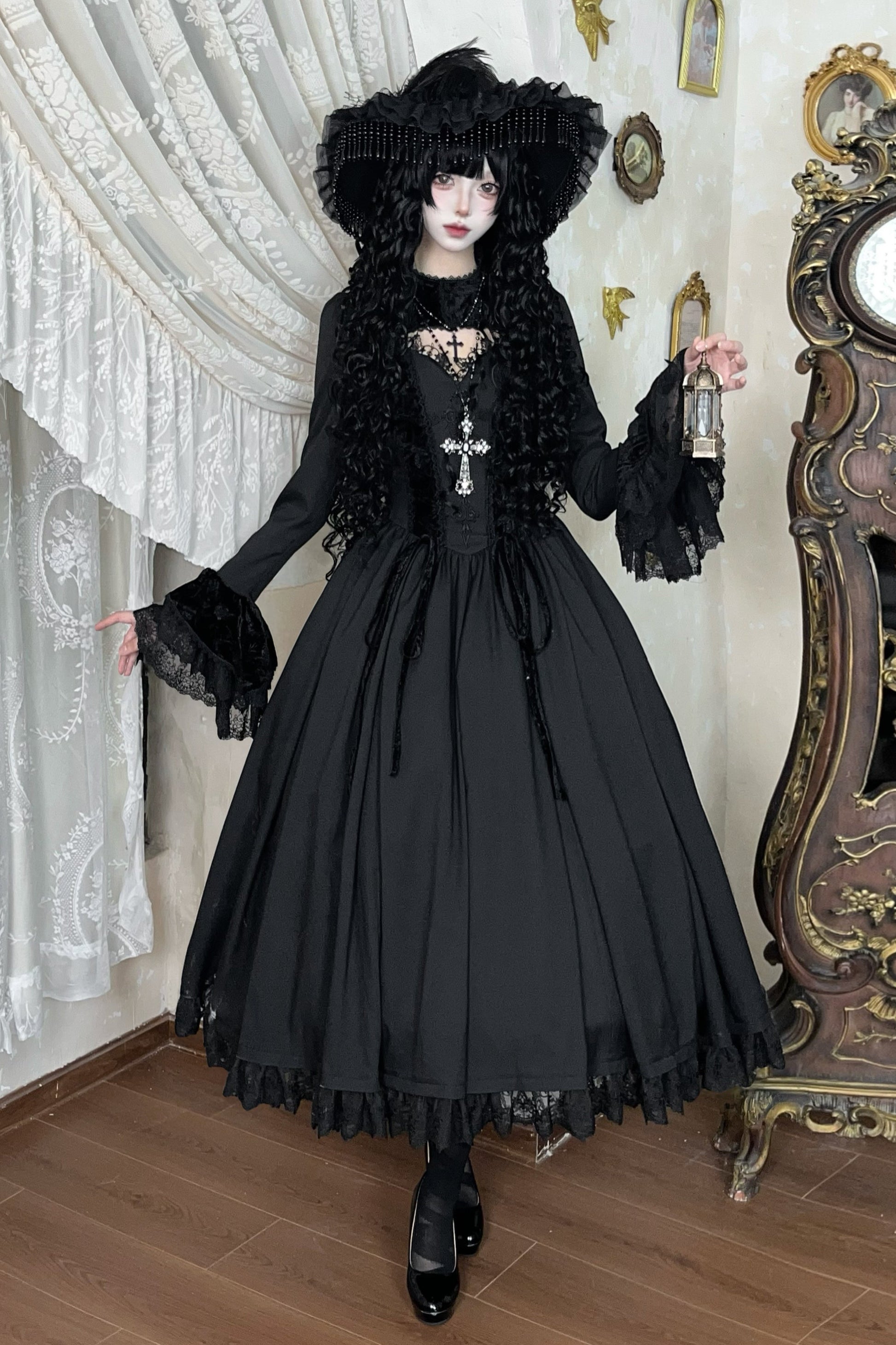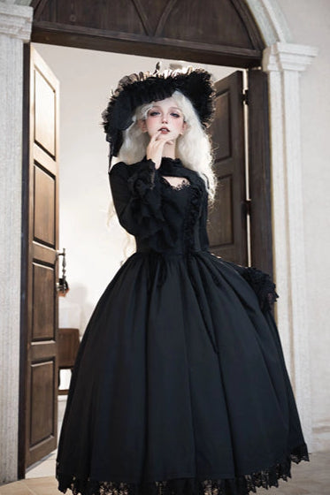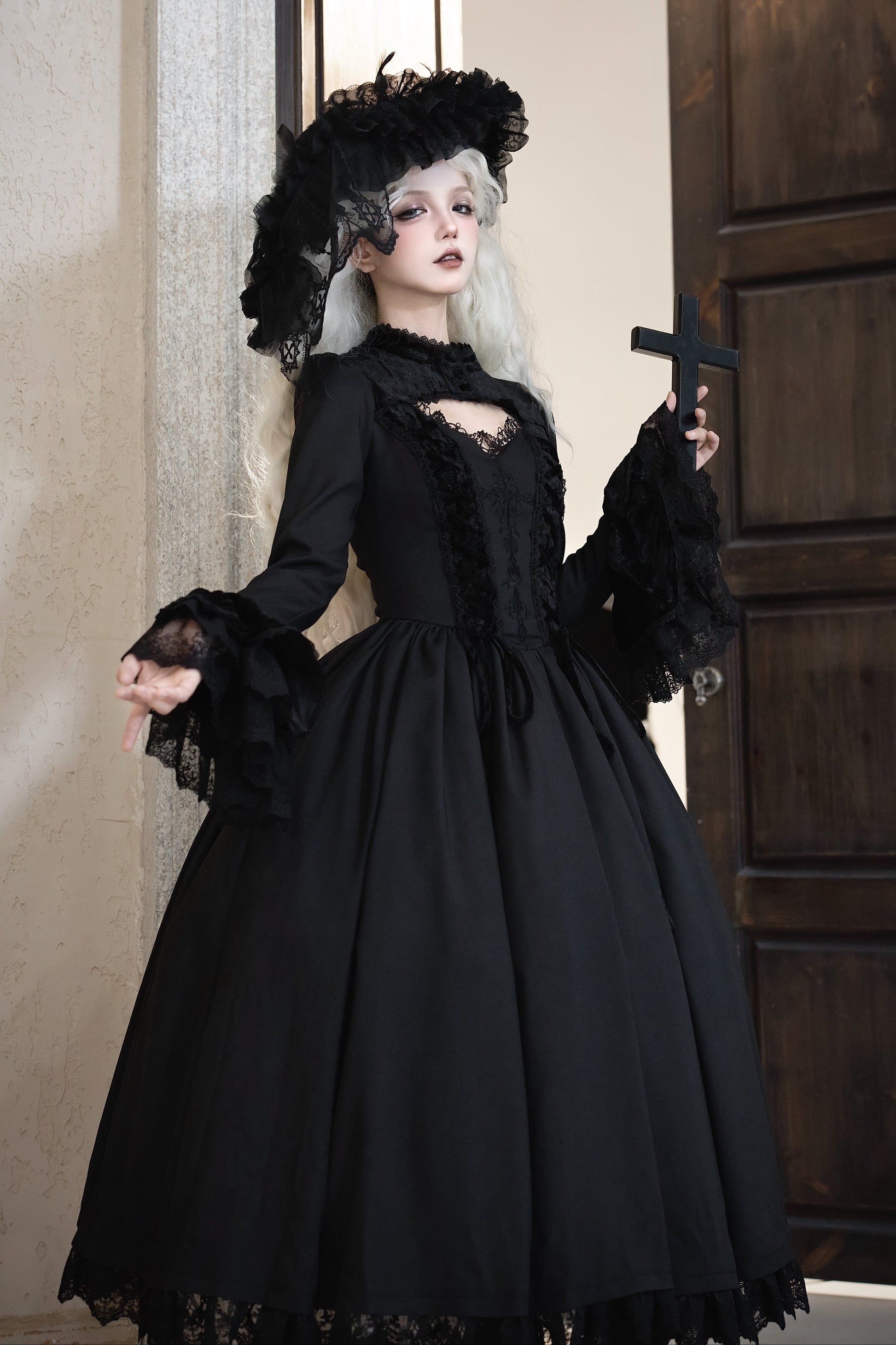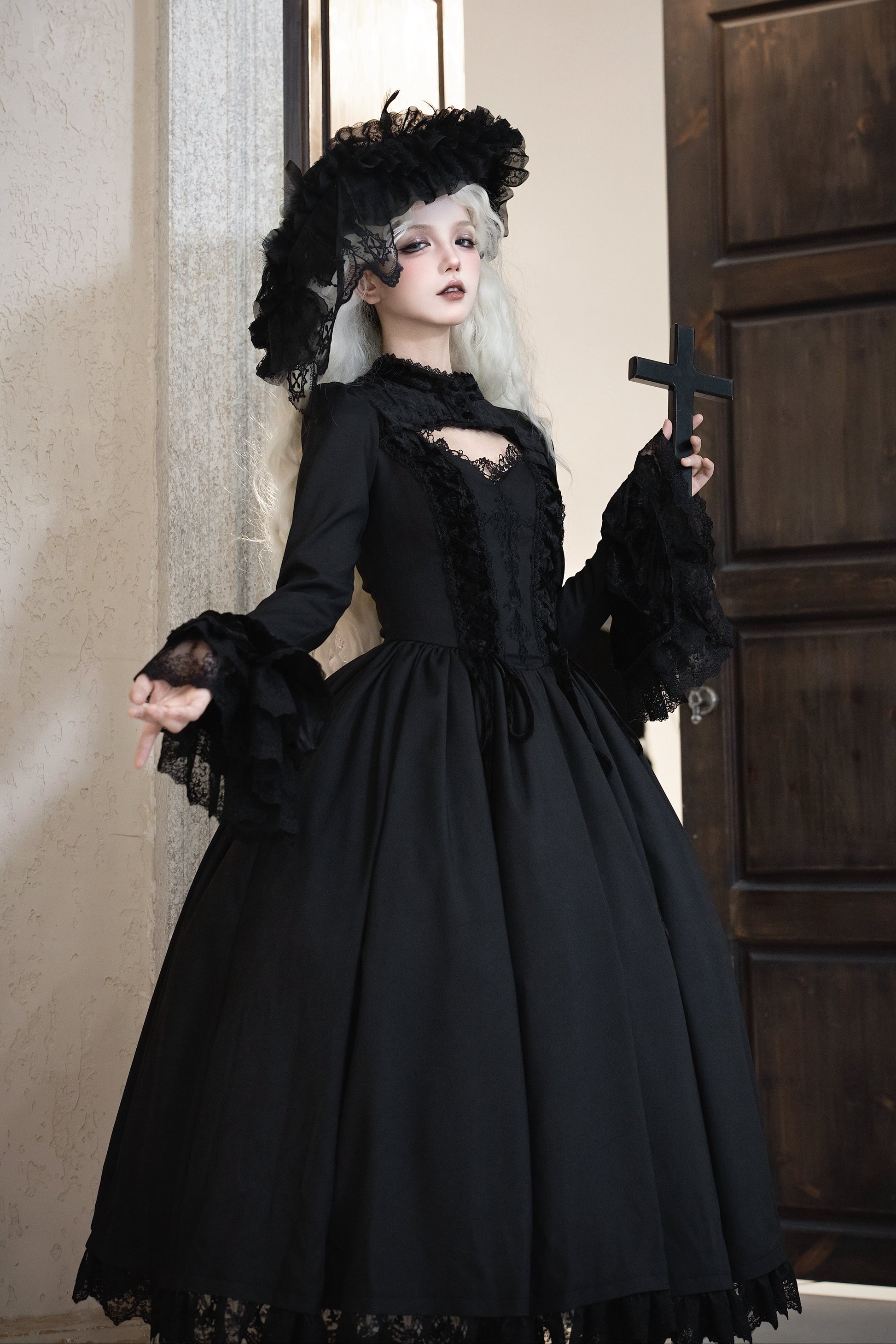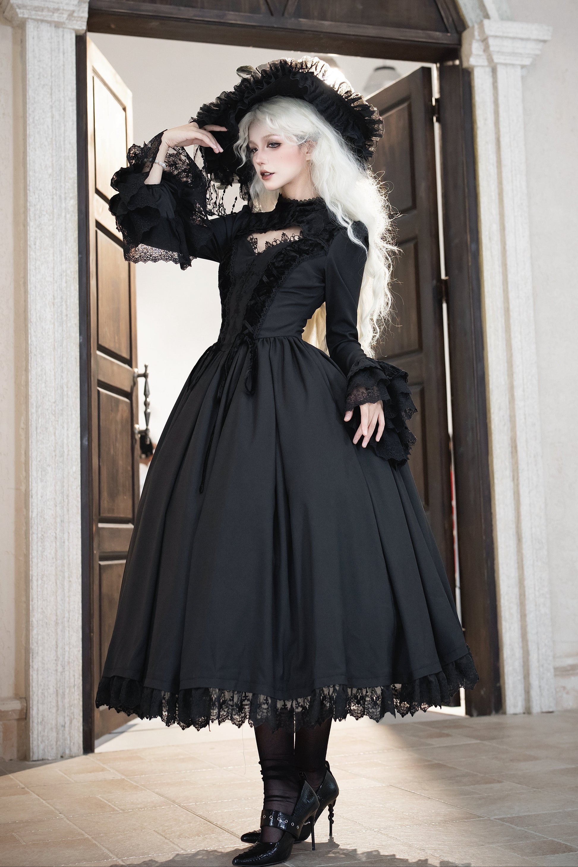 ❤︎【12月13日予約締切】ダークゴシックローズエンブロイダリーブラックベルベットドレス+ヘッドバンド❤︎ ⚠️人気商品のためお届けに1ヶ月-1ヶ月半ほどかかってしまう場合がございます