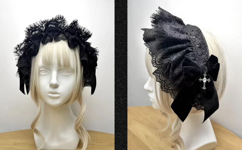 【12月13日予約締切】ダークゴシックローズエンブロイダリーブラックベルベットドレス+ヘッドバンド