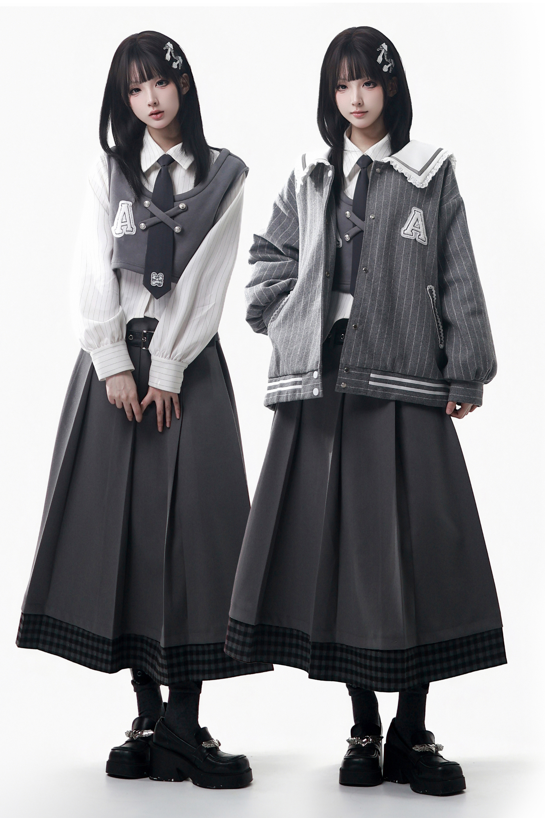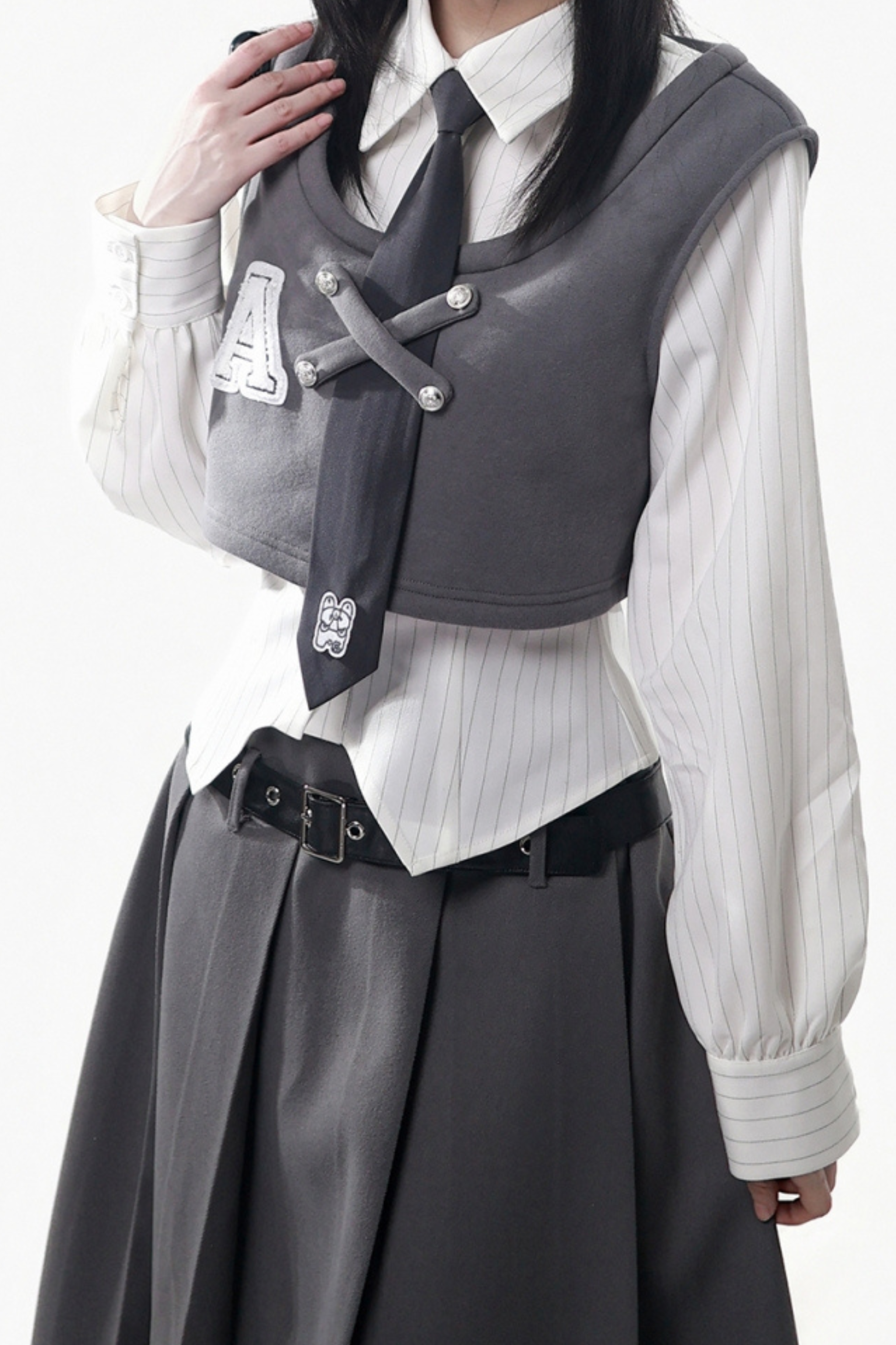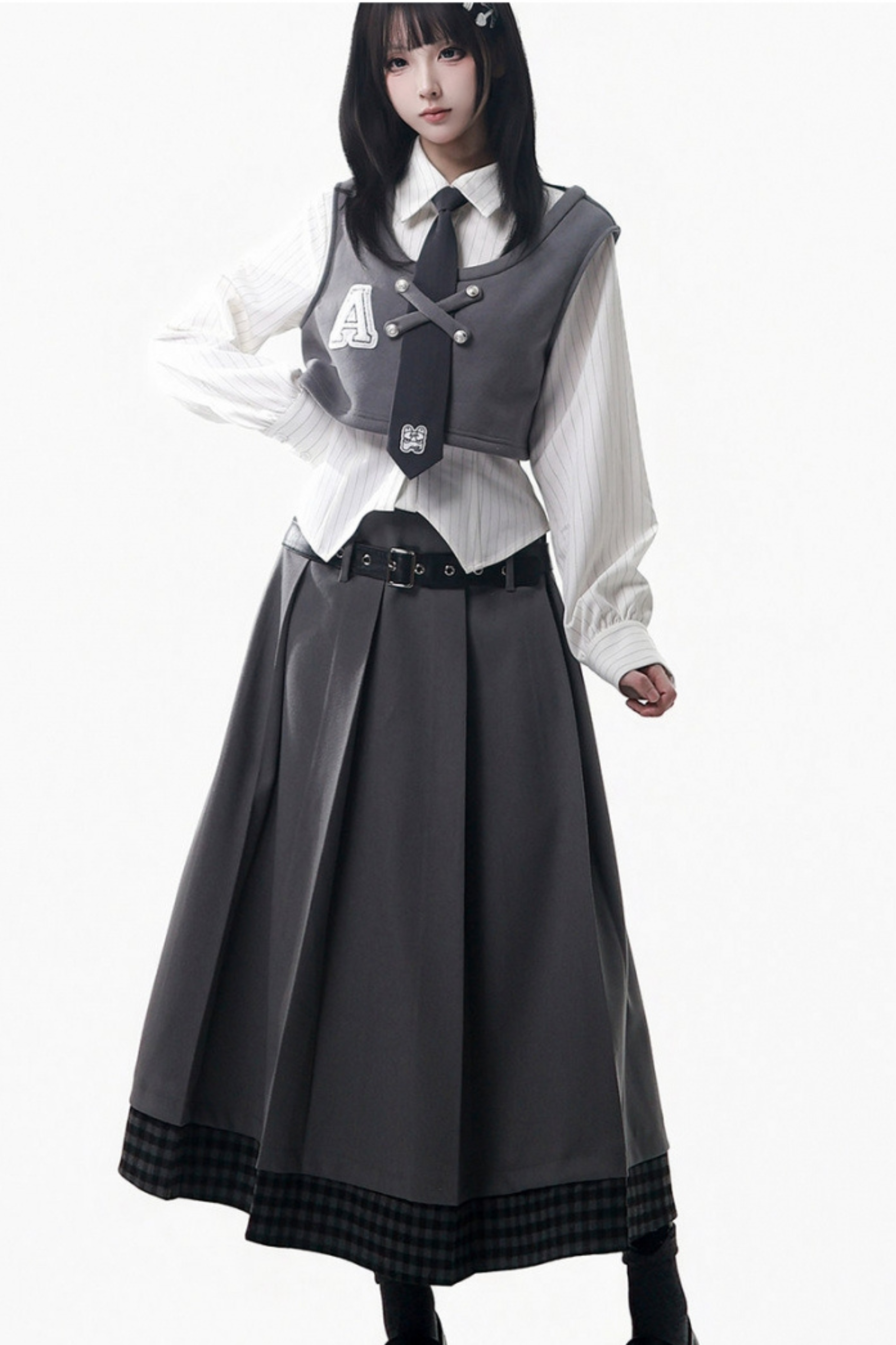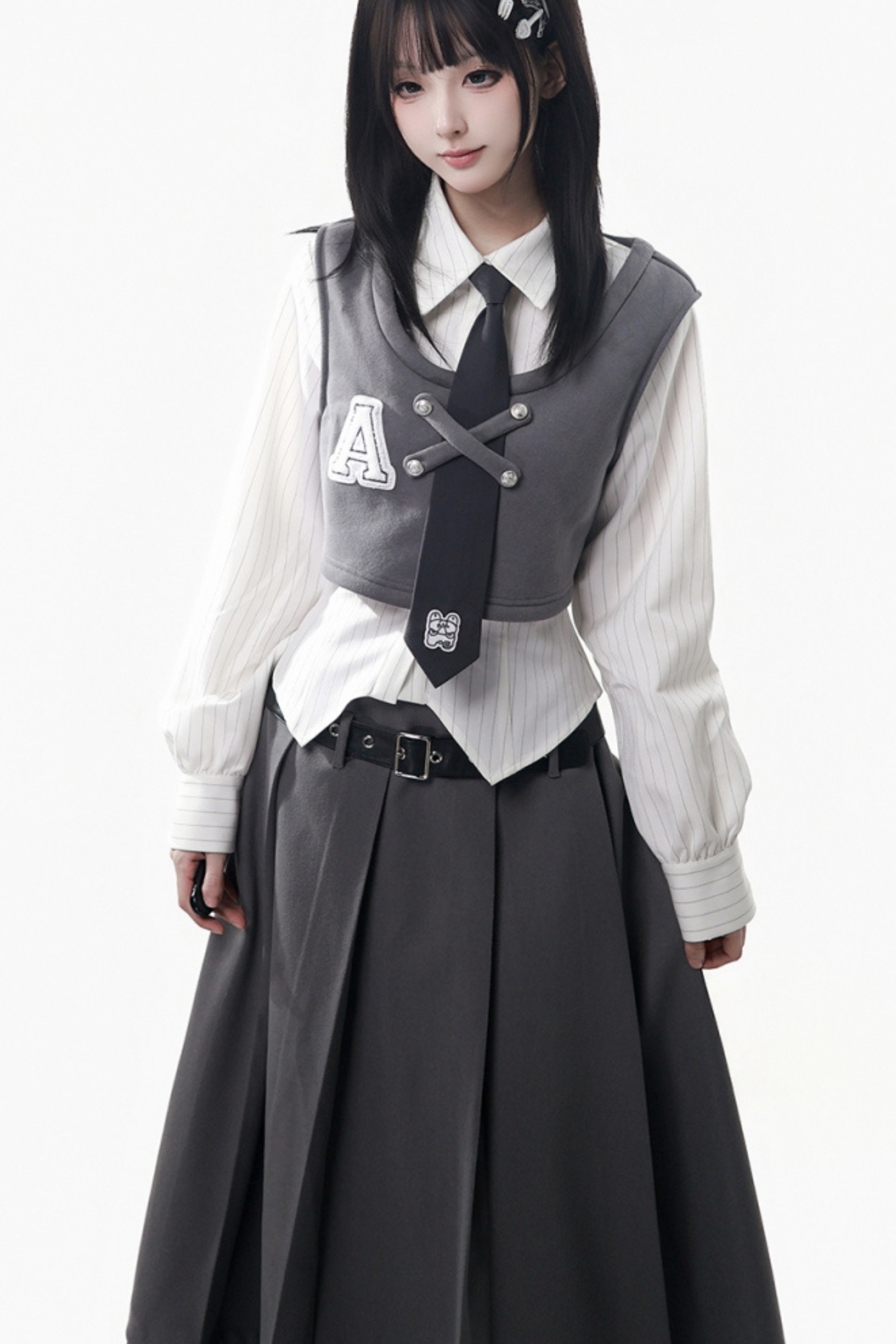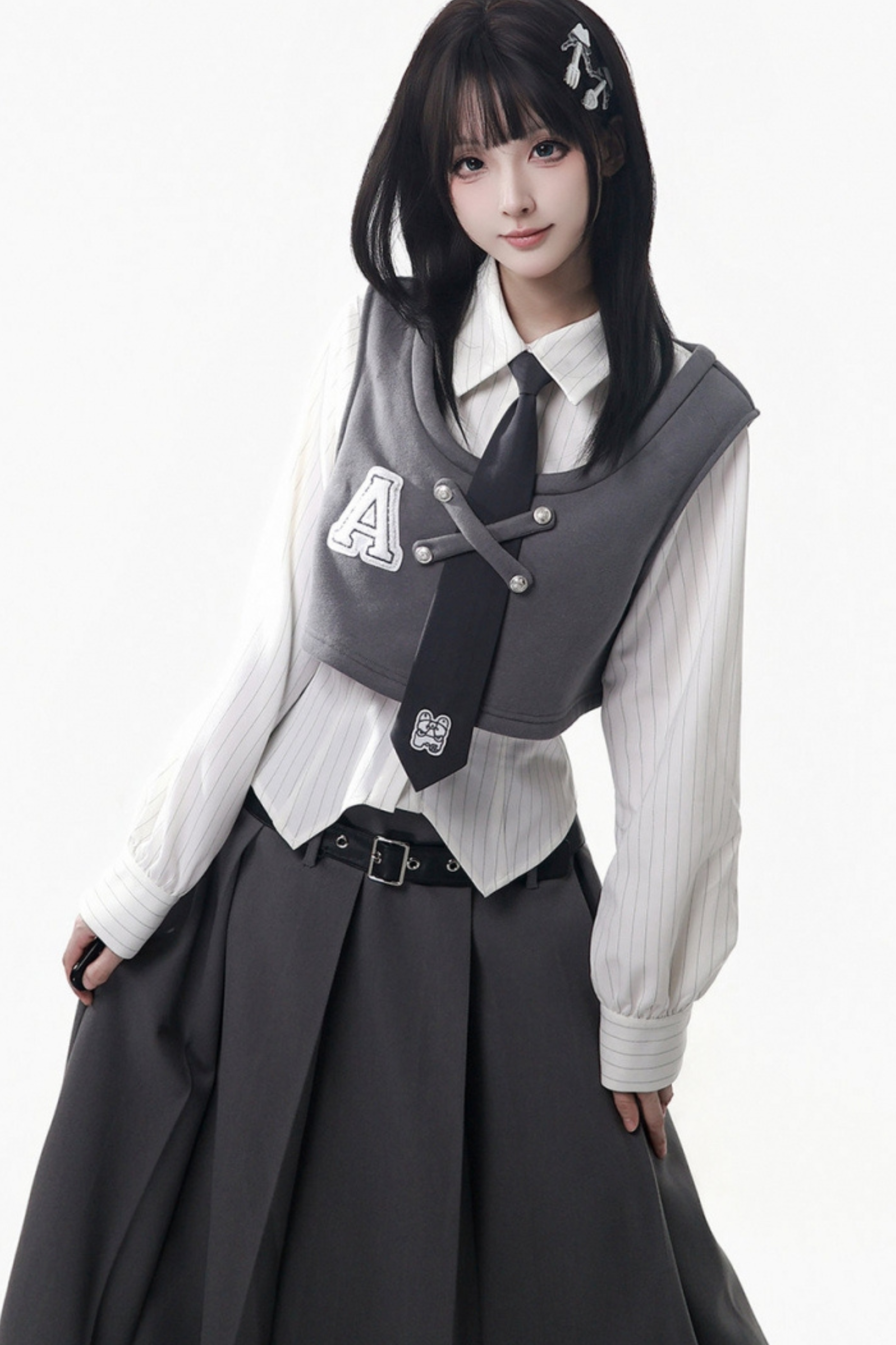 ❤ストライプコート+シャツ+ベスト+ロングスカート❤