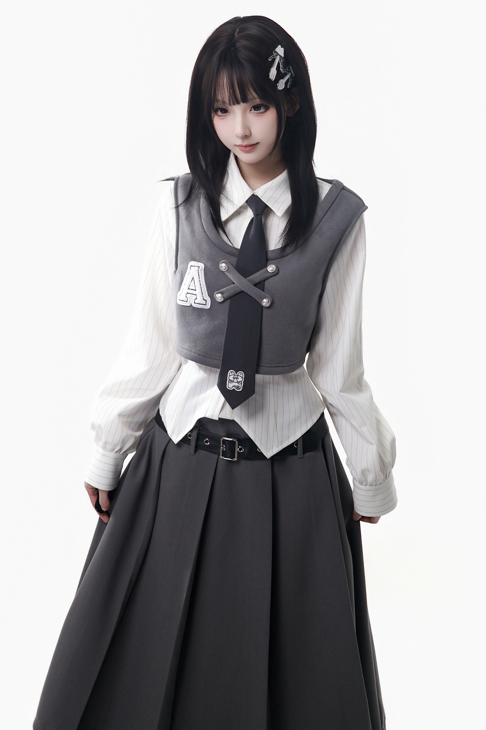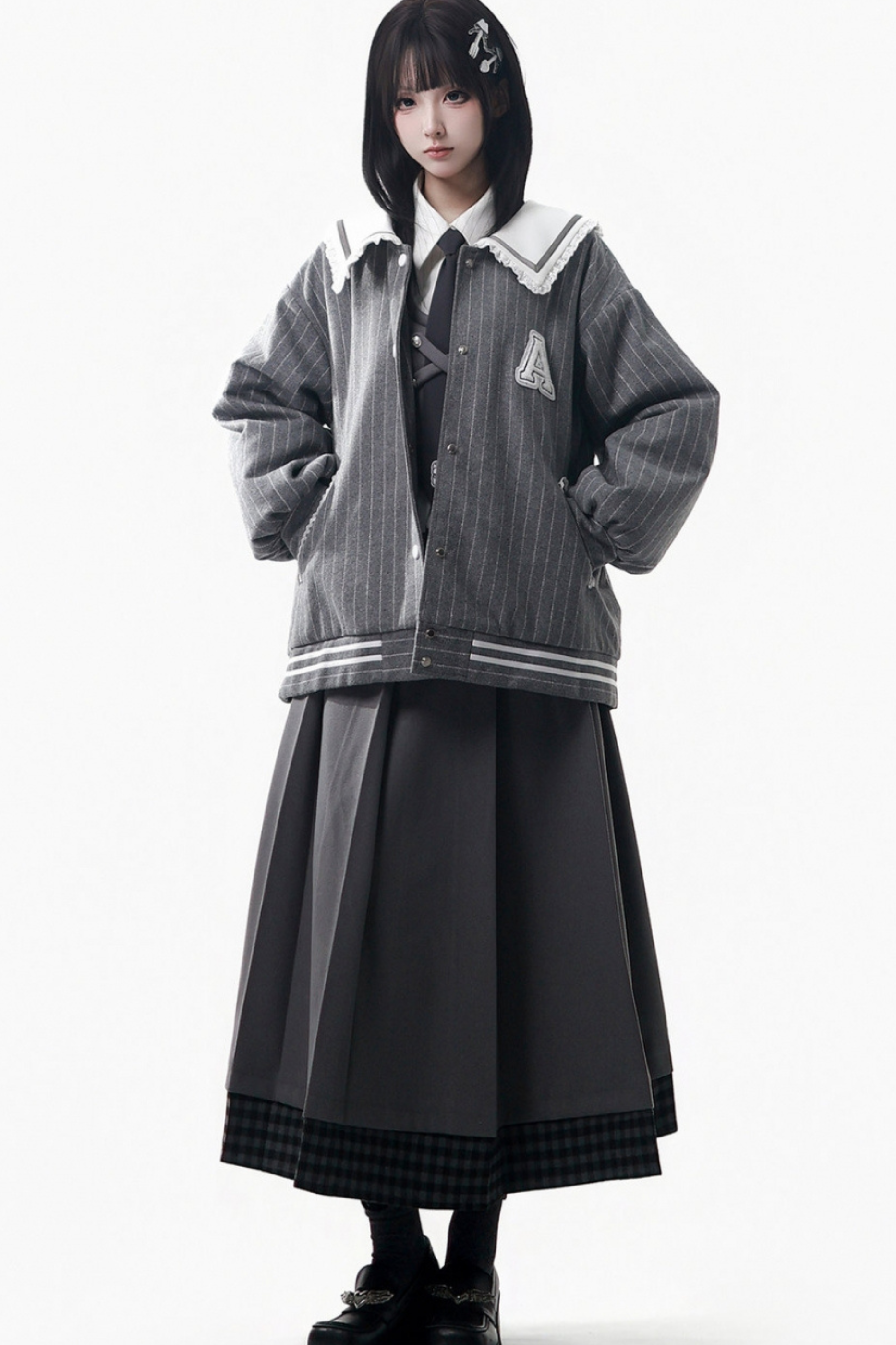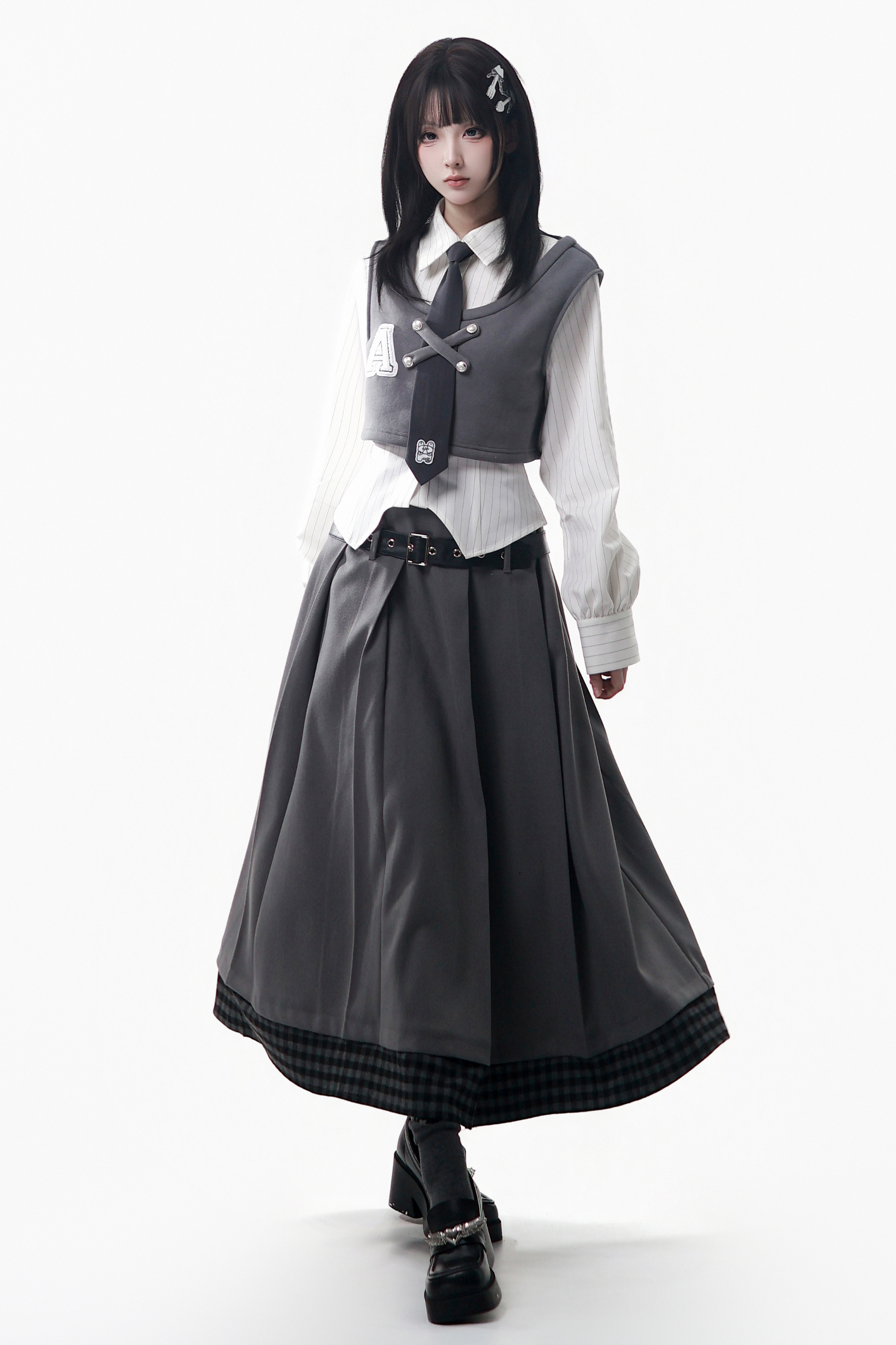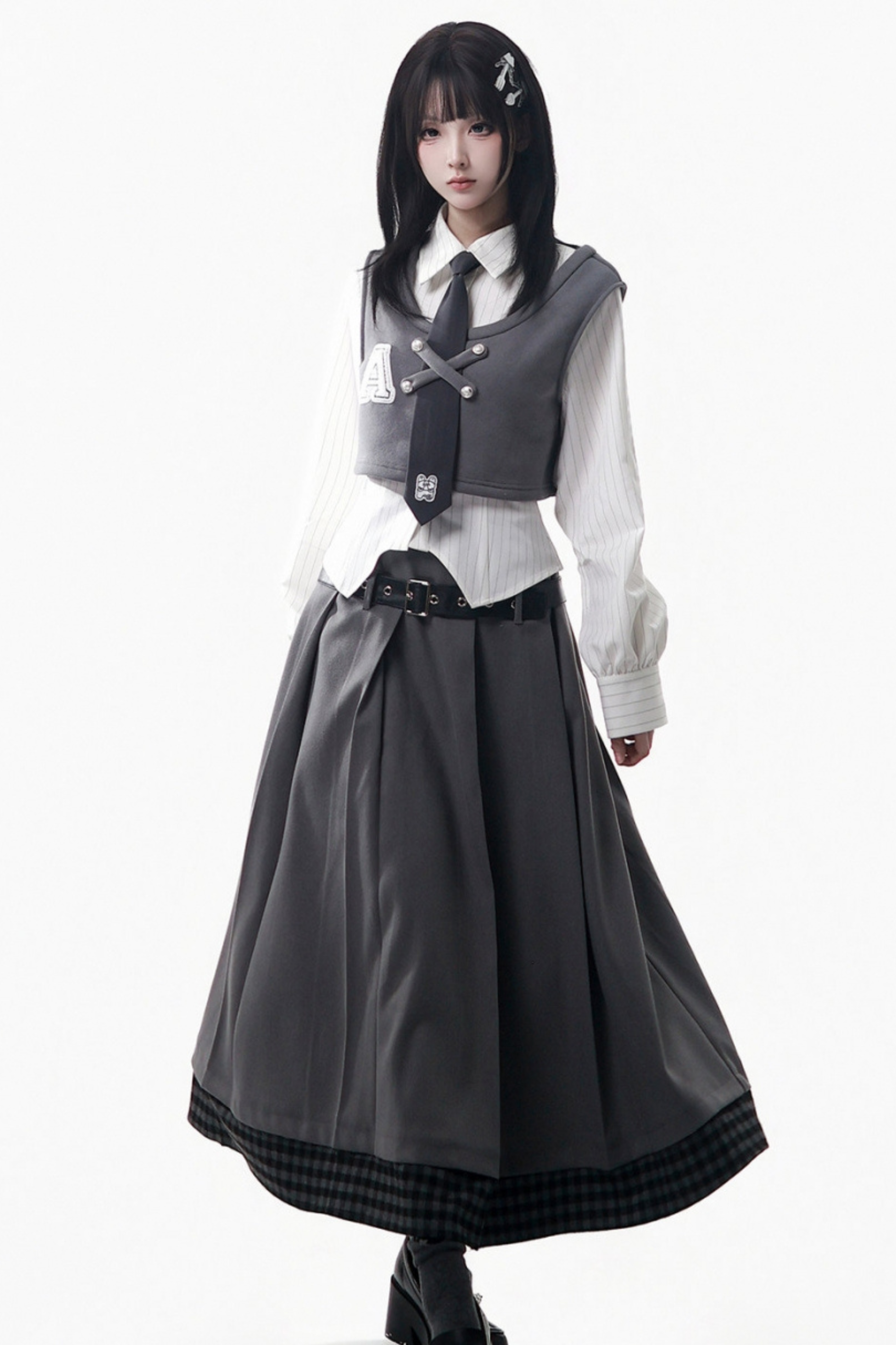 ❤ストライプコート+シャツ+ベスト+ロングスカート❤