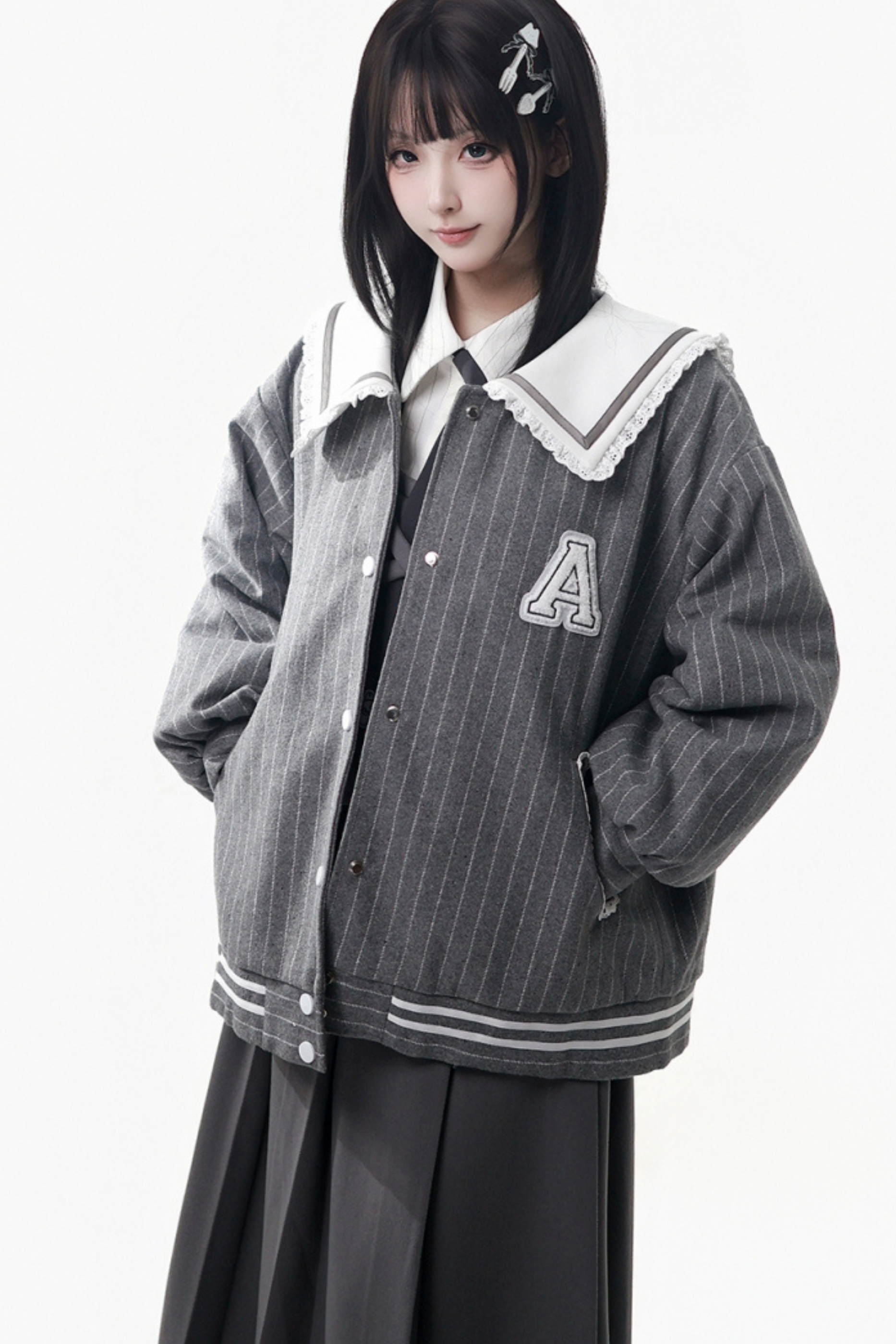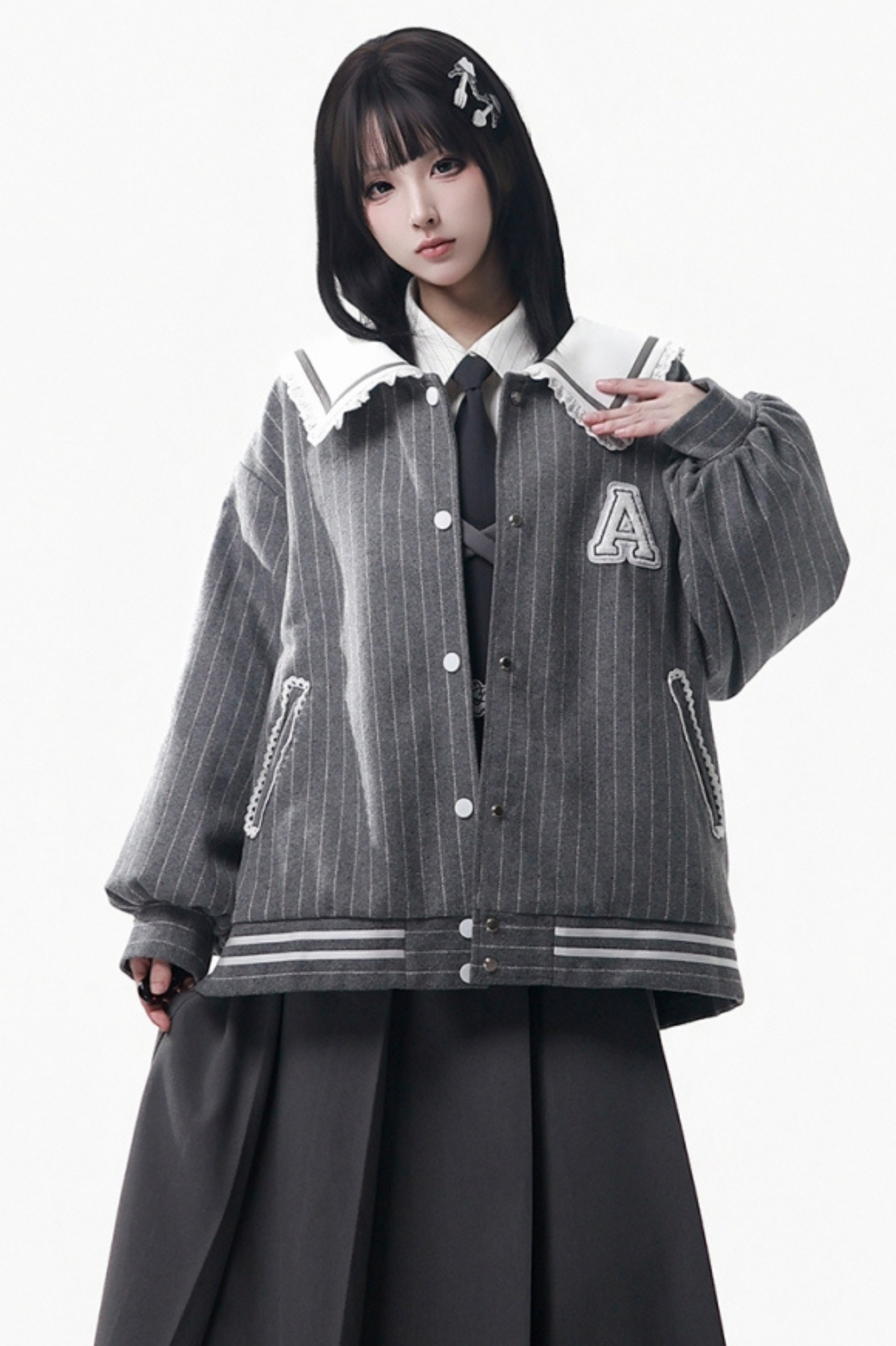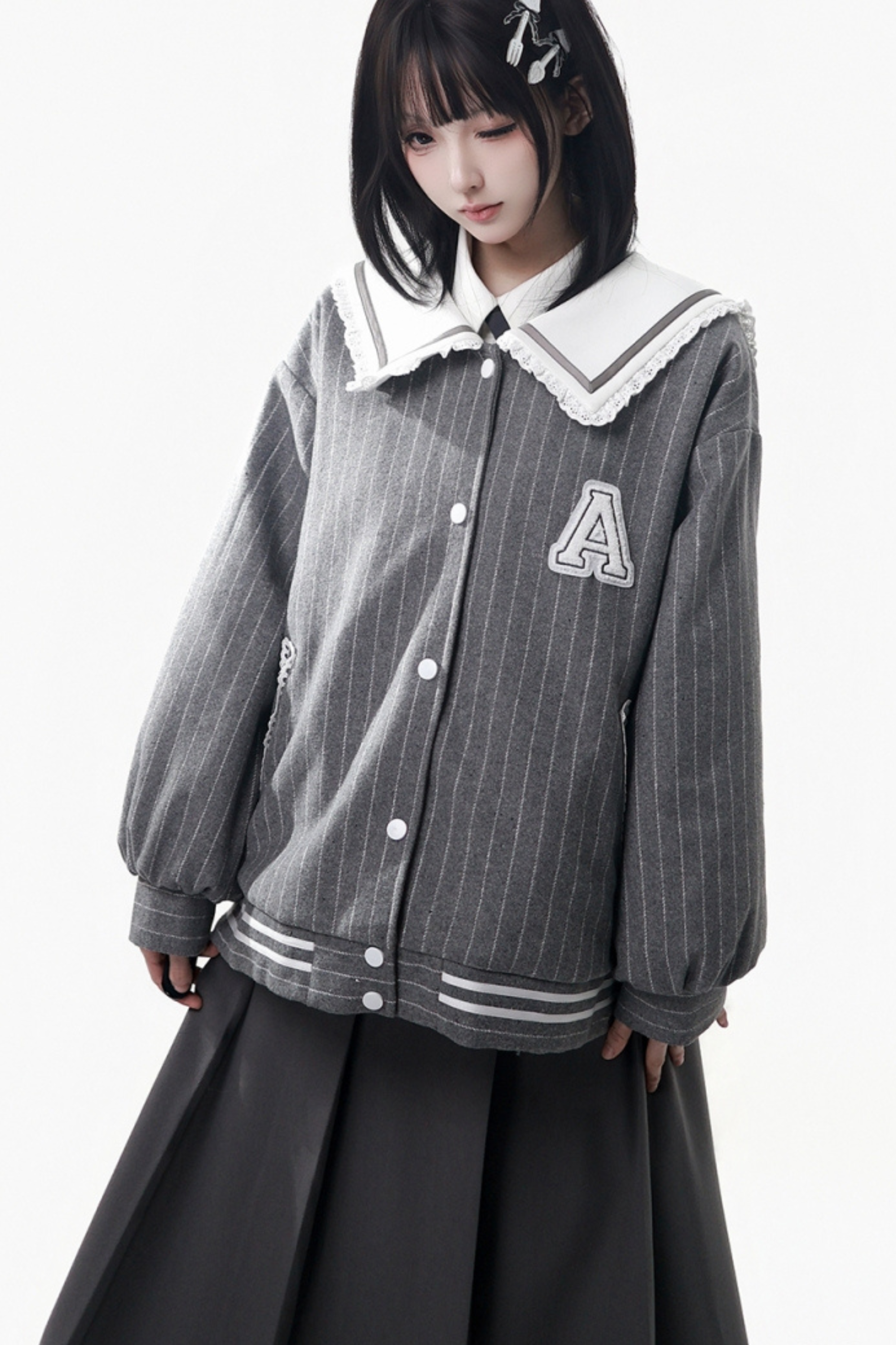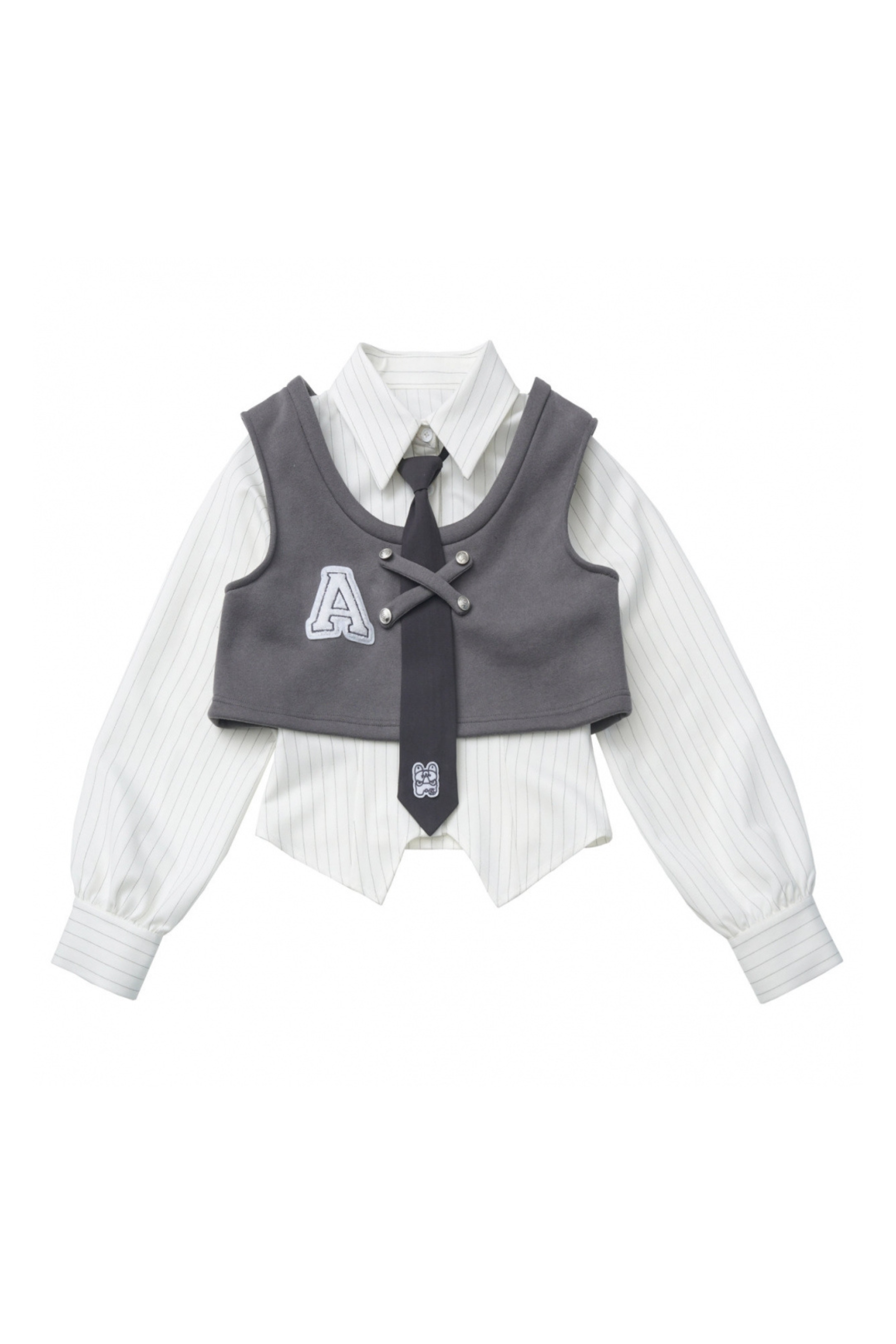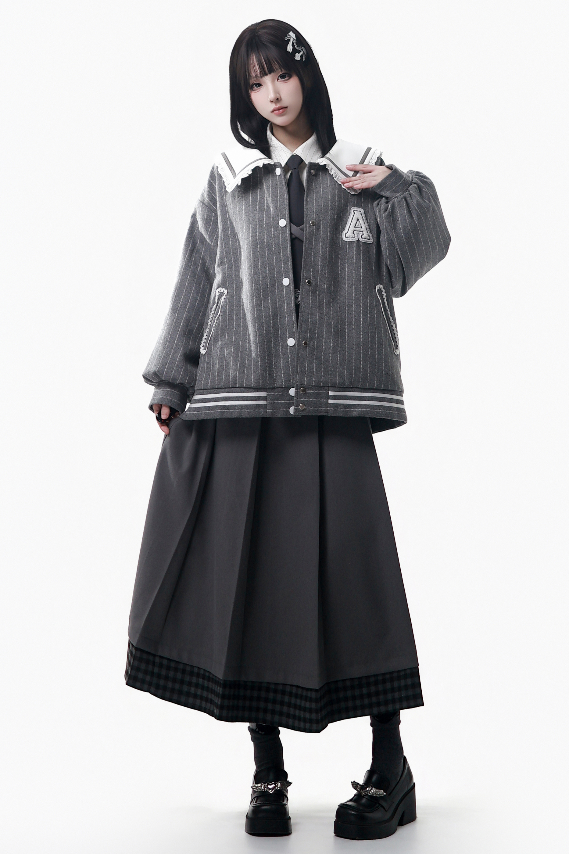 ❤ストライプコート+シャツ+ベスト+ロングスカート❤