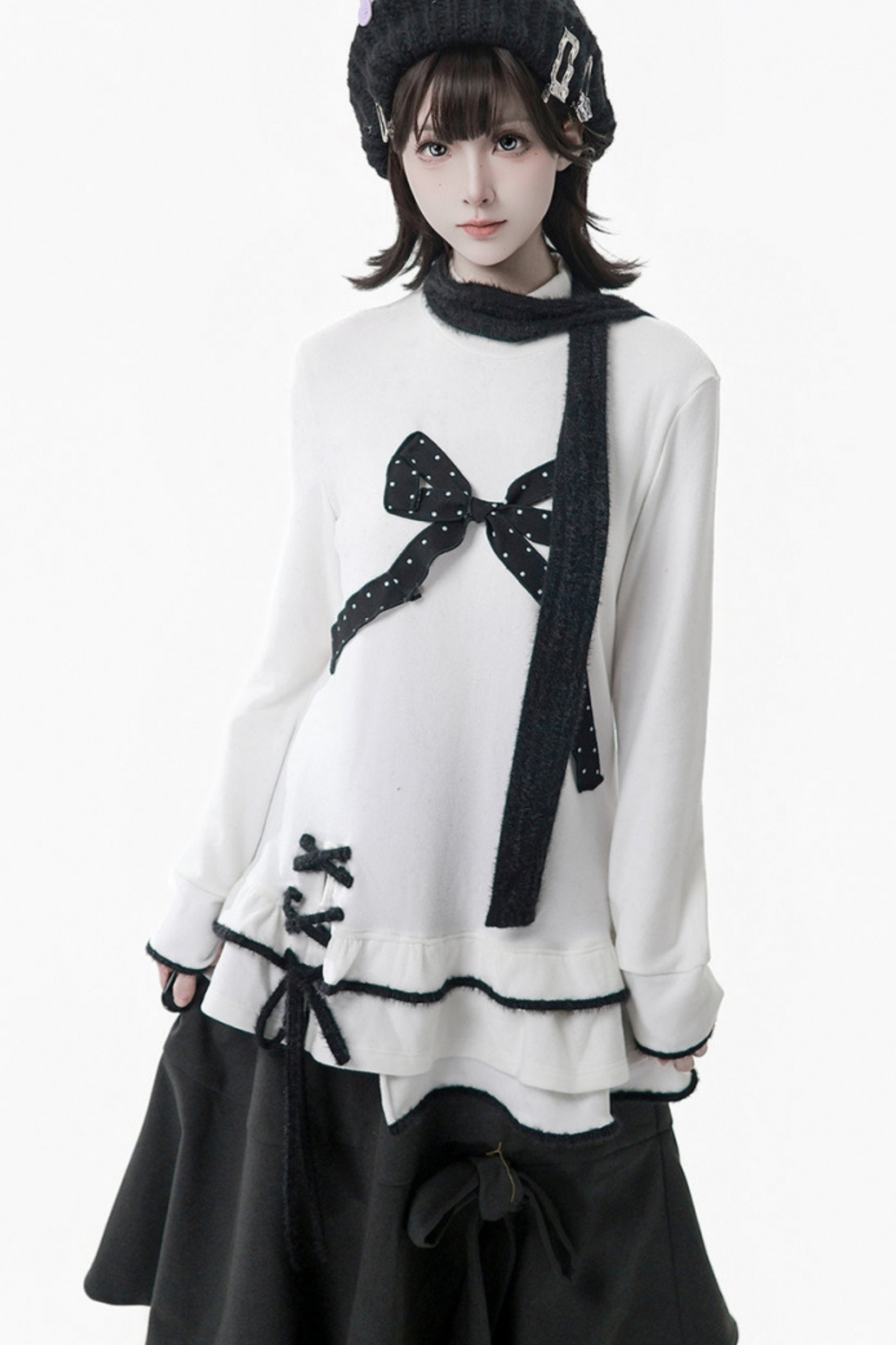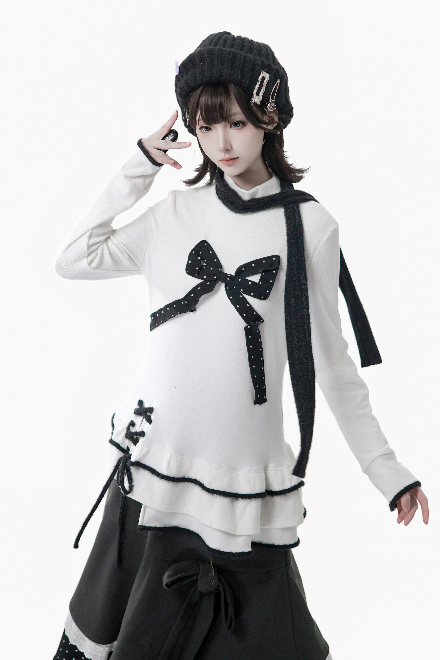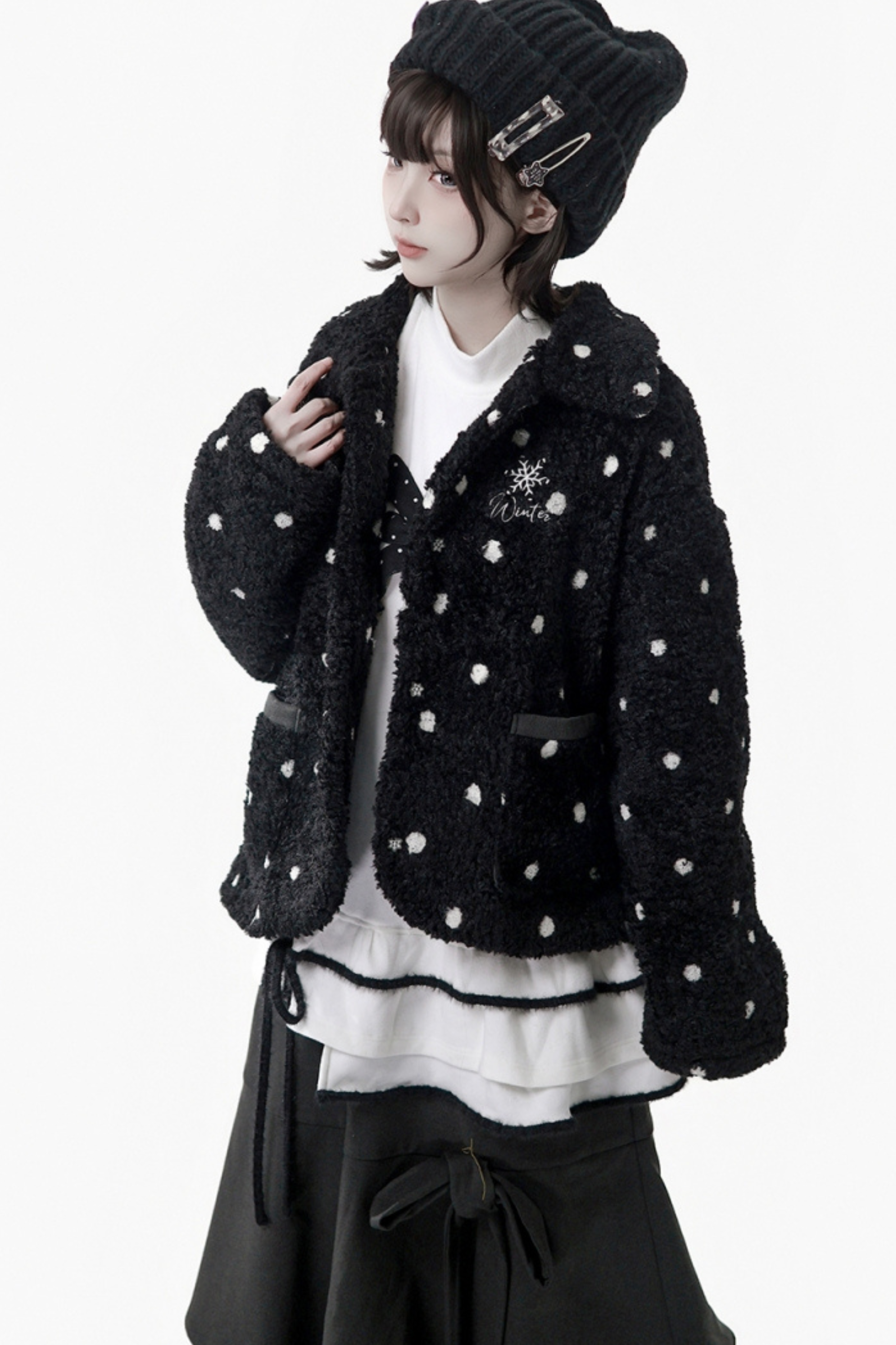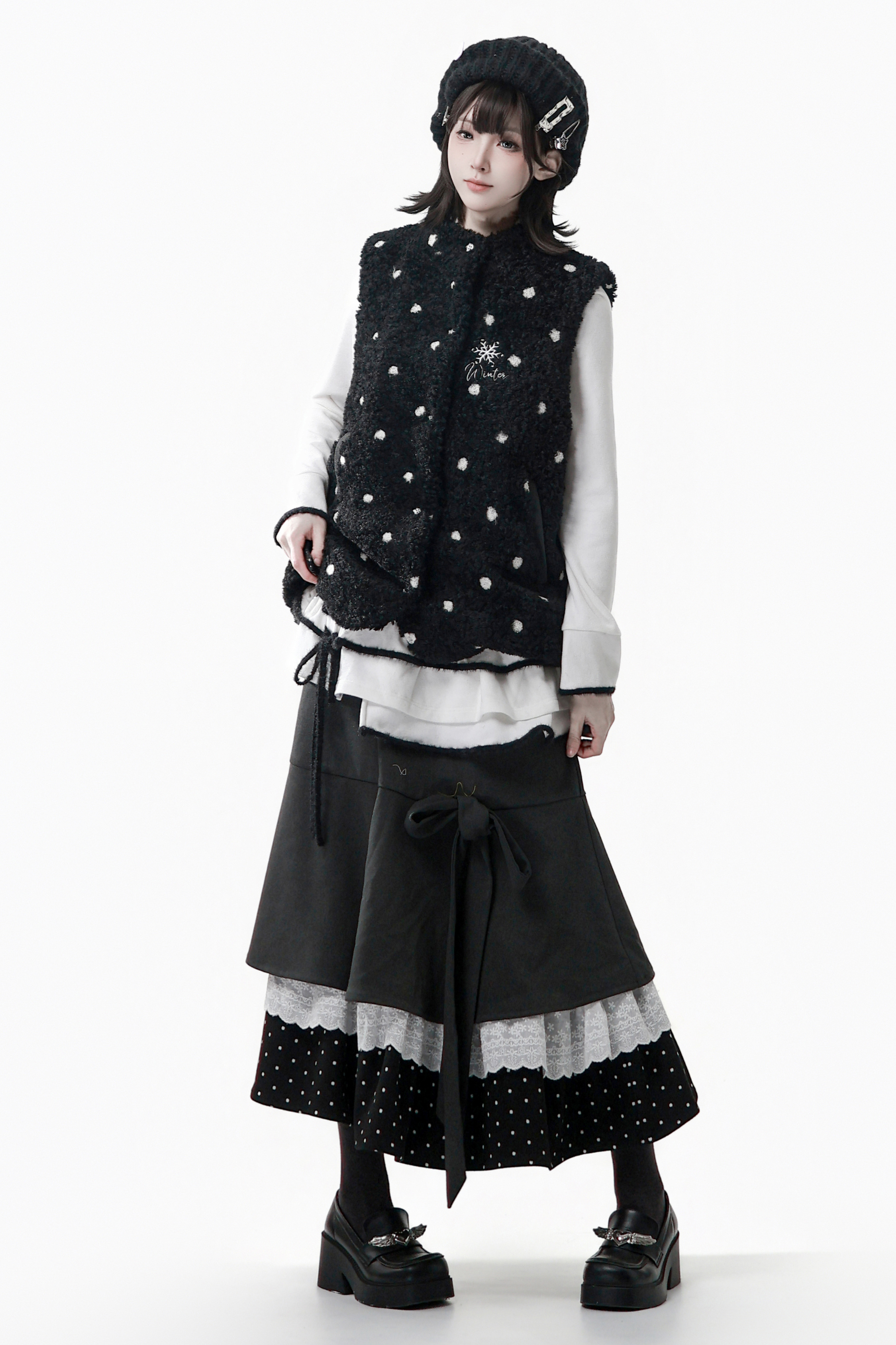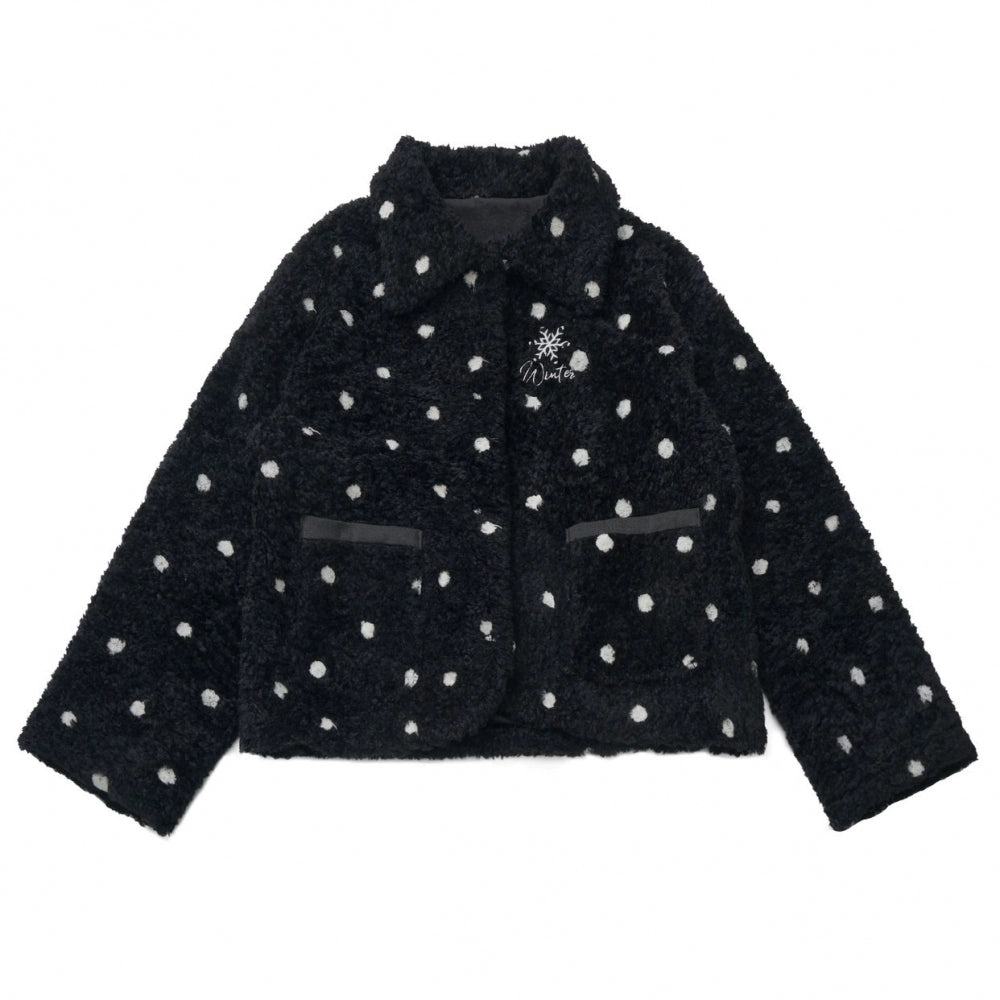 ポルカドットウィンターフリースジャケット+ベスト+トップス+スカートスカーフ
