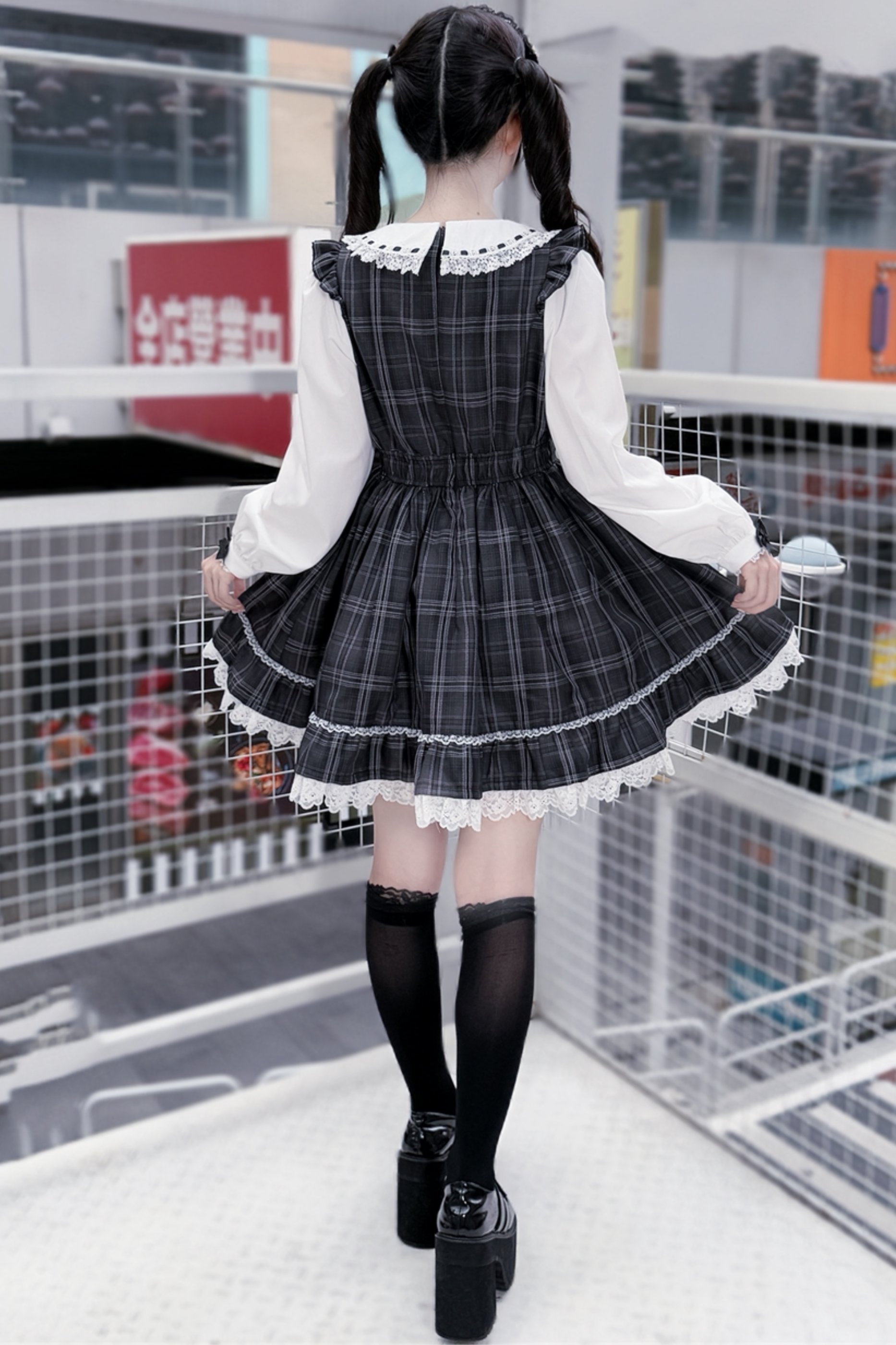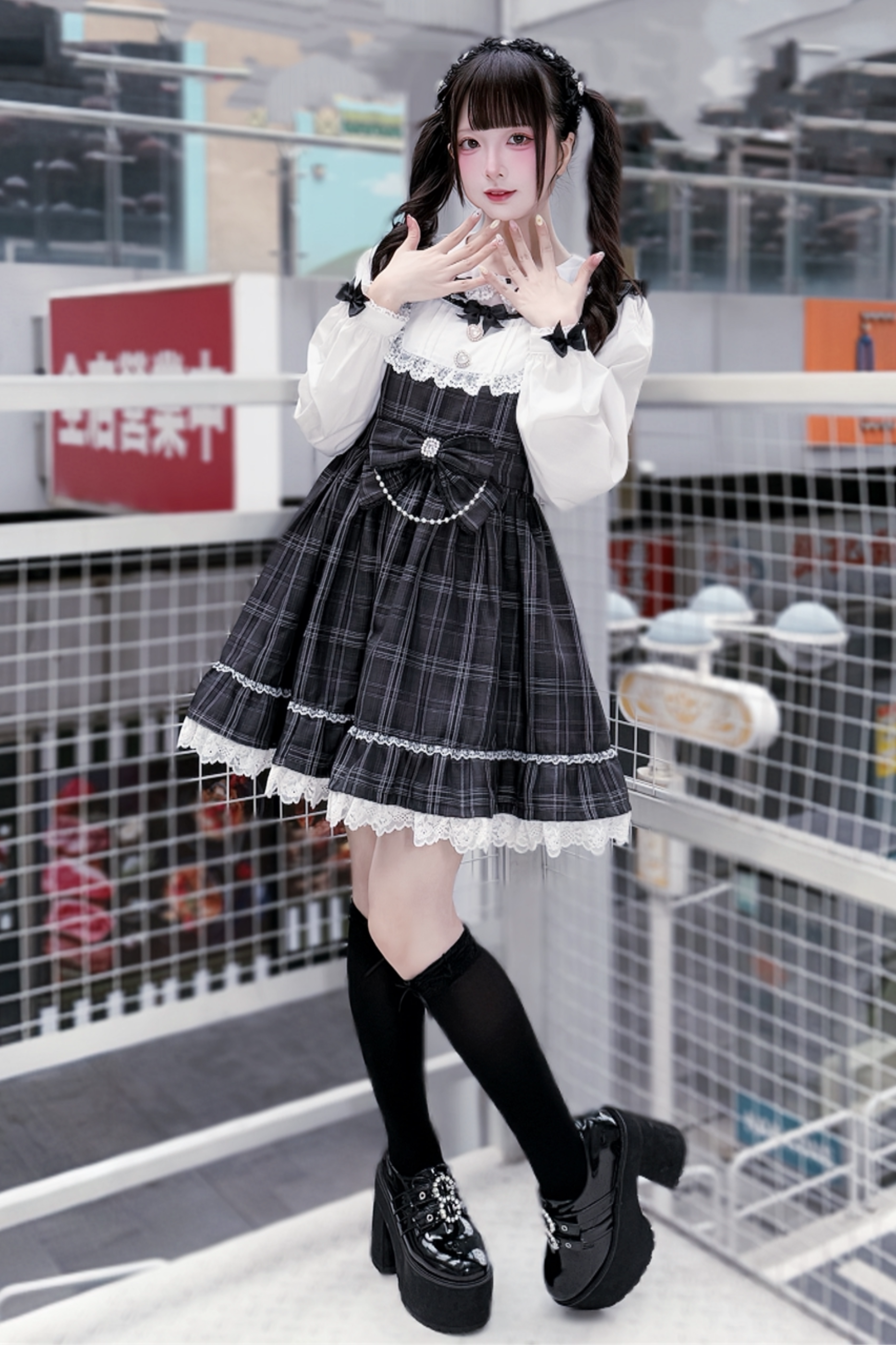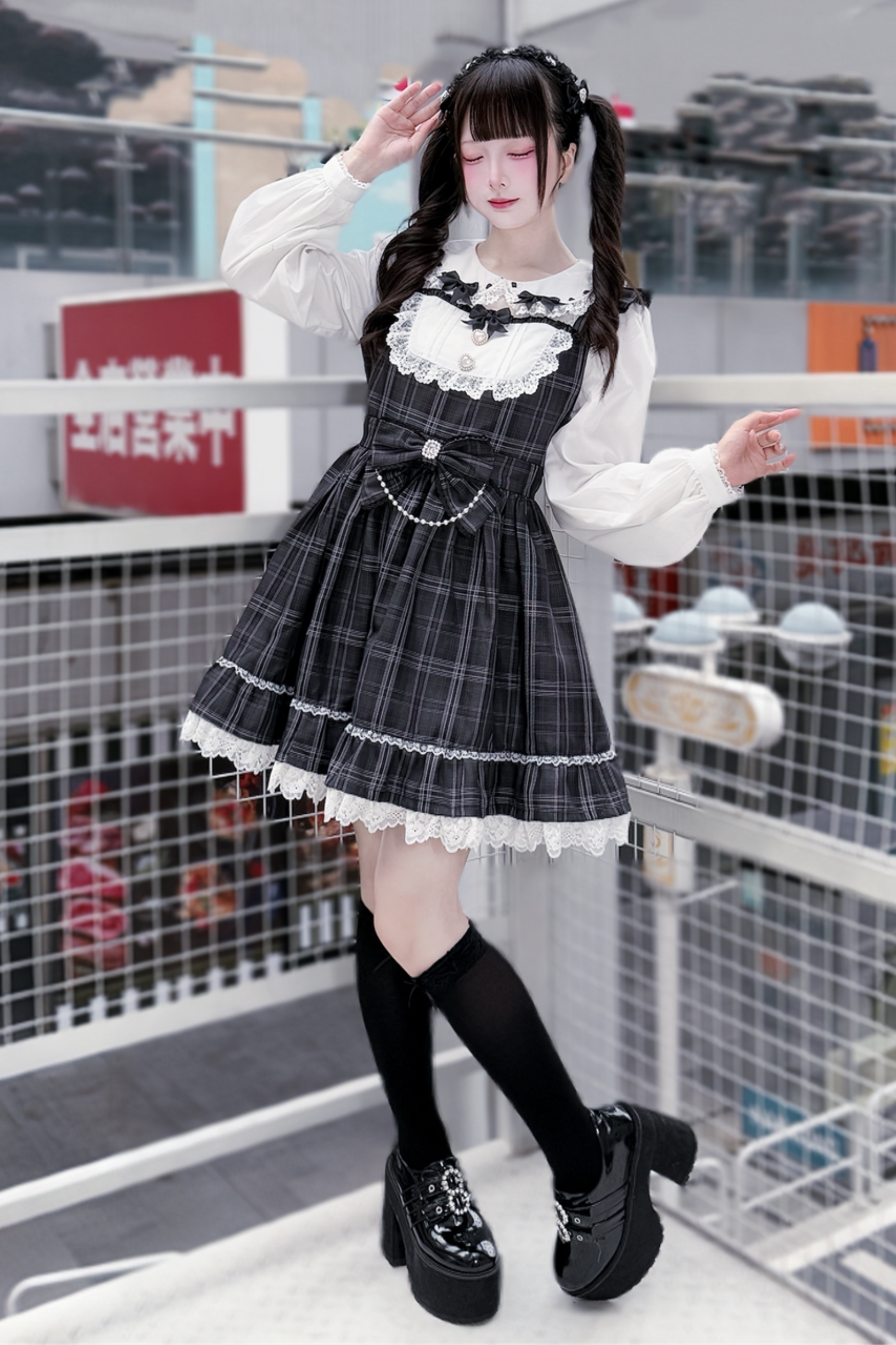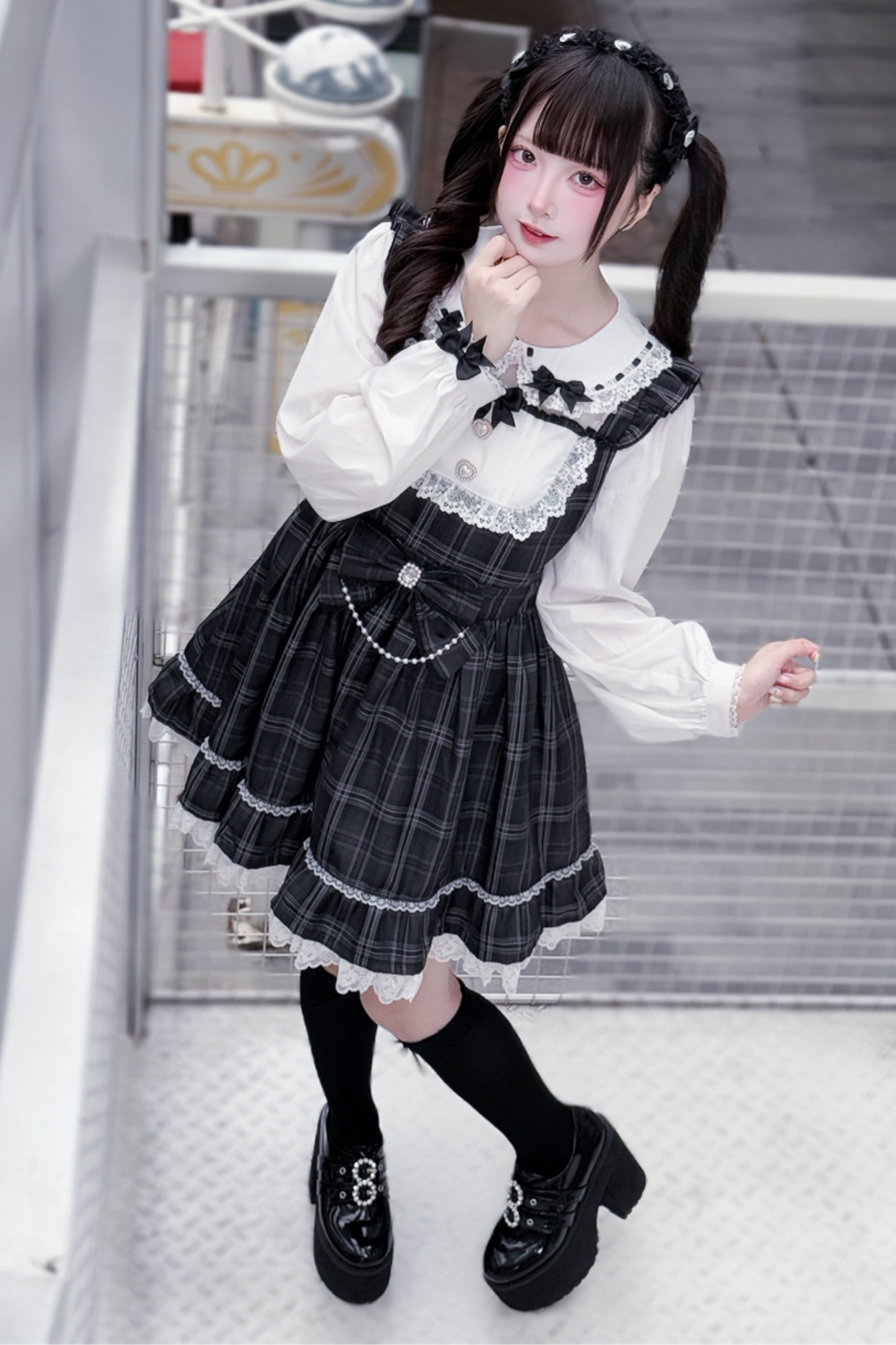 다크 스위트 걸리 체크 원피스 + 머리띠
