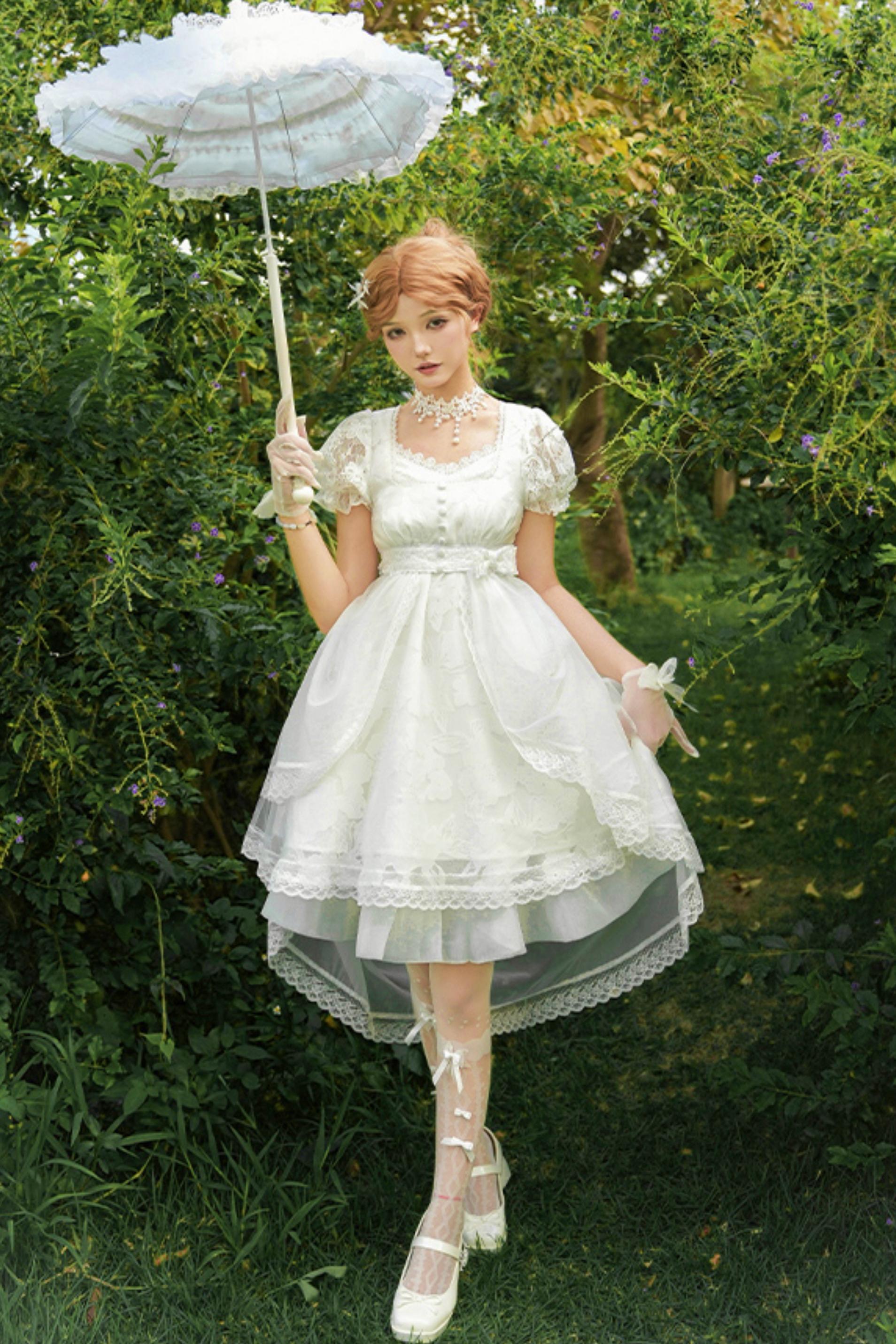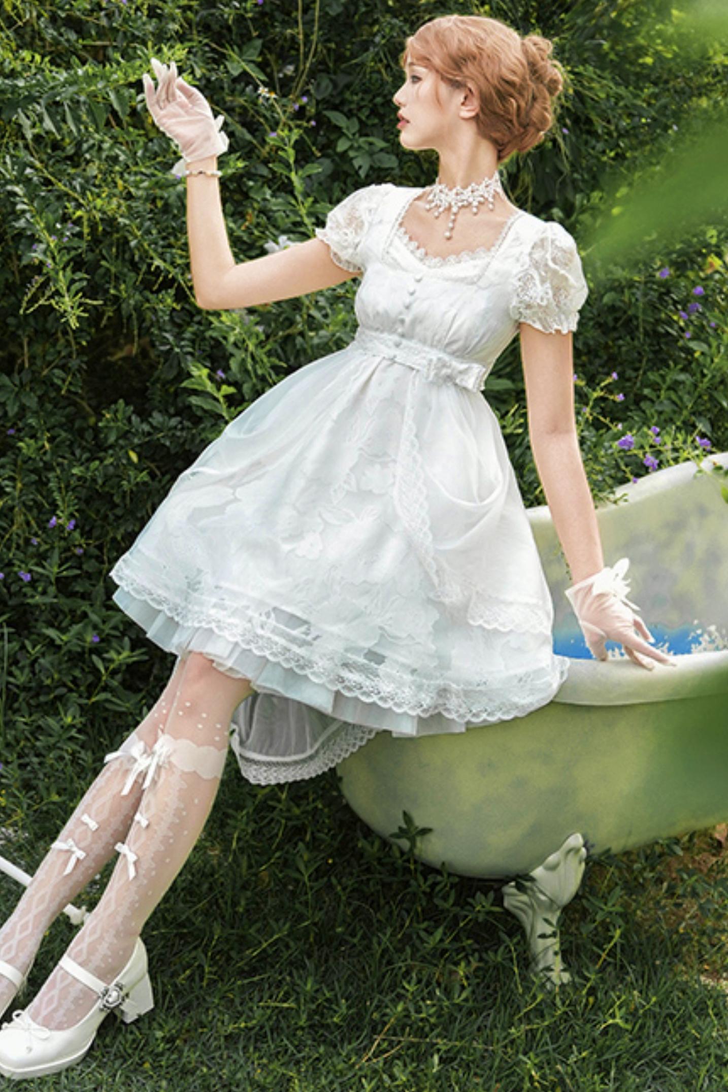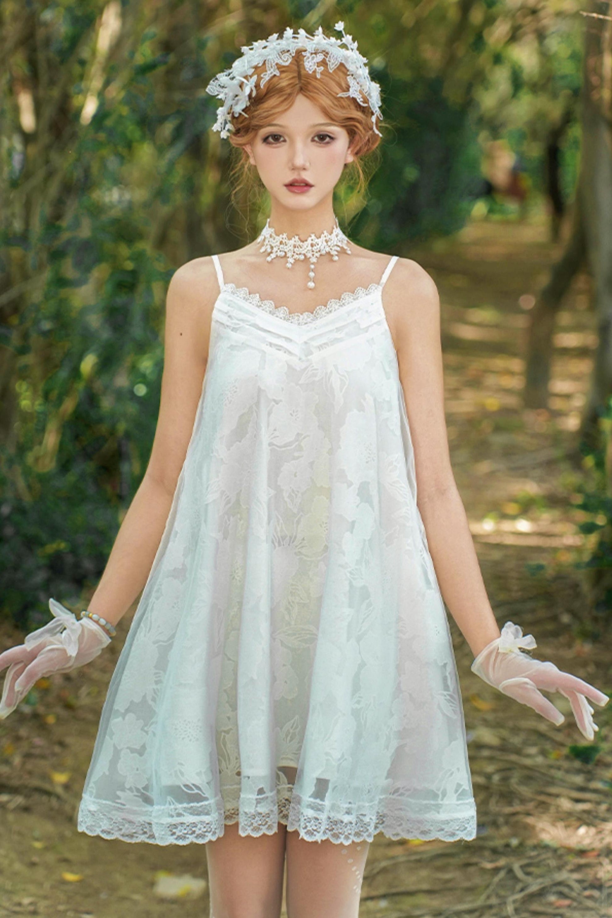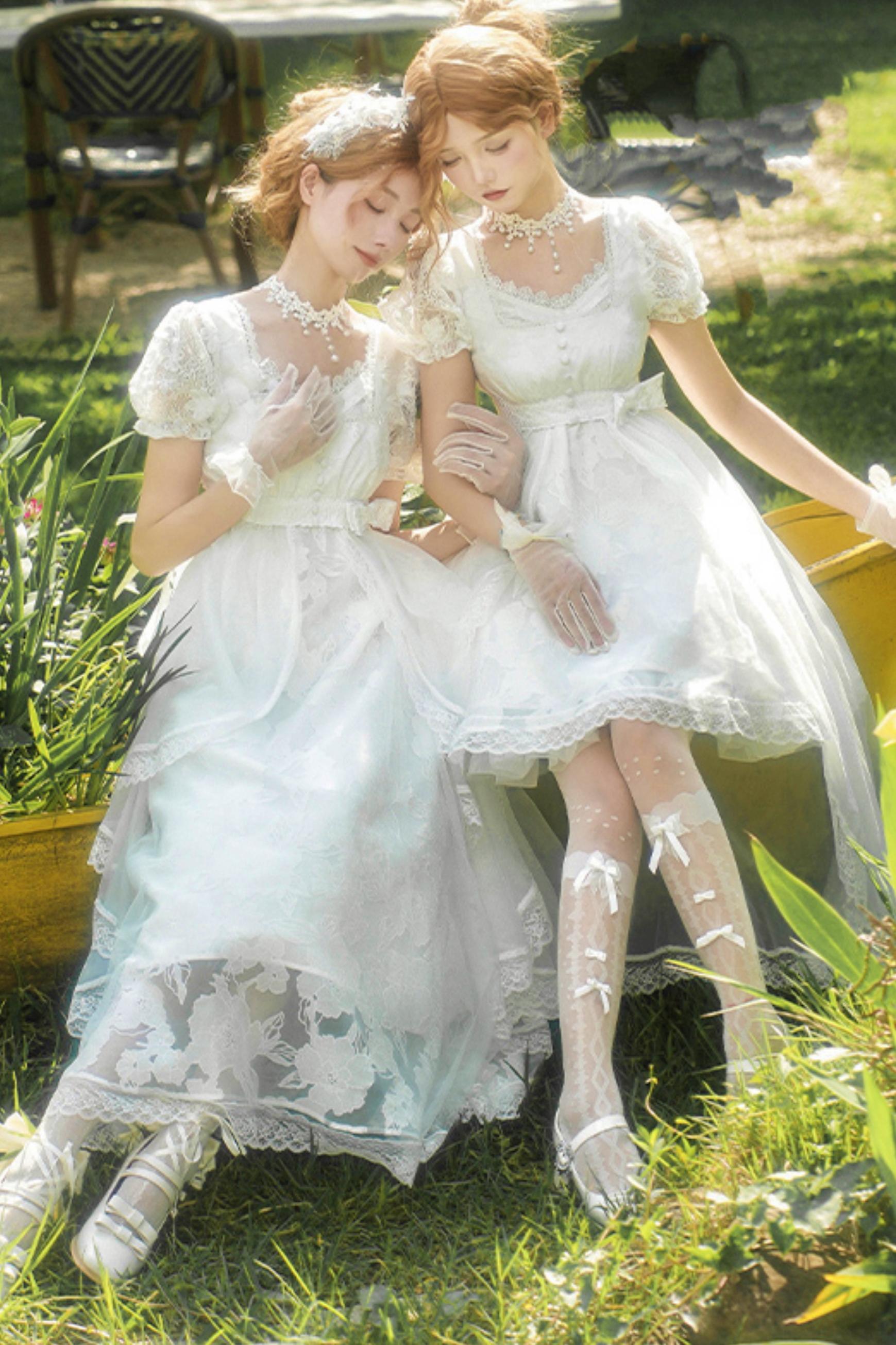 ホワイティトップス+ストラップロリータドレス+ヘアアクセサリー