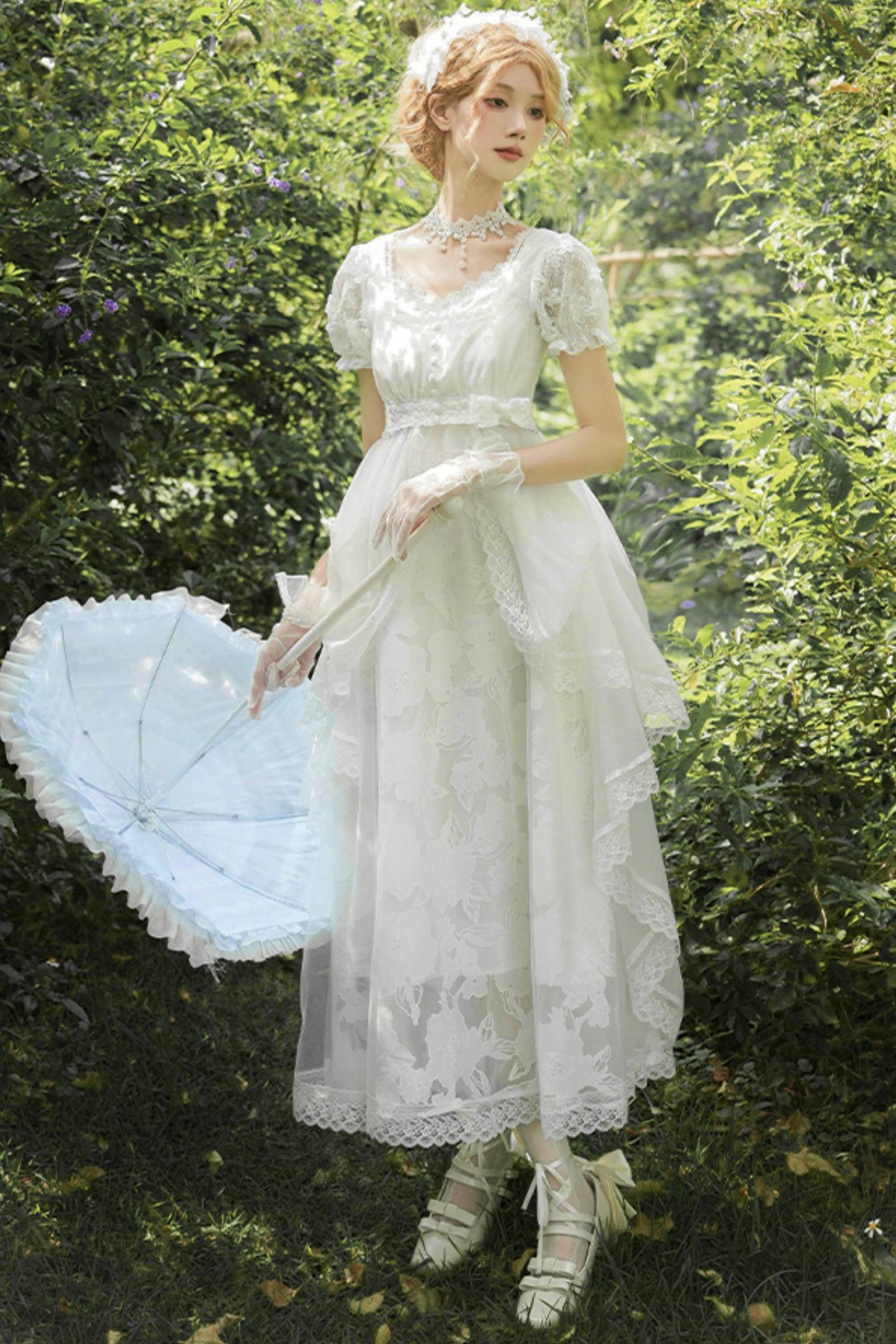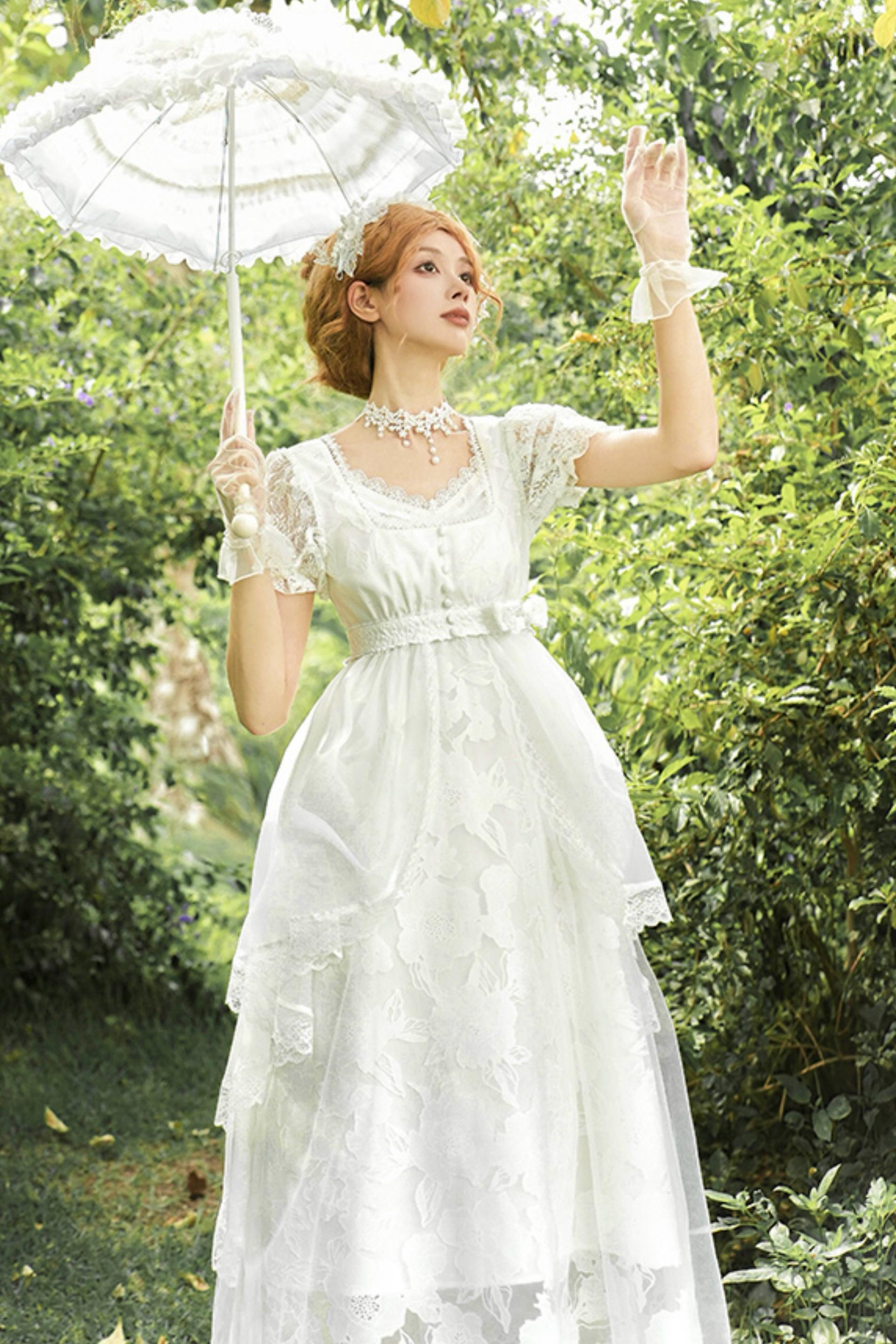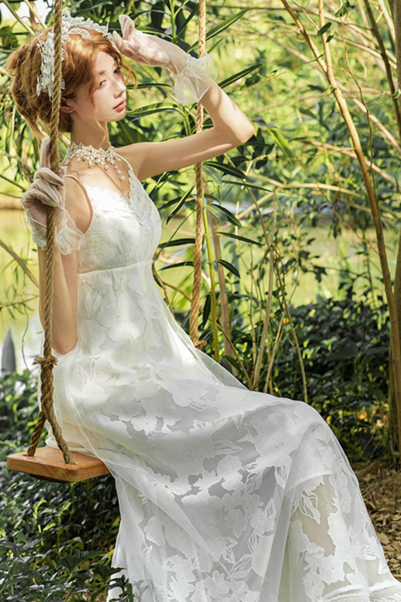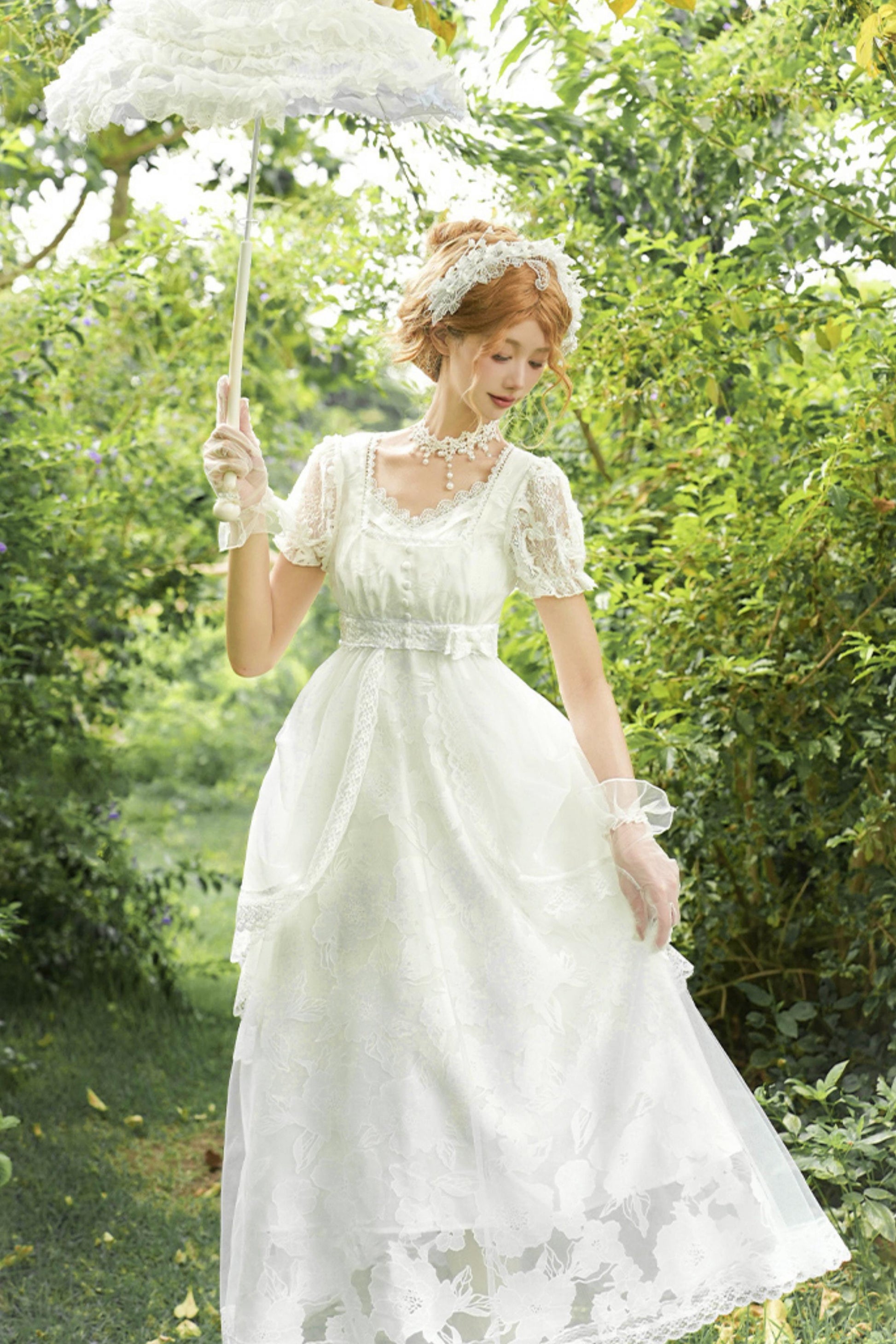 ホワイティトップス+ストラップロリータドレス+ヘアアクセサリー