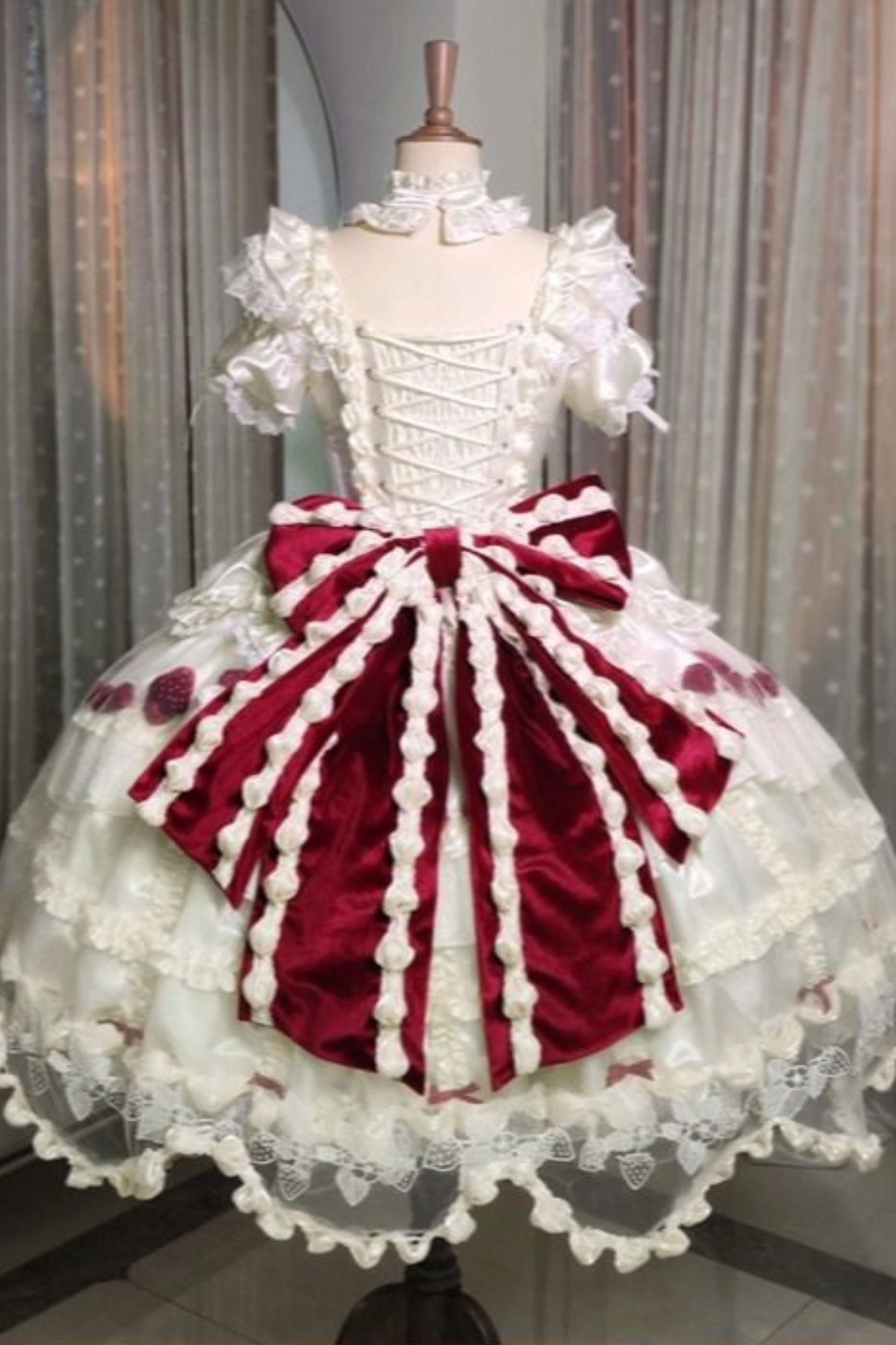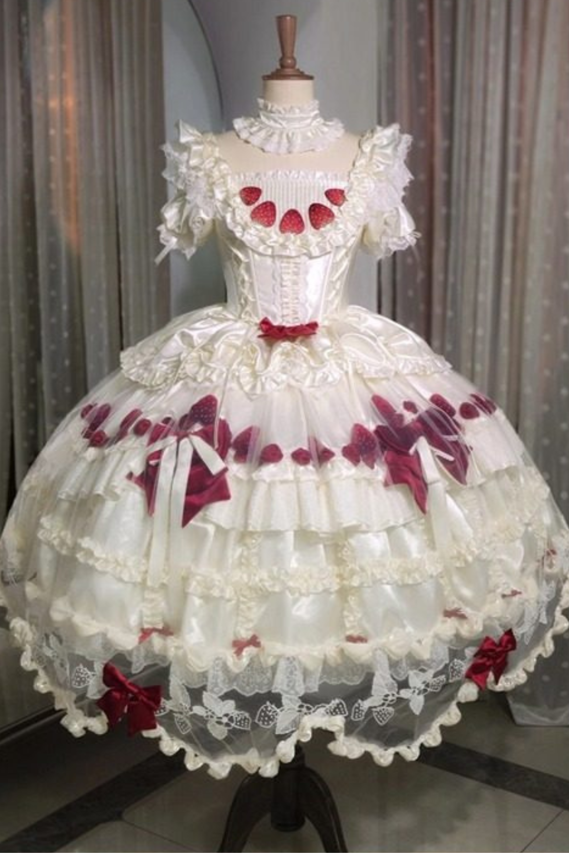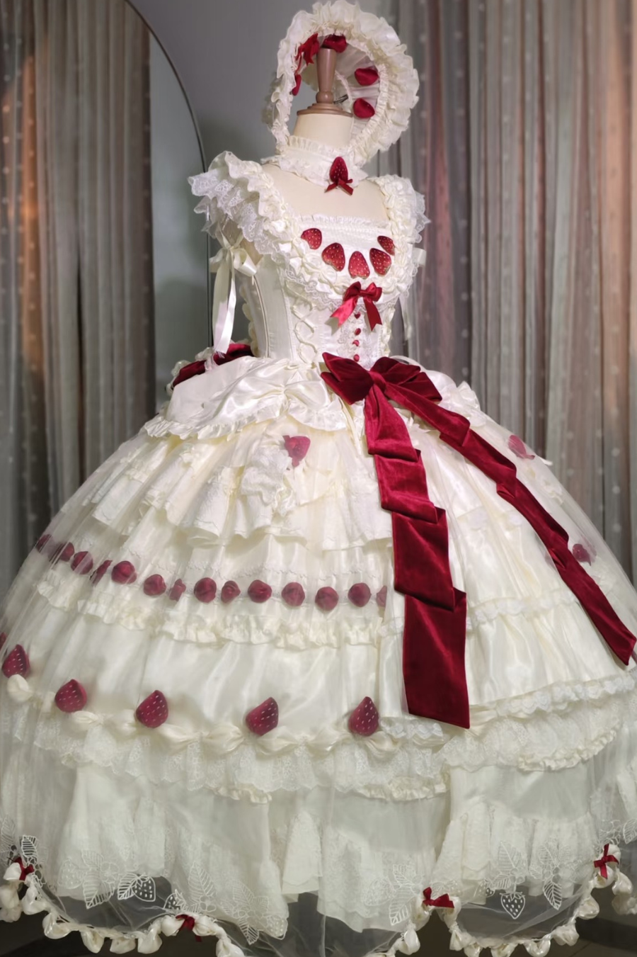 ❤스트로베리 크림 롤리타 원피스 + 케이크 모자 + 꼬리 + 보닛 + 페티코트❤