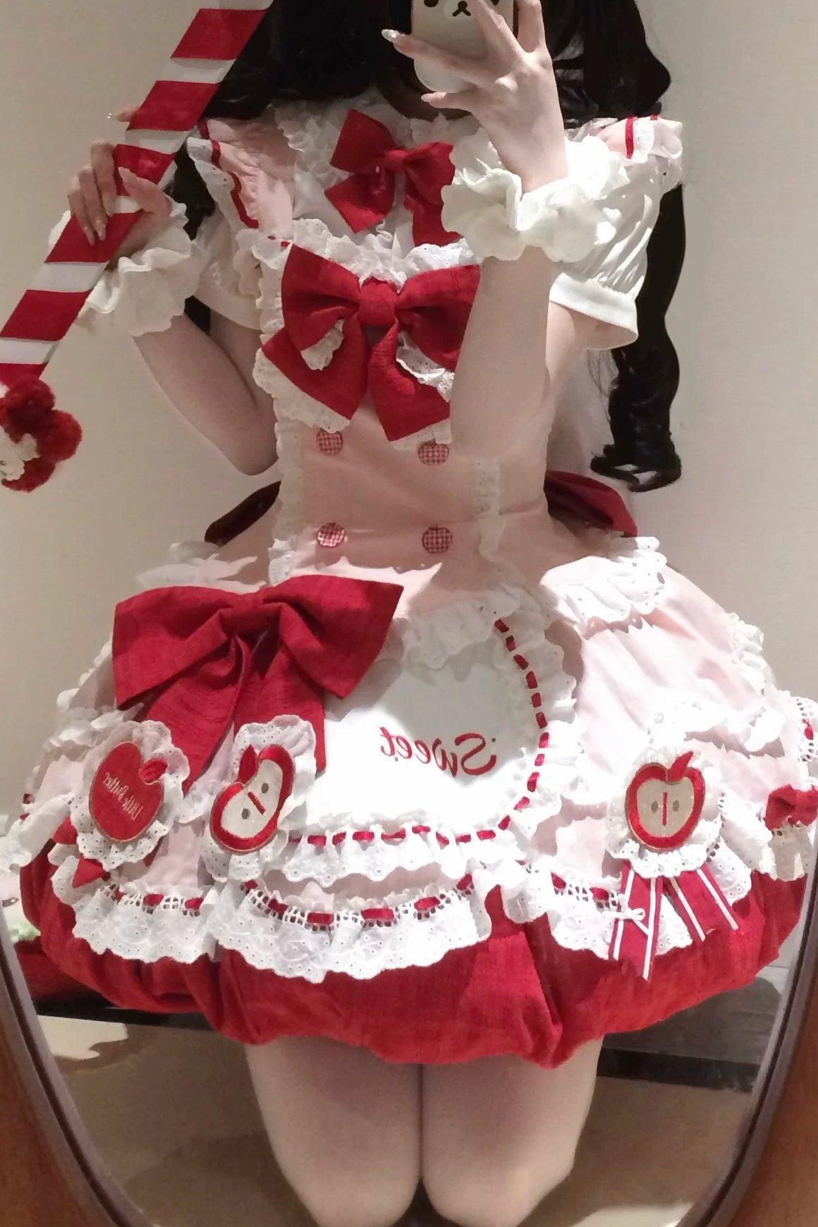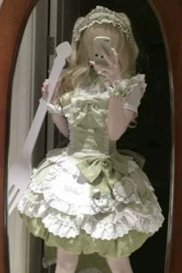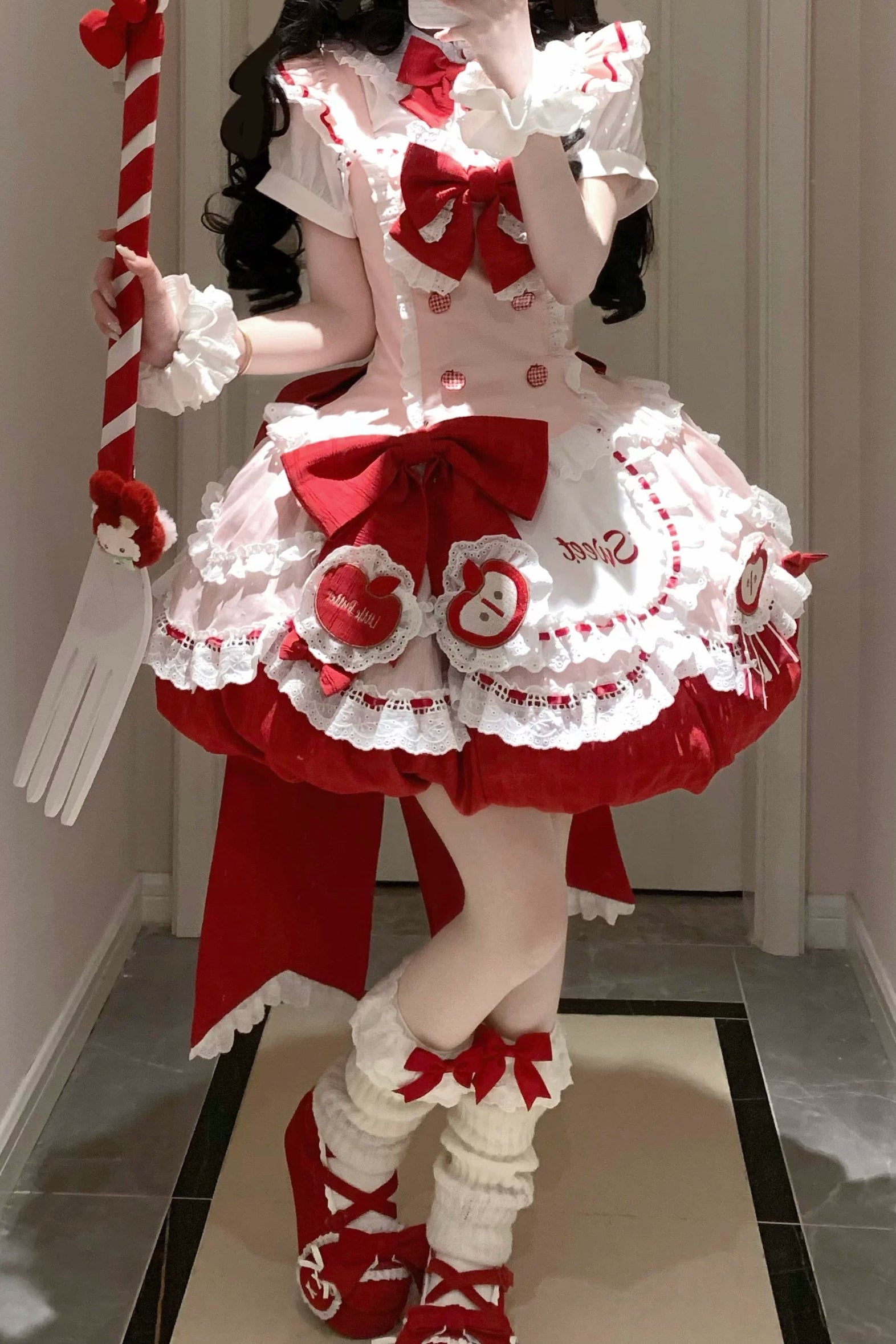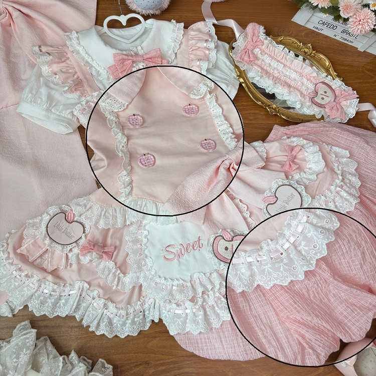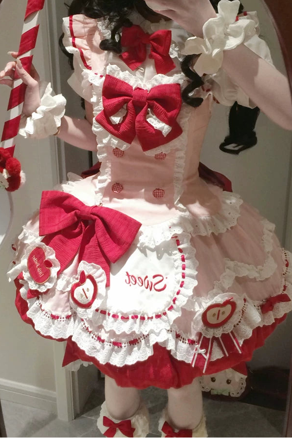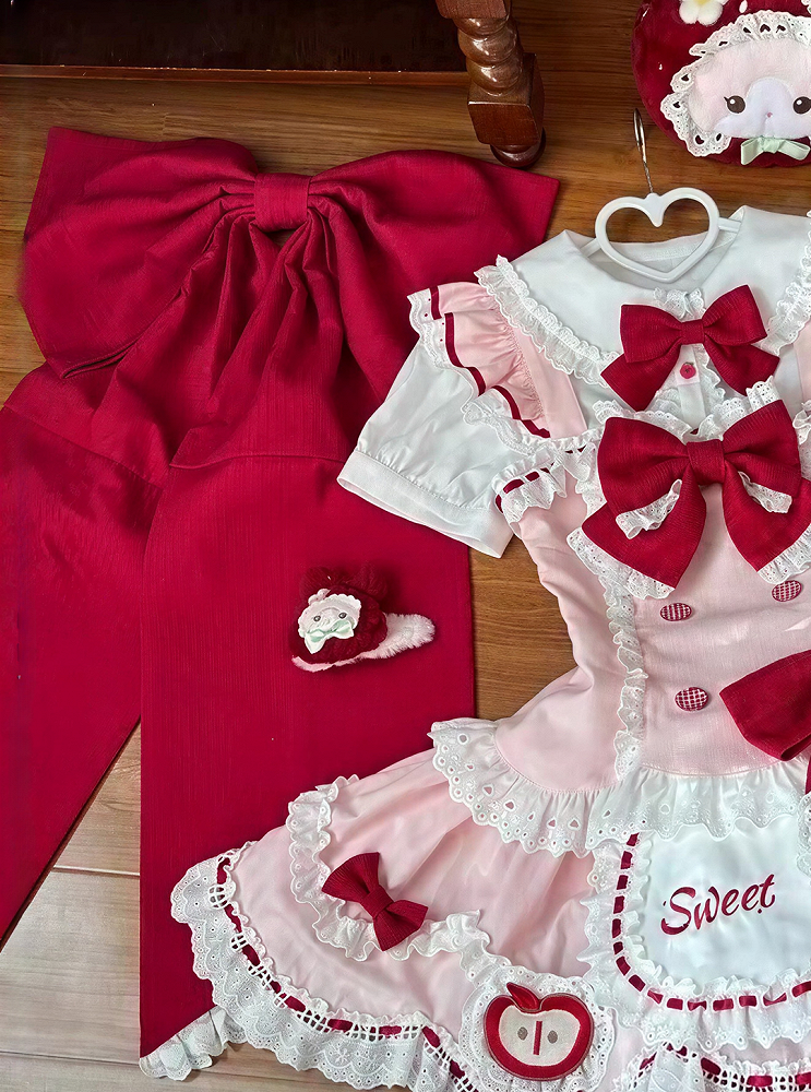 ❤︎[3월 31일 예약마감] 스위트 애플 메이드 드레스 셋업 + 백 리본 트레인 + 헤어밴드❤︎ ⚠️인기 상품이므로 배송에 4개월 정도 걸릴 수 있습니다