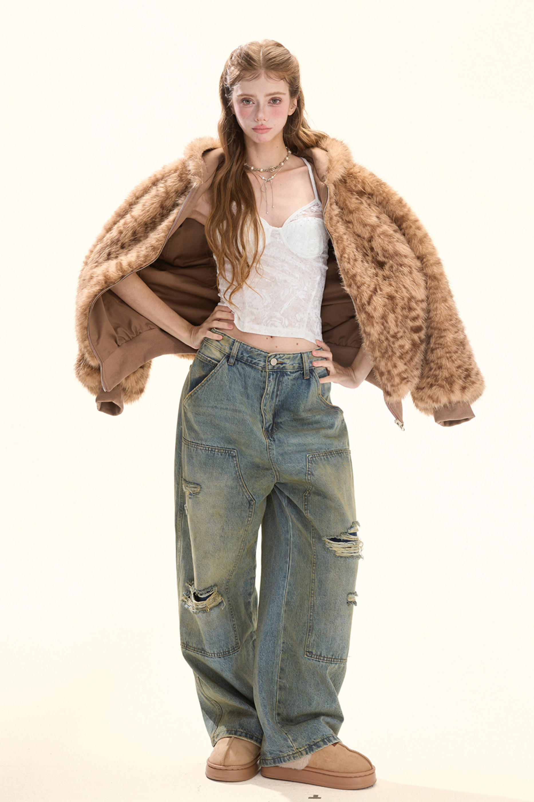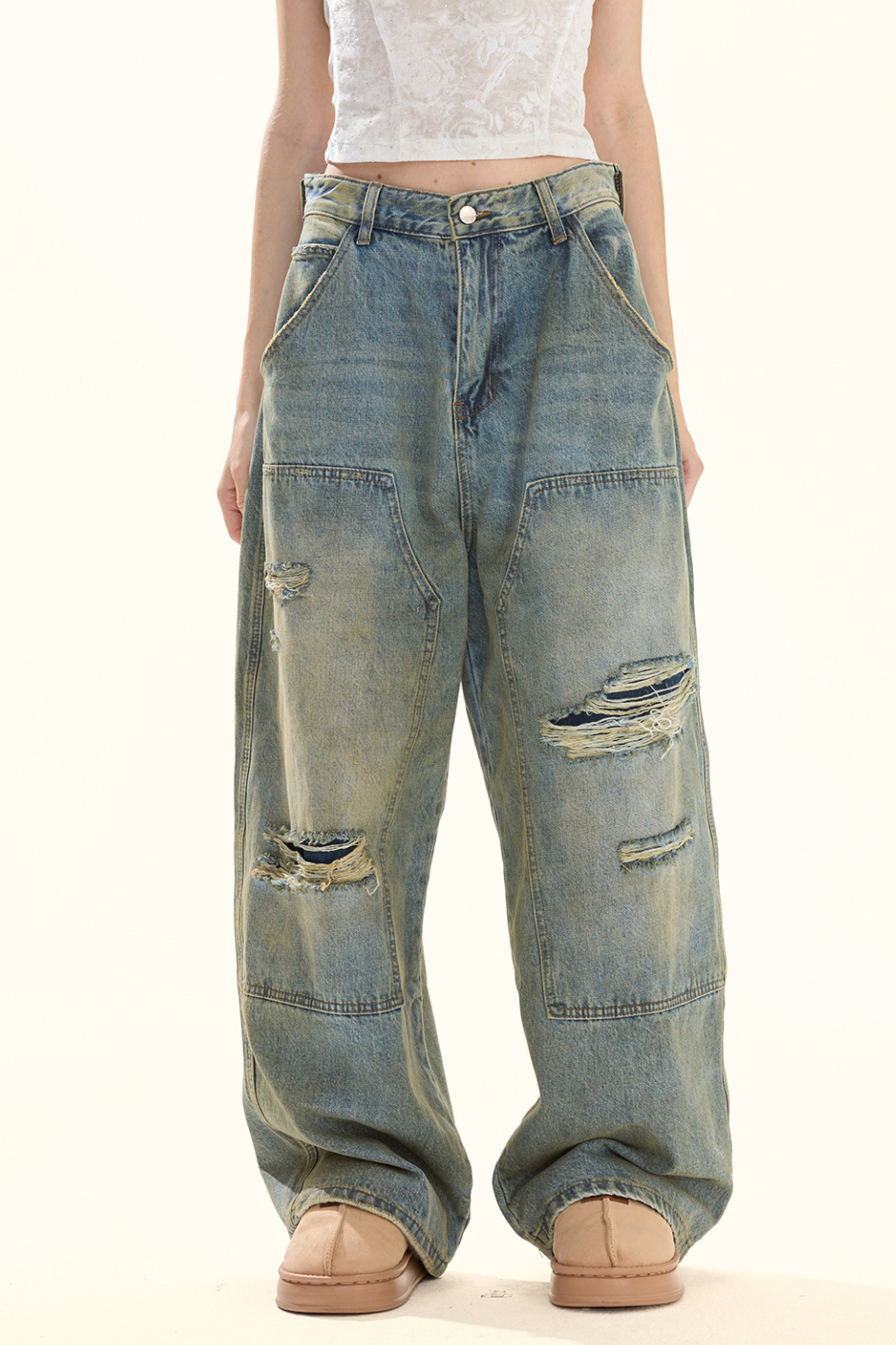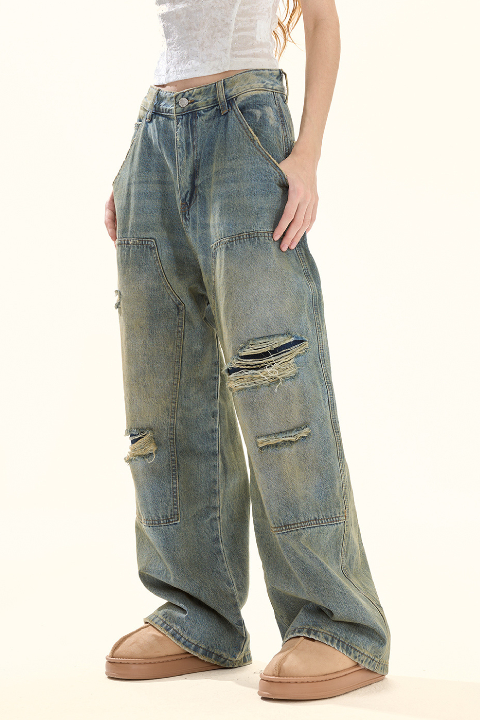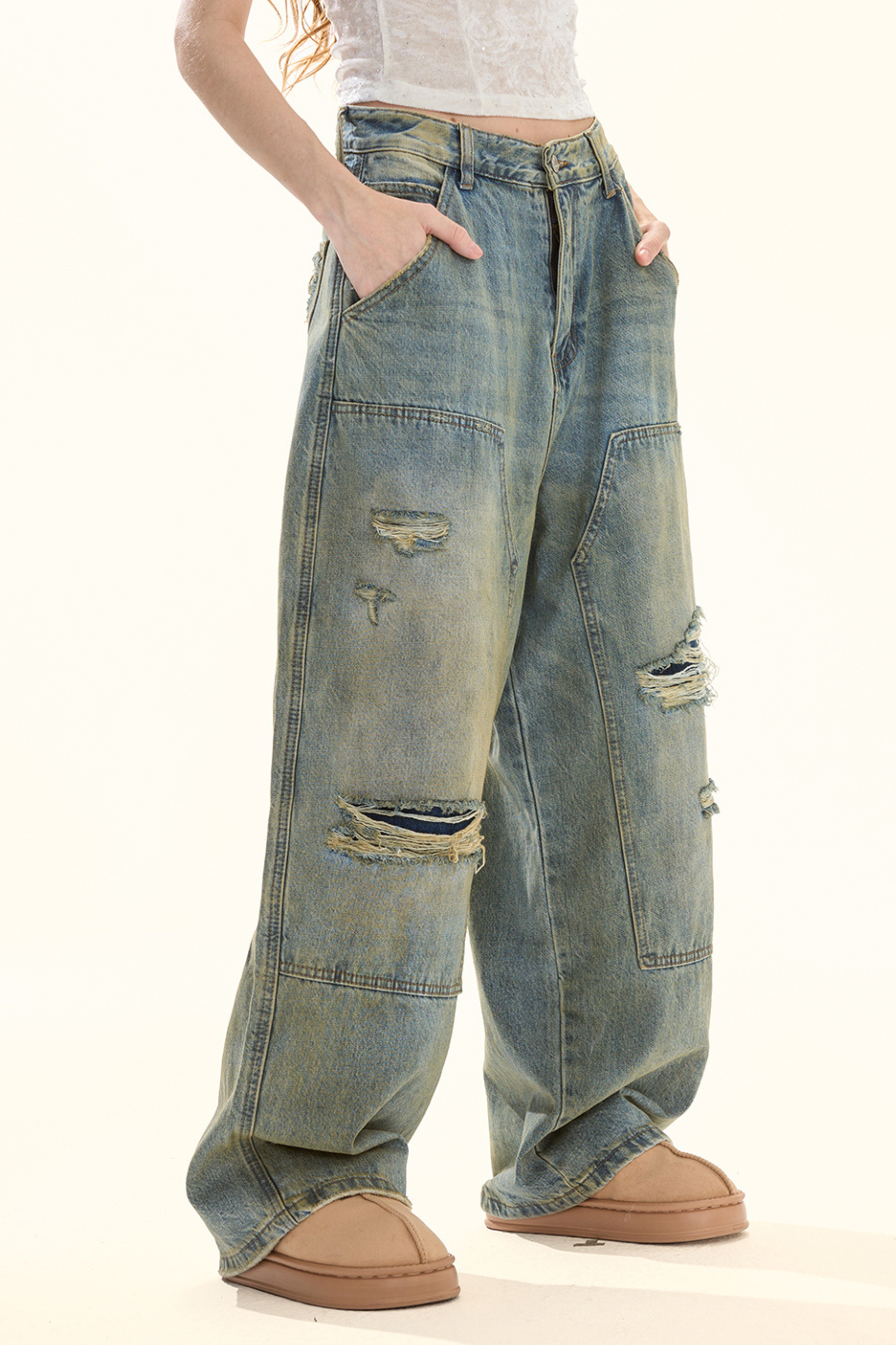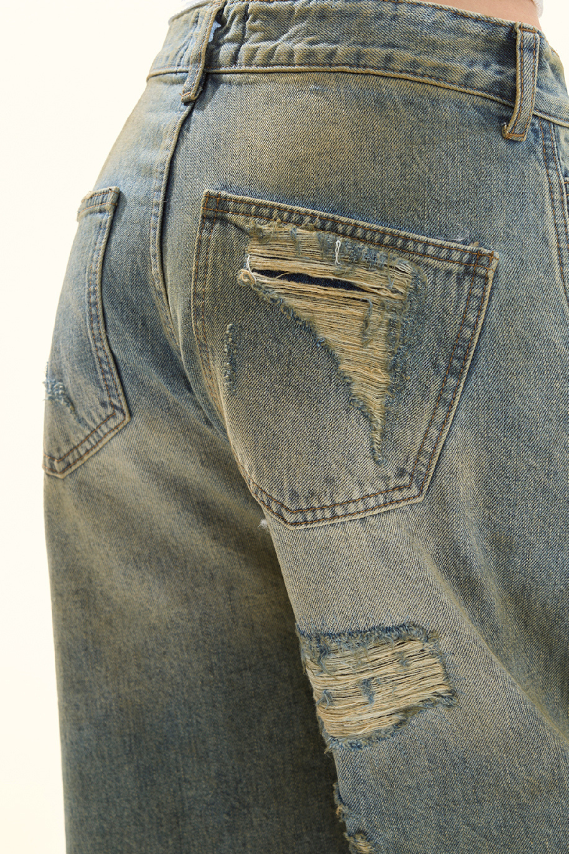 ❤ ウォッシュレトロデザインデニムパンツ❤