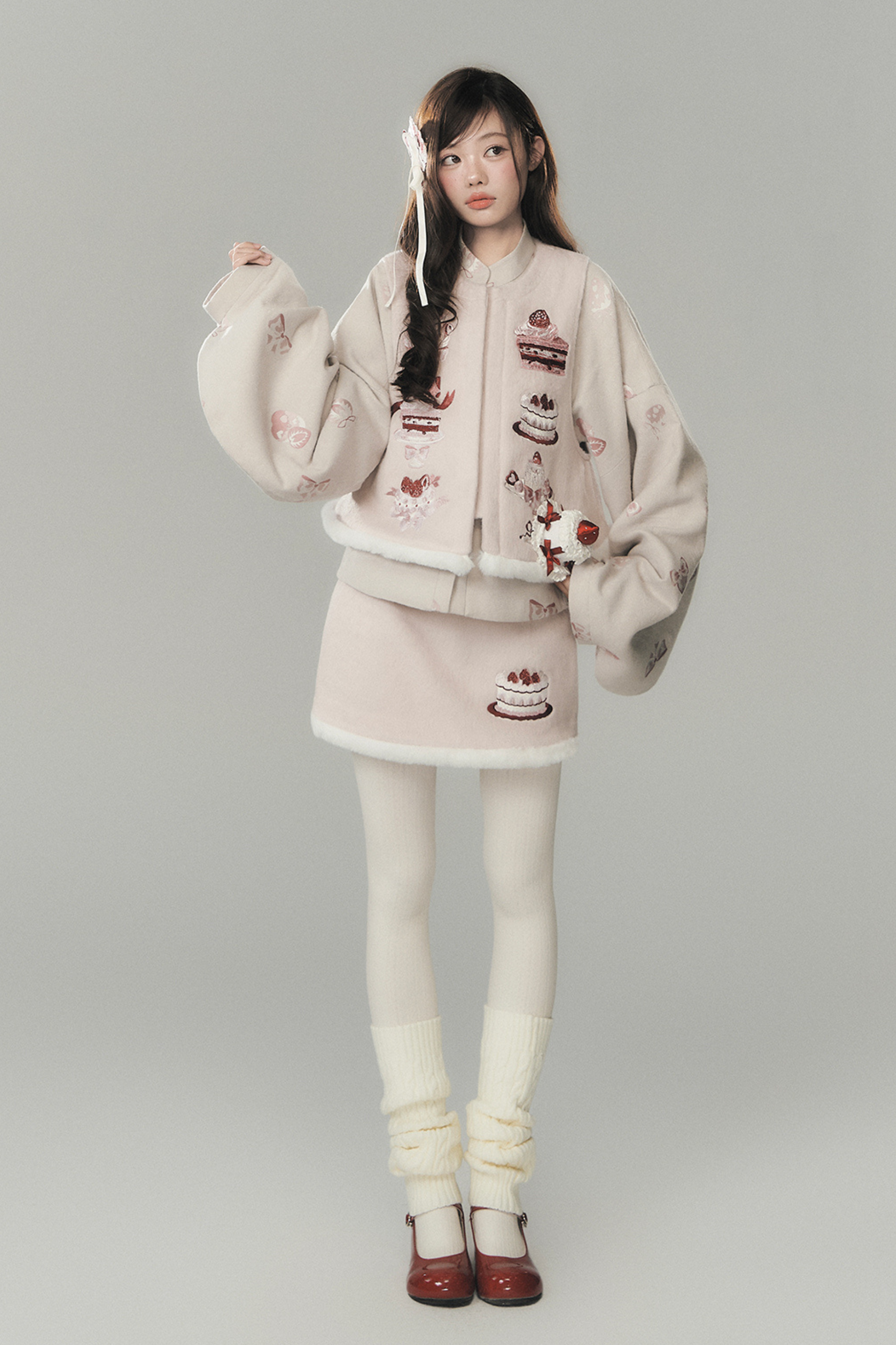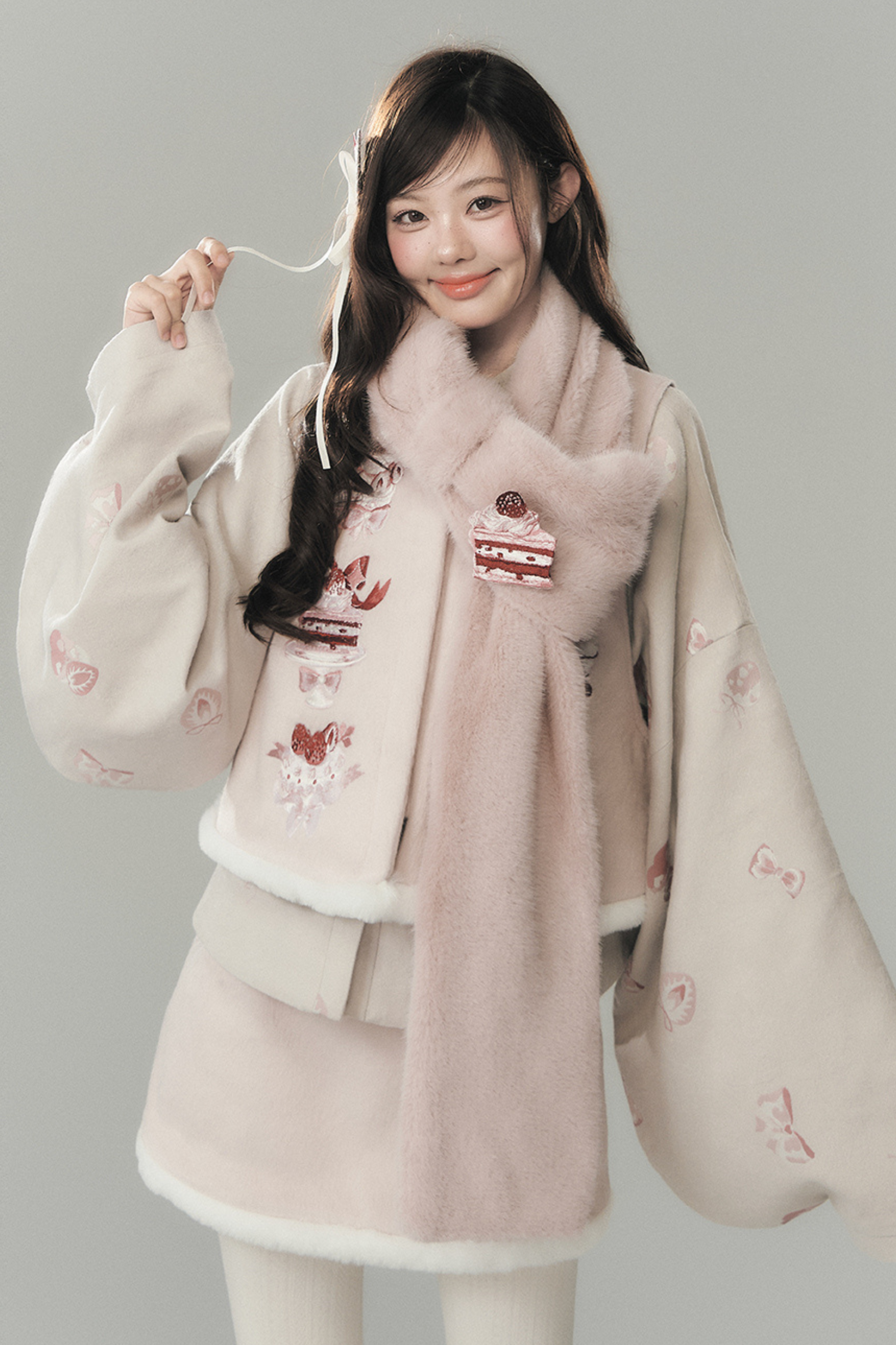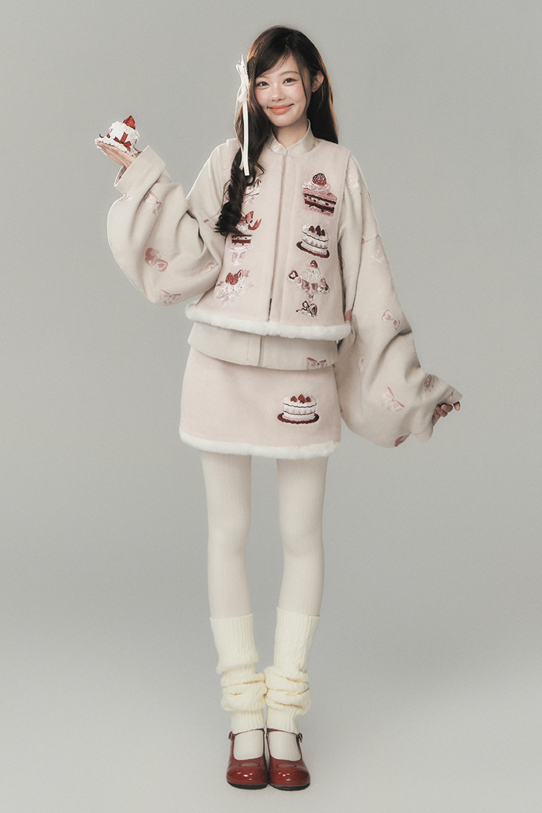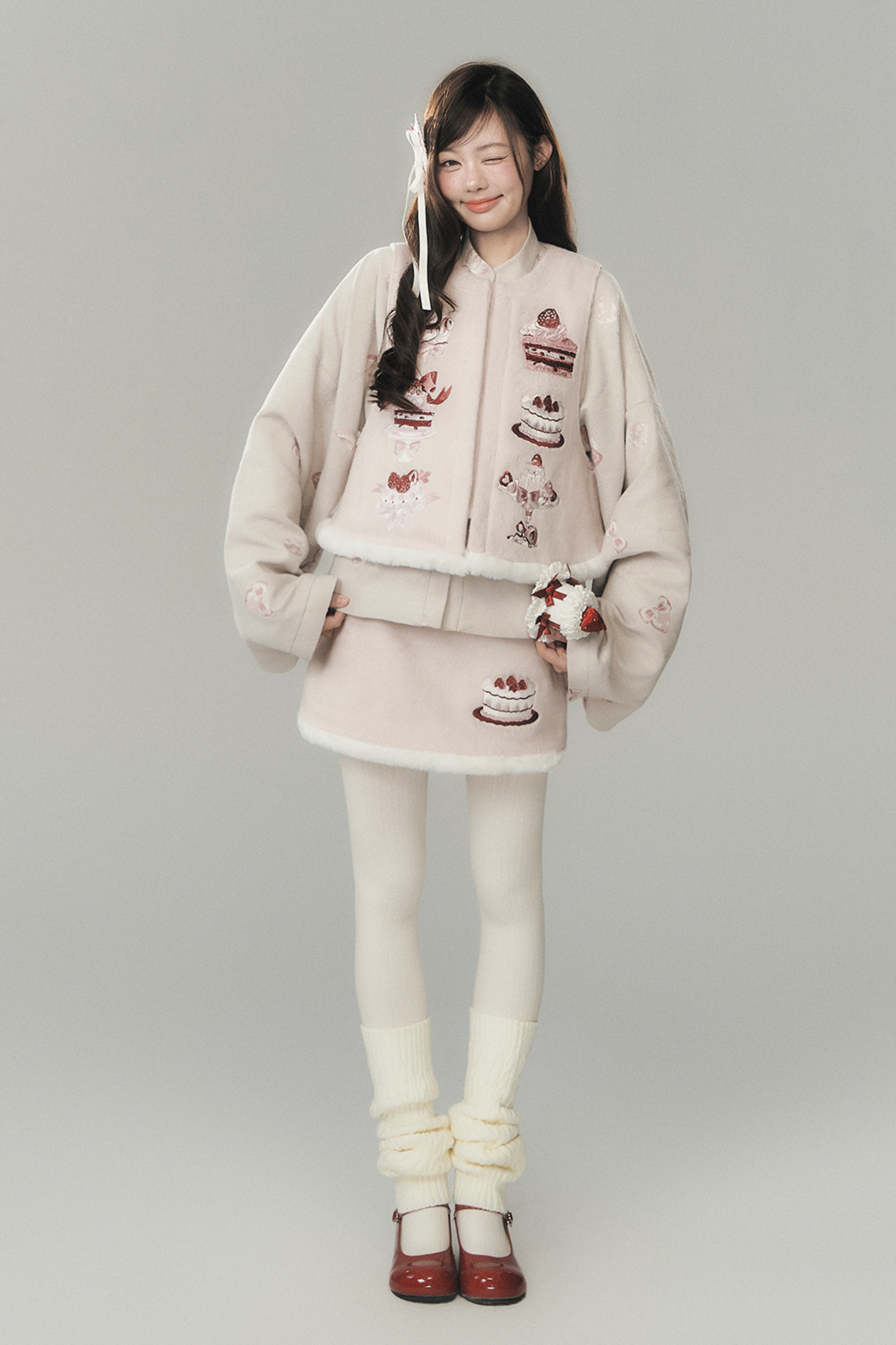 ストロベリーケーキプレッピースタイルベスト+トップス+スカート
