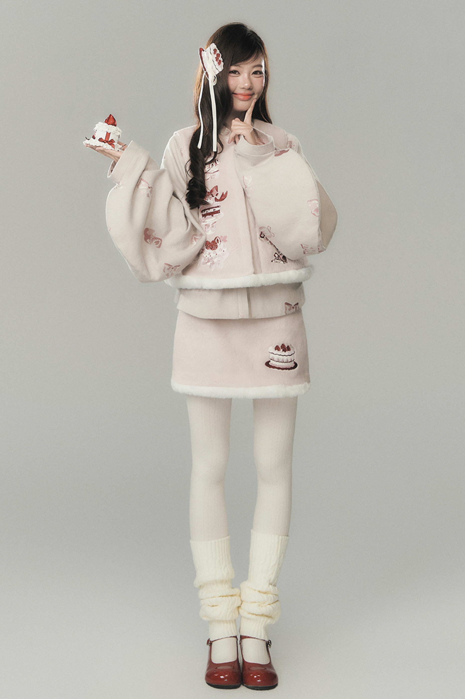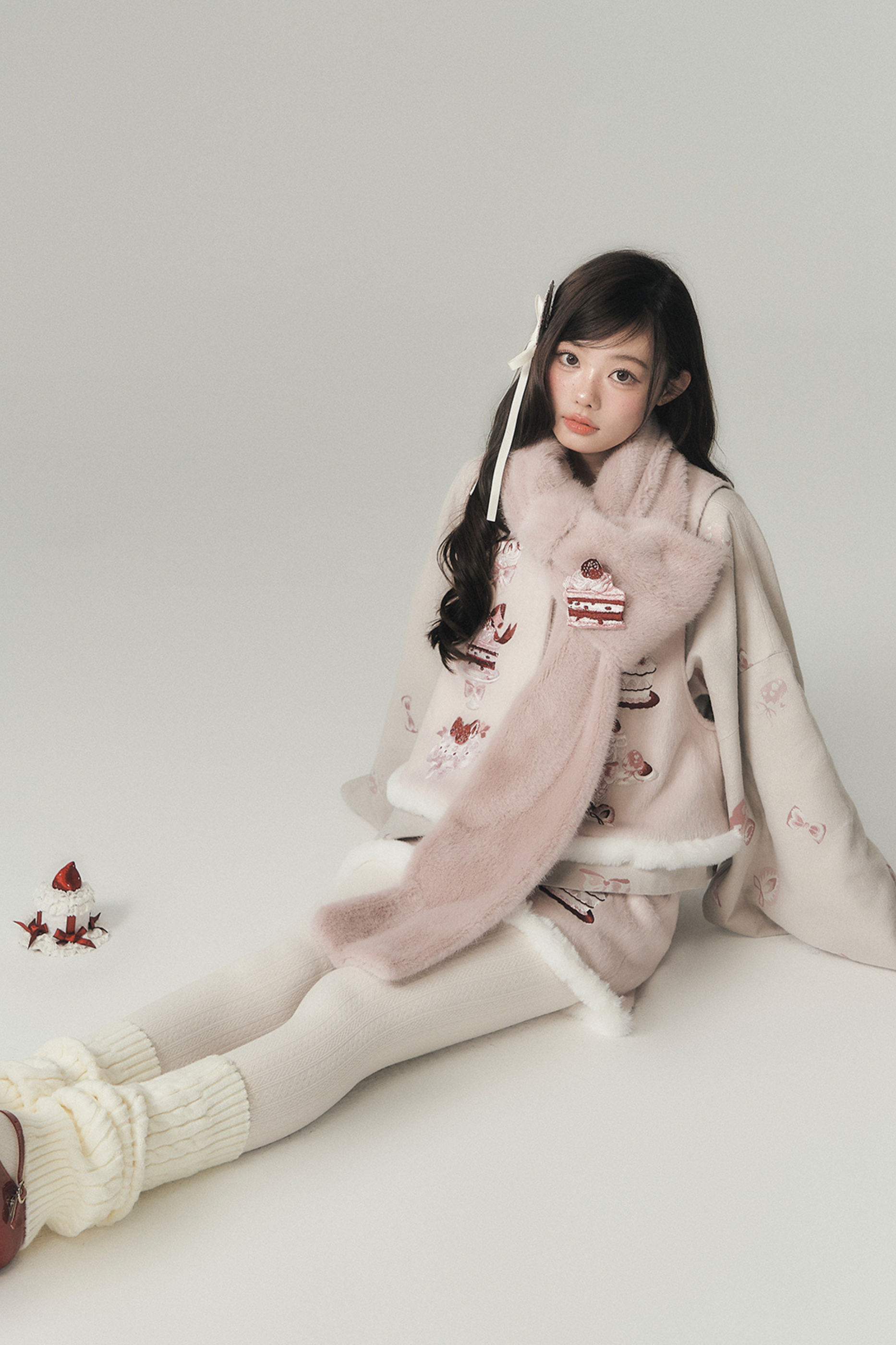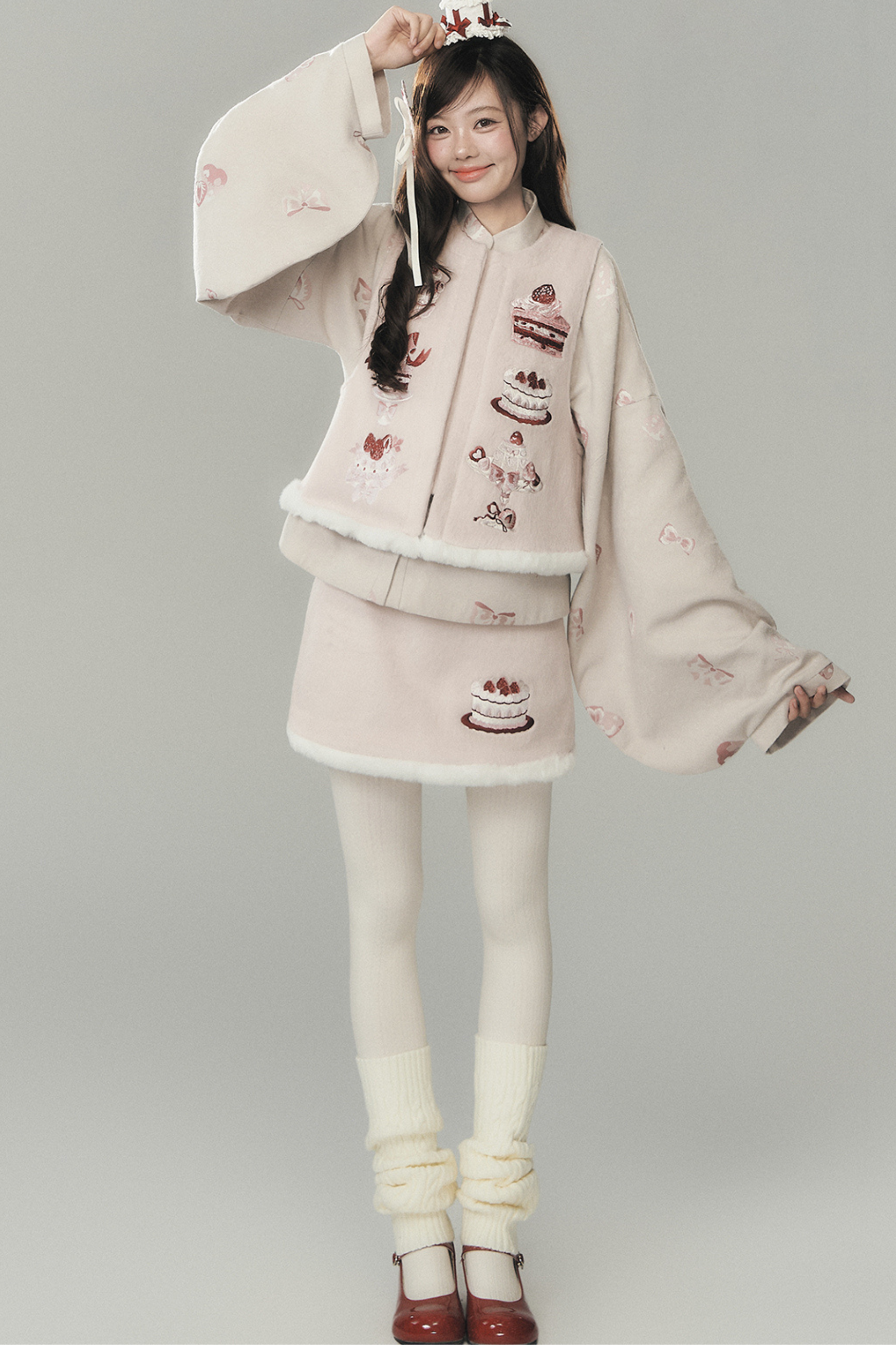 ストロベリーケーキプレッピースタイルベスト+トップス+スカート