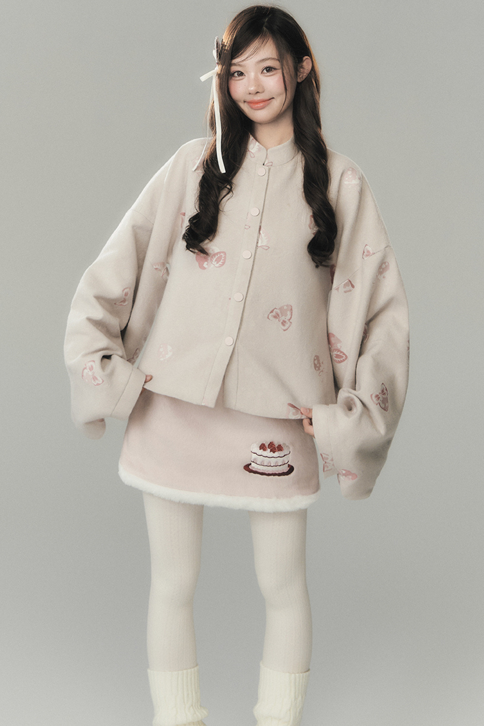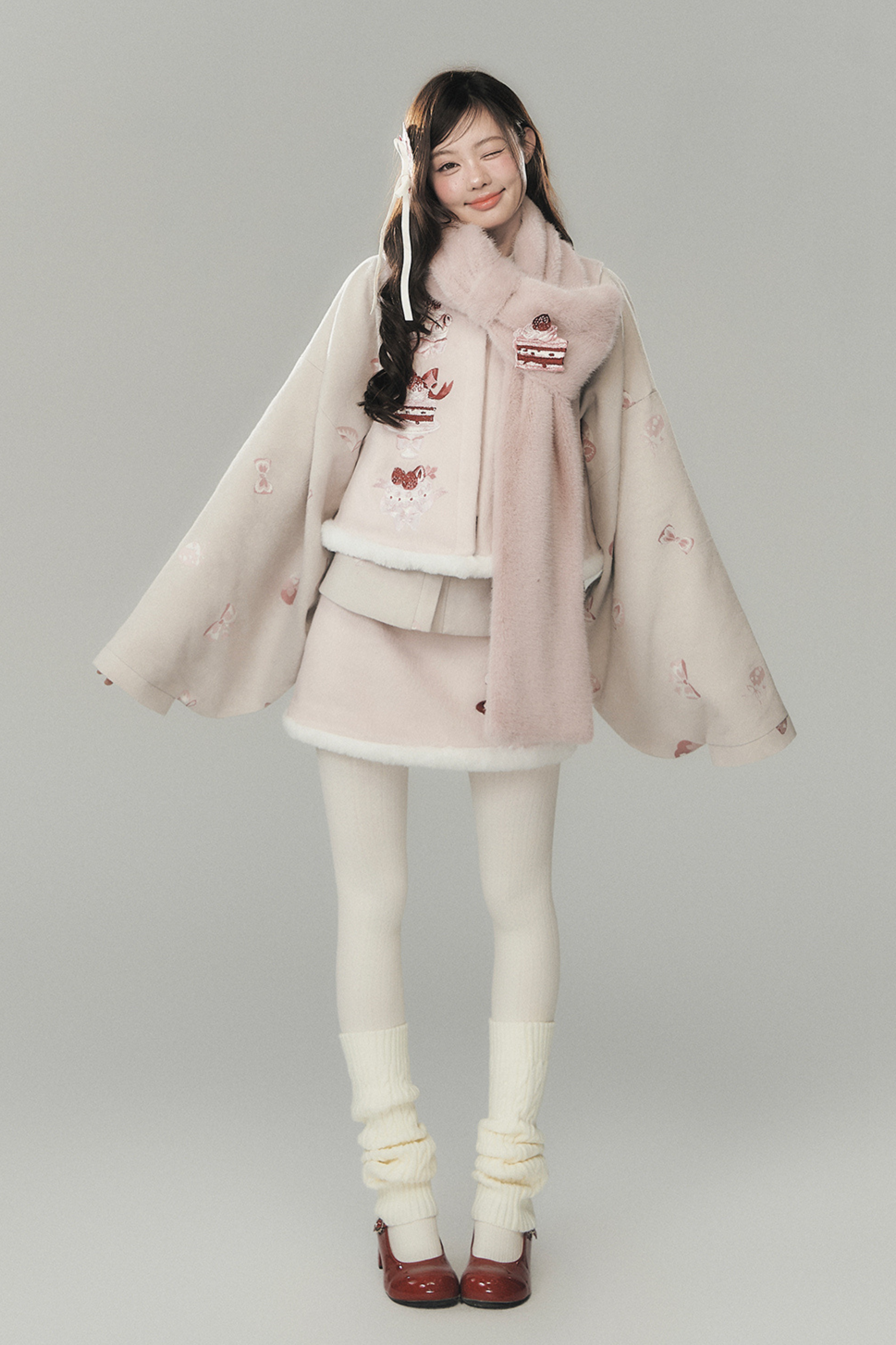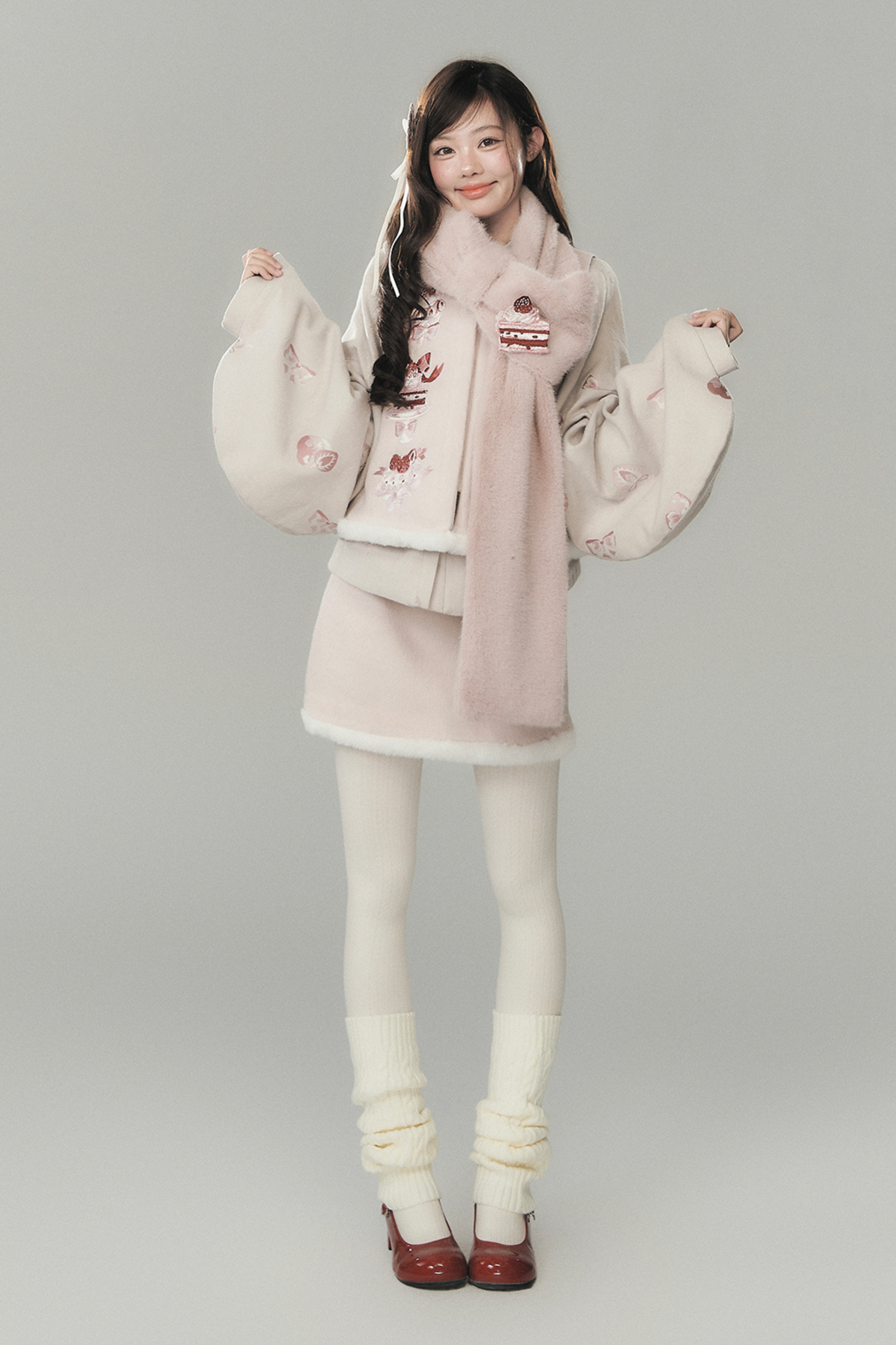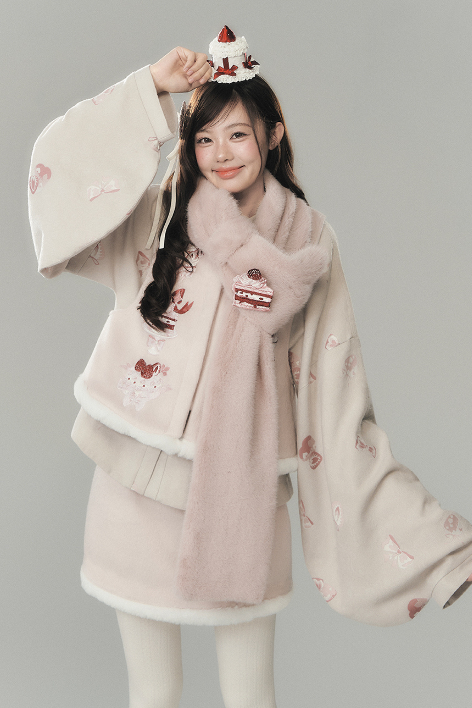 ストロベリーケーキプレッピースタイルベスト+トップス+スカート