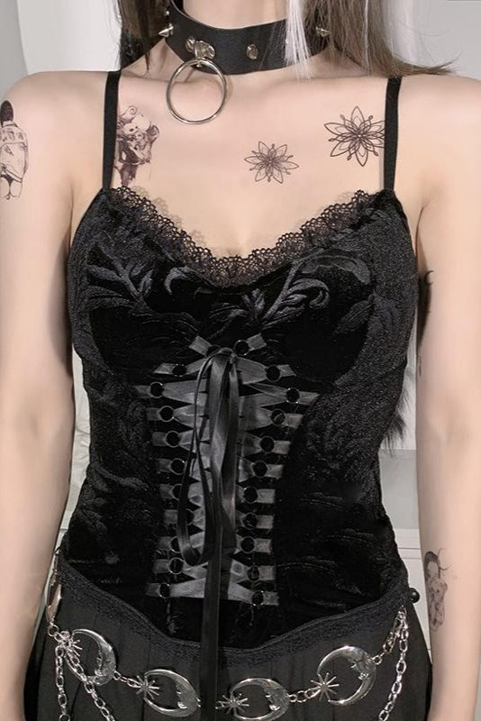 レースコルセットキャミトップス