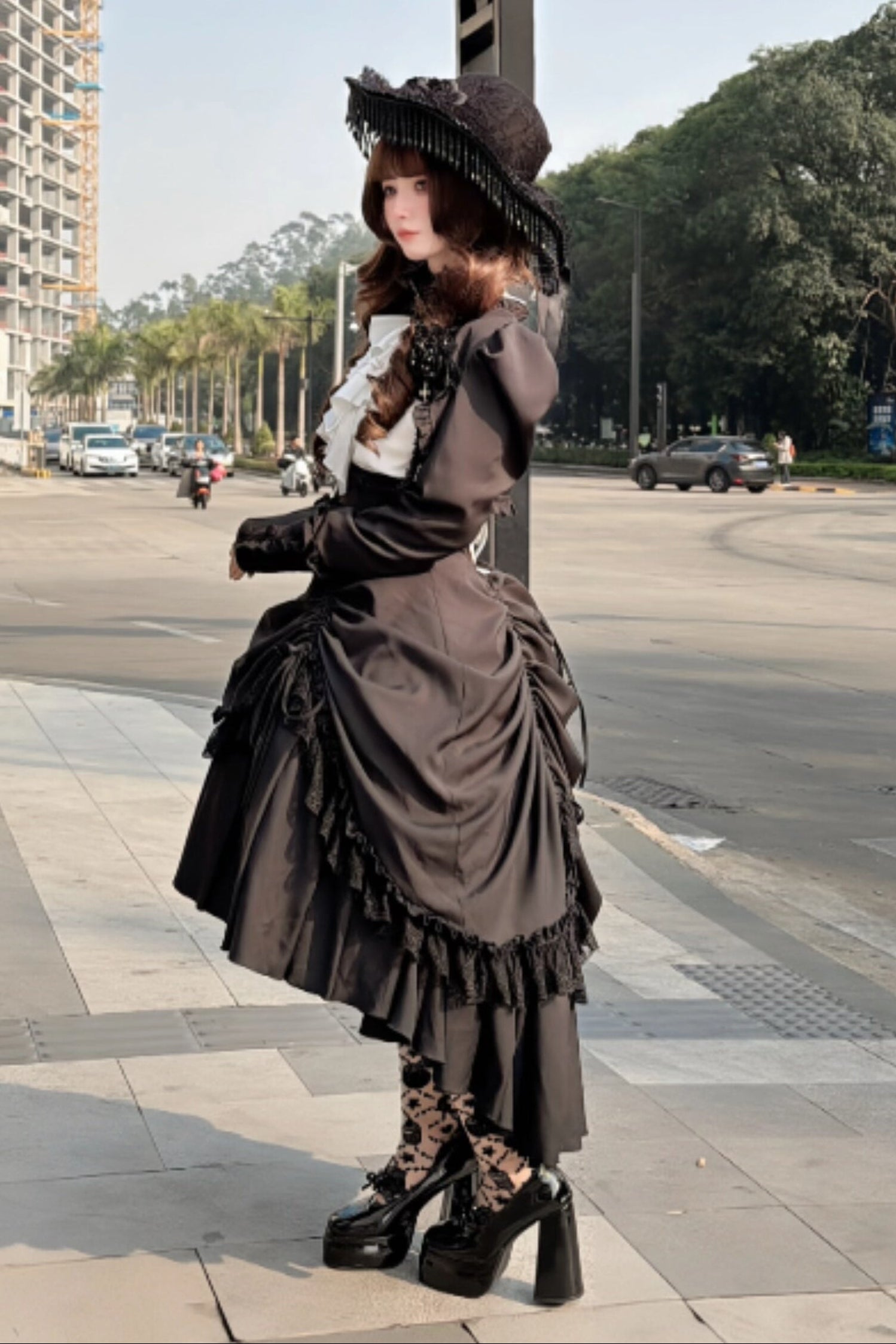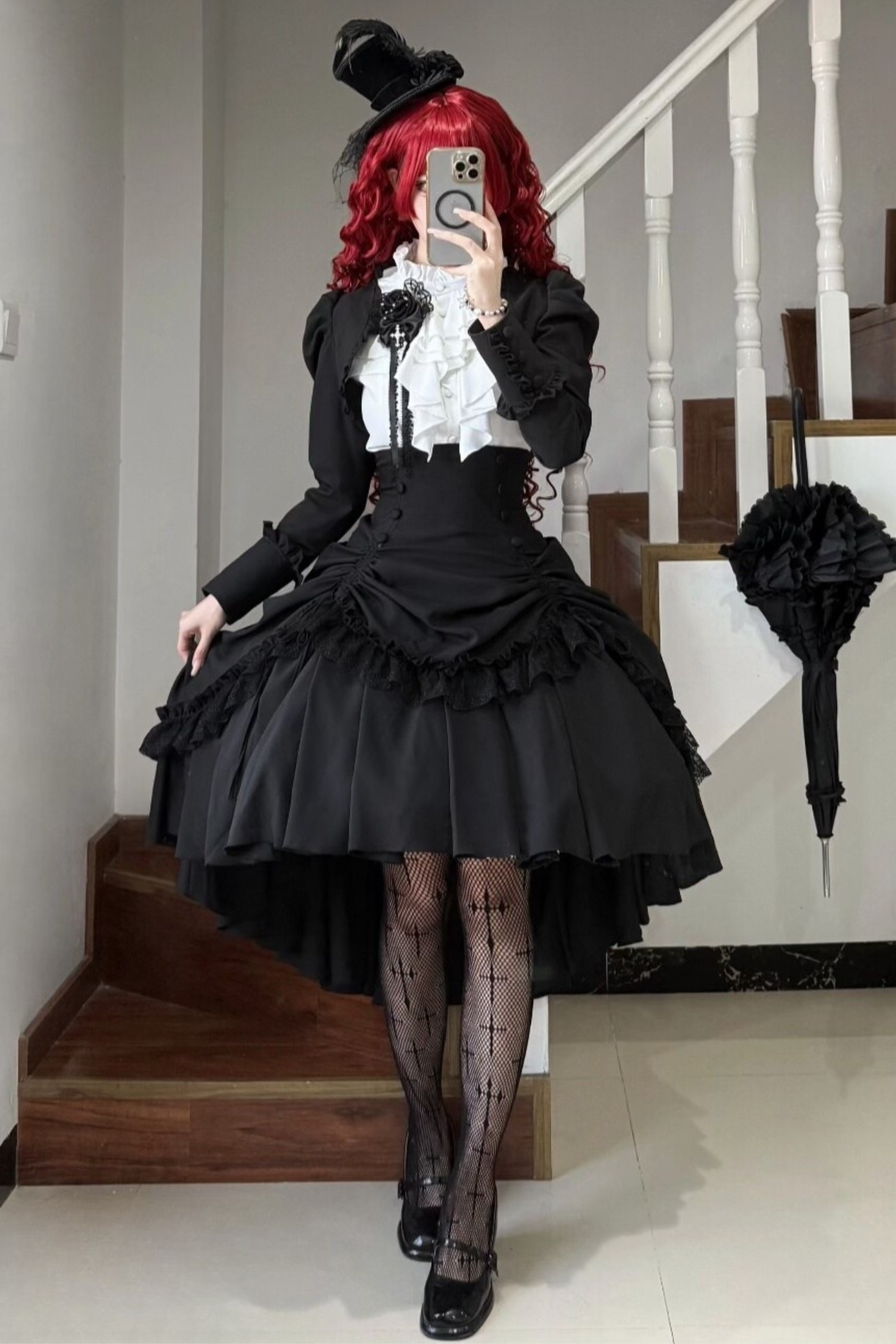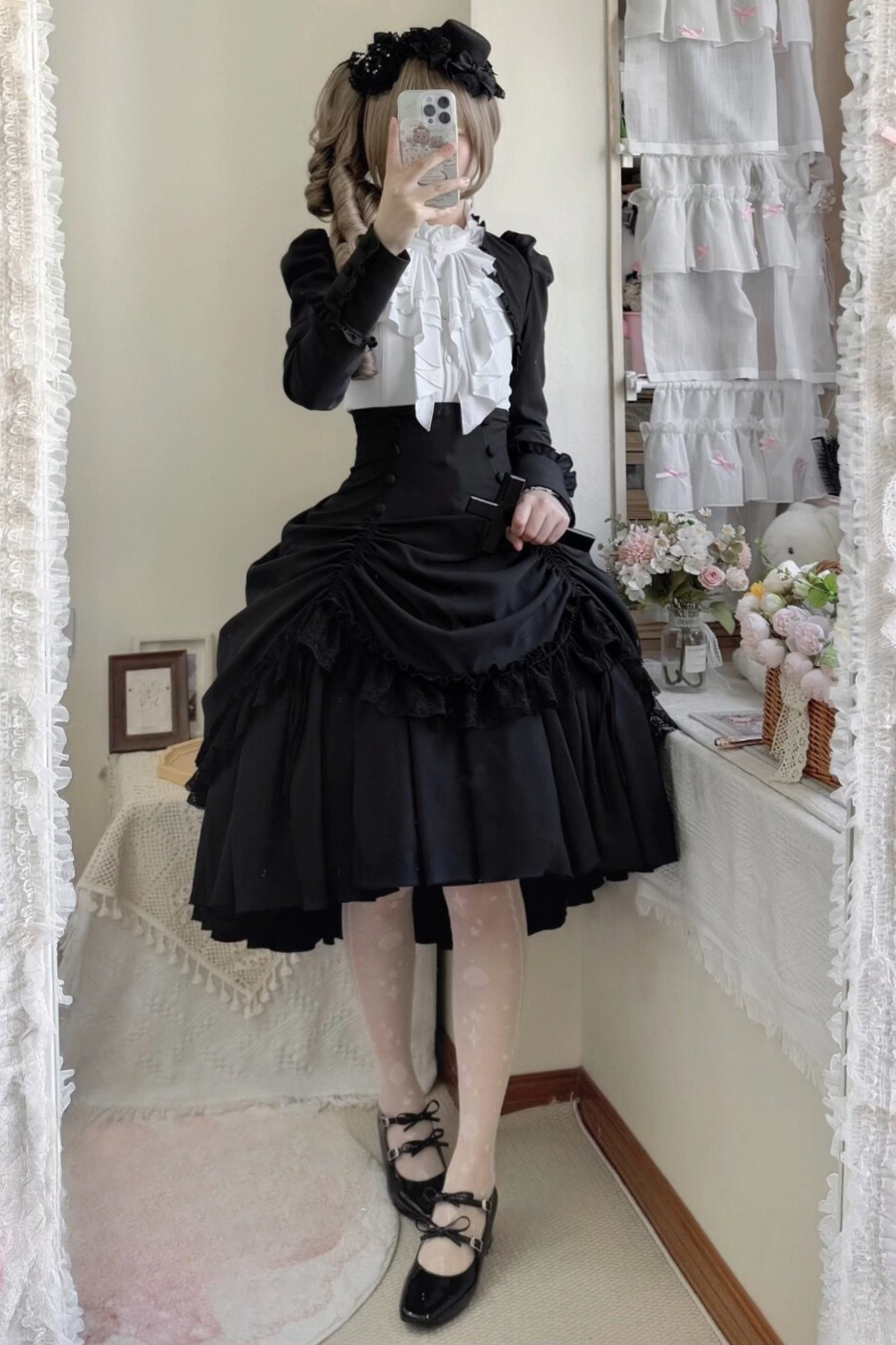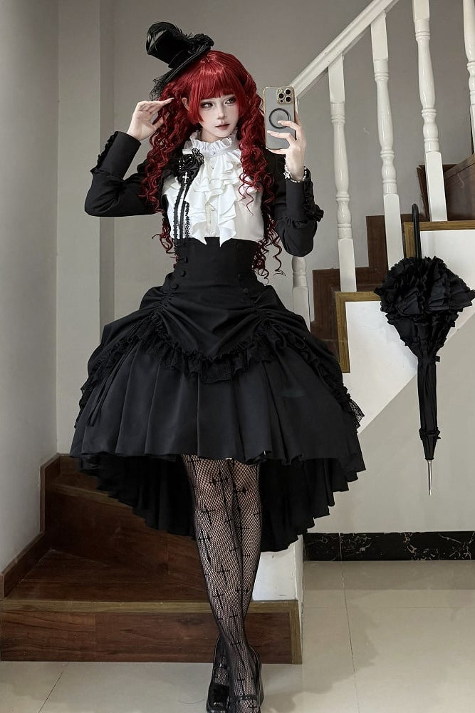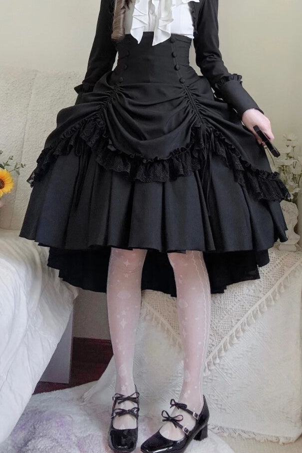 【3月6日予約締切】ダークゴシックブラックコルセットレイヤードプルアップスカート