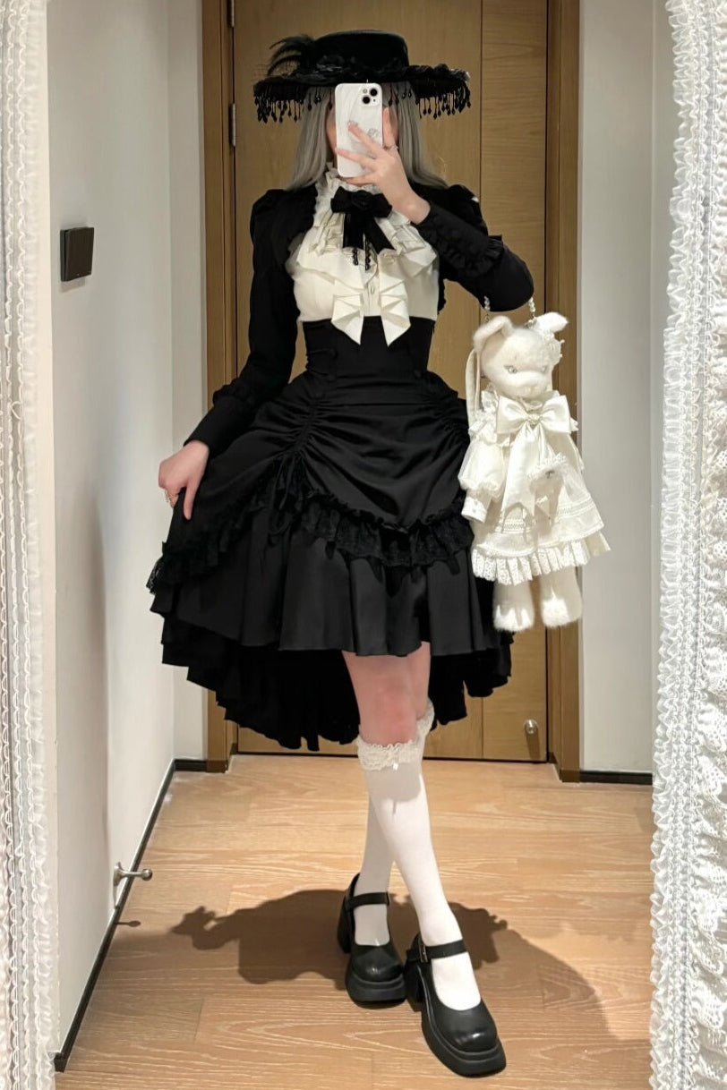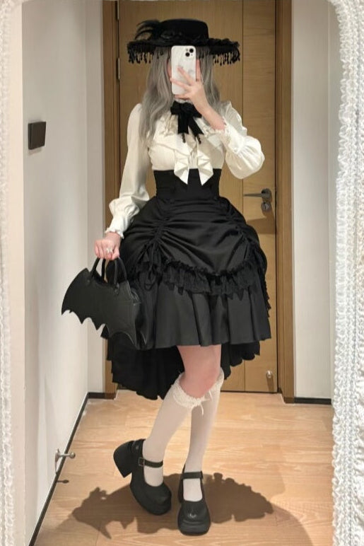 ❤︎【3月6日予約締切】ダークゴシックブラックコルセットレイヤードプルアップスカート❤︎ ⚠️人気商品のためお届けに3ヶ月ほどかかってしまう場合がございます