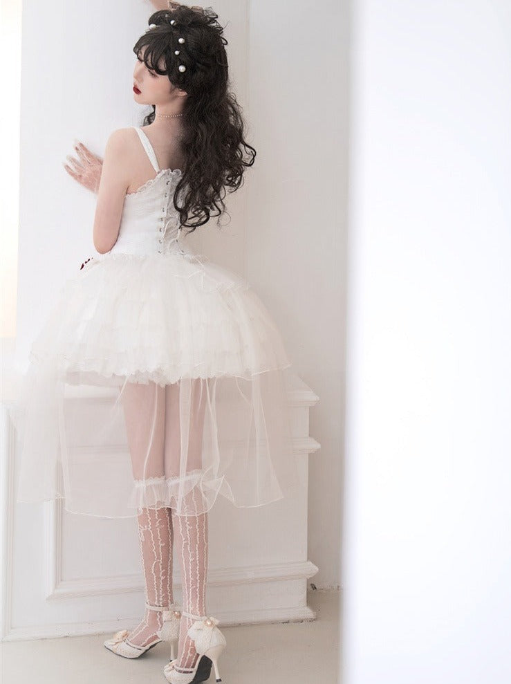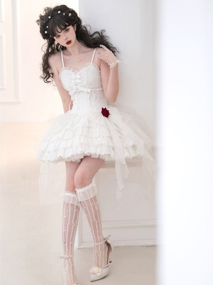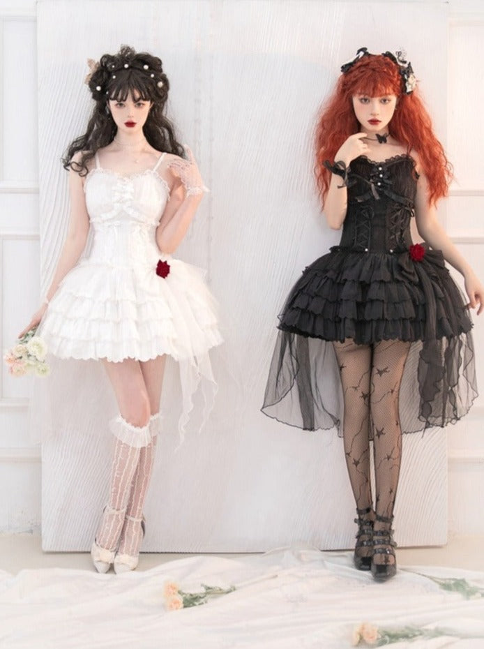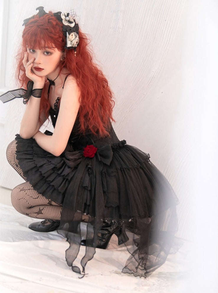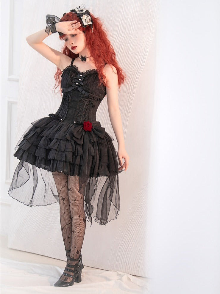 ❤︎ローズリボンチュール付きレースアップティアードキャミワンピース❤︎