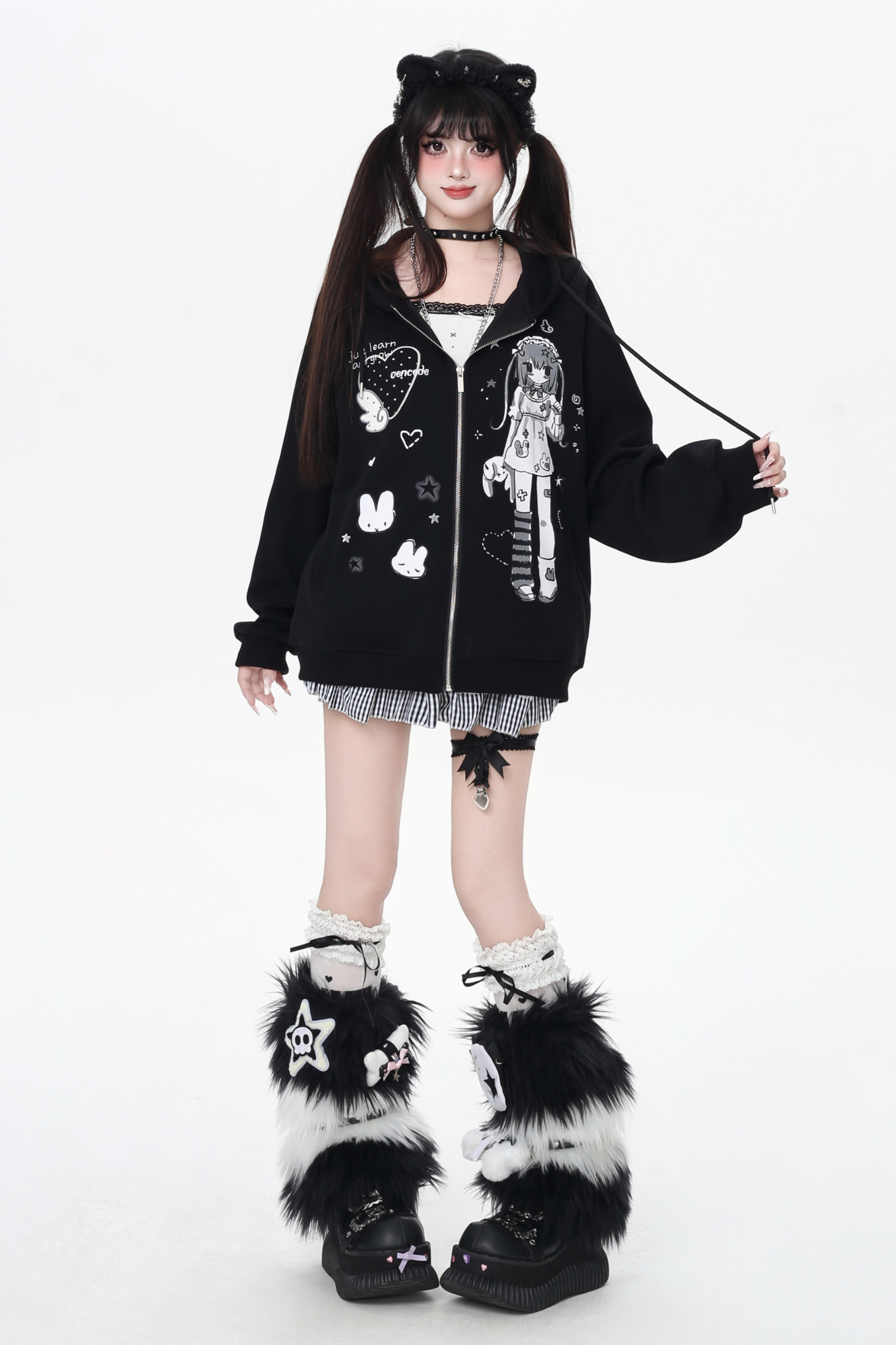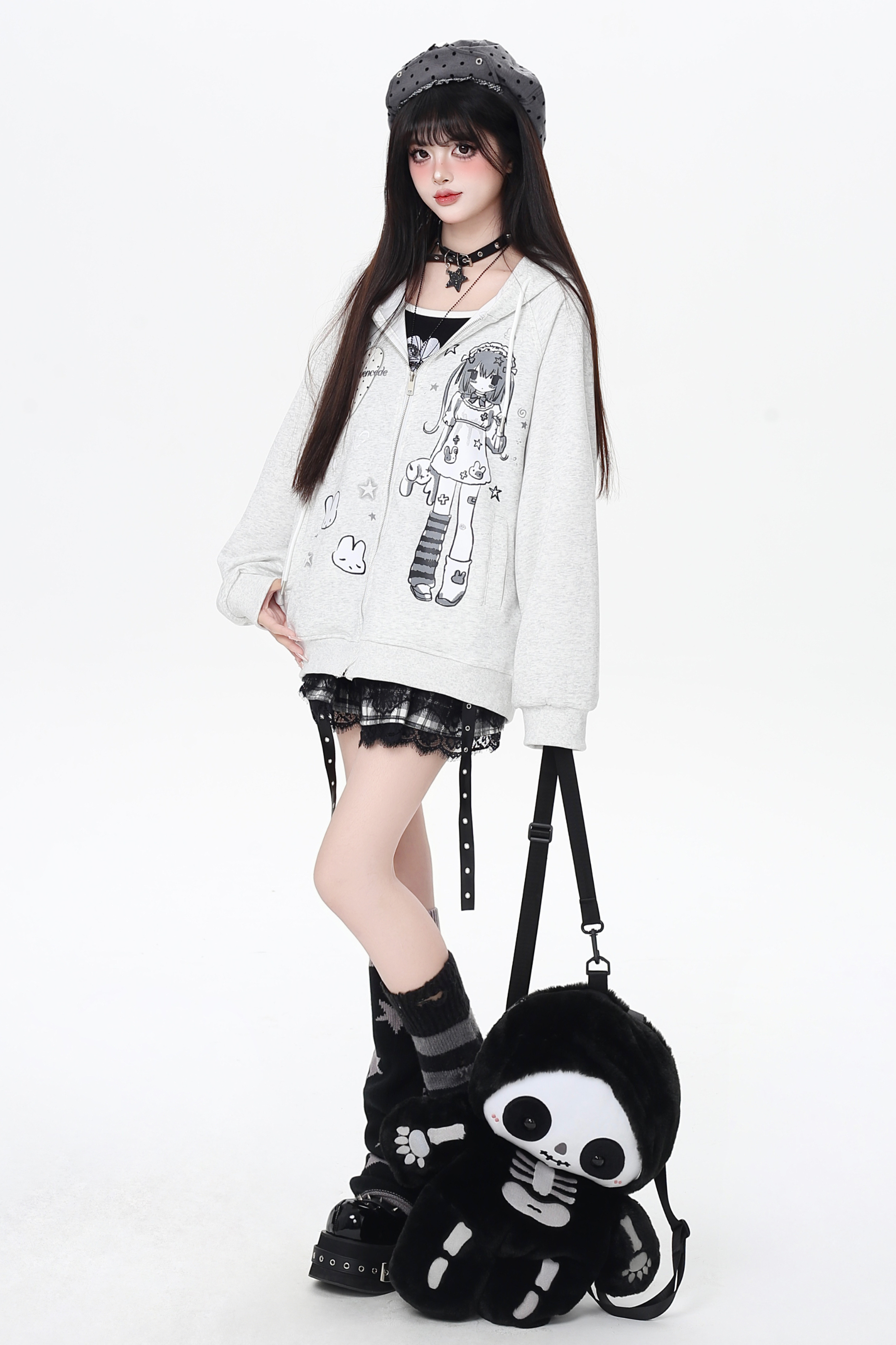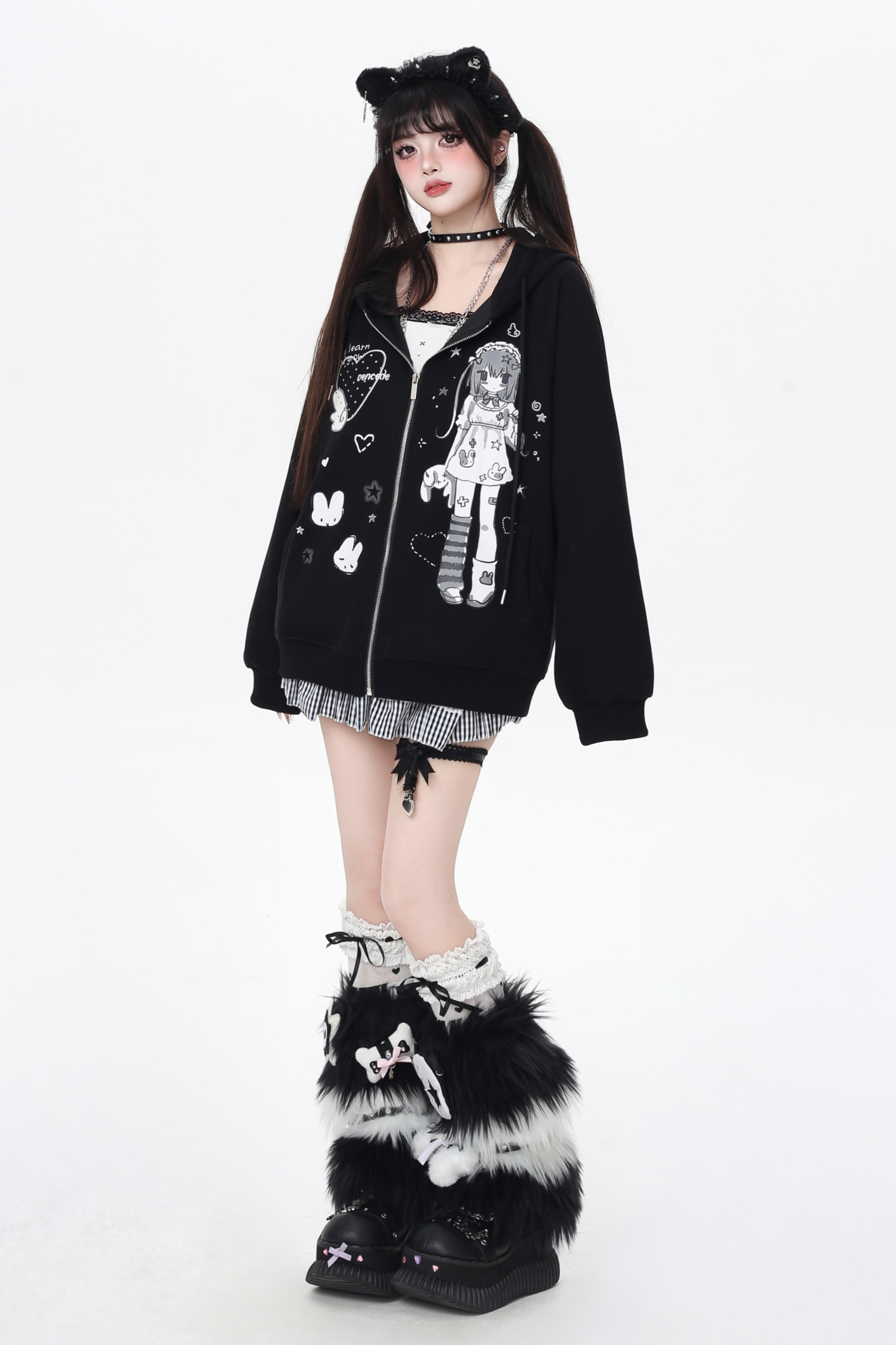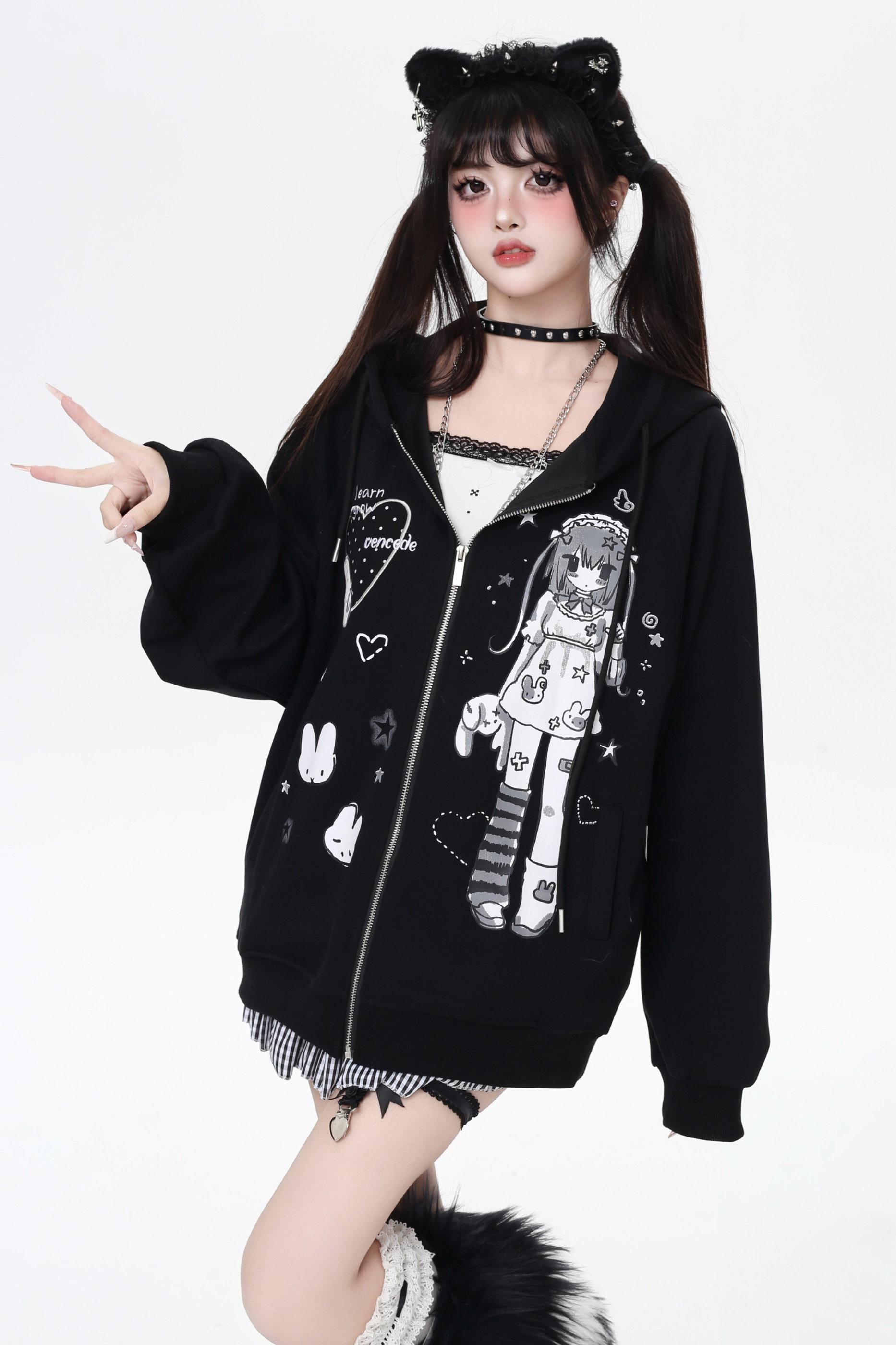 ガールイラストフードパーカー