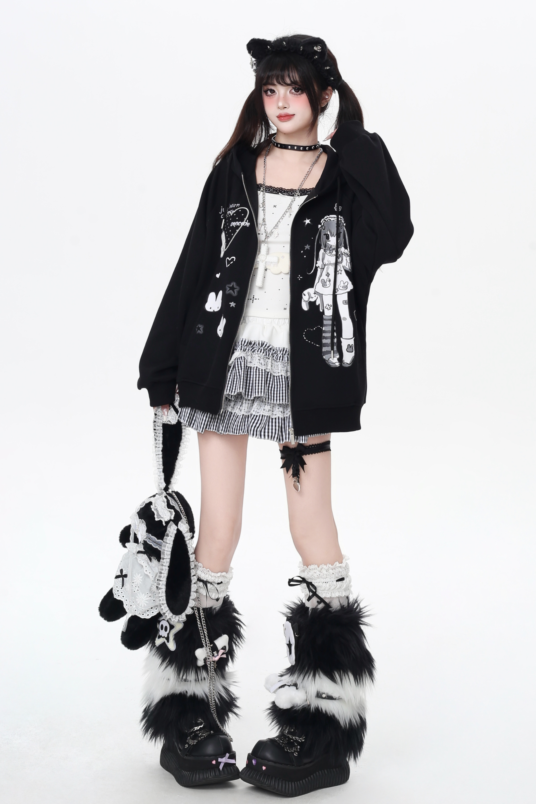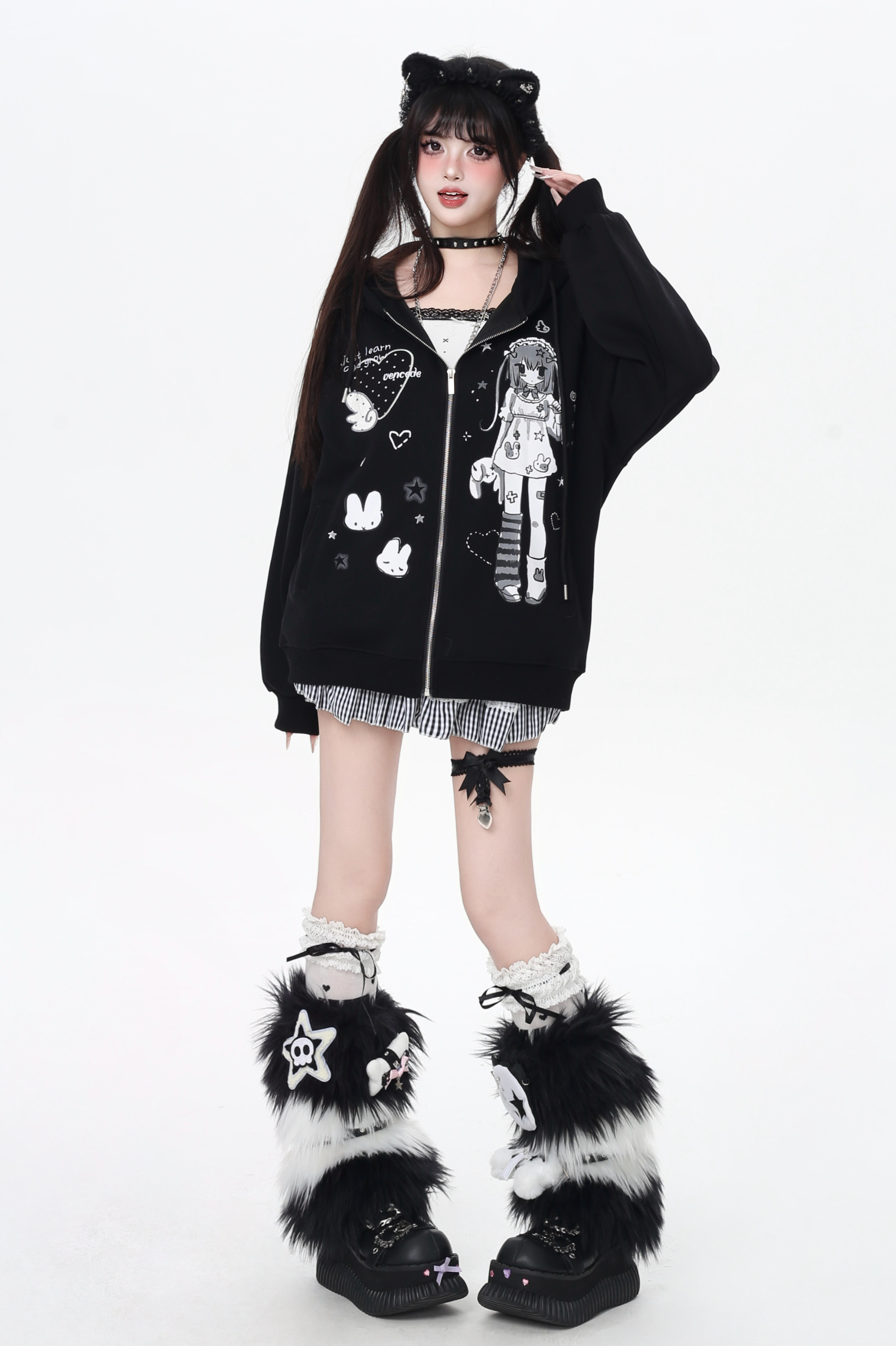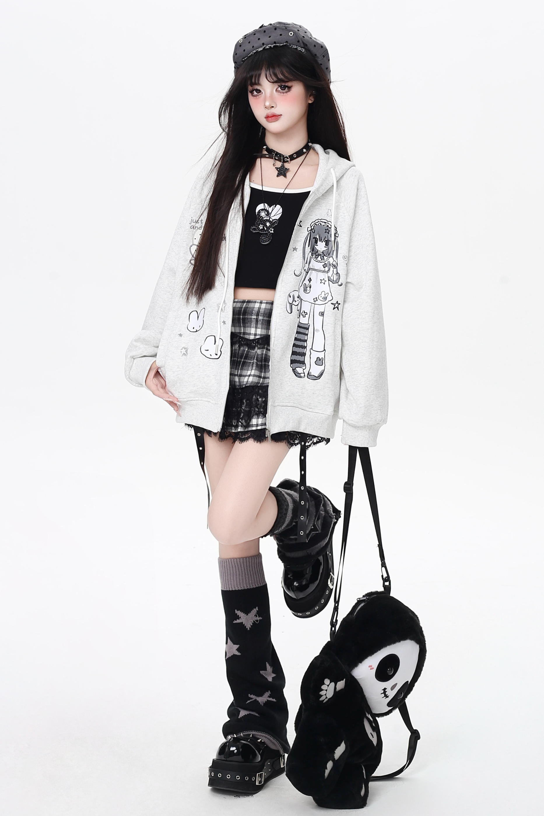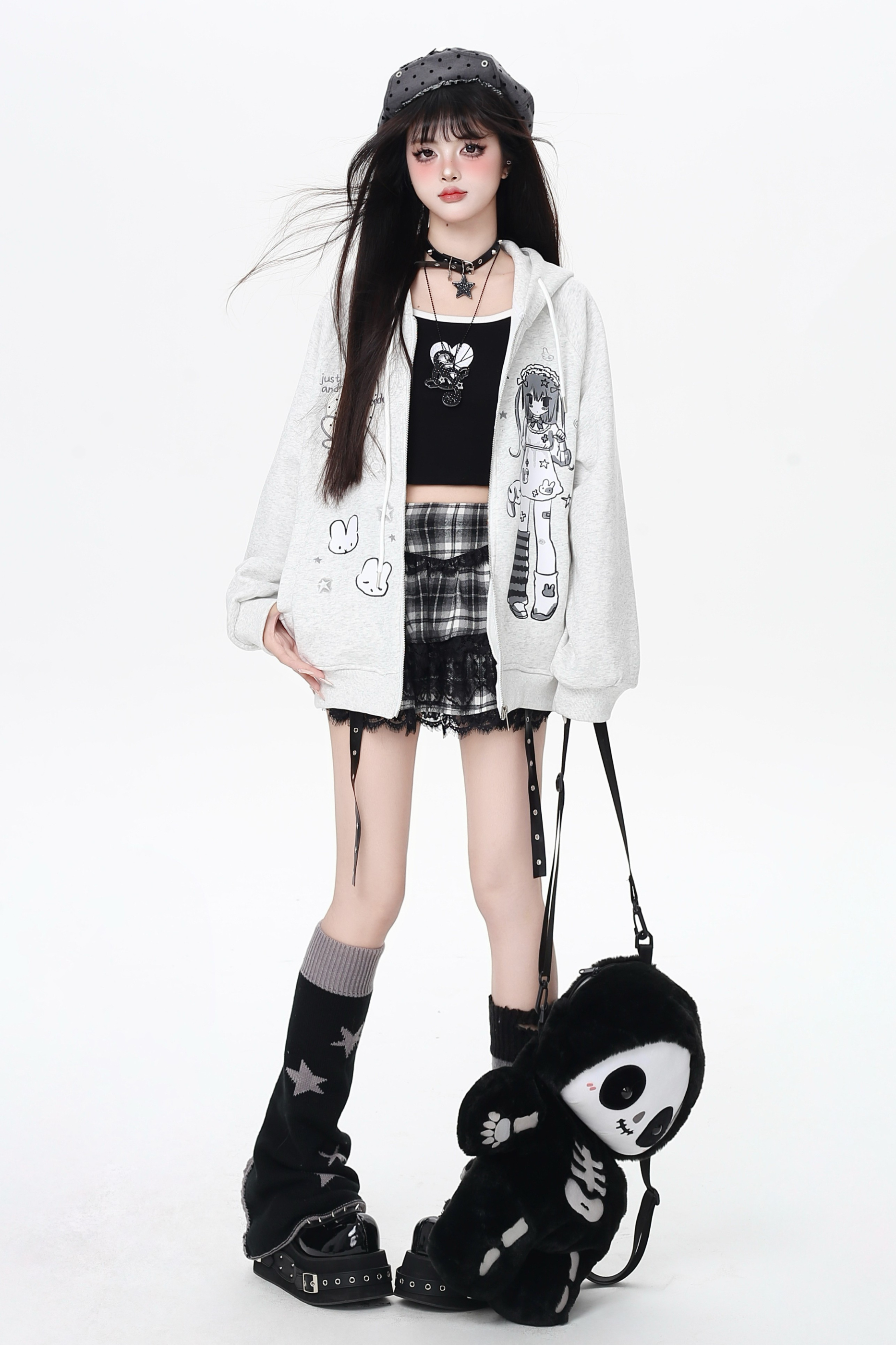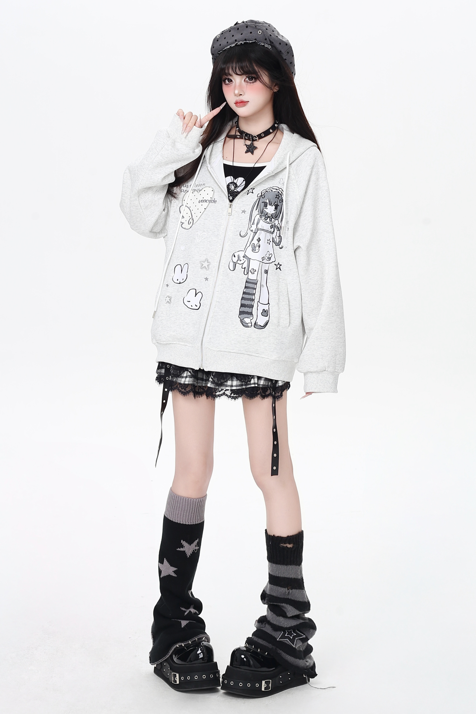ガールイラストフードパーカー