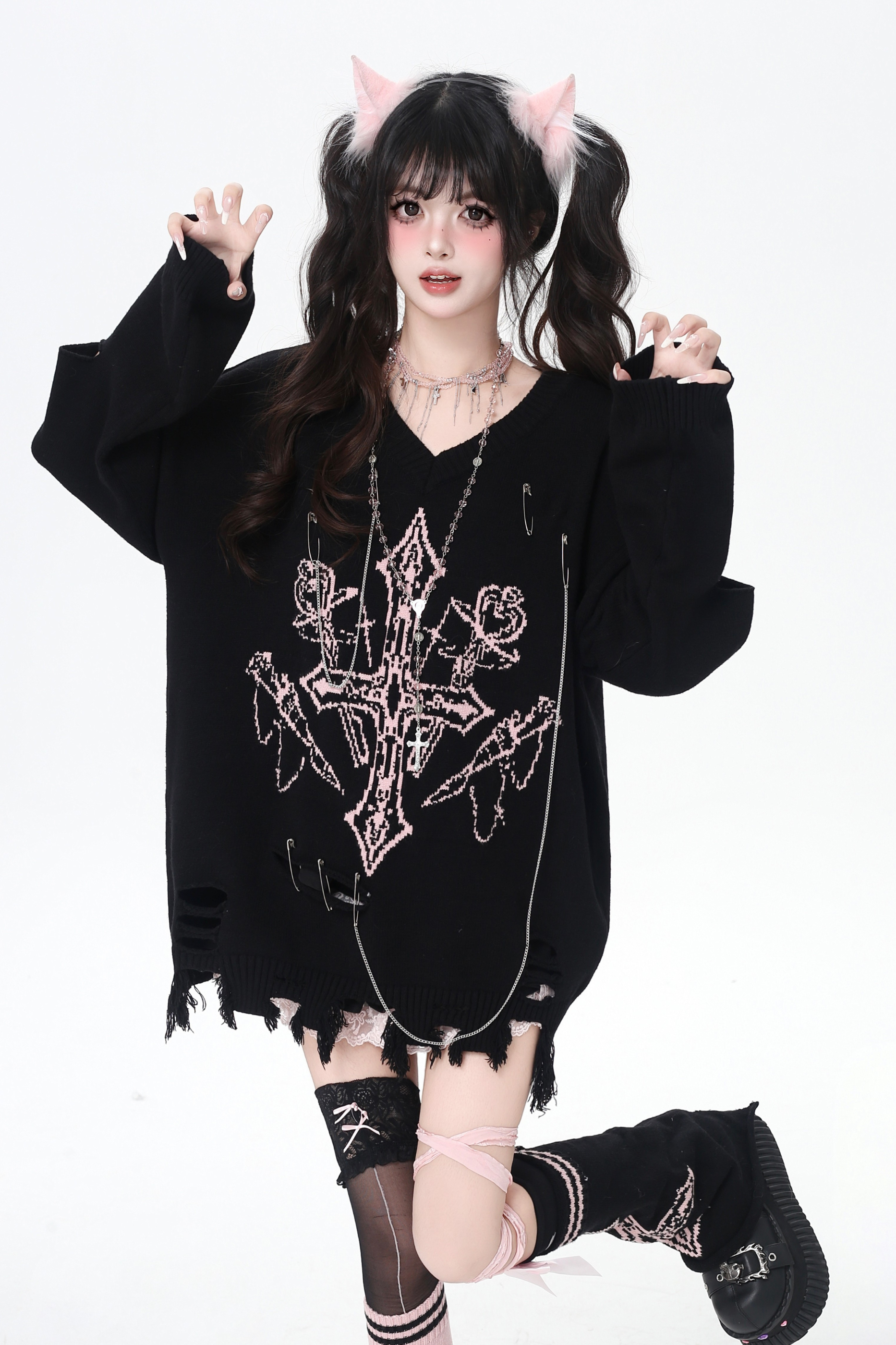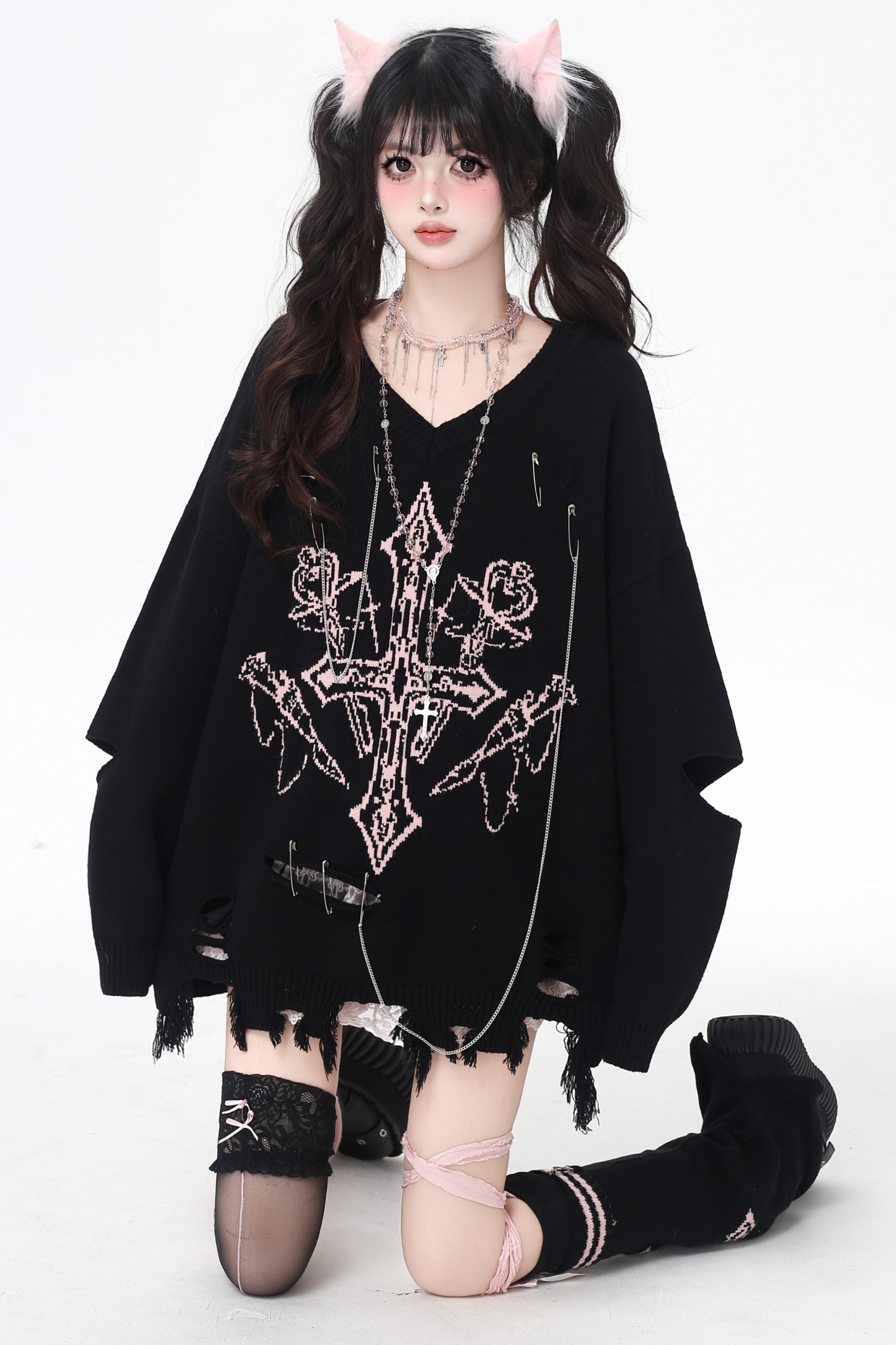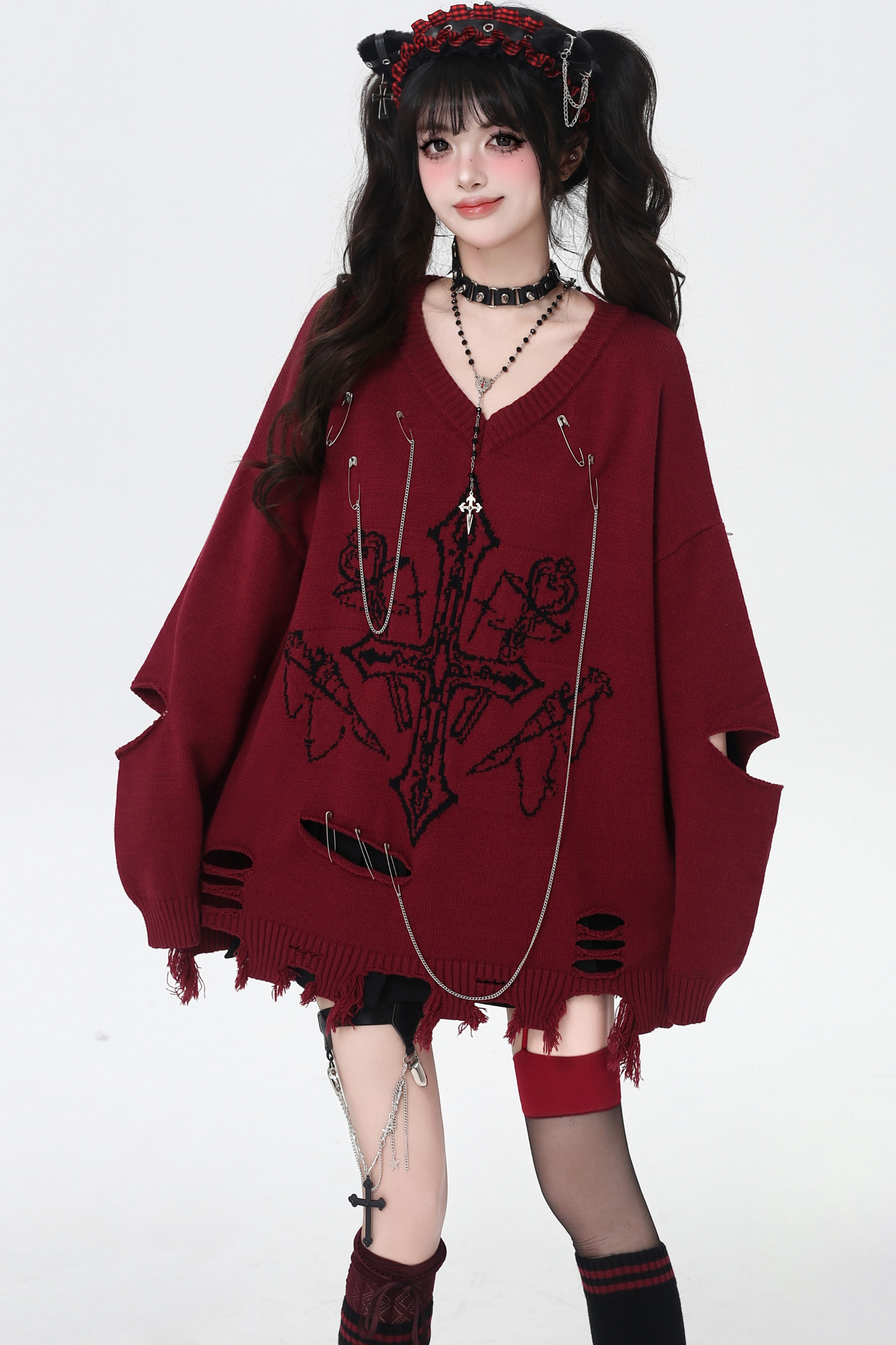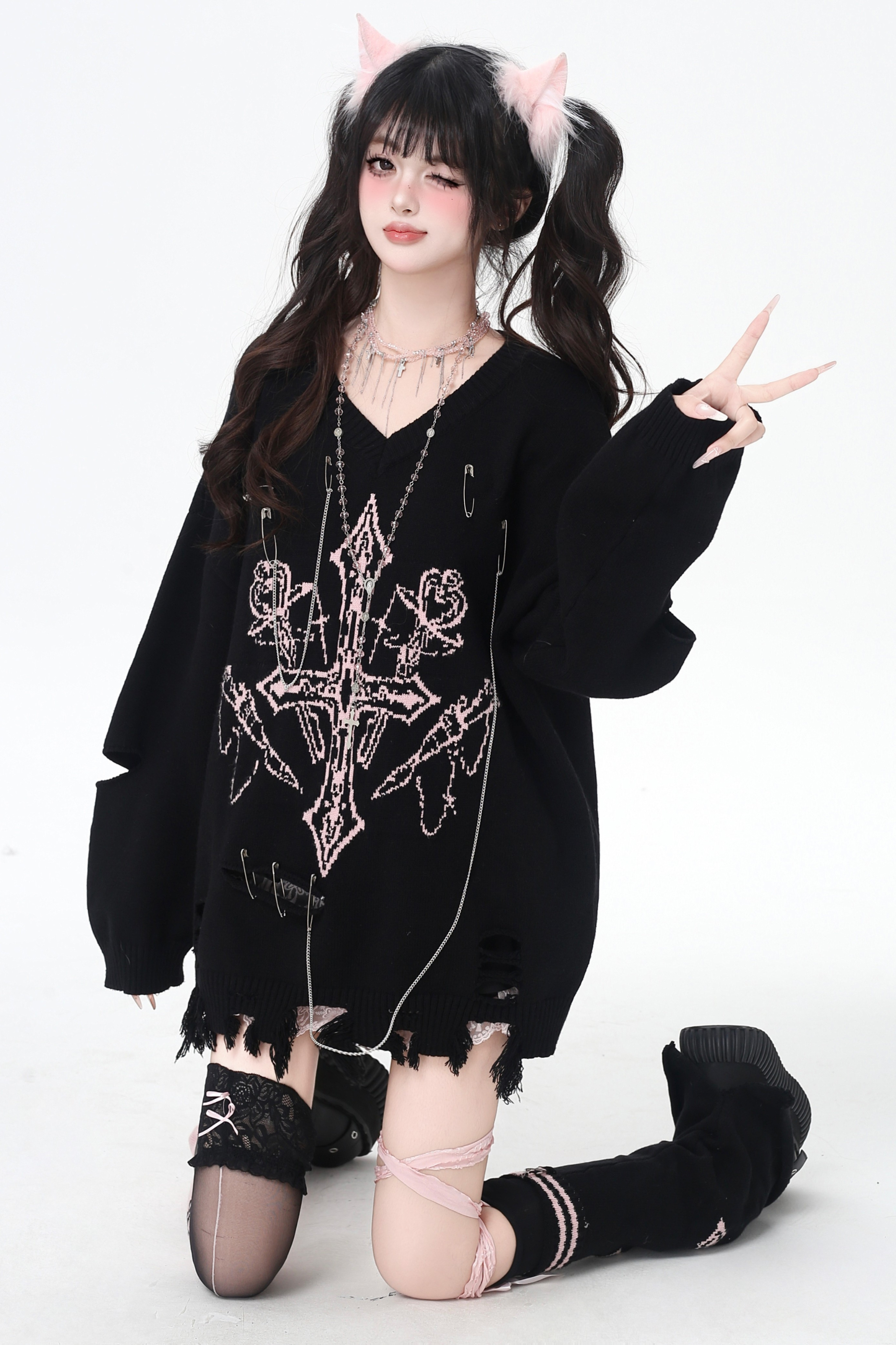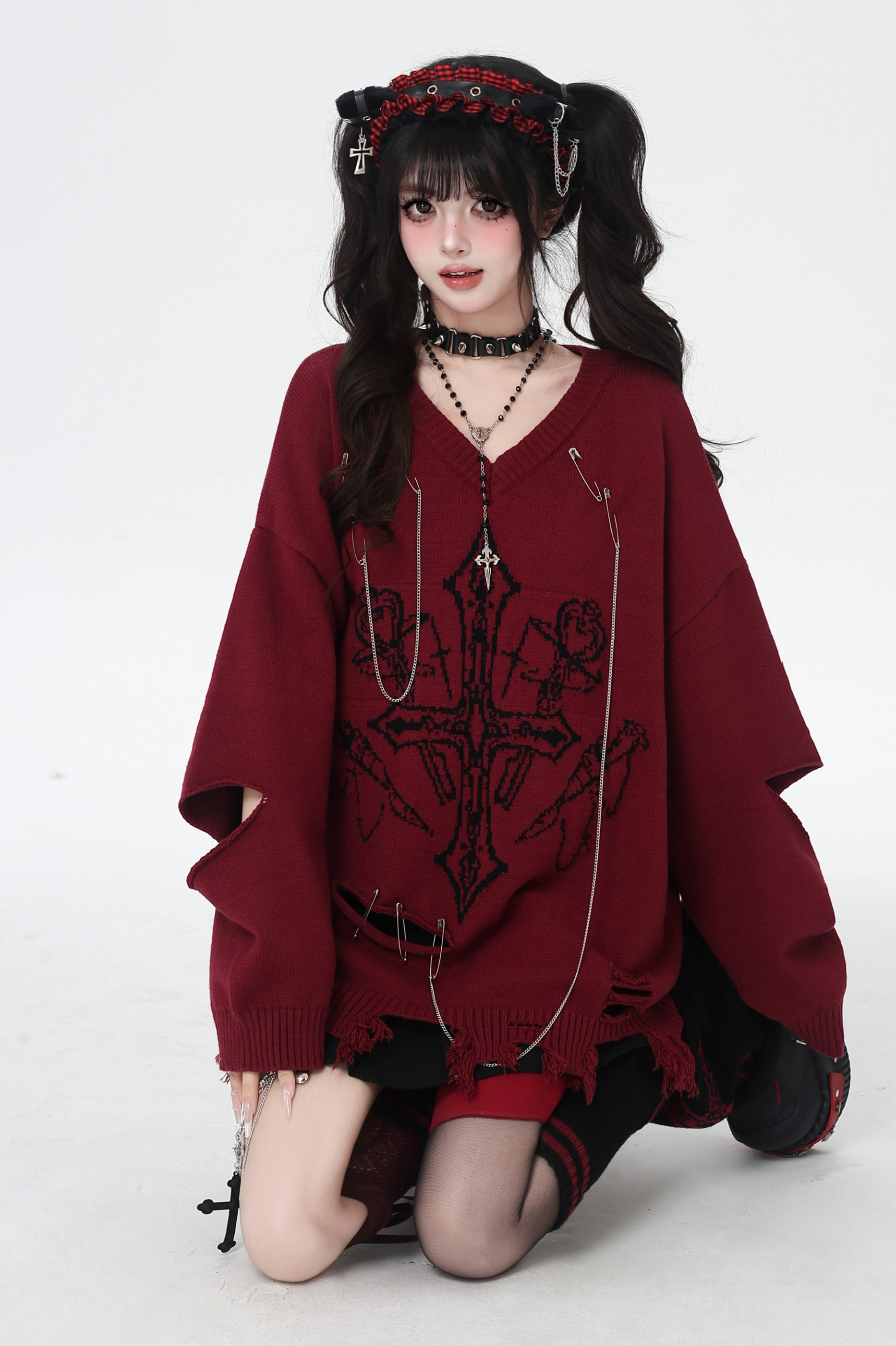 ❤ゴシックライトアジアンVネックニッチルーズセーター❤