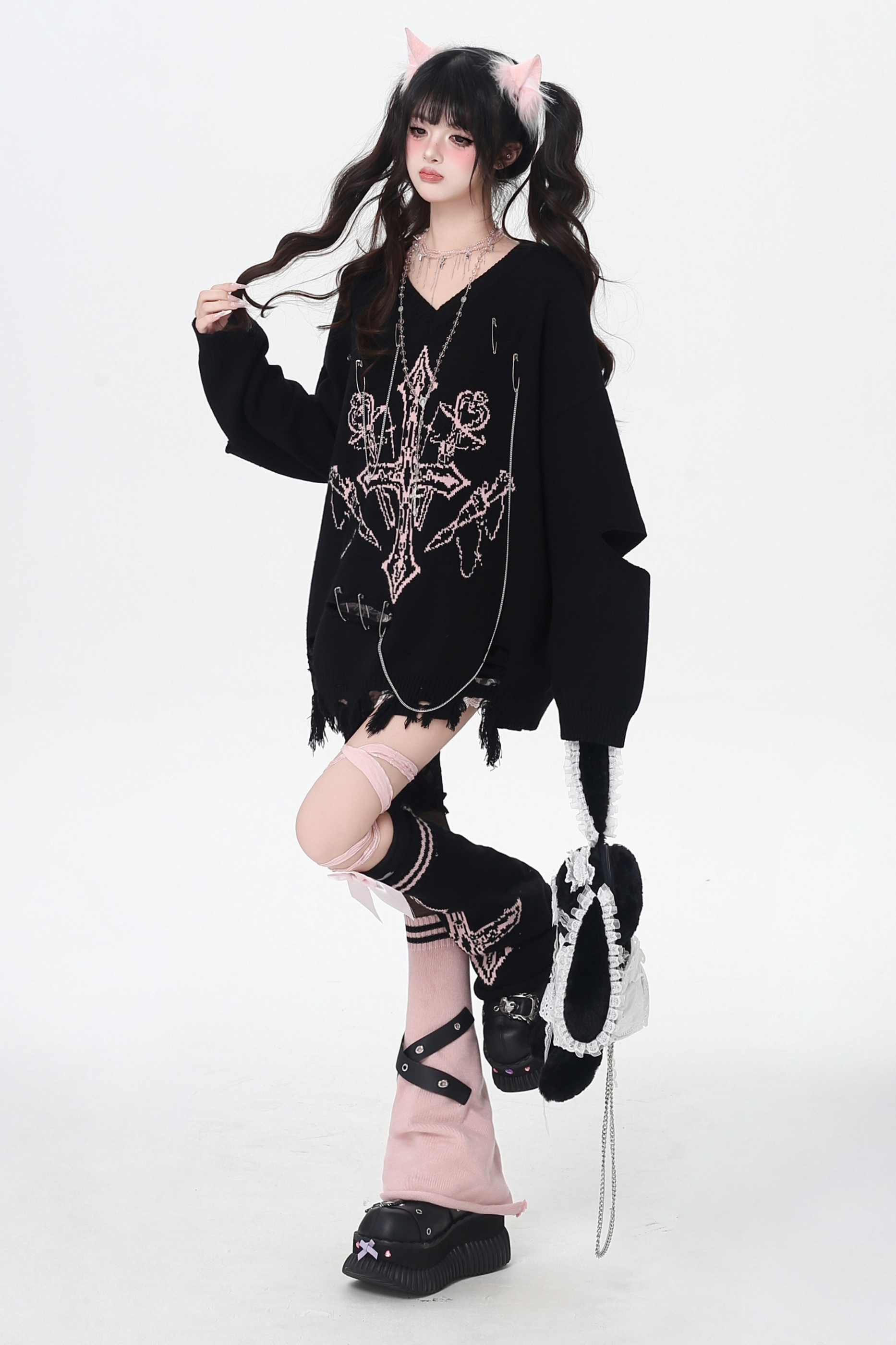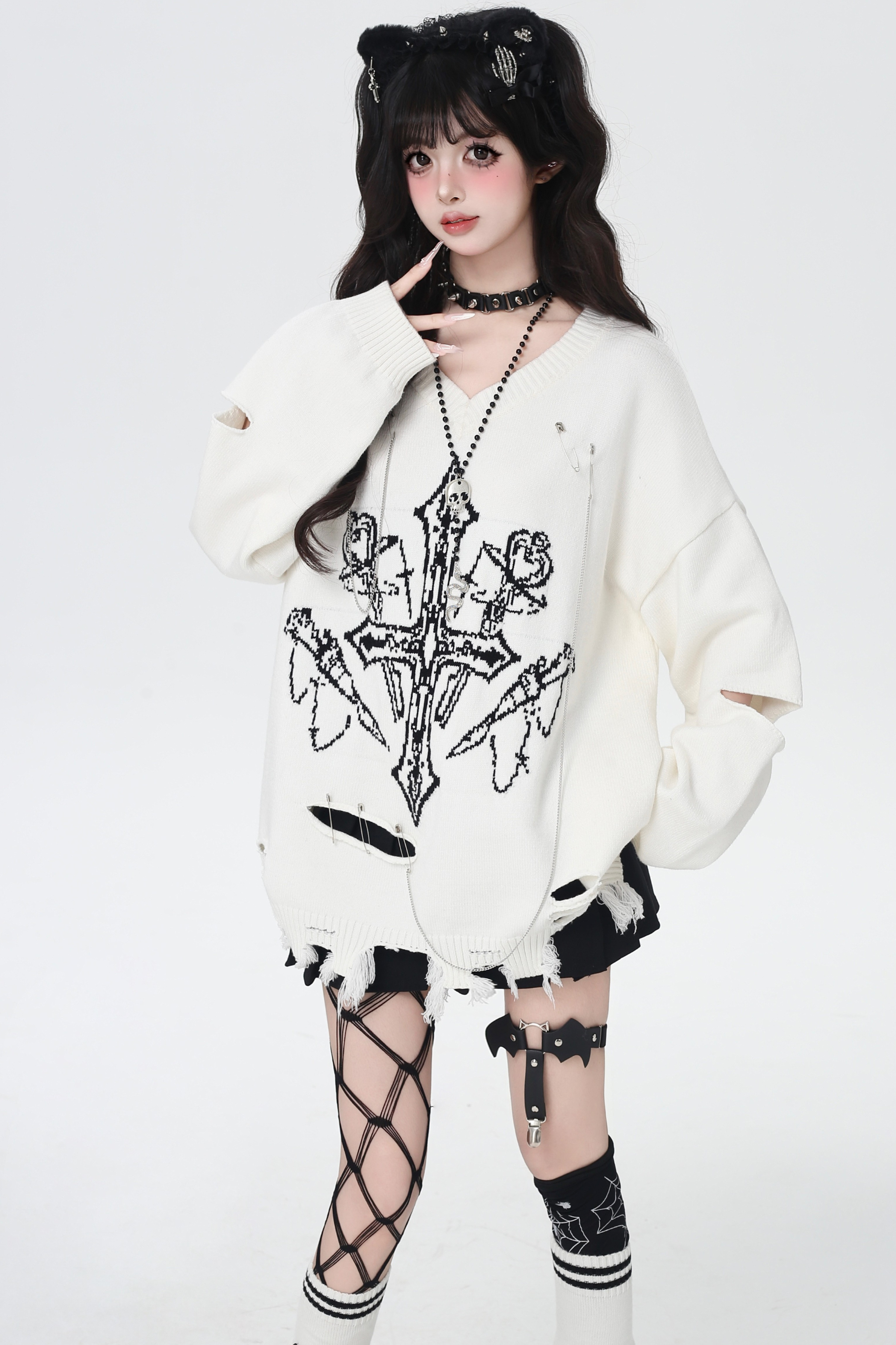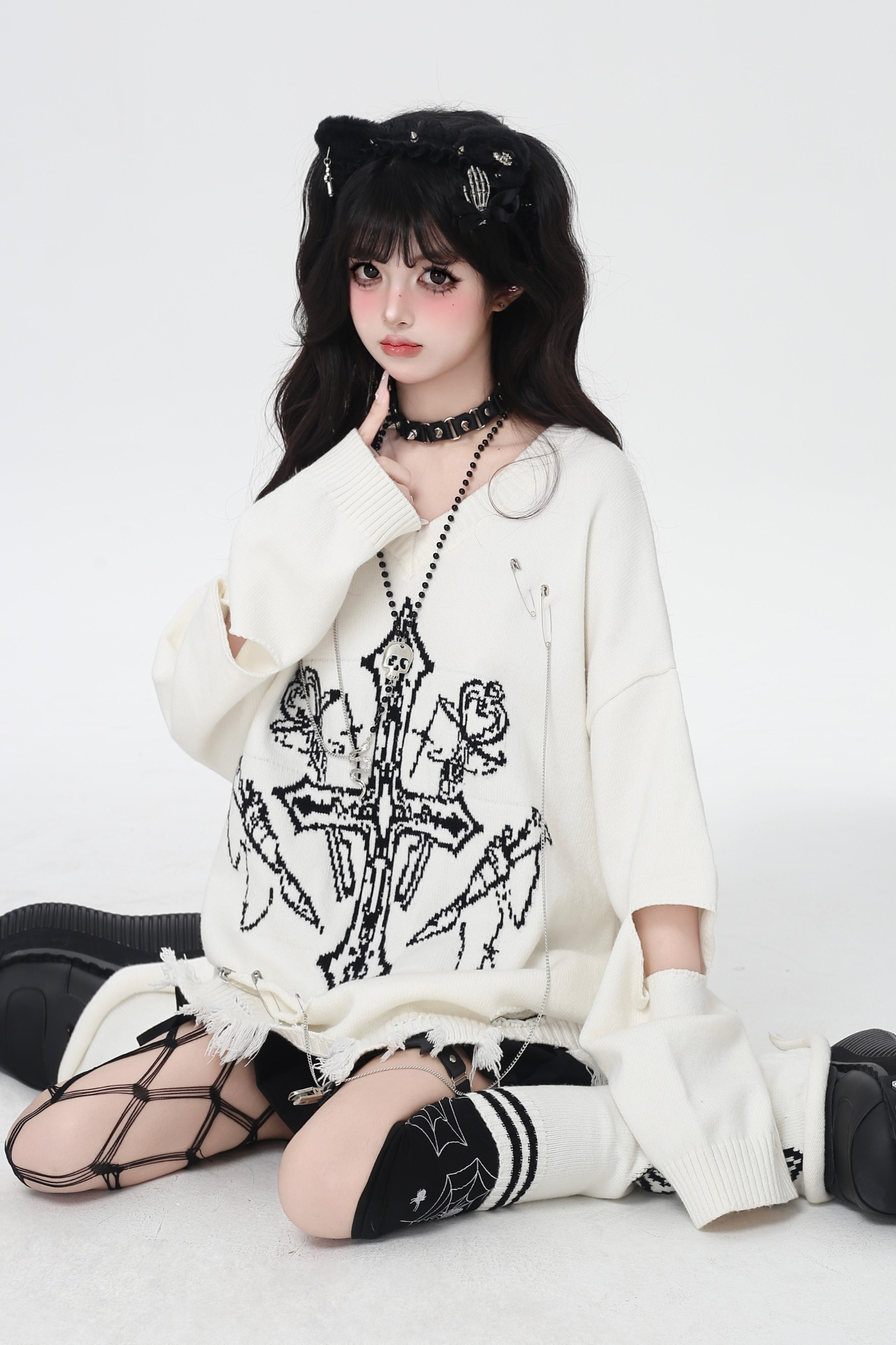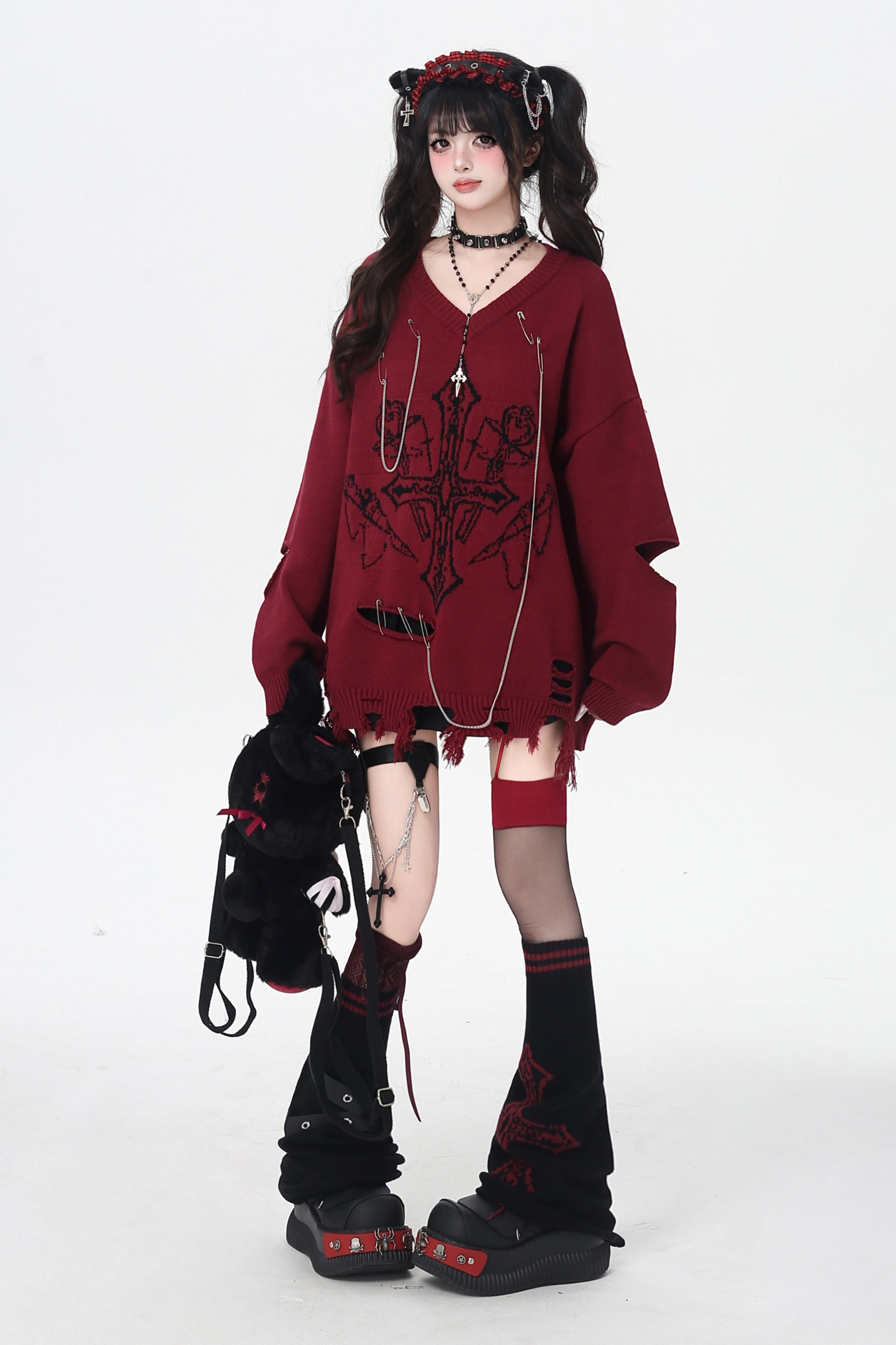 ❤ゴシックライトアジアンVネックニッチルーズセーター❤