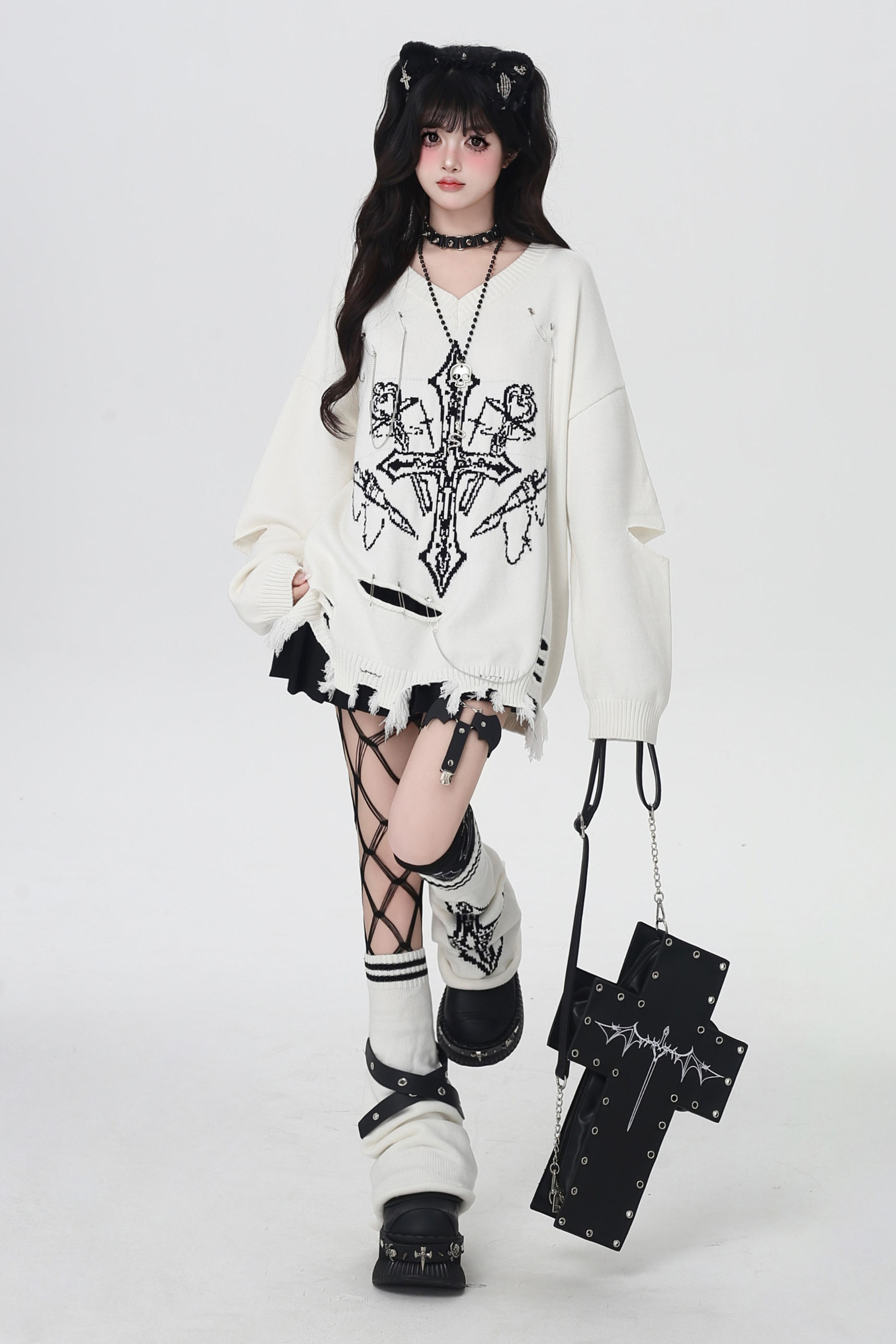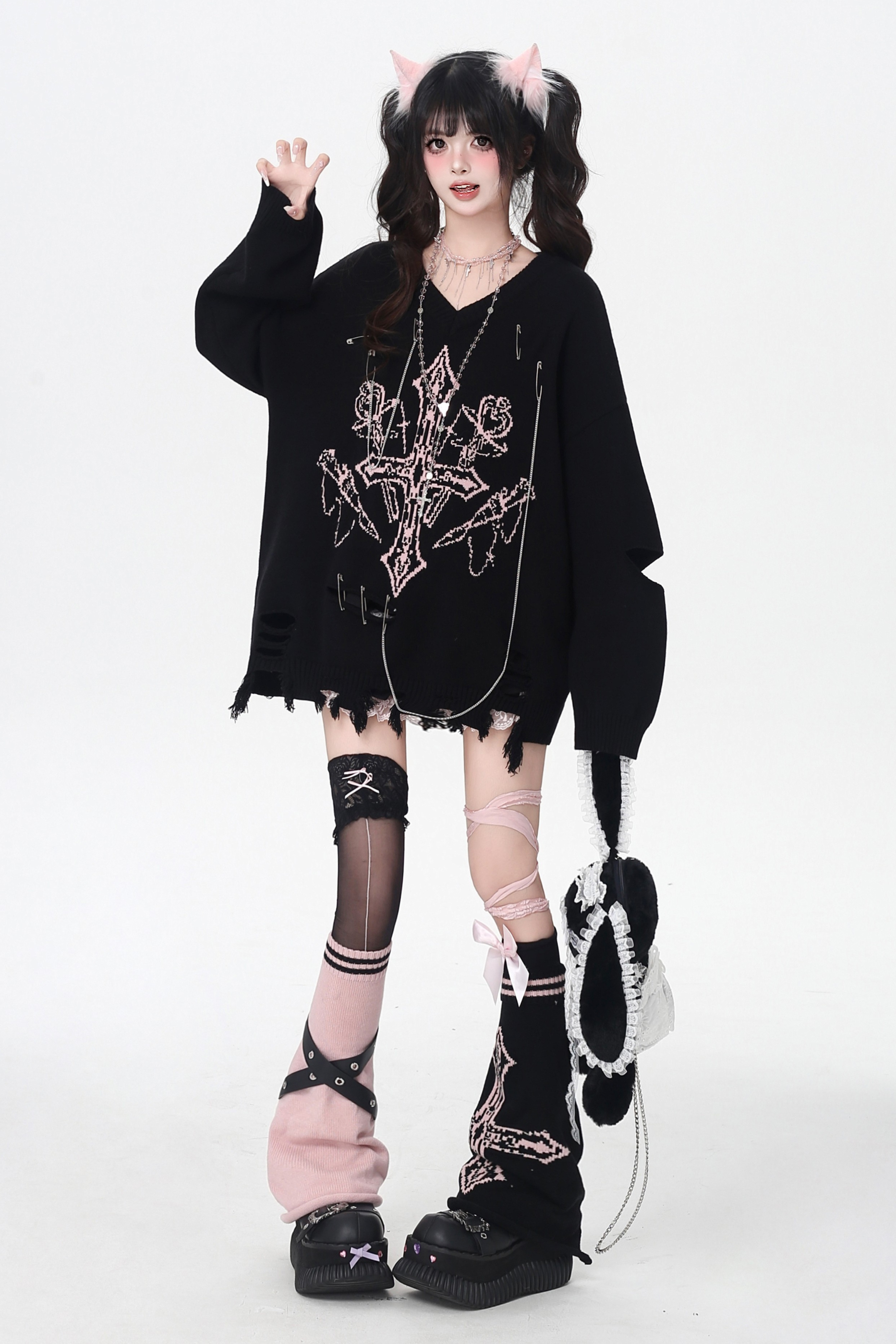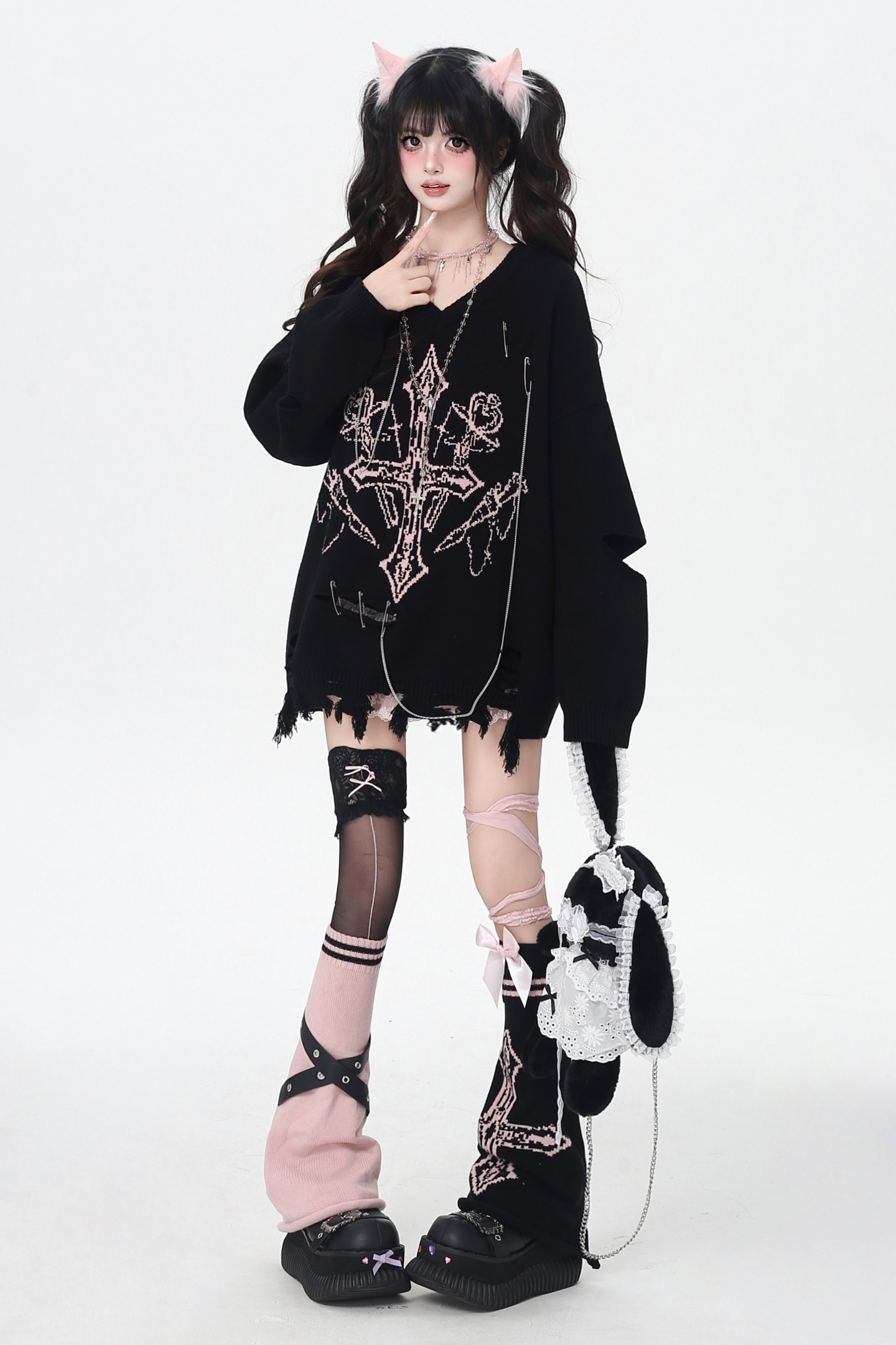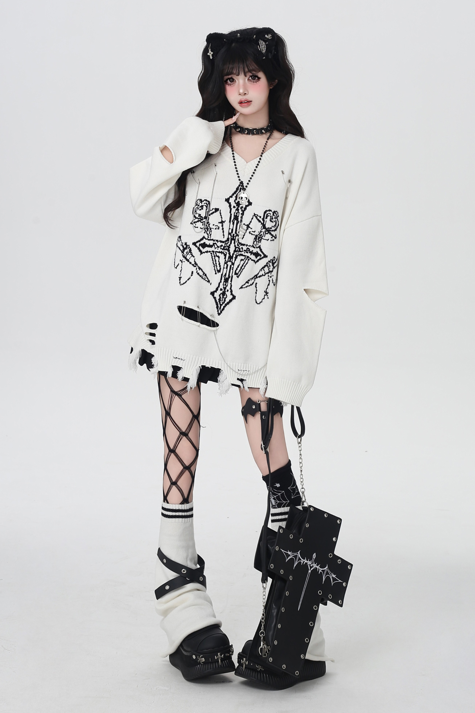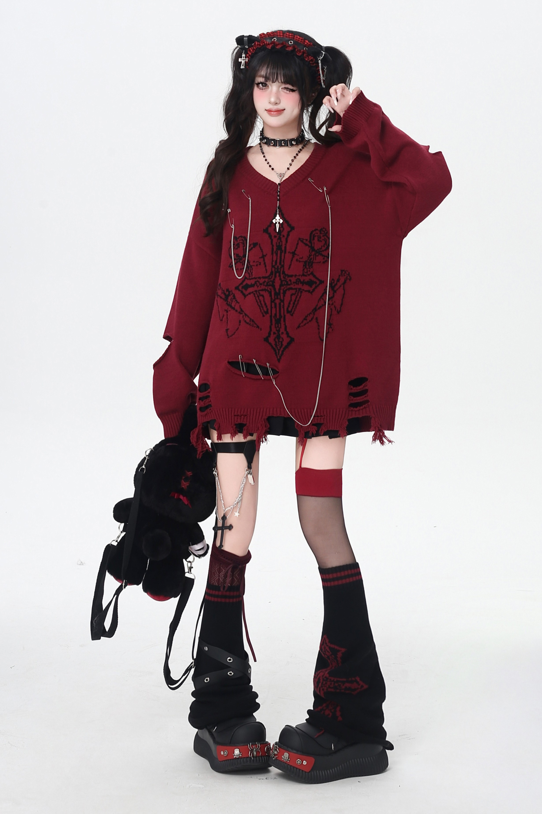 ❤ゴシックライトアジアンVネックニッチルーズセーター❤